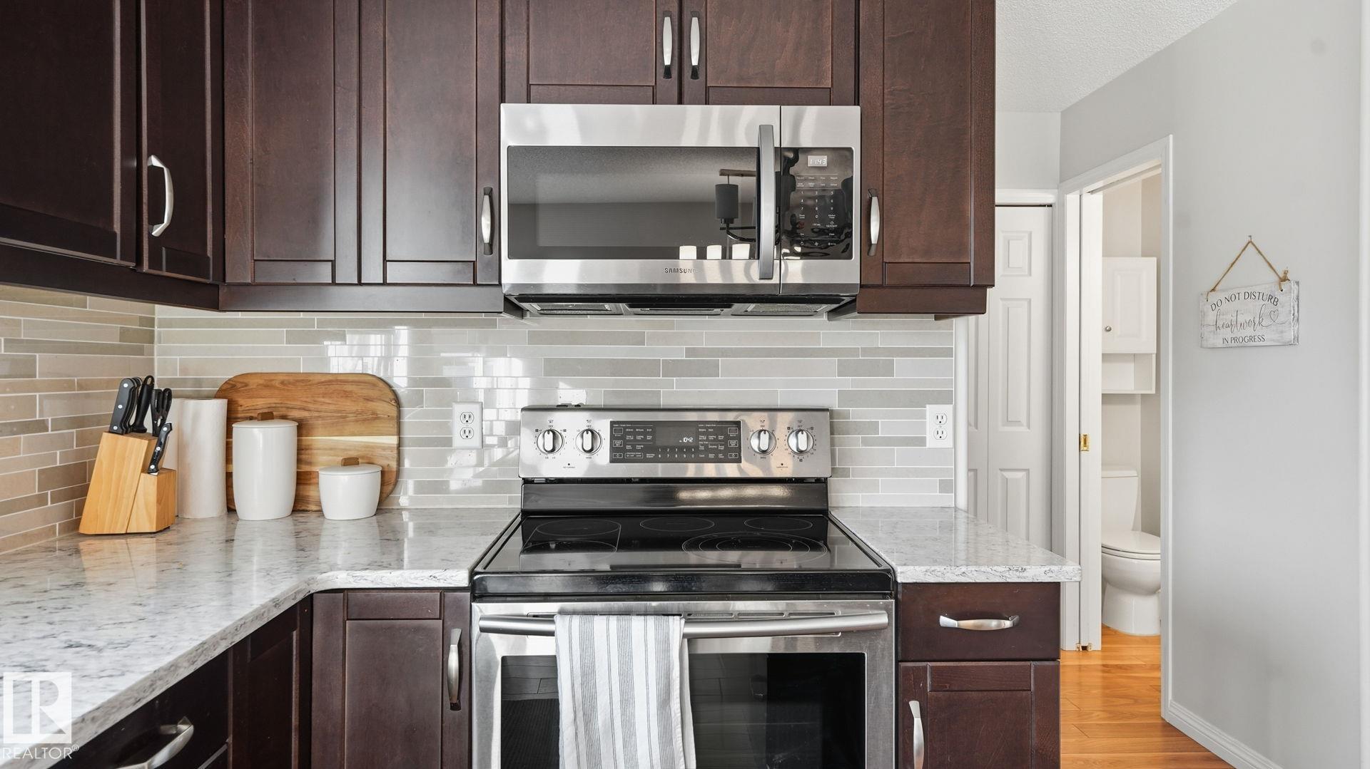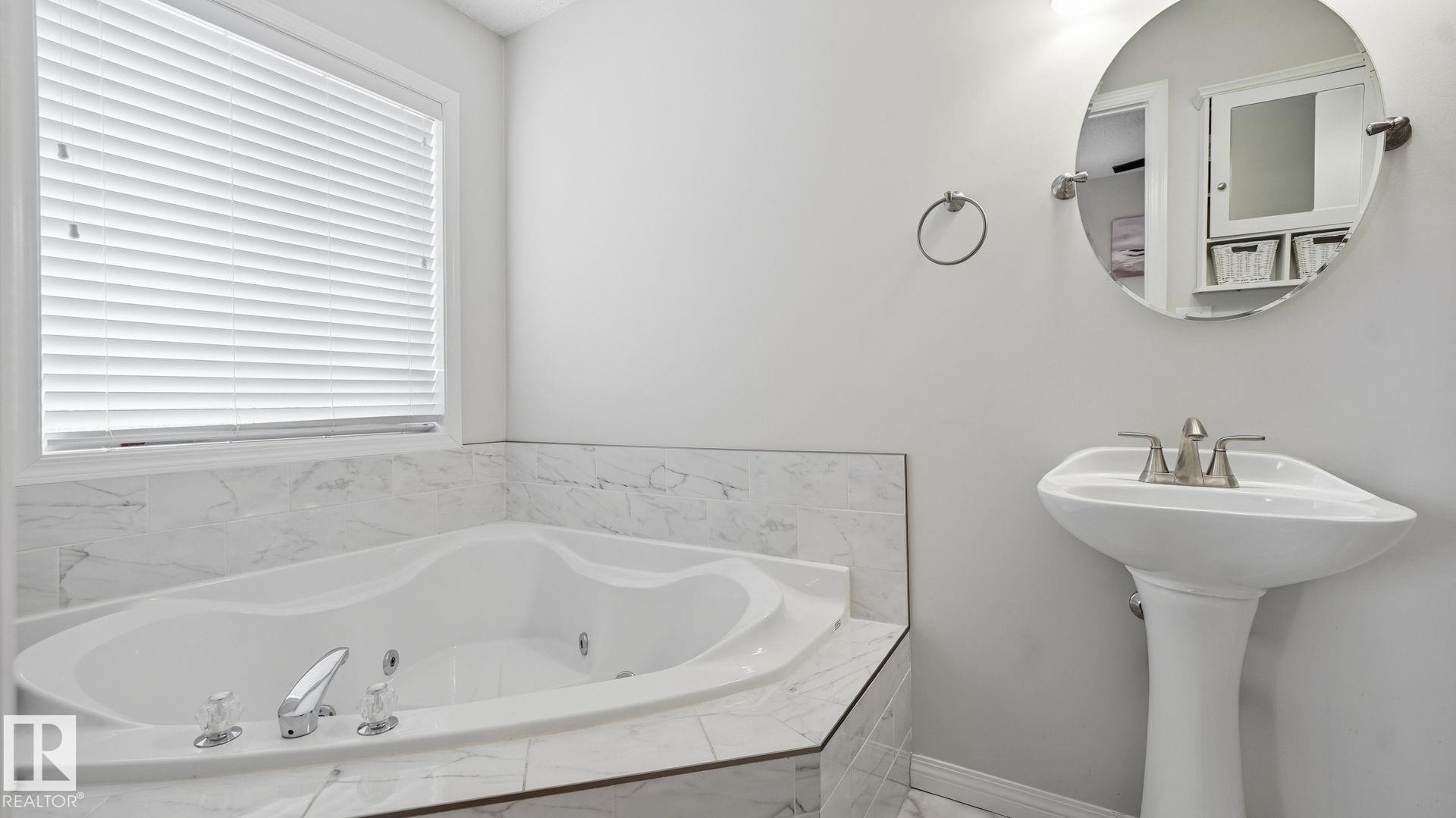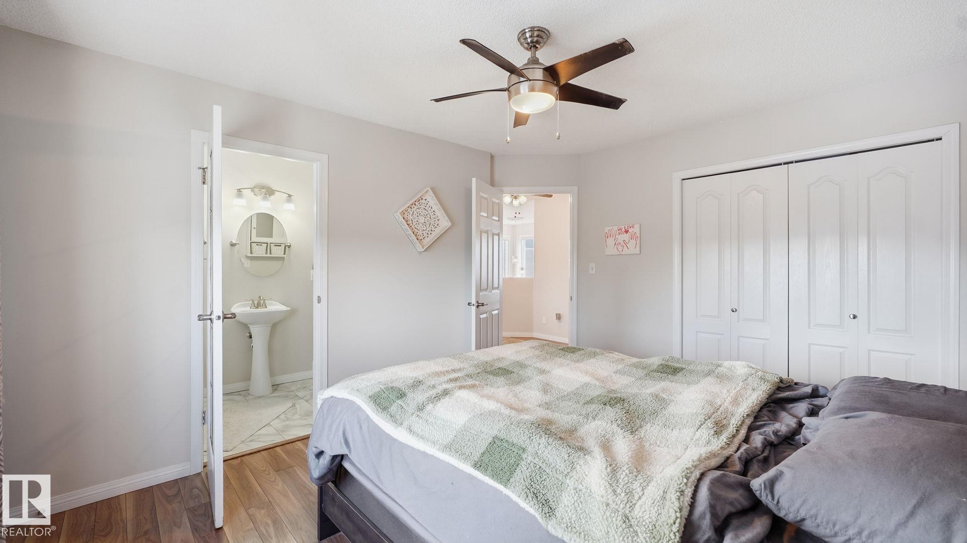 Beautifully maintained in the heart of family-friendly Lakewood! A welcoming foyer w/towering ceilings & soaring vaults sets the tone for this bright, inviting home flooded w/natural light from windows on all sides. The main floor, perfect for everyday living has a spacious living room w/wood-burning fireplace, plus a fully renovated kitchen w/real wood floor/ceiling cabinetry, quartz countertops, undermount sink, SS appliances, center island & a picture window overlooking the backyard. A cozy dinette w/garden doors leads to the cedar deck, ideal for family BBQs. Main level also has durable laminate flring, a 2pc bath & laundry. Upstairs features spacious bedrooms w/no carpet, a 4pc bath & a king-sized primary suite w/4pc ensuite. The fully finished basement adds even more space w/brand new carpet, fresh paint, a rec room, 3pc bath & 4th bedroom. Enjoy the oversized garage, newer shingles, hot water tank (2024), mature trees, hot tub & private yard w/playground, trail system & shopping all nearby