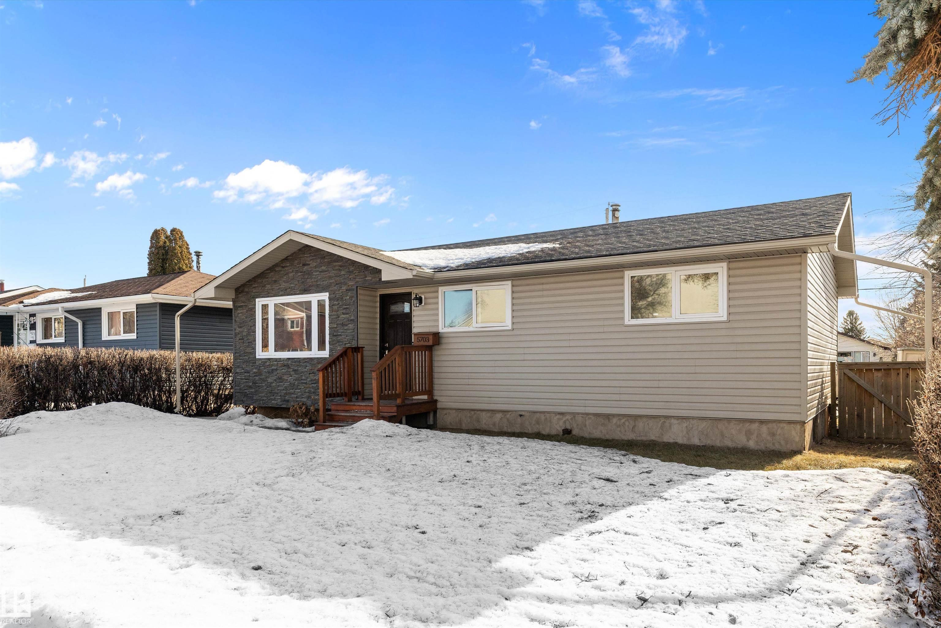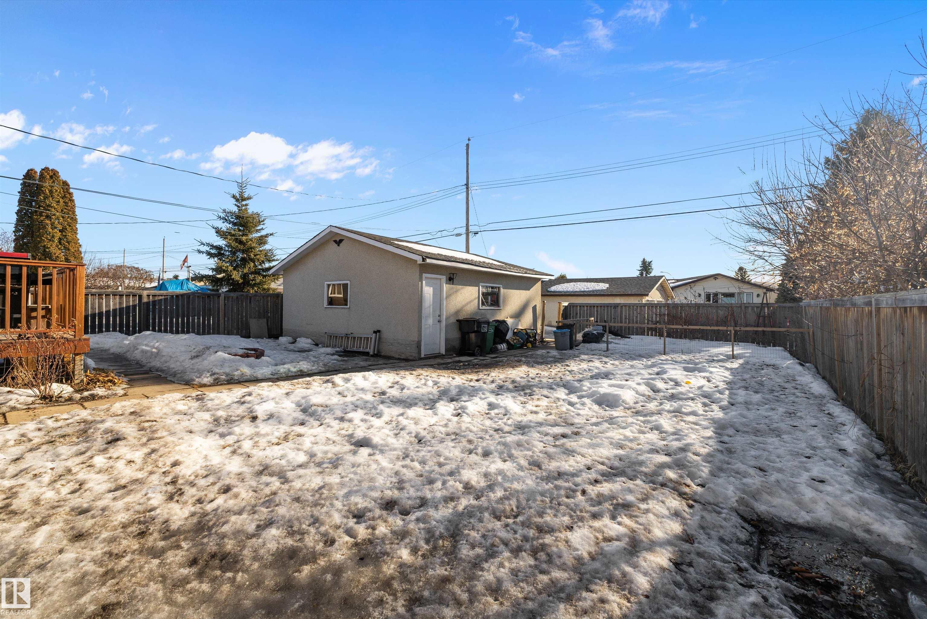 This 949 sq. ft. home in York could be what you have been waiting for to make your own. On the main level this home features a spacious living room, south facing kitchen with French doors to the backyard deck, 3 bedrooms and 4 piece bathroom. There is a separate back entrance to the downstairs where there is an area that has extra cabinets, a fridge and freezer. Two extra bedrooms, sitting area, 4 piece bathroom and laundry room complete the basement. The upgrades over the years include exterior insulation around the house before siding and stone brick work was completed (2009), vinyl windows (2008), hot water tank (2016) and the furnace was just installed (2025). The sunny backyard has plenty of space and a double detached garage. This home is in a great neighbourhood close to schools, public transportation, shopping and has great access to the Anthony Henday. With a little love you could make this house your home.