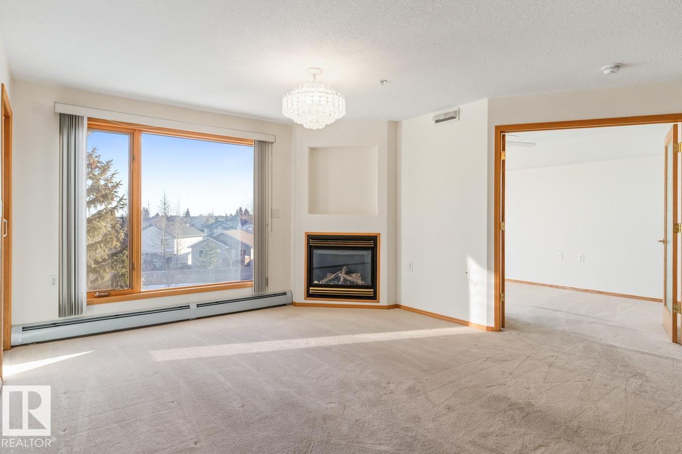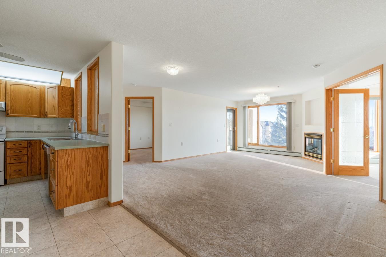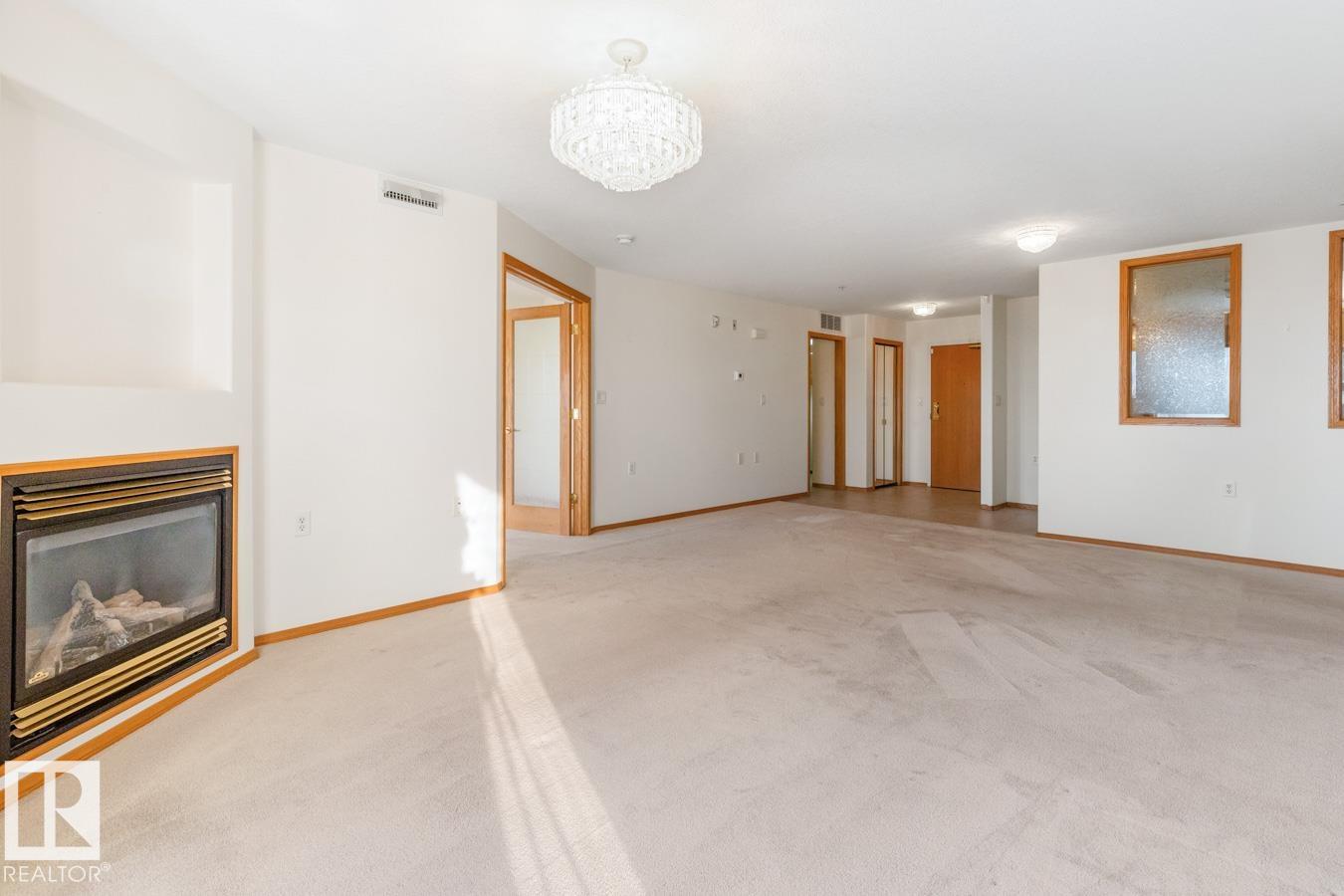 Welcome to this IMMACULATE condo in the sought-after adult complex of The Sierra?s, offering AC, 2 bedrooms & 2 baths. A spacious entry leads to a bright, open living area filled with natural light and centered around a cozy fireplace. The kitchen features ample cabinetry and a corner pantry. The king-sized primary suite offers a walk in closet & a 4pc ensuite. A versatile 2nd bedroom or den is ideal for a home office, hobby space or guests. A 3pc bath and laundry room with added storage complete the functional layout. Enjoy your PRIVATE patio with peaceful views of the park & gazebo. Exceptional amenities include an indoor pool, hot tub, library, games room, craft room, woodworking shop & party room. Heated underground parking (near the elevator) offers a carwash bay. Prime location steps to shopping, dining & transit. Condo fees include HEAT, POWER, WATER & SEWER. Exceptional community living awaits!