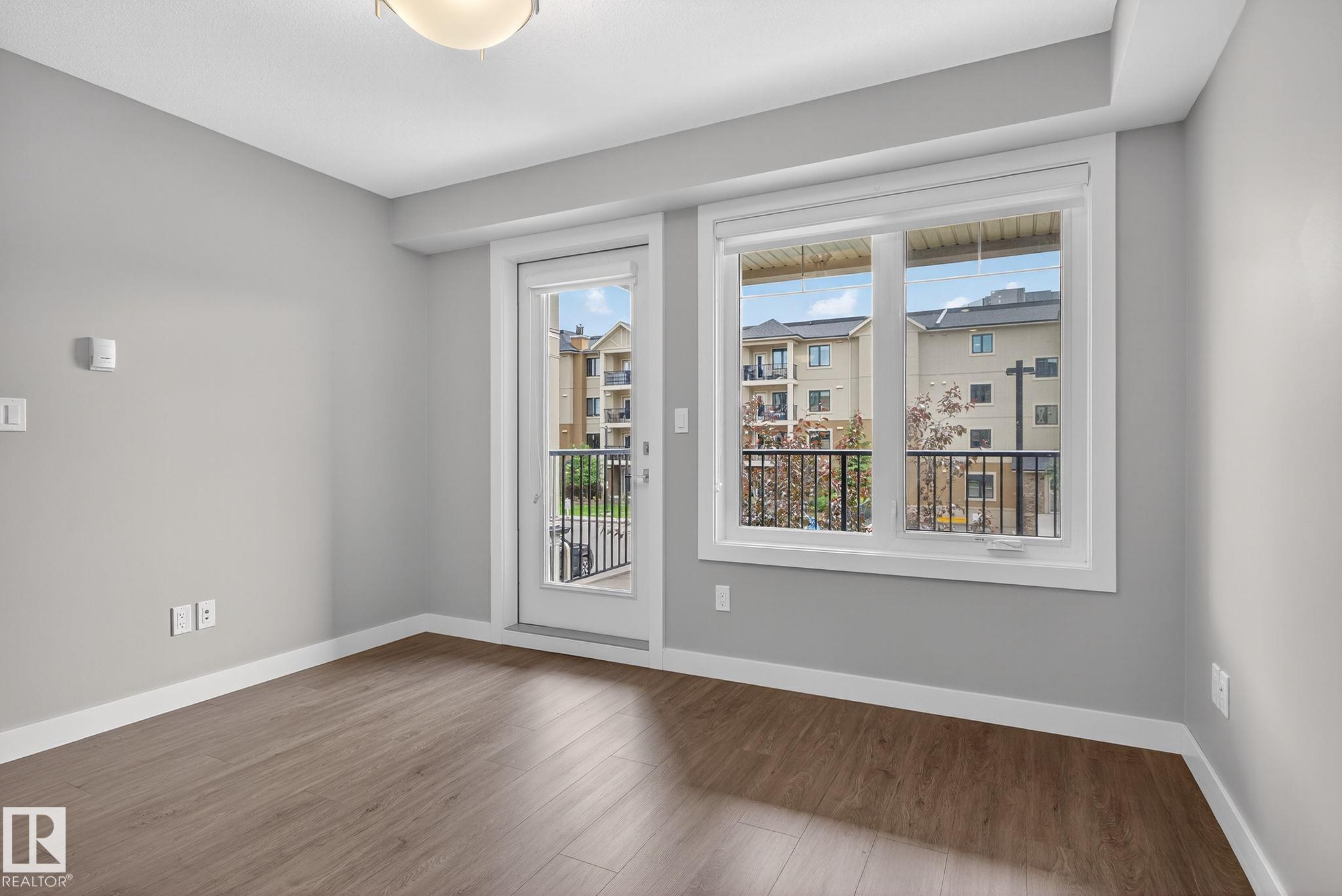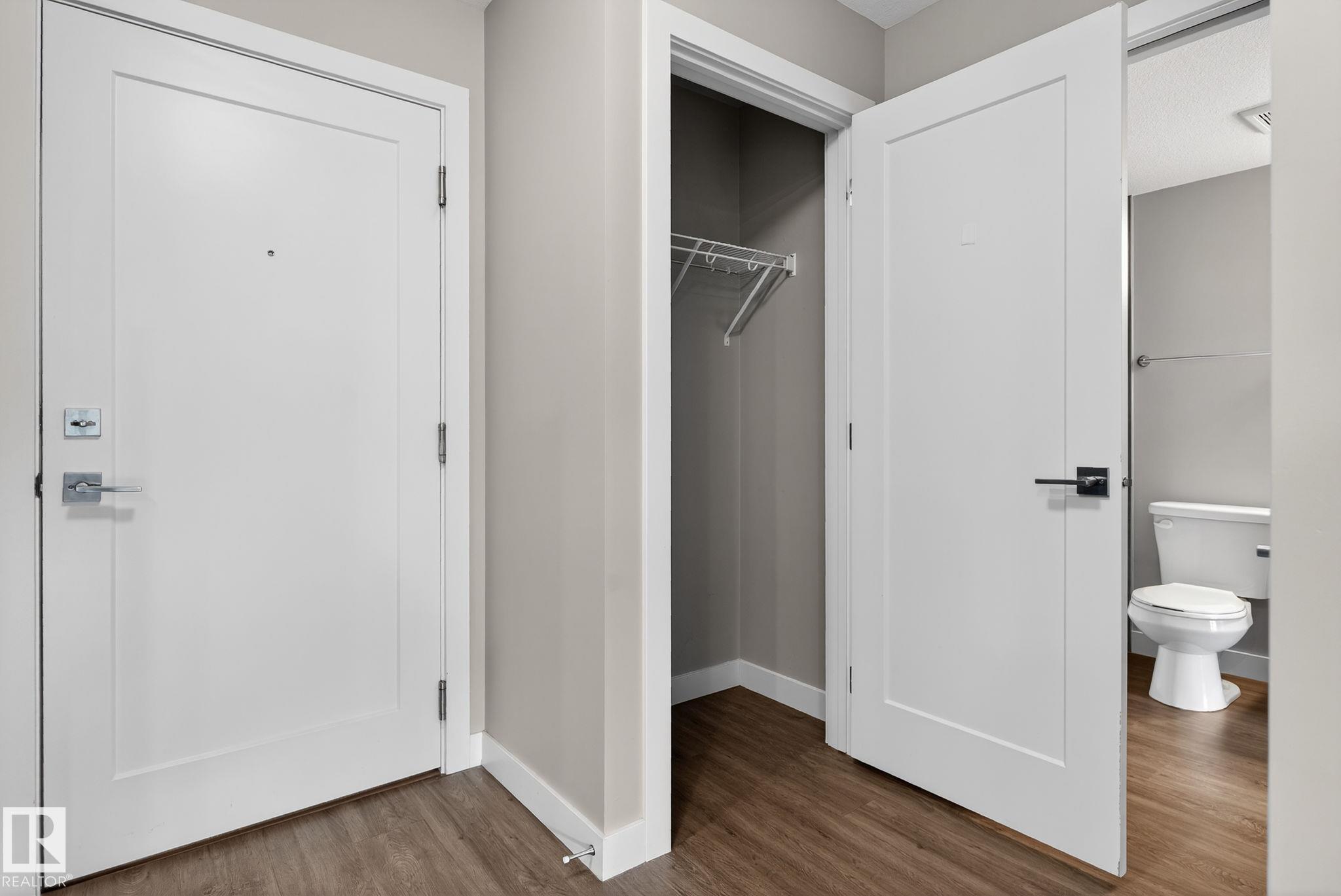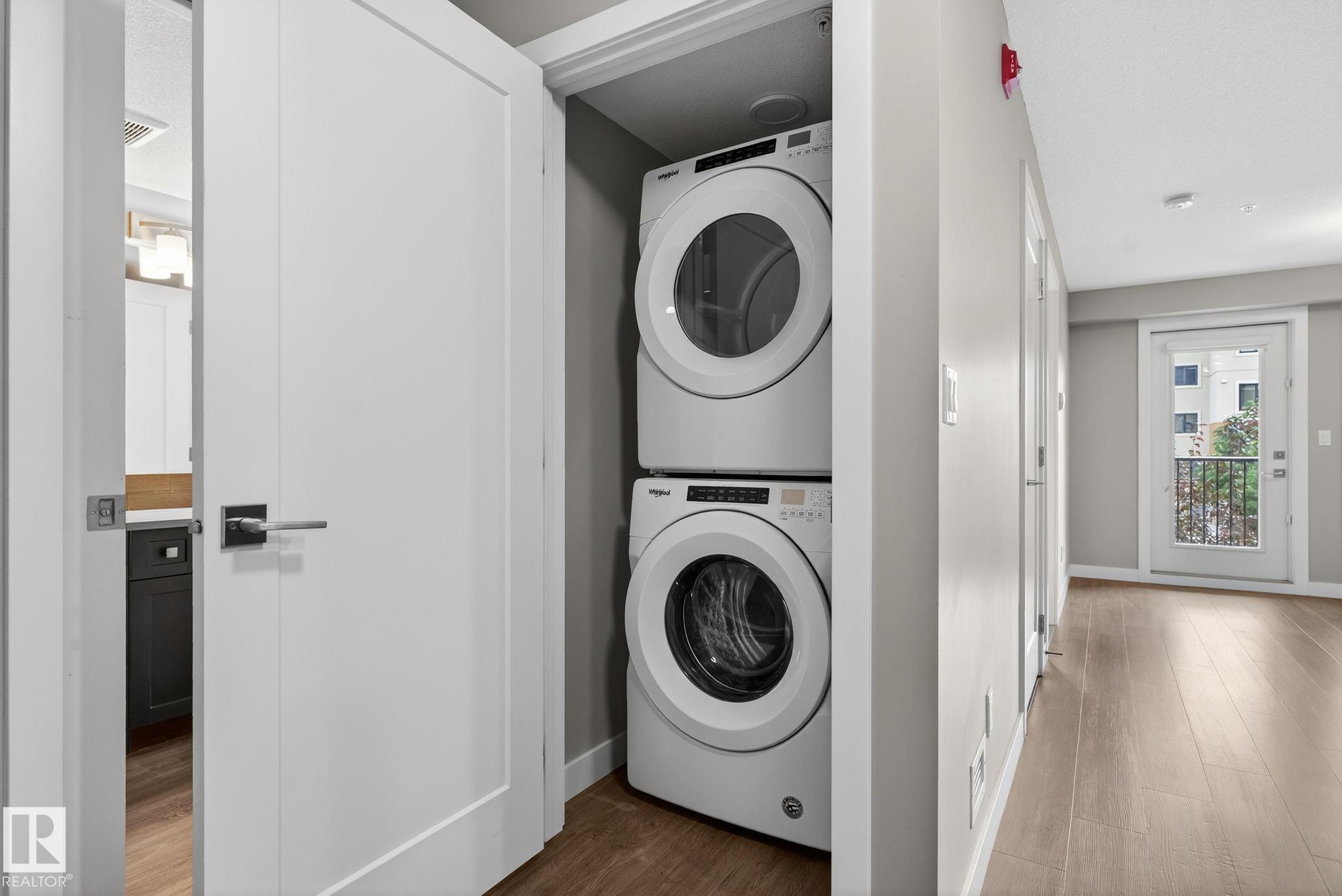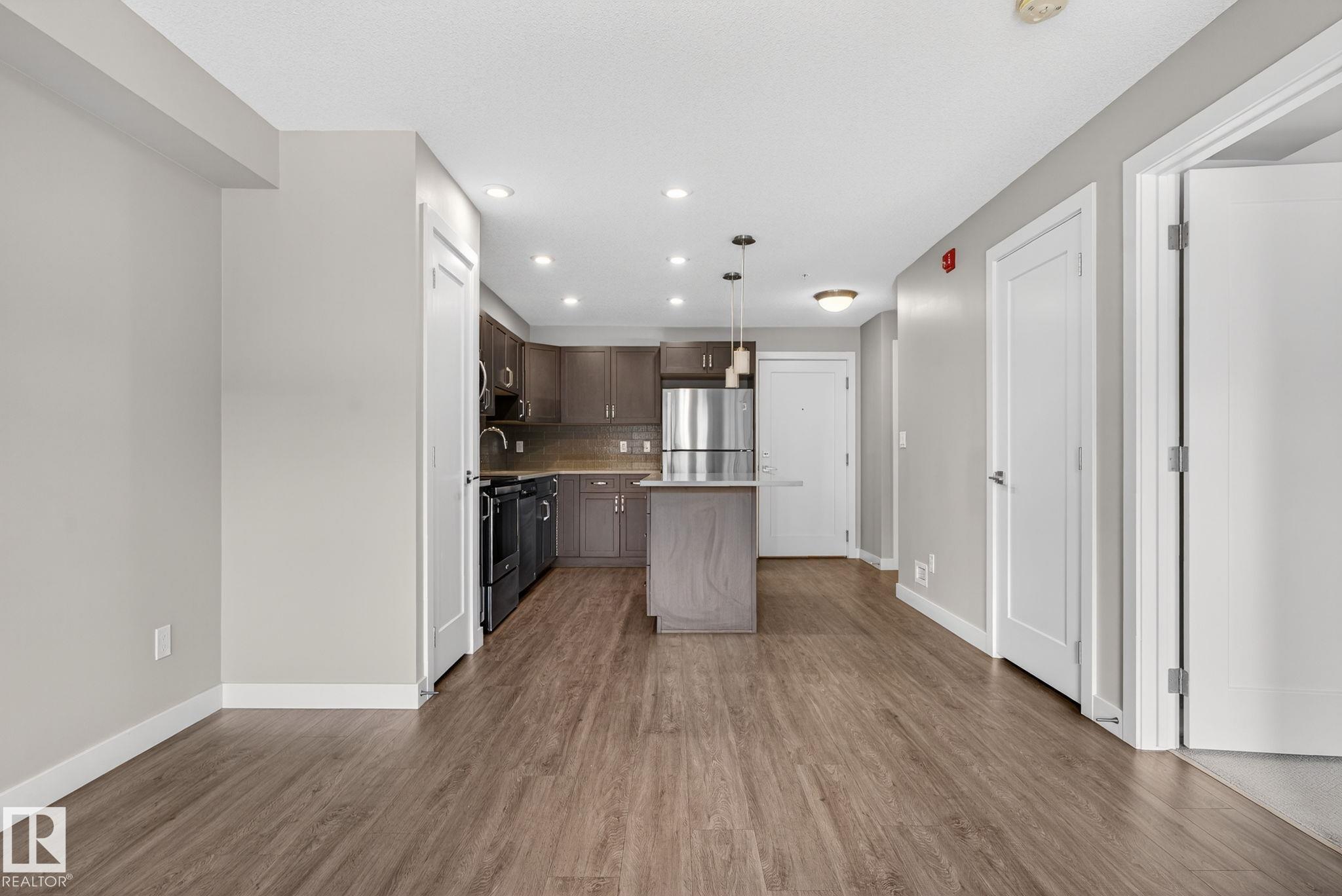 Bright south facing condo in an upscale adult building! This 1 bedroom/1 bathroom condo is perfect for the young professional or retiree. It was fully upgraded with all the design options available such as quartz counters, wide plank LVP, modern mocca shaker cabinets, full height glass backsplash, stainless steel appliances, pot lights and beautiful pendants over the island. Other features include, in-floor heat, big walkthrough bedroom closet & 2 pantries. This condo also offers 1 titled underground parking stall with storage cage attached! Additional surface titled parking is available for sale. Essence is adult only (18+) until 2033. Pets by board approval. Located in a cul de sac with a pond on the north side of the building! Minutes away from the Anthony Henday freeway and extensive shopping and dining in the Currents of Windermere. Essence At Windermere South, an exceptional property in an even more exceptional location.