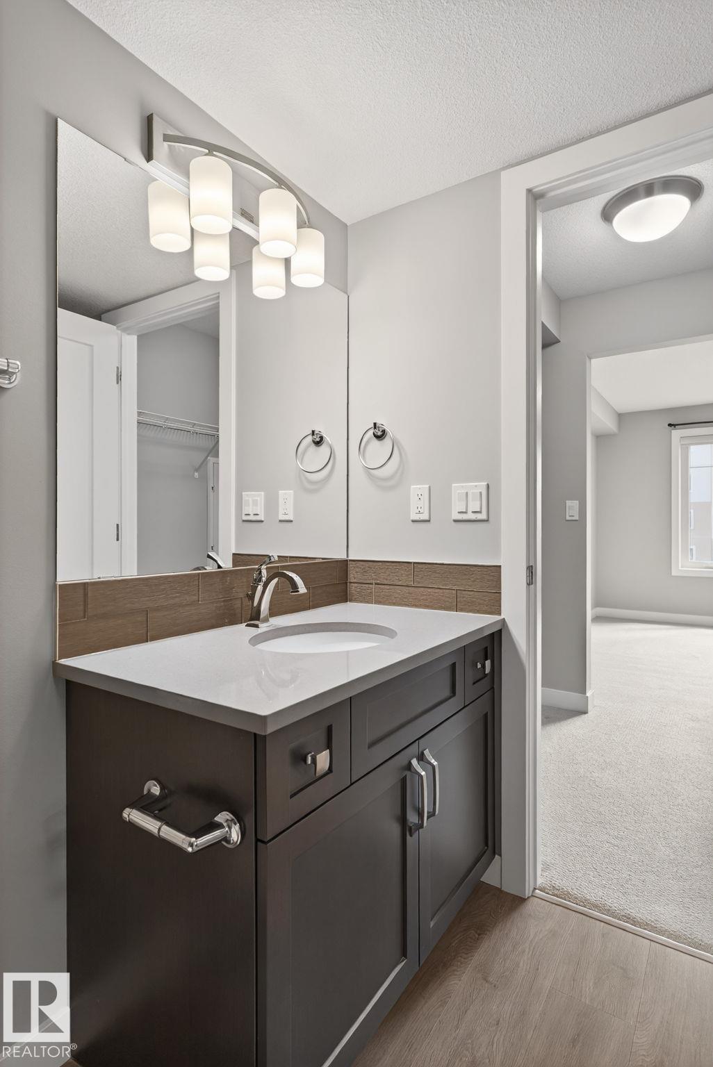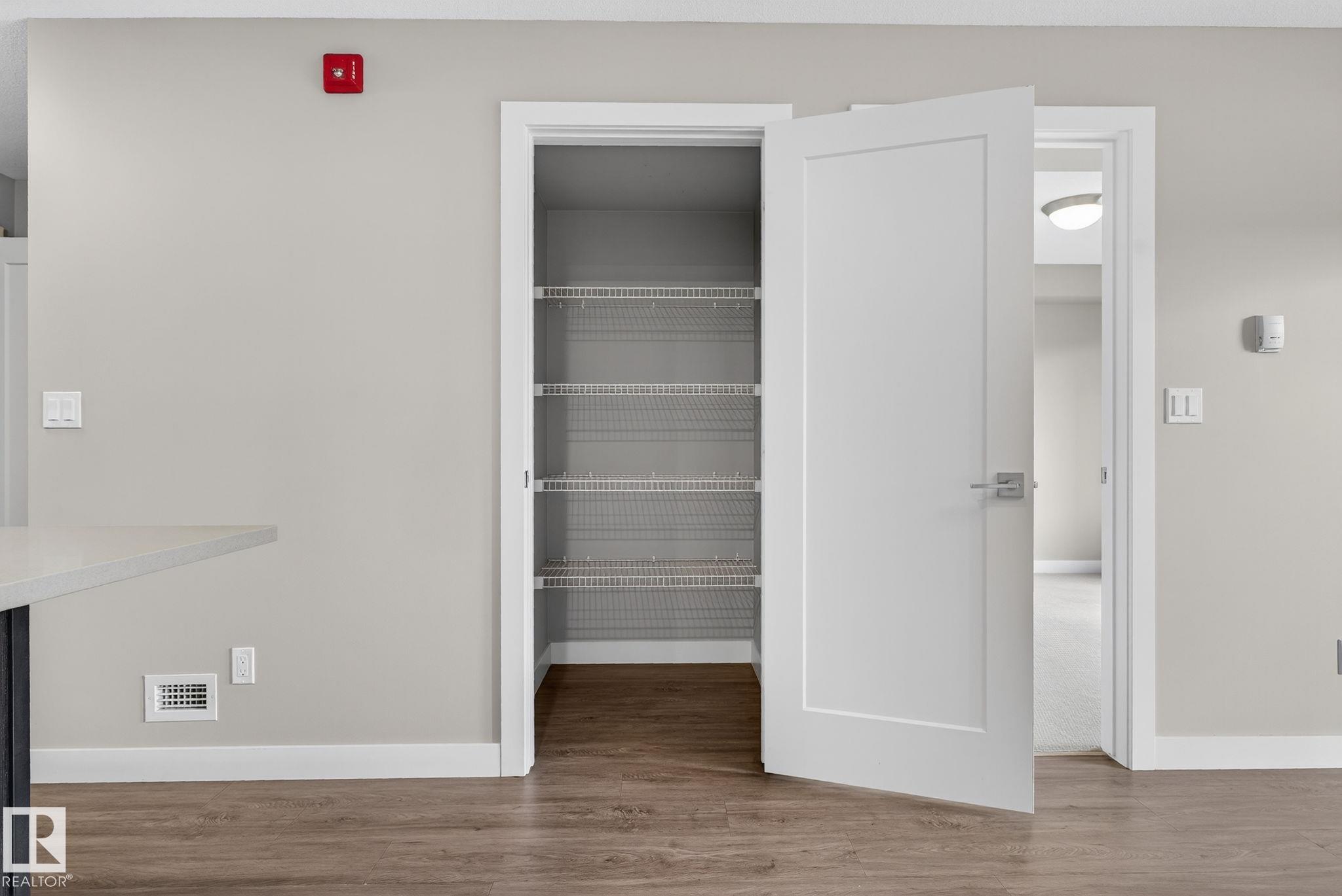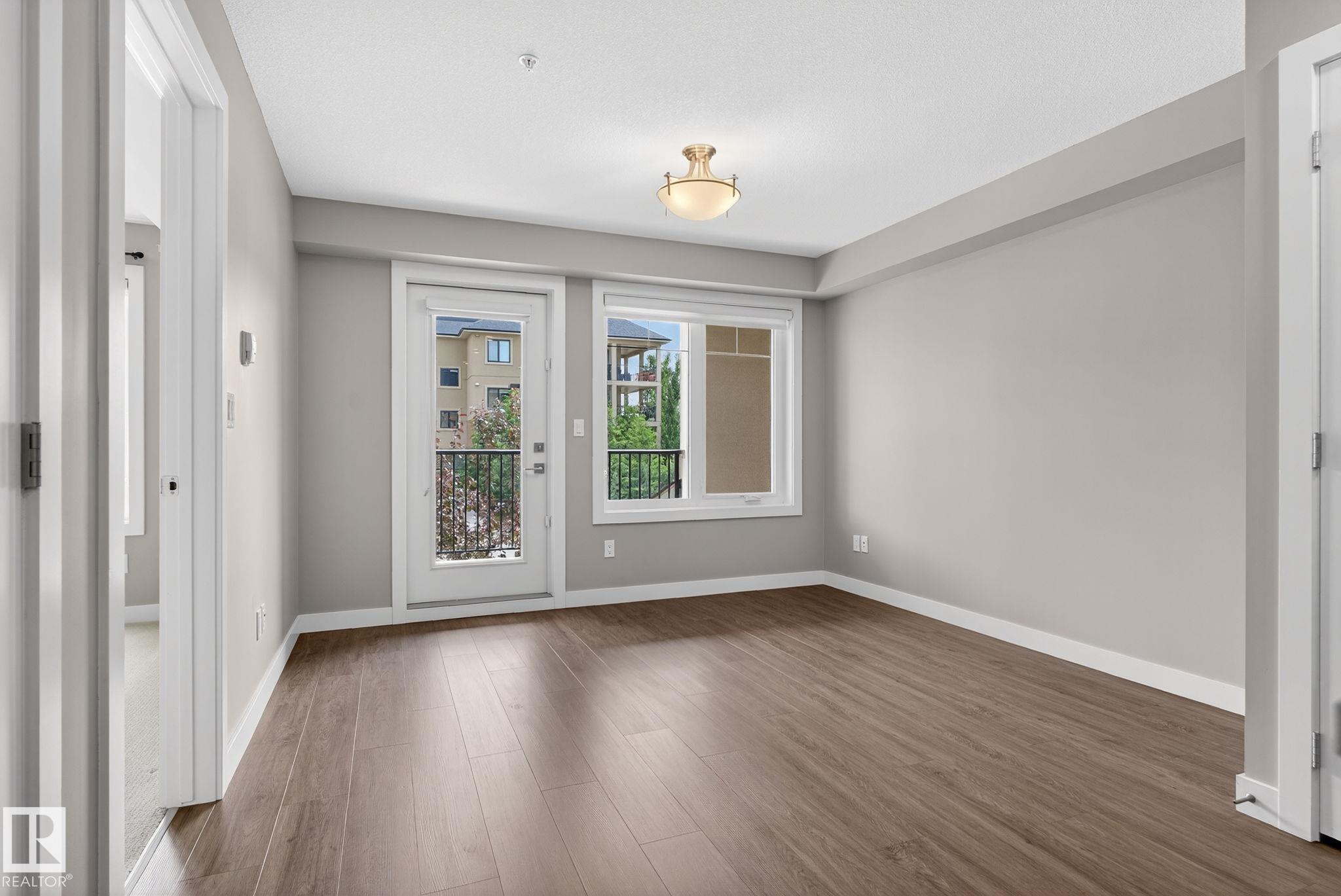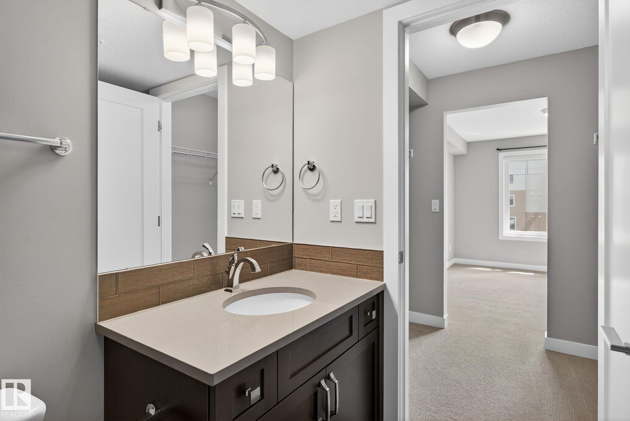 Bright south facing condo in an upscale adult building! This 1 bedroom/1 bathroom condo is perfect for the young professional or retiree. It was fully upgraded with all the design options available such as quartz counters, wide plank LVP, modern mocca shaker cabinets, full height glass backsplash, stainless steel appliances, pot lights and beautiful pendants over the island. Other features include, in-floor heat, big walkthrough bedroom closet & 2 pantries. This condo also offers 1 titled underground parking stall with storage cage attached! Additional surface titled parking is available for sale. Essence is adult only (18+) until 2033. Pets by board approval. Located in a cul de sac with a pond on the north side of the building! Minutes away from the Anthony Henday freeway and extensive shopping and dining in the Currents of Windermere. Essence At Windermere South, an exceptional property in an even more exceptional location.