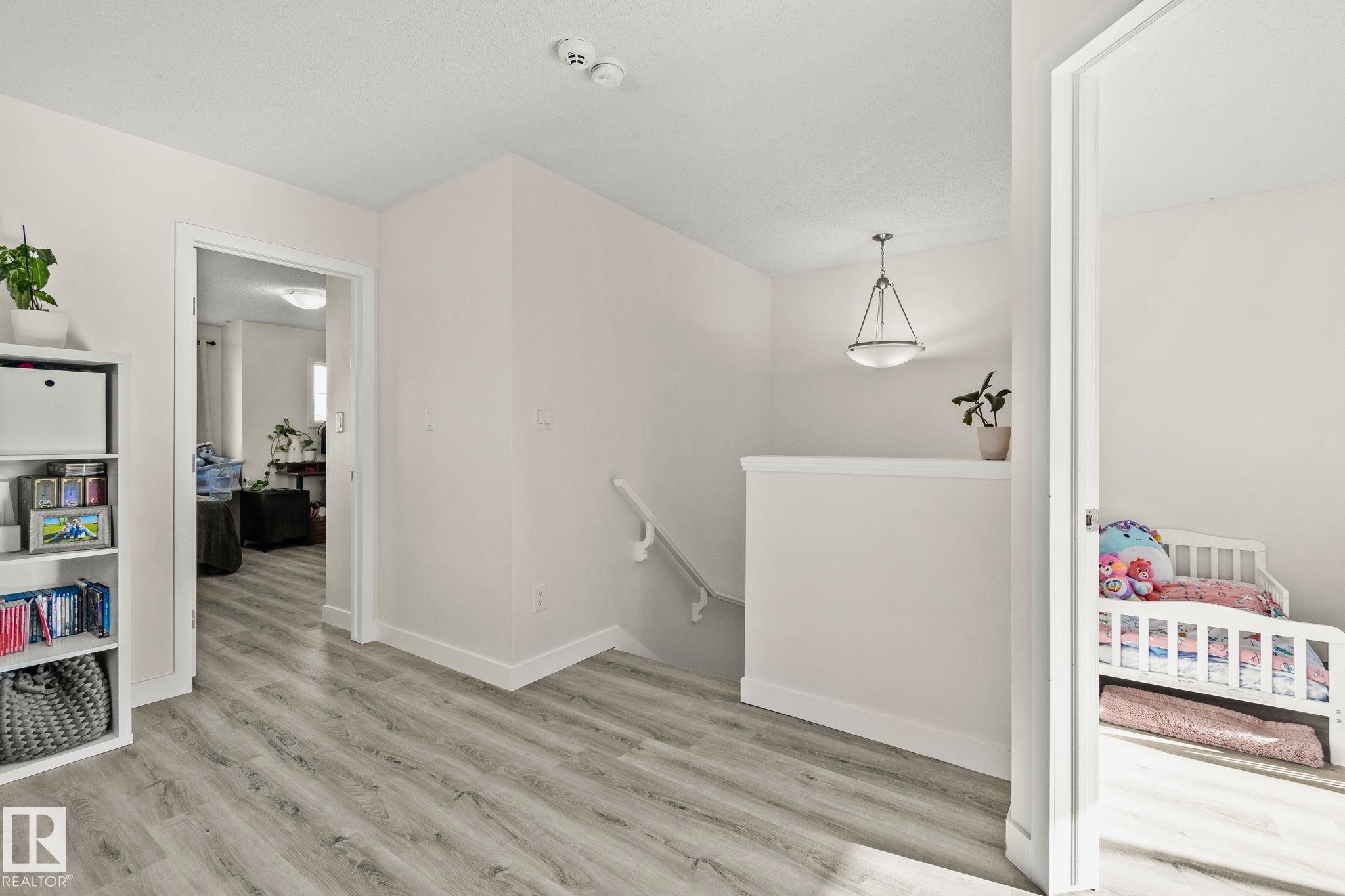 Great value and a smart opportunity for first-time buyers or investors. This half duplex offers a functional, open-concept main floor with a bright living space, u-shaped kitchen with corner pantry and stainless steel appliances, plus a spacious dining area filled with natural light. Recently painted with new flooring throughout and no carpet, the home provides a low-maintenance foundation to make your own. Upstairs features a versatile flex room and two generous primary bedrooms, each with its own ensuite and walk-in closet, ideal for roommates, guests, or rental potential. The large South facing backyard, with a 2-tier deck, offers potential rear lane access for future parking possibilities and room to grow. An unfinished basement adds extra space and value potential.