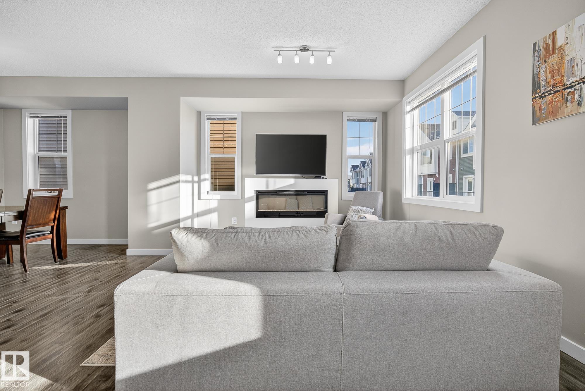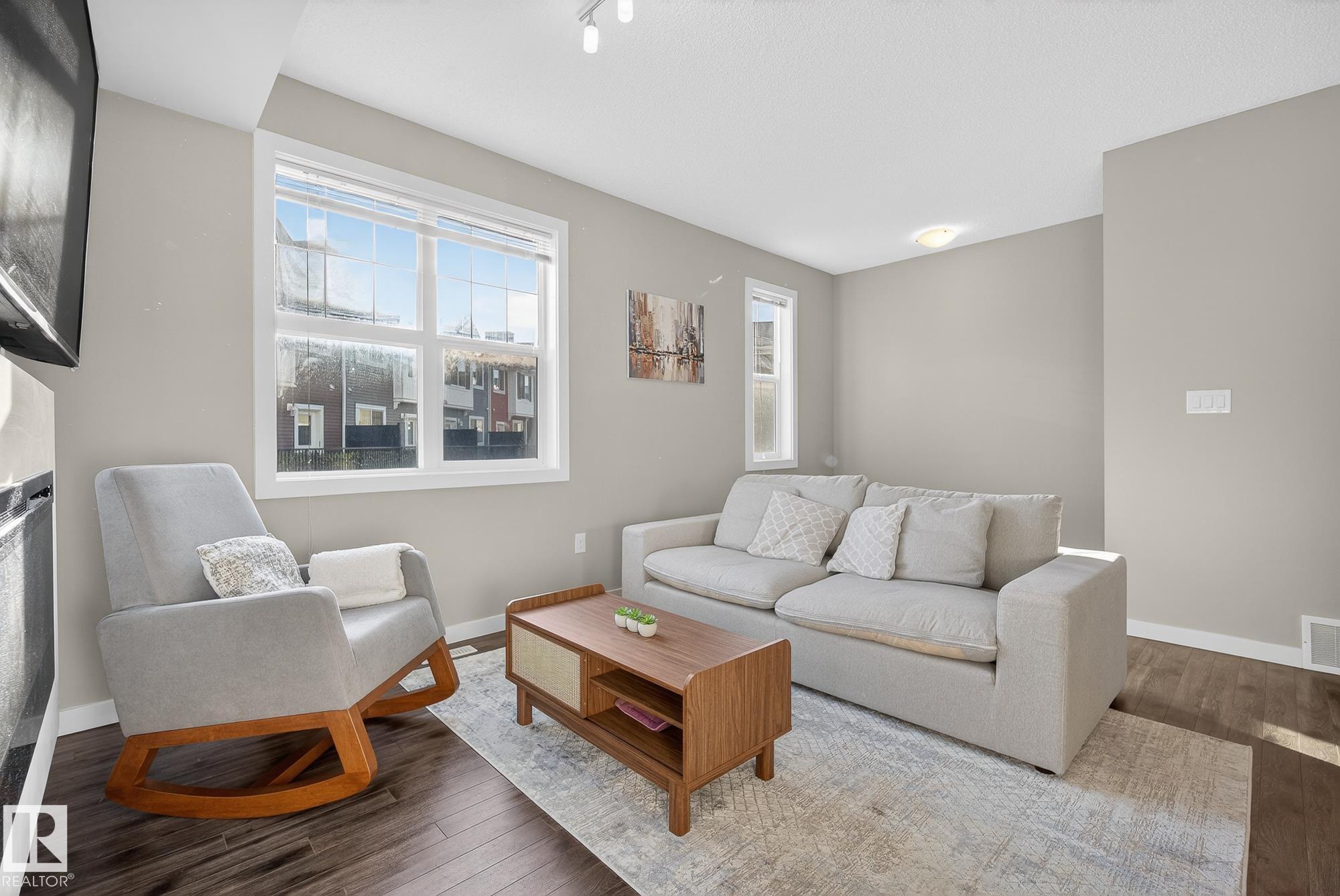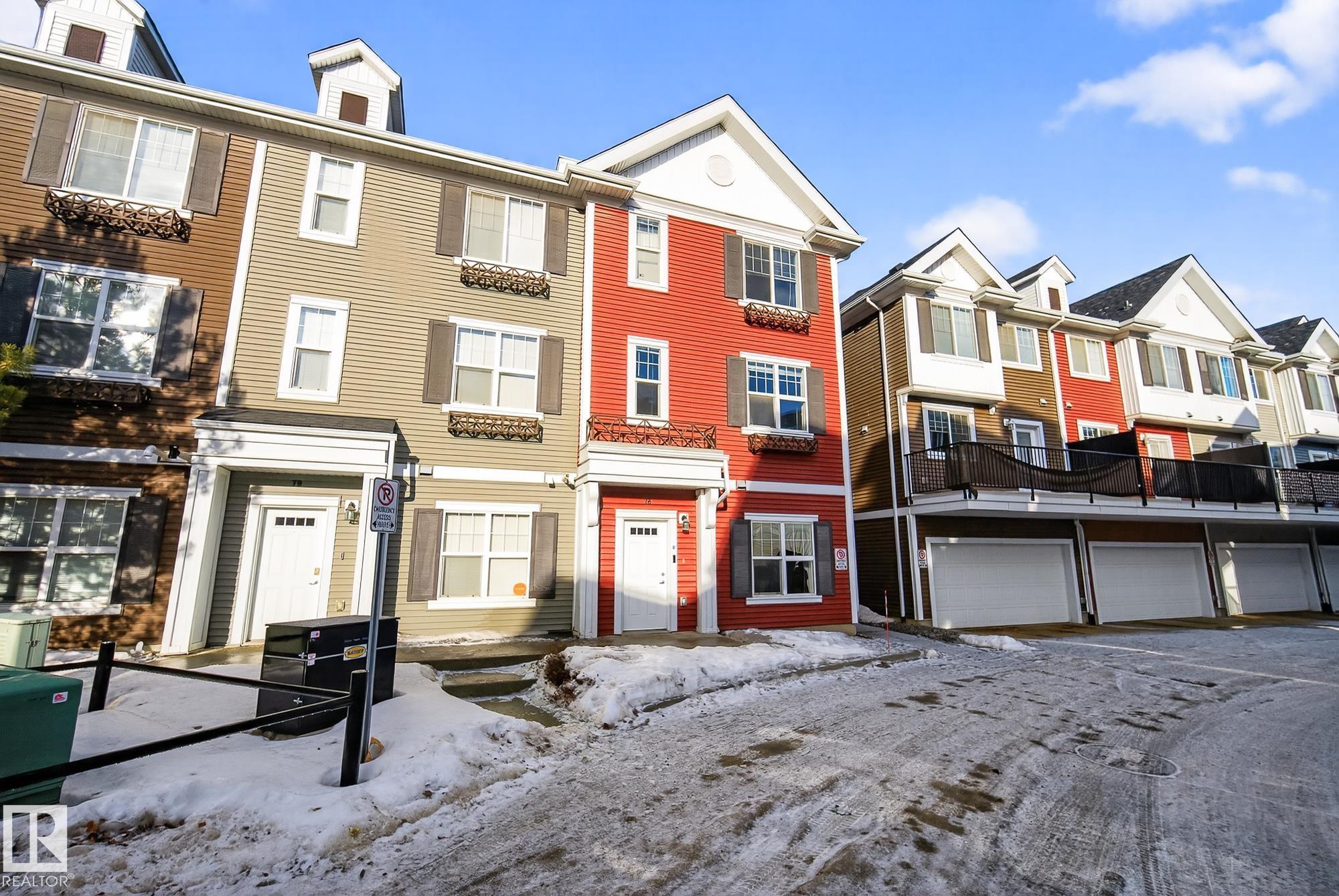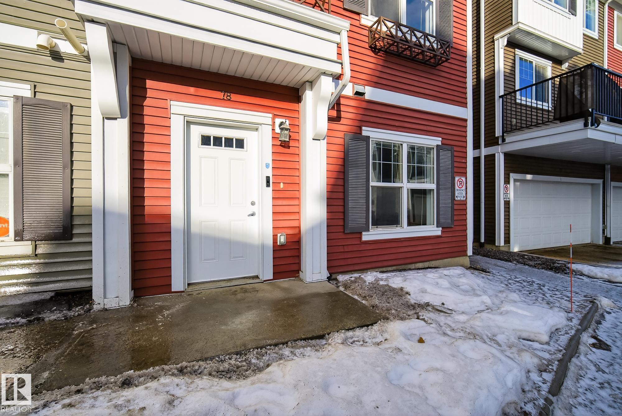 Welcome to #78 in the Atria END UNIT Townhouse Complex on James Mowatt Trail in Southwest Edmonton. This bright 3-bedroom, 2.5-bath home features large picture windows that fill the space with natural light. Main floor offers 9" open concept with a beautiful kitchen with quartz countertops, upgraded appliances, ample cabinetry, pantry, and plenty of counter space. The spacious dining area is perfect for entertaining and flows into the comfortable living room. Upstairs you?ll find a generous primary suite with a 3-piece ensuite and dual closets, two additional well-sized bedrooms, a 4-piece bath, and convenient upper-floor laundry. The lower level provides flexible space for a home office, gym, or rec room. Enjoy the double attached garage with room for two larger vehicles. Well-managed complex with low condo fees?welcome home! Conveniently located near parks, schools, shopping, and commuter routes, this home offers comfort, style, and convenience in a sought-after community.