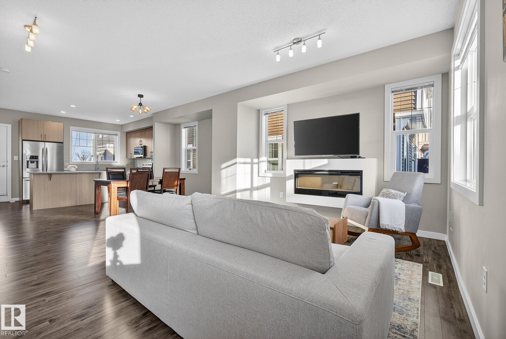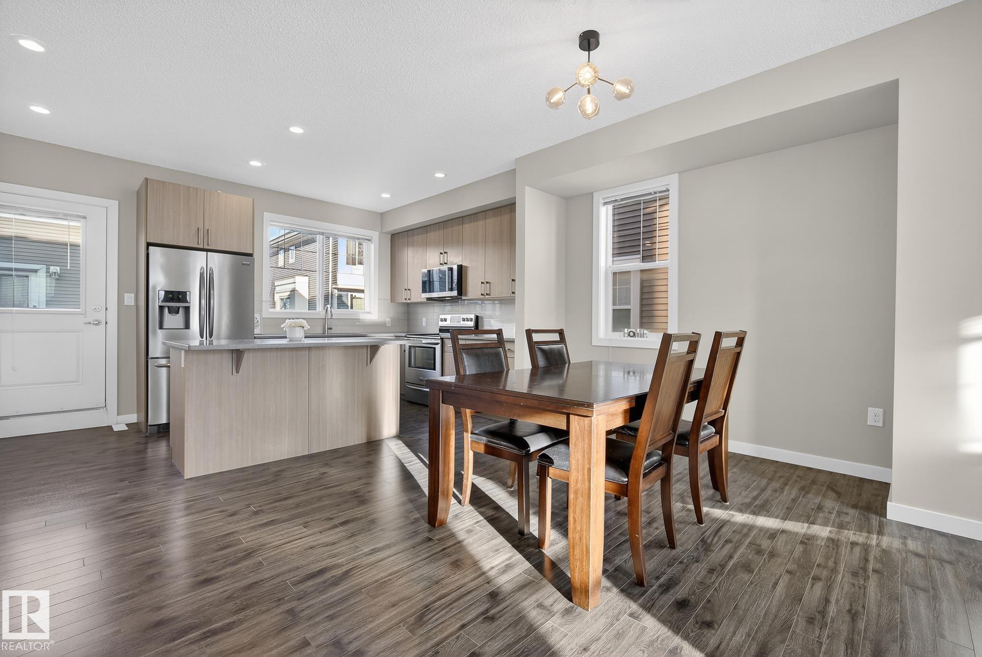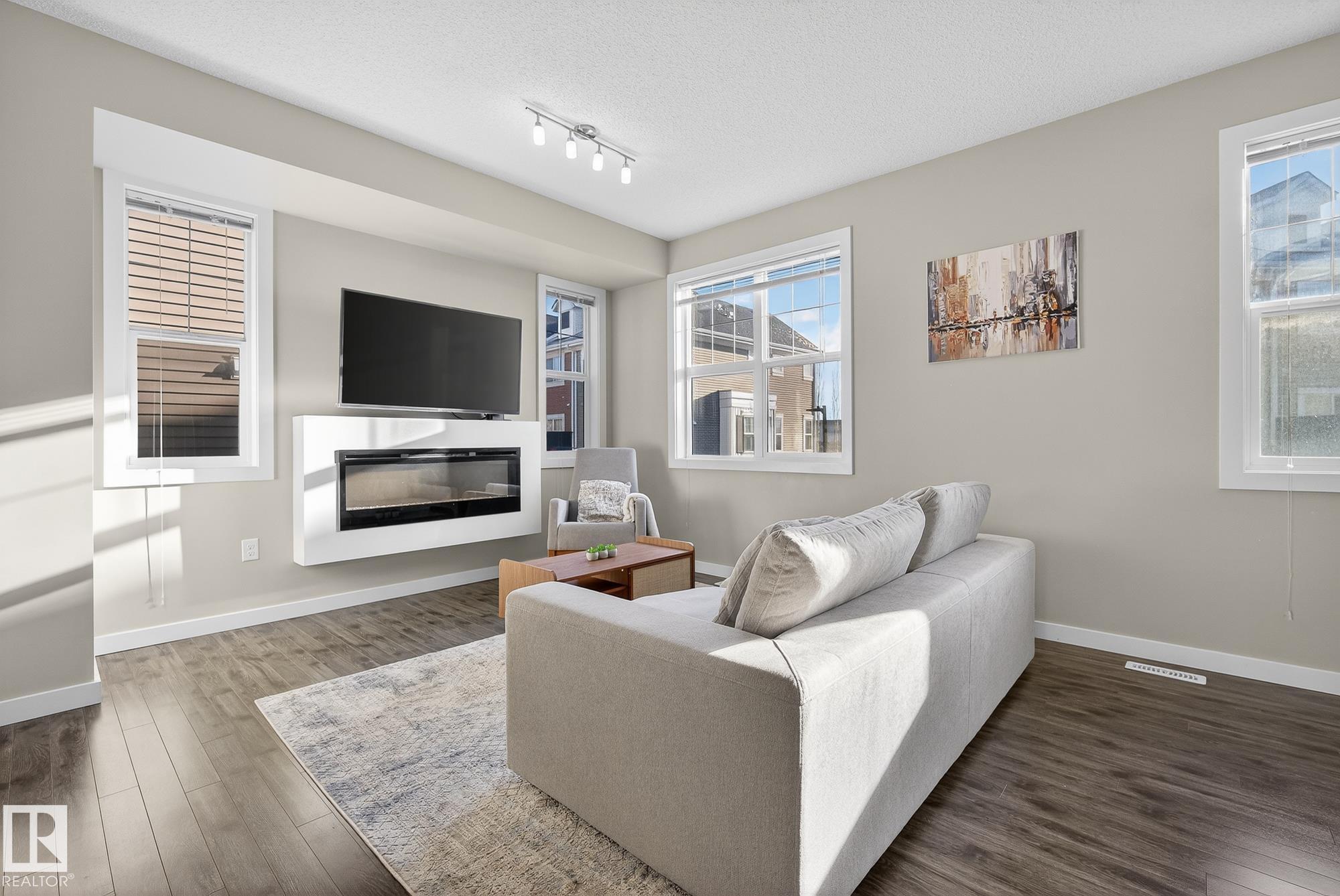 Welcome to #78 in the Atria END UNIT Townhouse Complex on James Mowatt Trail in Southwest Edmonton. This bright 3-bedroom, 2.5-bath home features large picture windows that fill the space with natural light. Main floor offers 9" open concept with a beautiful kitchen with quartz countertops, upgraded appliances, ample cabinetry, pantry, and plenty of counter space. The spacious dining area is perfect for entertaining and flows into the comfortable living room. Upstairs you?ll find a generous primary suite with a 3-piece ensuite and dual closets, two additional well-sized bedrooms, a 4-piece bath, and convenient upper-floor laundry. The lower level provides flexible space for a home office, gym, or rec room. Enjoy the double attached garage with room for two larger vehicles. Well-managed complex with low condo fees?welcome home! Conveniently located near parks, schools, shopping, and commuter routes, this home offers comfort, style, and convenience in a sought-after community.
