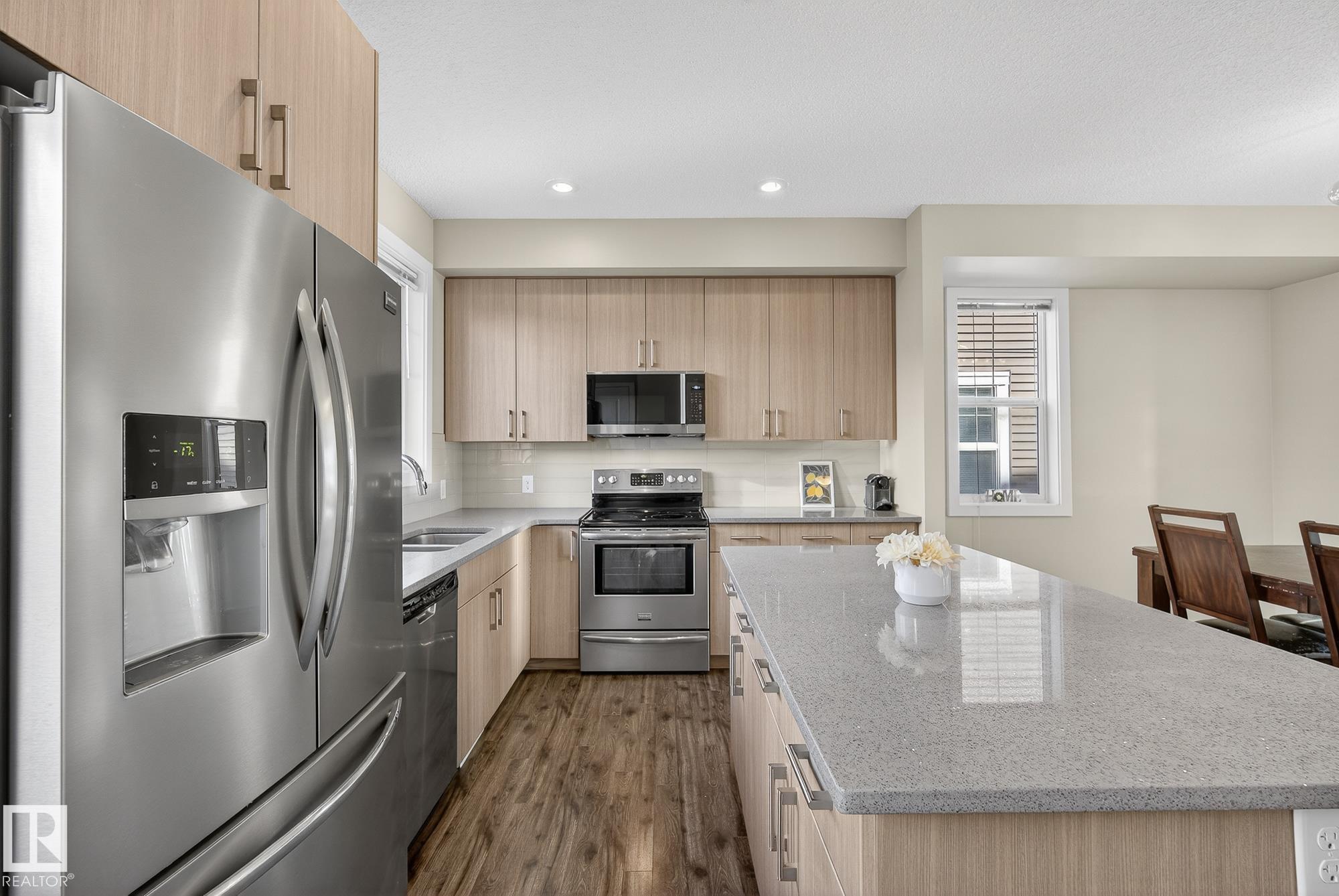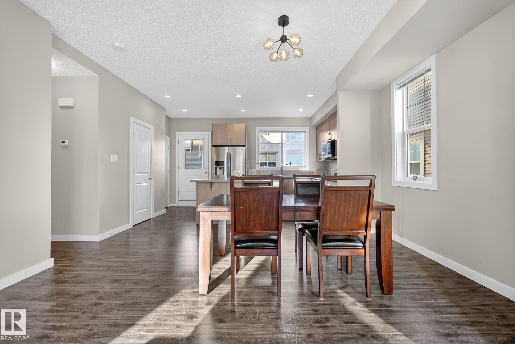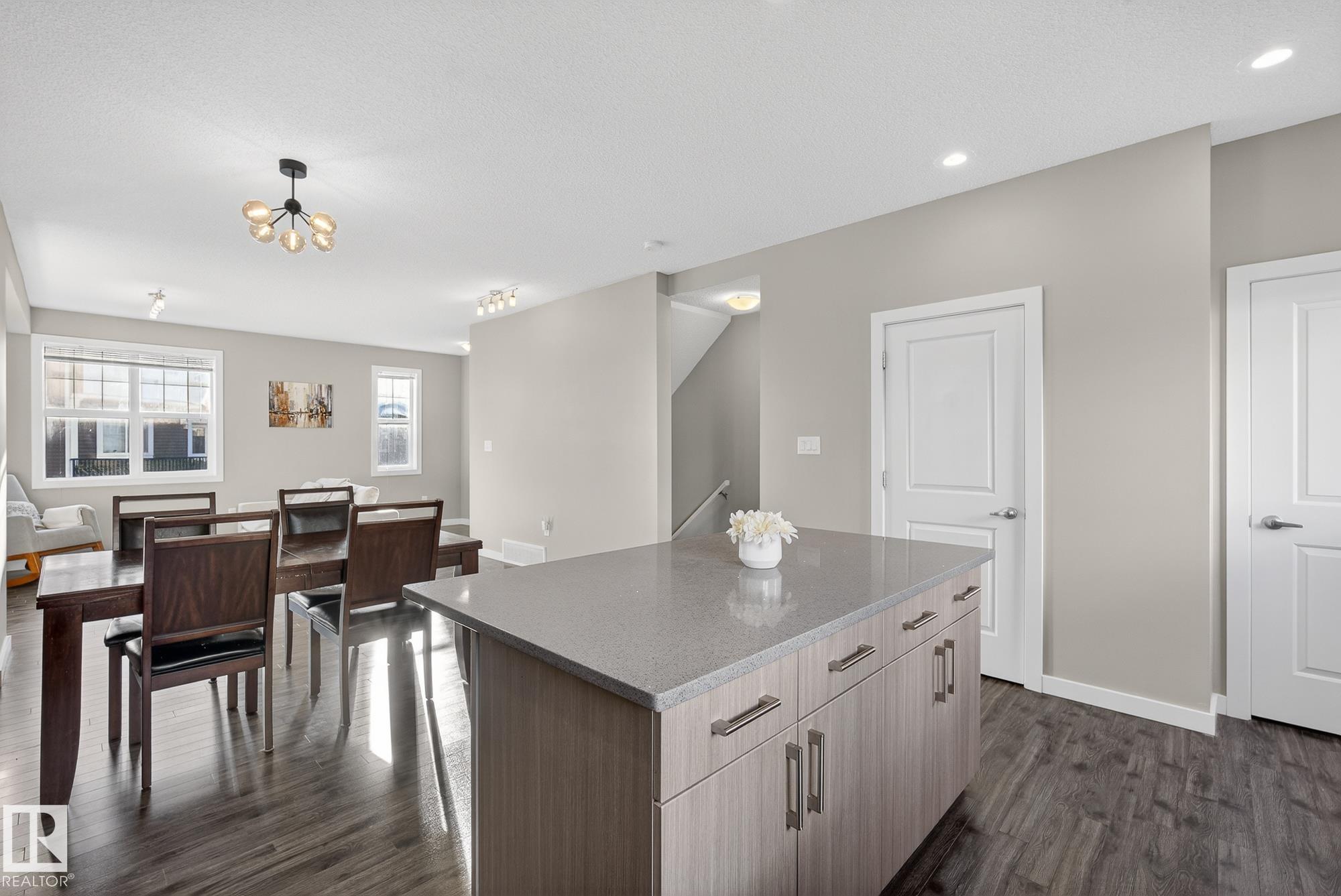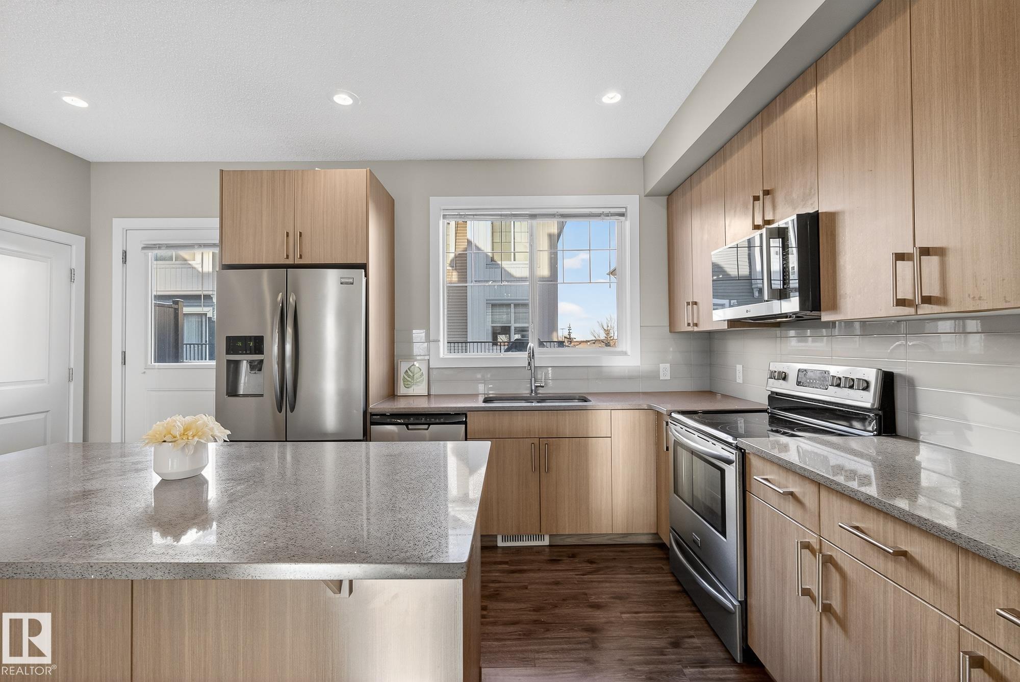 Welcome to #78 in the Atria END UNIT Townhouse Complex on James Mowatt Trail in Southwest Edmonton. This bright 3-bedroom, 2.5-bath home features large picture windows that fill the space with natural light. Main floor offers 9" open concept with a beautiful kitchen with quartz countertops, upgraded appliances, ample cabinetry, pantry, and plenty of counter space. The spacious dining area is perfect for entertaining and flows into the comfortable living room. Upstairs you?ll find a generous primary suite with a 3-piece ensuite and dual closets, two additional well-sized bedrooms, a 4-piece bath, and convenient upper-floor laundry. The lower level provides flexible space for a home office, gym, or rec room. Enjoy the double attached garage with room for two larger vehicles. Well-managed complex with low condo fees?welcome home! Conveniently located near parks, schools, shopping, and commuter routes, this home offers comfort, style, and convenience in a sought-after community.