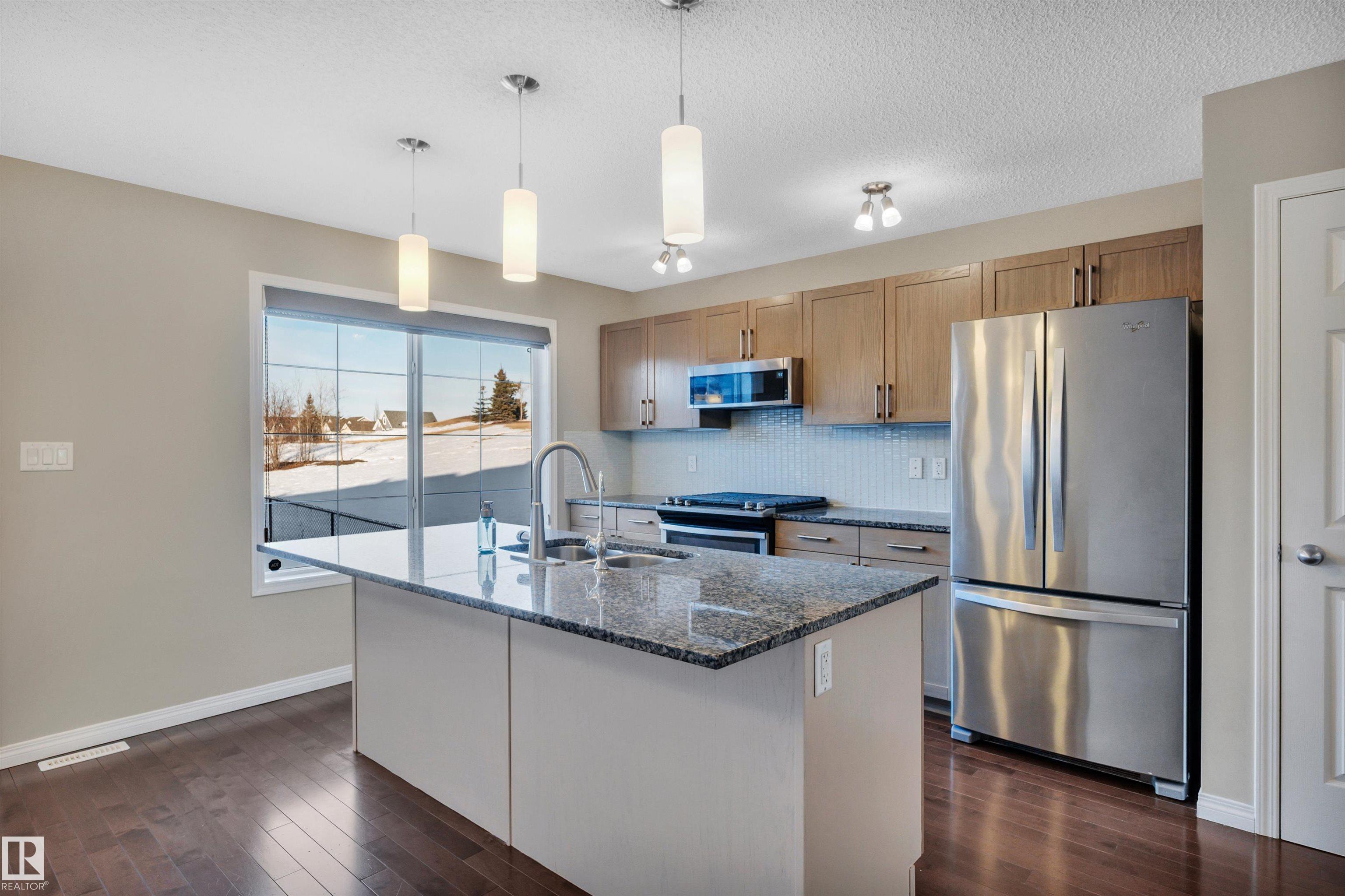 Perfect two-storey half duplex, siding to a beautiful park in Lake Summerside. This open concept home is spacious, plenty of natural light, 3 bedrooms and 3&1/2 baths and fully finished basement. Main floor has the perfect kitchen for entertaining with stainless steel appliances, and a gas stove, large living room with a warming electric fire place, hard wood flooring, half bath and a good size dining area. Upstairs features a bonus room, master bedroom with ensuite, two more bedrooms and full bathroom and laundry. Fully finished basement with open recreational room with a full bath. The back yard includes a deck with gas connection for barbq. Front single attached garage can fit a large vehicle. Enjoy lake lifestyle with sandy beach access, boating, fishing, tennis and so much more. Walking paths throughout community, close to all amenities and great schools.