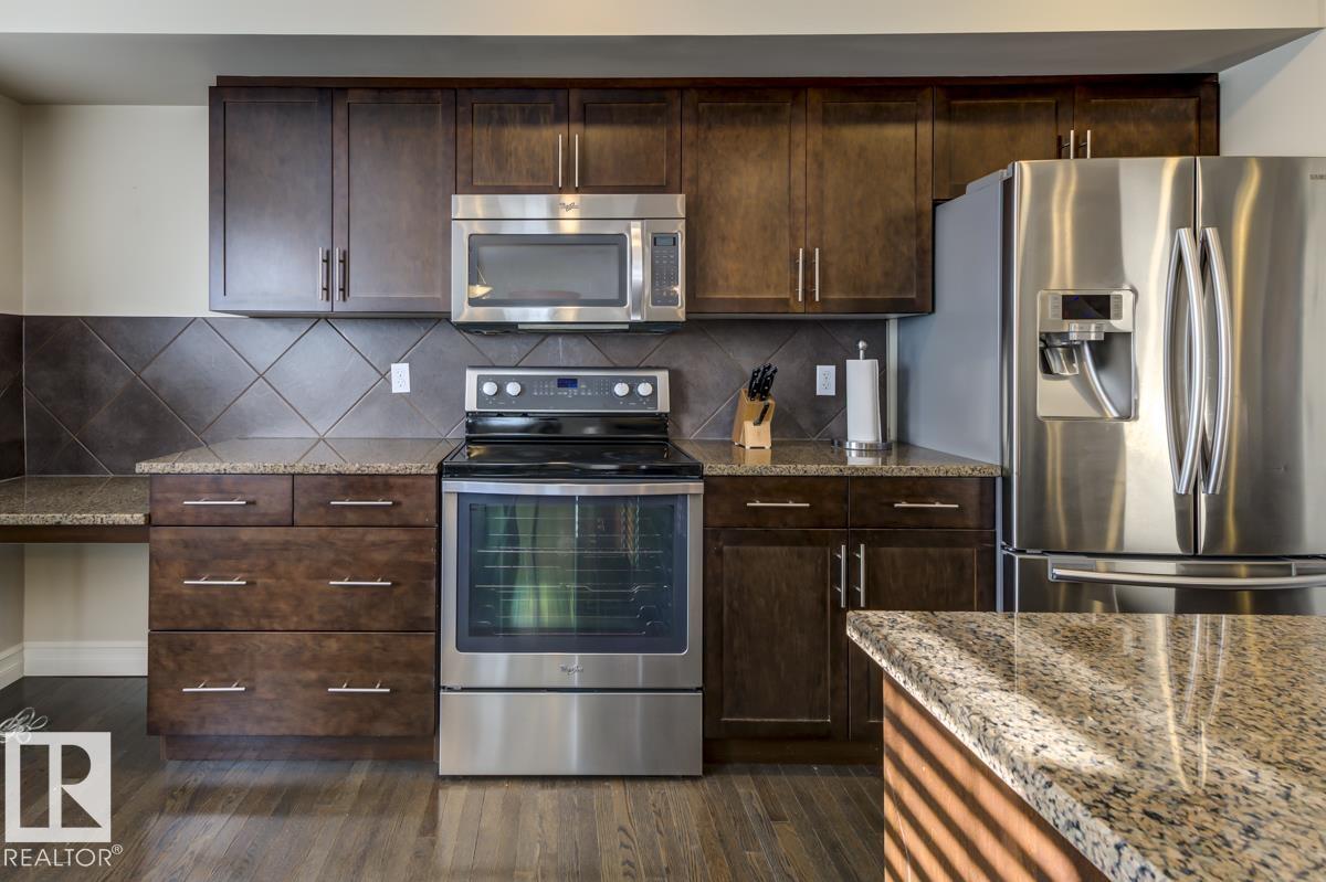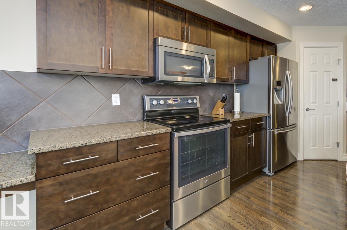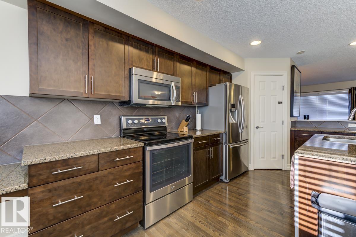 Welcome HOME! This spacious 3 bed 2.5 bath home in desirable Emerald Hills SHPK is one of the LARGEST floor plans in the complex and is in pristine condition! As you enter the main floor notice the gorgeous open concept layout & high-end quality finishings, hardwood floors, upgraded kitchen, stainless steel appliances, granite counters, large island, walk-in pantry, main floor laundry, and office nook! The living room is huge and features an oversized balcony to enjoy the fresh air and green space views as it faces the community garden & play areas. The upper level holds three great-sized bedrooms and the owner?s suite has a 3pc ensuite with large walk-in shower & an oversized closet. Other features include an OVERSIZED double attached garage WITH man door(there are only two like this in the complex!)easily fitting two vehicles + two motorbikes or storage. Do not miss the tankless hot water system. This well-maintained complex offers visitor parking and is close to all amenities! What are you waiting for?