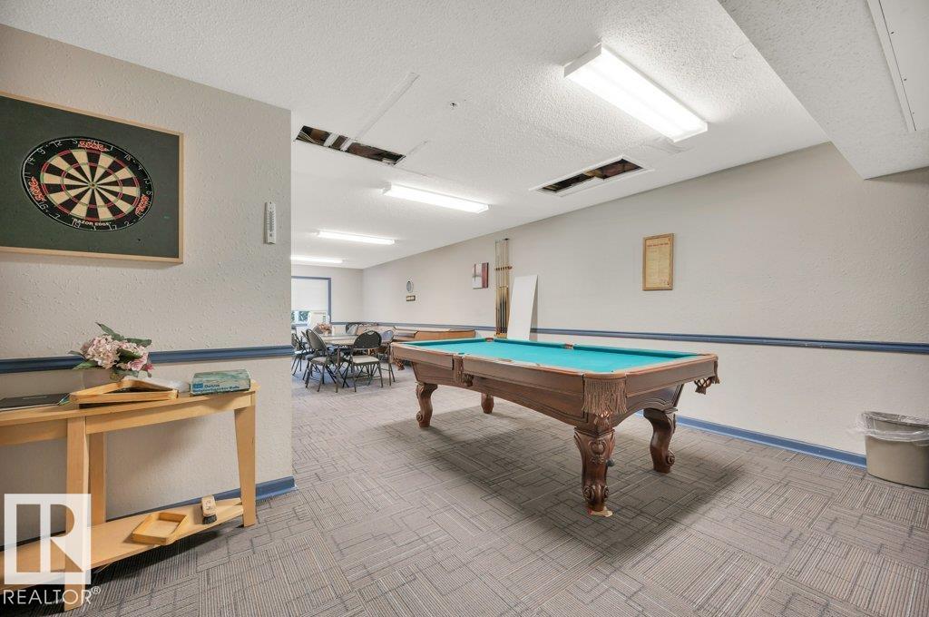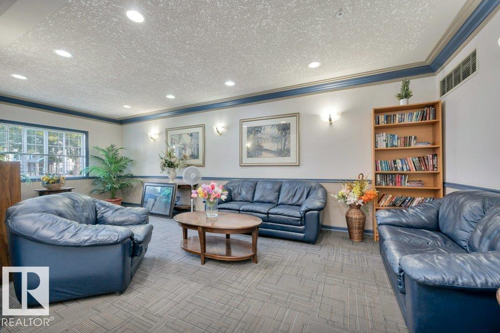 Welcome to the well-maintained Promenade Eaux Claires! Experience SPACIOUS condo living! This expansive, 2 Bedrm, 2 Full Bath, 3rd floor unit is one of the largest in the building with a UNIQUE, OPEN-CONCEPT floor plan. Entertaining is made easy as the Kitchen w/ brand new SS Appliances, ample cupboard space, center island w/ storage opens to the Dining & Main Living Area, complimented by the corner gas fireplace. From the living area, step out & enjoy the balcony equipped w/ natural gas BBQ line. The generous Primary Bedrm invites a king size bed, has a walk-thru closet to the 3pc Ensuite. Large Second Bedrm boasts a walk-in closet & is adjacent to the 4 pc Main Bath. The unit has been freshly painted thru-out, even the ceilings! In-Suite Laundry is a luxury w/ stacked washer/dryer. Central A/C. Heated Undergrd, Titled, Tandem Parking Stalls w/ Storage Cage. This secure building offers good Visitor Parking, Fitness Room, Games Lounge, Guest Suite, & cozy Lobby! Close to amenities! 5 min to The Henday!