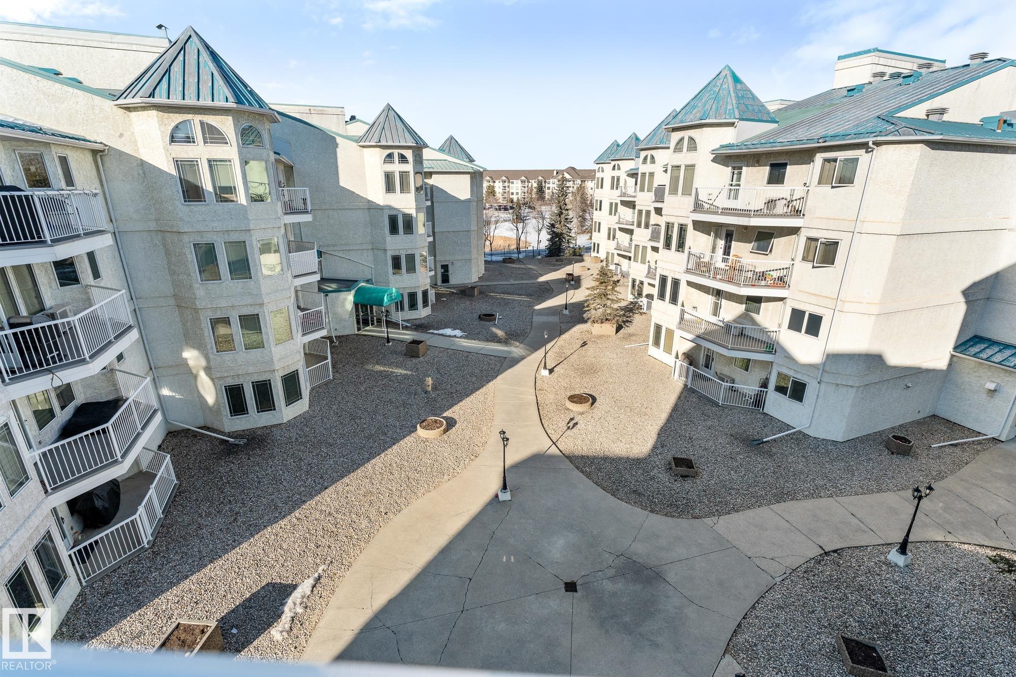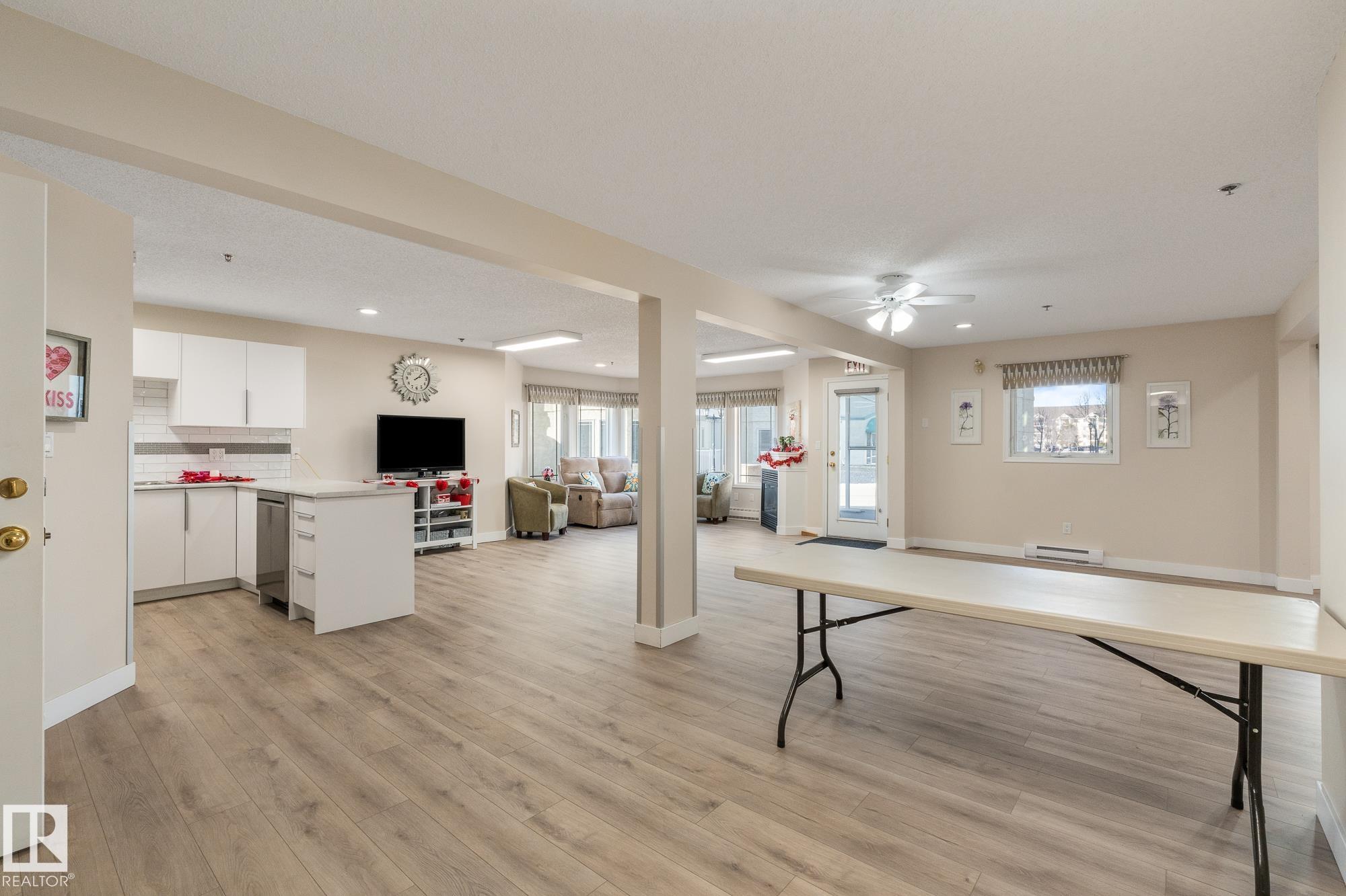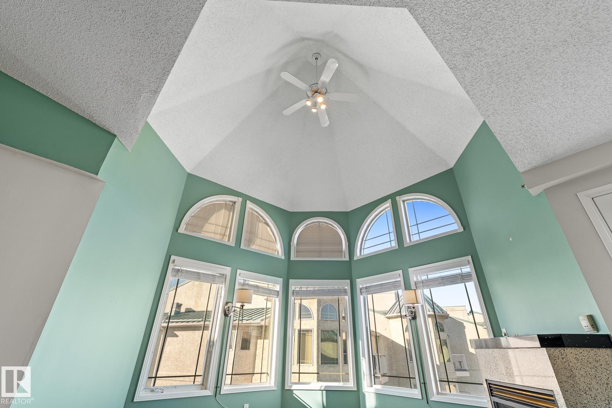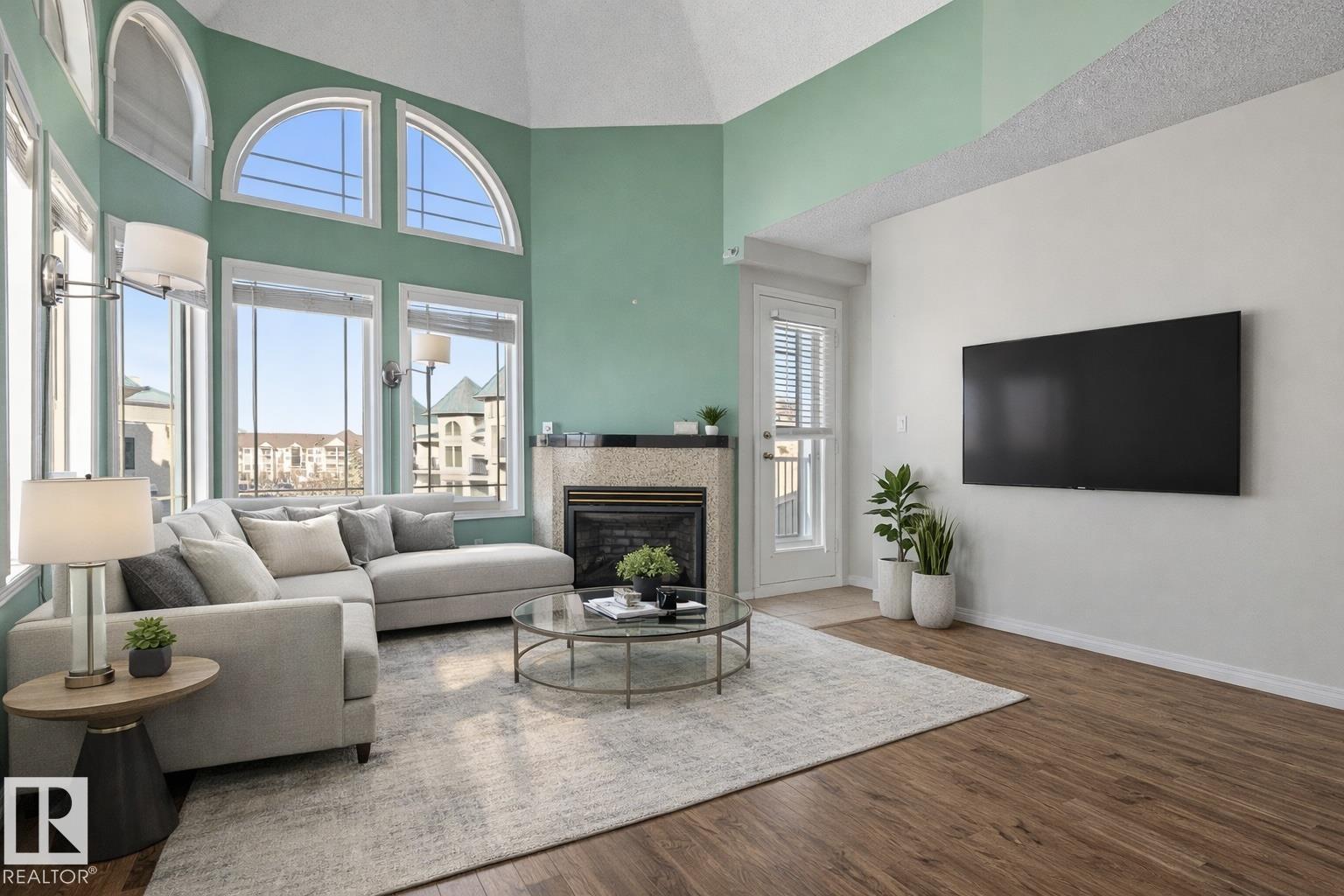 Located in the heart of Mill Woods Town Centre, this top-floor condo offers exceptional space and a strong sense of community in a well-managed adult-only building. This unique 1,134 sqft unit features a turret-style design with soaring vaulted ceilings and a wall of windows that flood the space with natural light. Originally designed as a three-bedroom layout, it was reconfigured at construction into a spacious two-bedroom, one-bathroom home with accessibility in mind. The home includes an updated kitchen and bathroom, a gas fireplace, and a private patio overlooking a beautifully maintained courtyard. Additional conveniences include heated underground parking with storage, plus access to a car wash bay. Building amenities include a social room, workshop, and regular community activities. Ideally located near shopping, transit, walking paths, a nearby lake, and the Grey Nuns Hospital, this home offers comfortable, convenient adult living in an established neighbourhood *some photos are virtually staged*