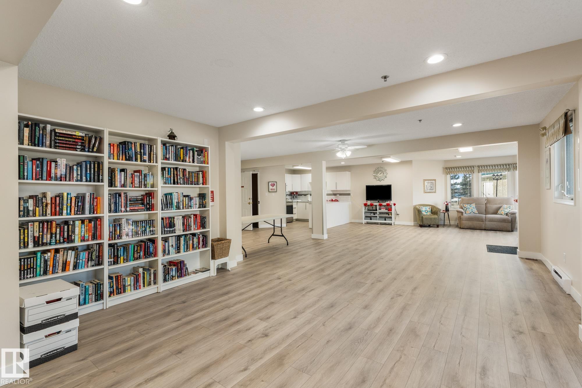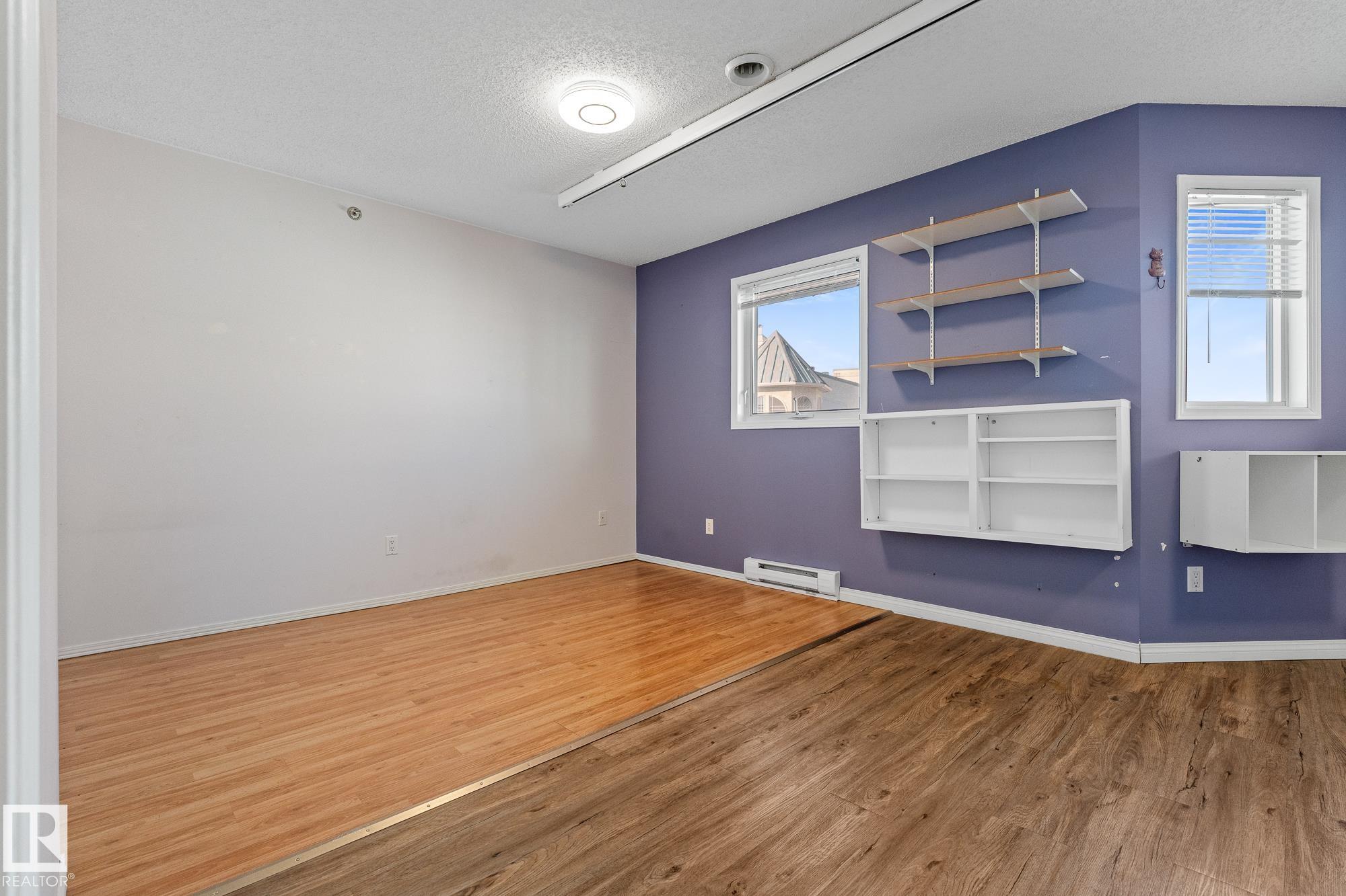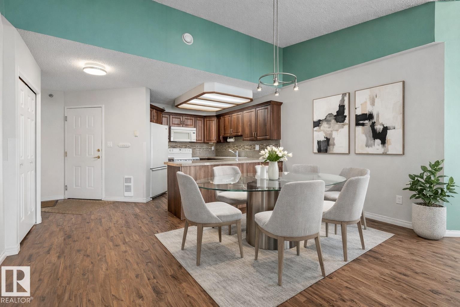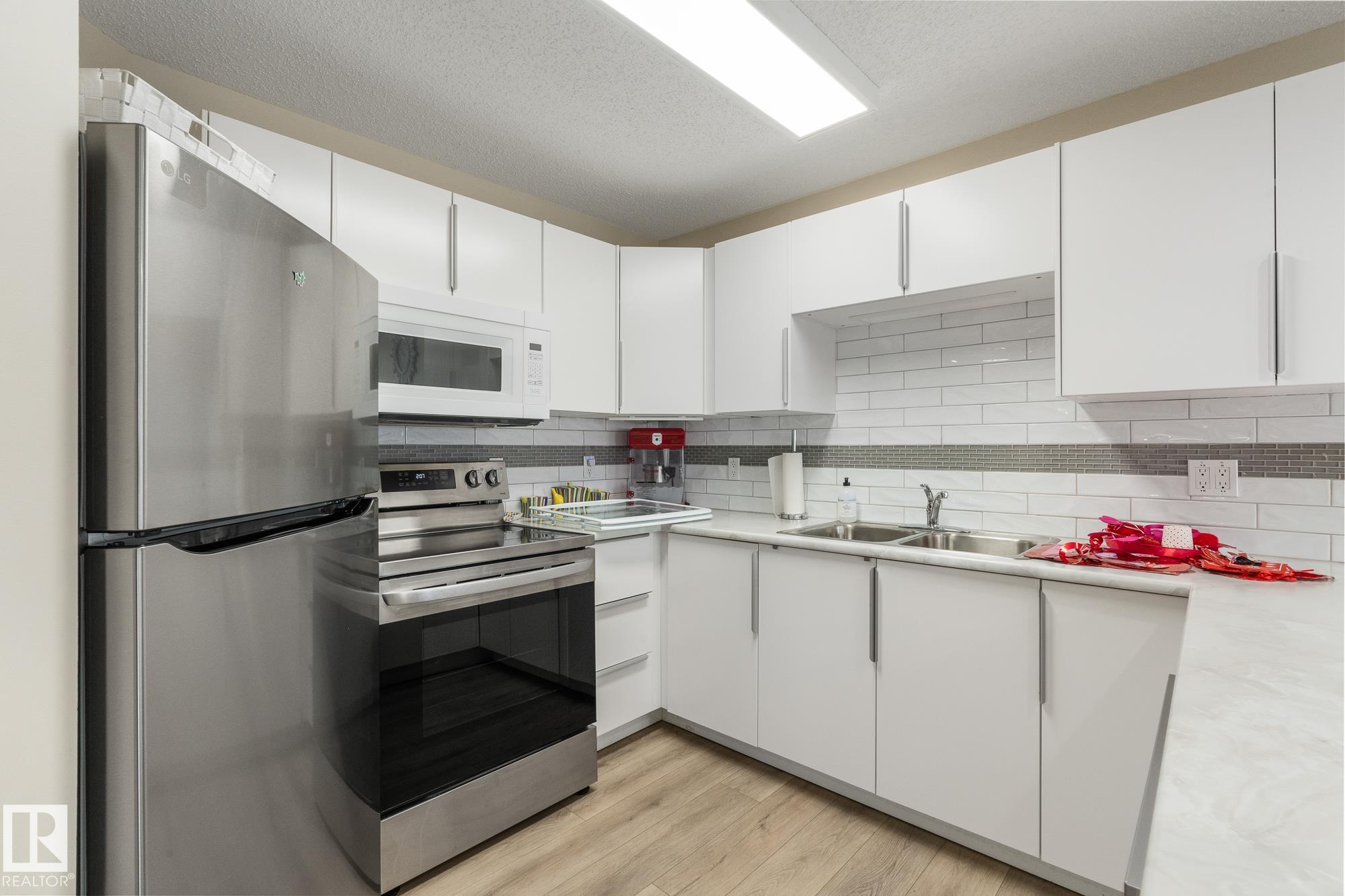 Located in the heart of Mill Woods Town Centre, this top-floor condo offers exceptional space and a strong sense of community in a well-managed adult-only building. This unique 1,134 sqft unit features a turret-style design with soaring vaulted ceilings and a wall of windows that flood the space with natural light. Originally designed as a three-bedroom layout, it was reconfigured at construction into a spacious two-bedroom, one-bathroom home with accessibility in mind. The home includes an updated kitchen and bathroom, a gas fireplace, and a private patio overlooking a beautifully maintained courtyard. Additional conveniences include heated underground parking with storage, plus access to a car wash bay. Building amenities include a social room, workshop, and regular community activities. Ideally located near shopping, transit, walking paths, a nearby lake, and the Grey Nuns Hospital, this home offers comfortable, convenient adult living in an established neighbourhood *some photos are virtually staged*