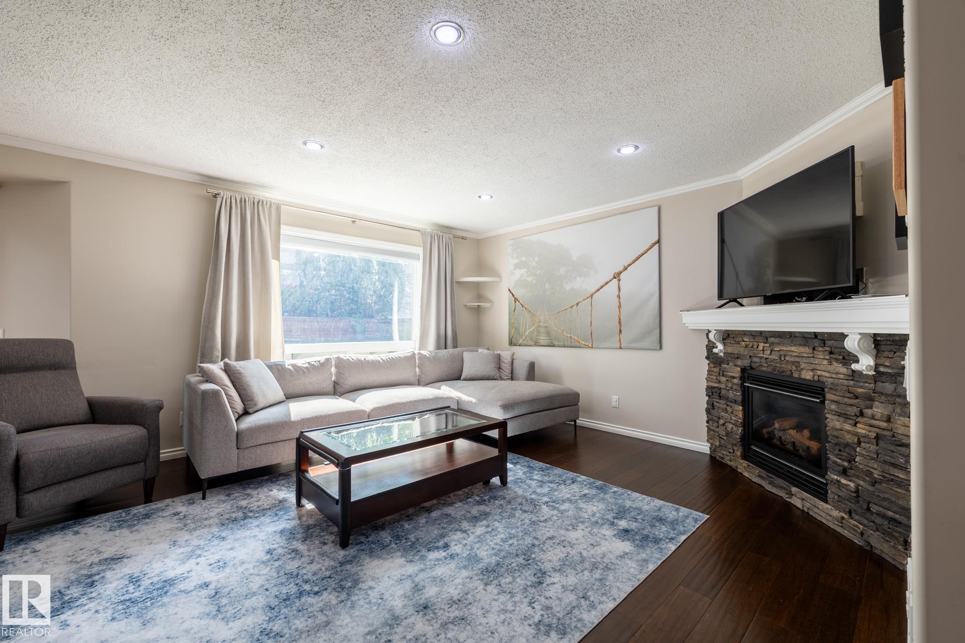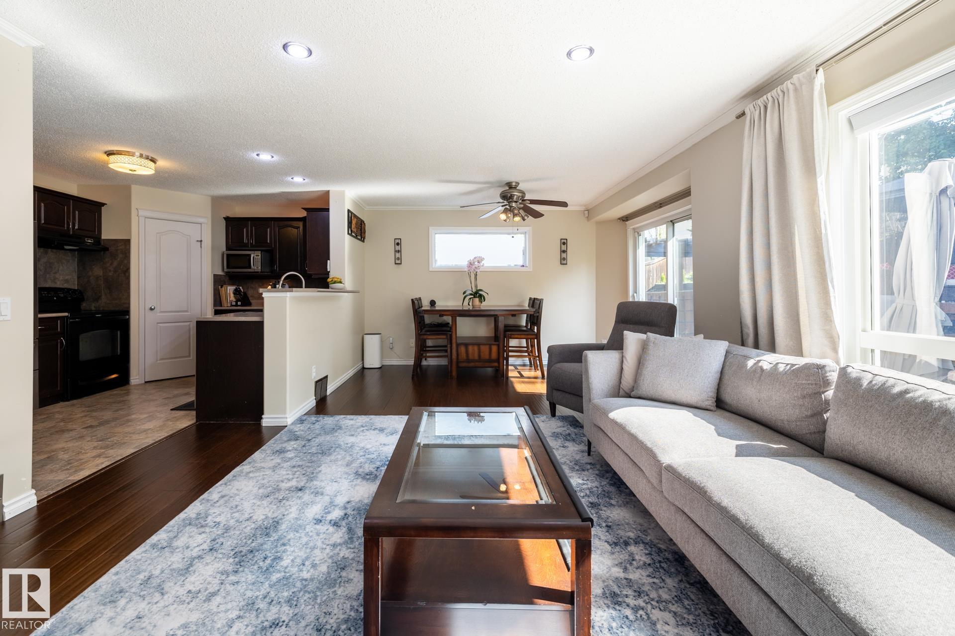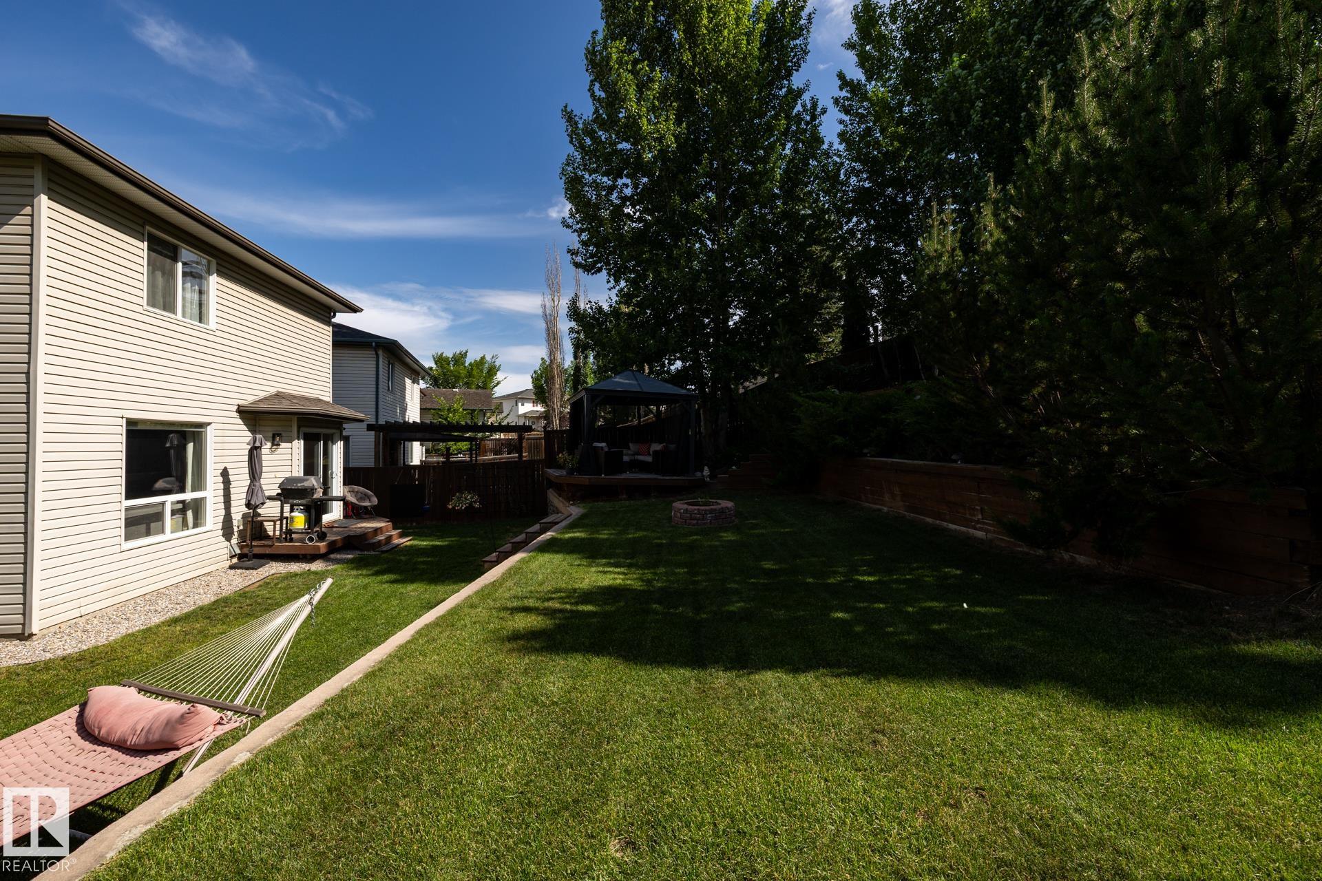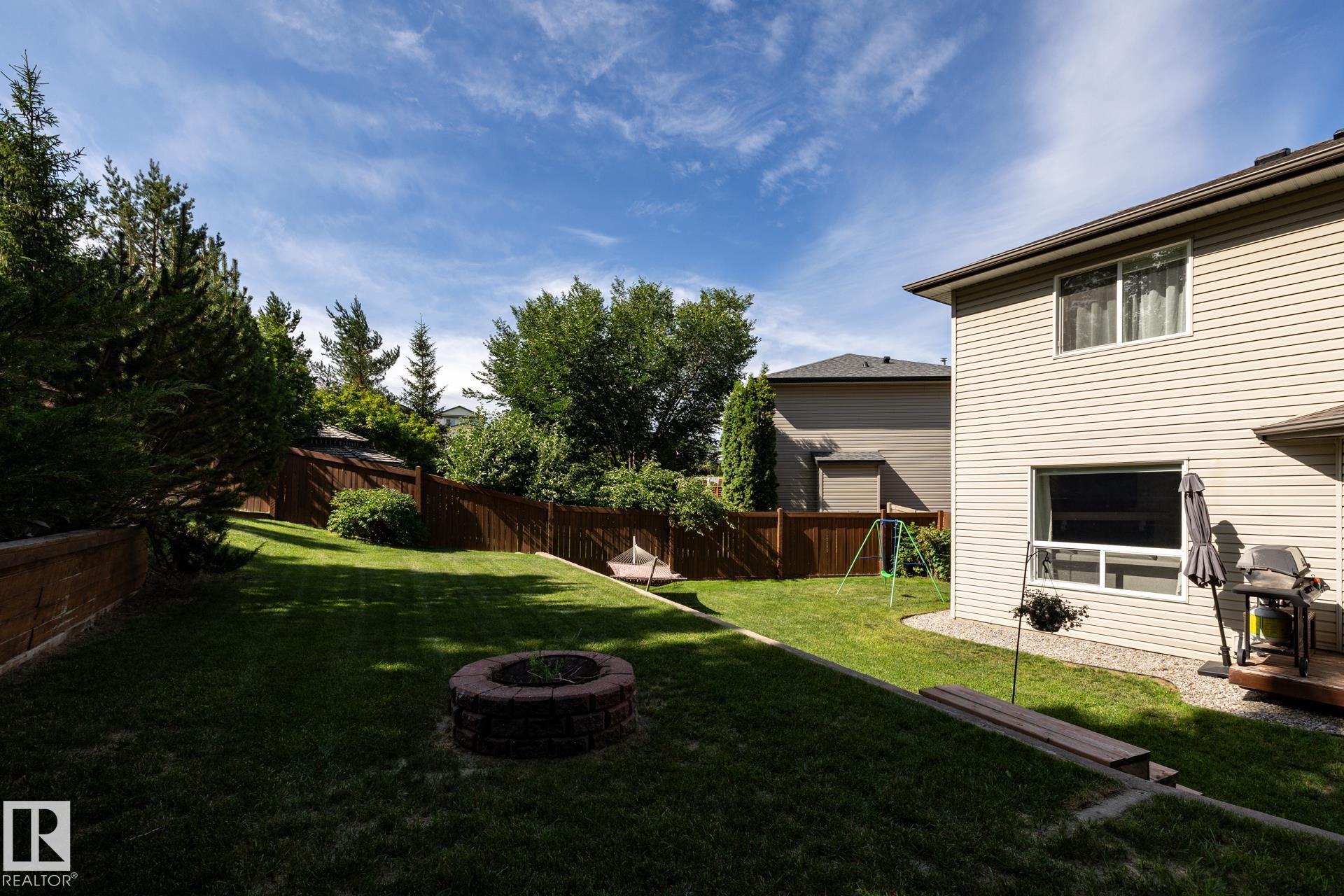 Welcome to this beautiful 2 storey home in Canon Ridge. Featuring 3 bedrooms, 2.5 baths, a FULLY FINISHED basement and so much more. The main level offers an open design which overlooks the MASSIVE back yard. You're going to love the kitchen with NEWER STAINLESS STEEL appliances & mocha cabinets. The adjoining living room is cozy with a stone facing gas f/p, which overlooks the east facing yard. The basement is FULLY FINISHED & offers a great space for the kids as well as storage options. Other features and upgrades include, NEW SHINGLES (2025) NEW FURNACE (2022) NEW AC (2022) NEW WASHER/DRYER (2022). This wonderful family home is only a short walk to Hermitage Park and offers all of the conveniences, including schools, shopping, bus stop, and quick access to the Yellowhead & the Henday. Welcome home!