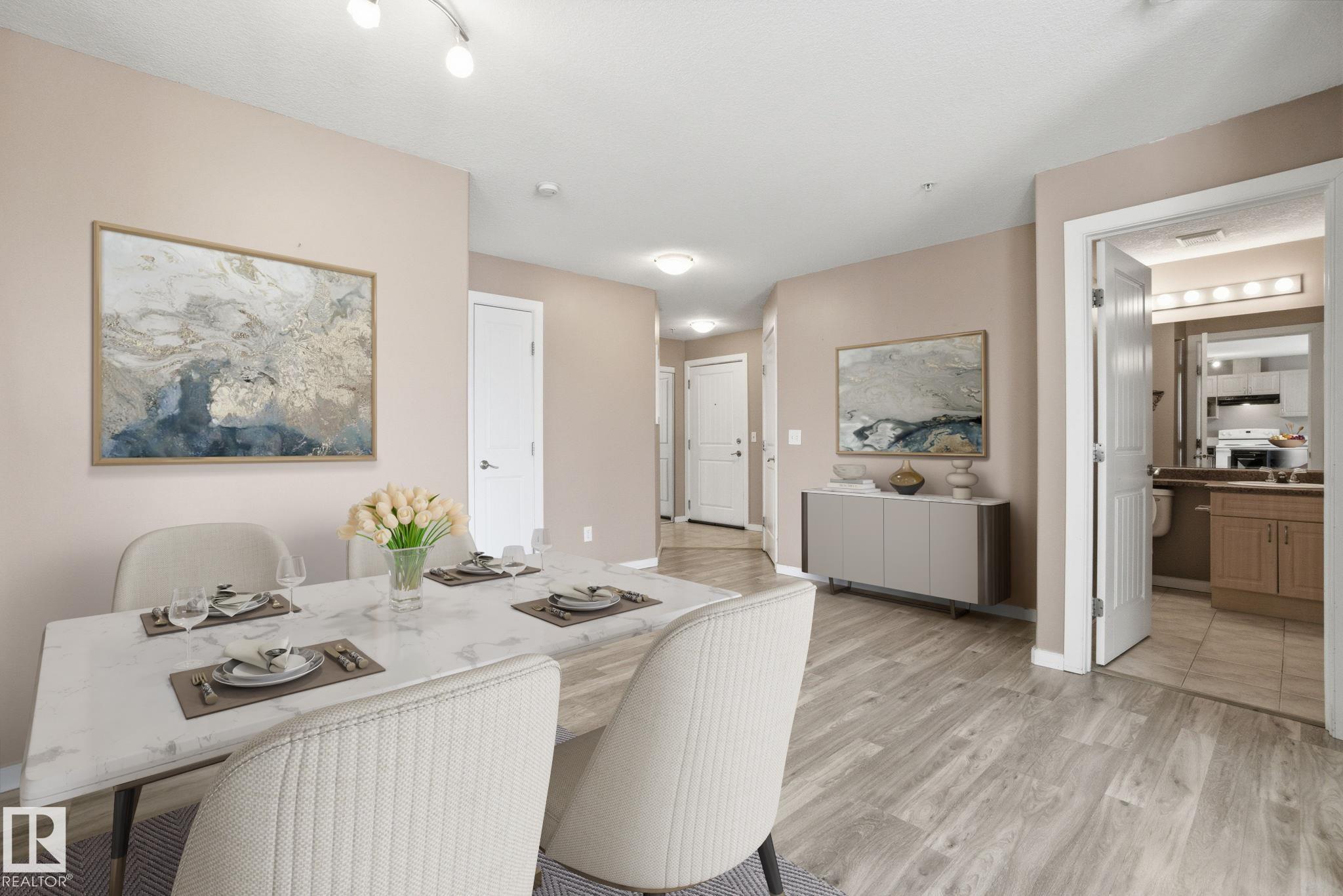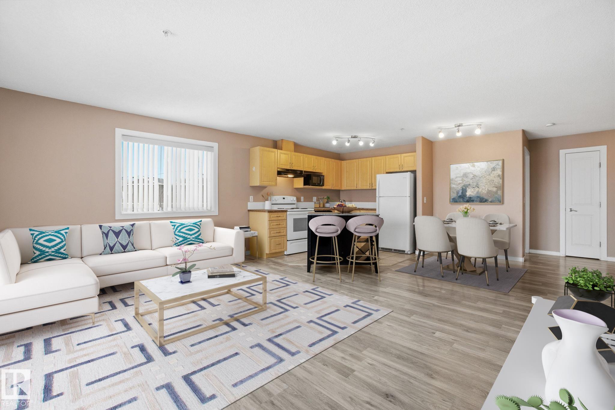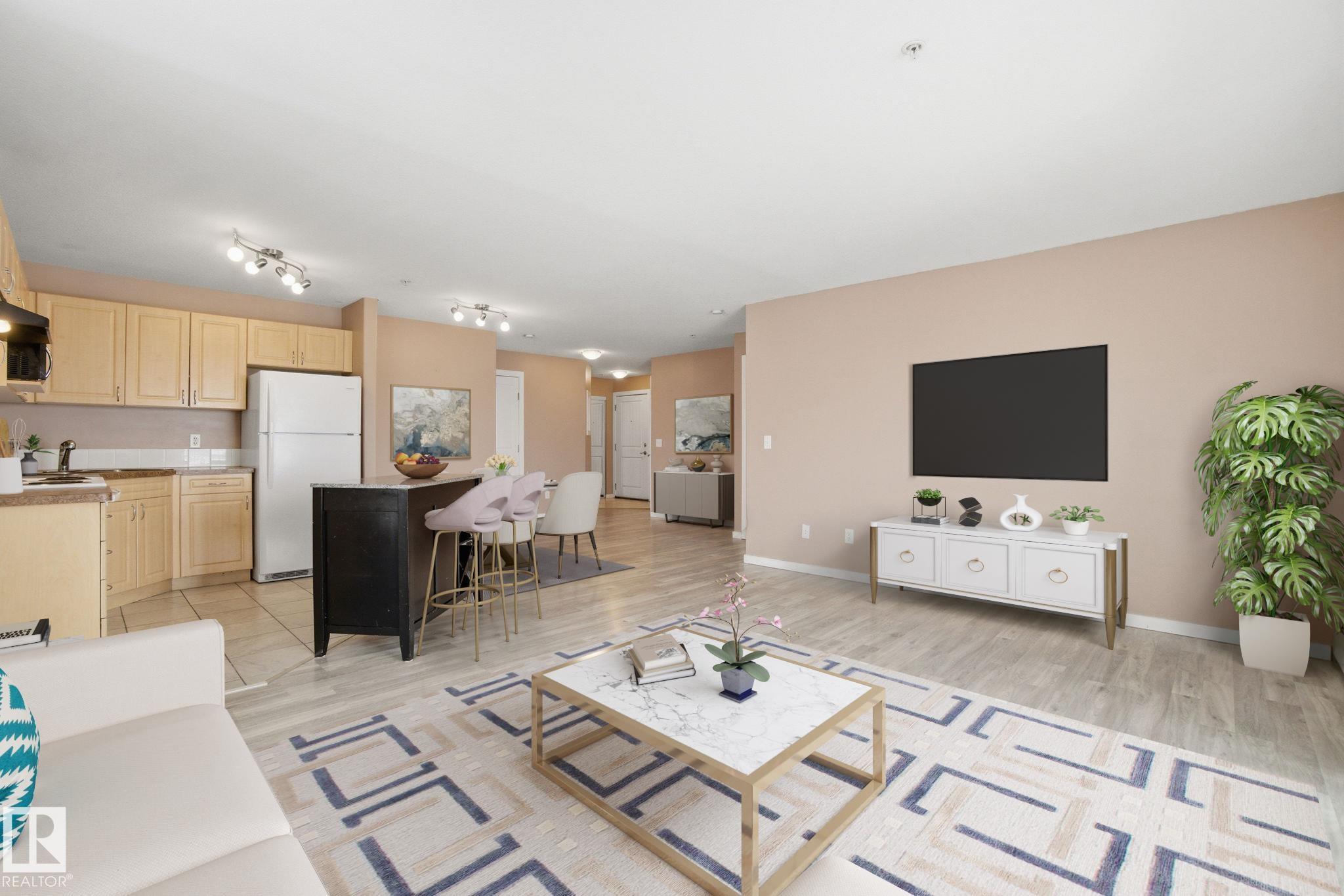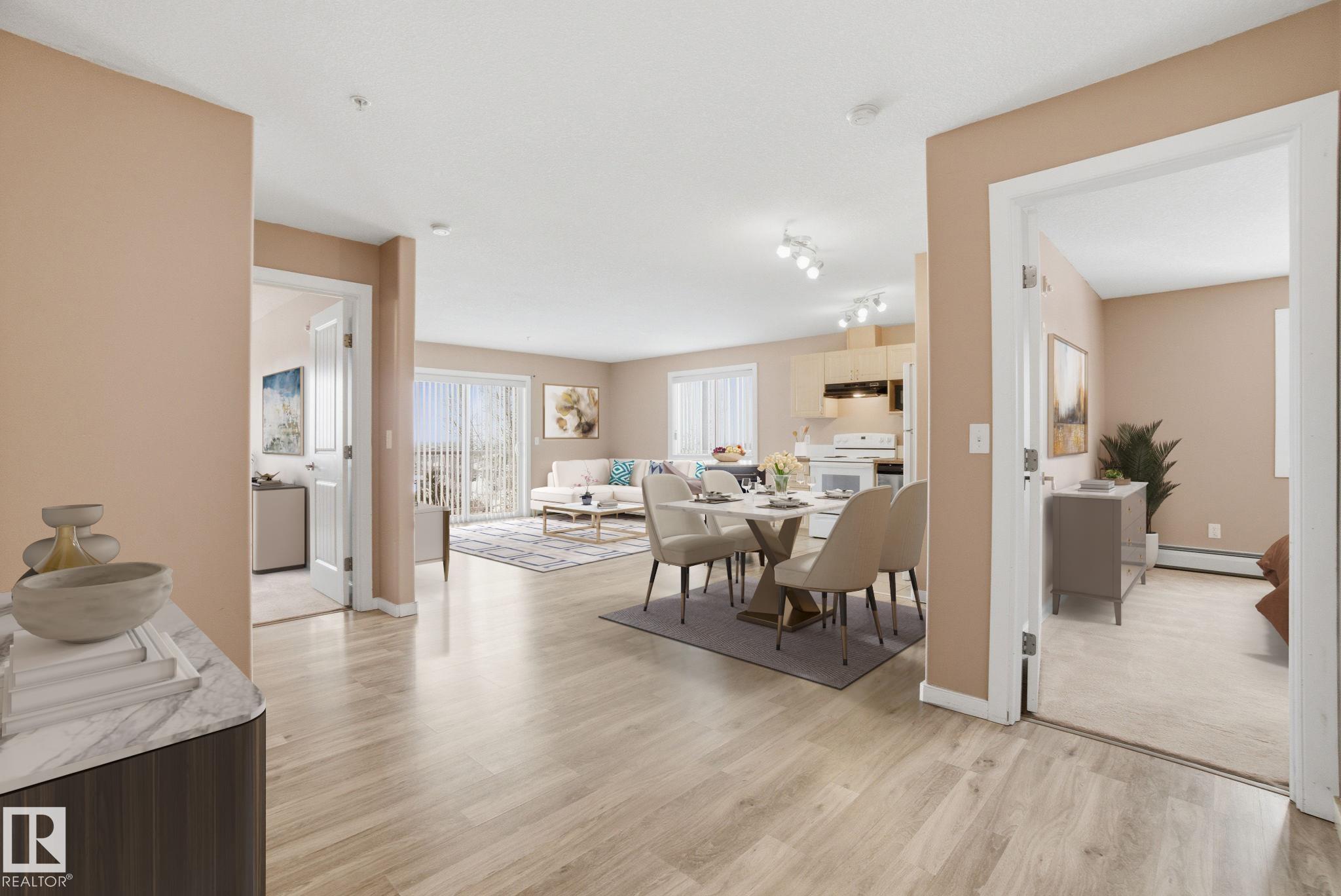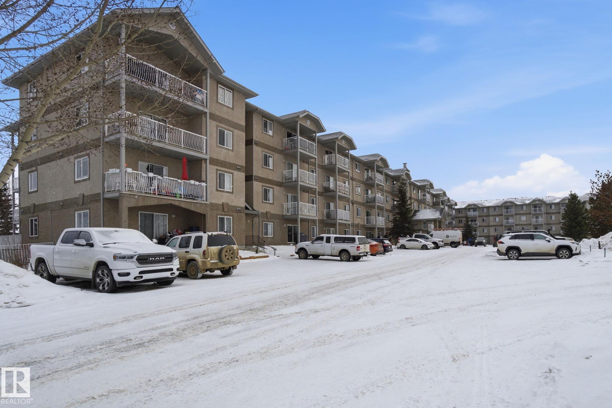 Stop renting and get into home ownership in one of the nicest condo units in Spruce Grove. This 3rd floor unit features 2 bedrooms and 2 bathrooms. Large entry as you walk in the door, space for everyone to get off coats and shoes. Open floorplan. Very functional kitchen with good storage and even comes with movable island! Great dining area can fit all shapes & sizes of table. Big living room has tons of natural light with both west & north facing windows. Master bedroom has tons of room for furniture! Walk through closet & 4pc ensuite! 2nd bedroom is great for a roommate, guests, kids or work from home! 2nd Full bathroom too. INSUITE LAUNDRY with extra storage too. Underground parking to keep the car warm all winter! Great location with views all the way to the west to watch the sunset. Super close to Tri Liesure Centre, transit, shopping!!! This one is a must see!!! some photos are virtually staged