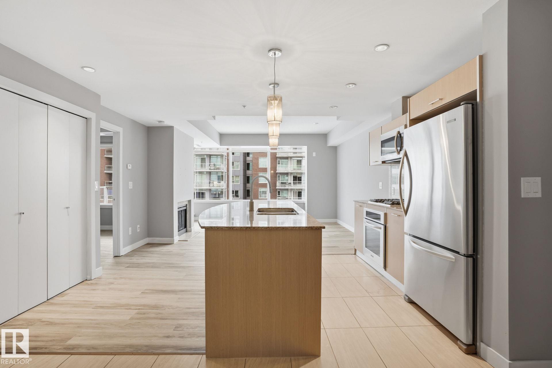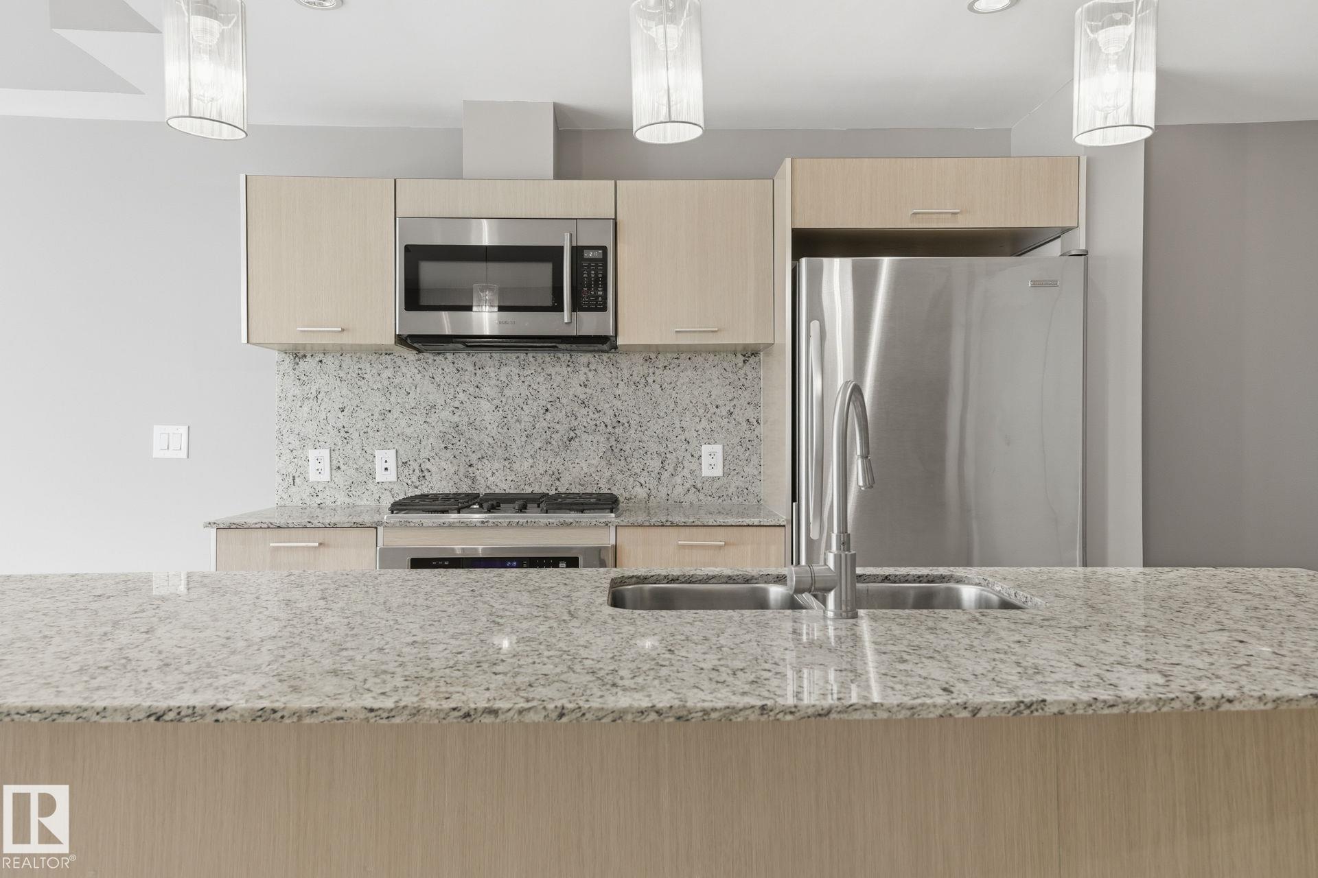 Experience modern comfort & unbeatable convenience at One Century Park! This bright and beautifully designed freshly painted condo features an open-concept layout with gourmet kitchen complete with granite countertops, stainless steel appliances, gas stove & large island perfect for entertaining. The spacious bedroom offers a walk-through closet leading to a spa-inspired bathroom with both a relaxing tub & separate shower. Enjoy modern comfort with quality finishes & thoughtful design throughout. This unit also includes titled underground parking & private storage cage for added convenience. Residents have access to excellent building amenities including fitness facilities and secure underground parkade parking for visitors. Located just steps from Century Park LRT, the YMCA, shopping, dining & major commuter routes, this home offers exceptional accessibility & urban convenience. An ideal opportunity for professionals, first-time buyers or investors looking for a well-connected South Edmonton location.