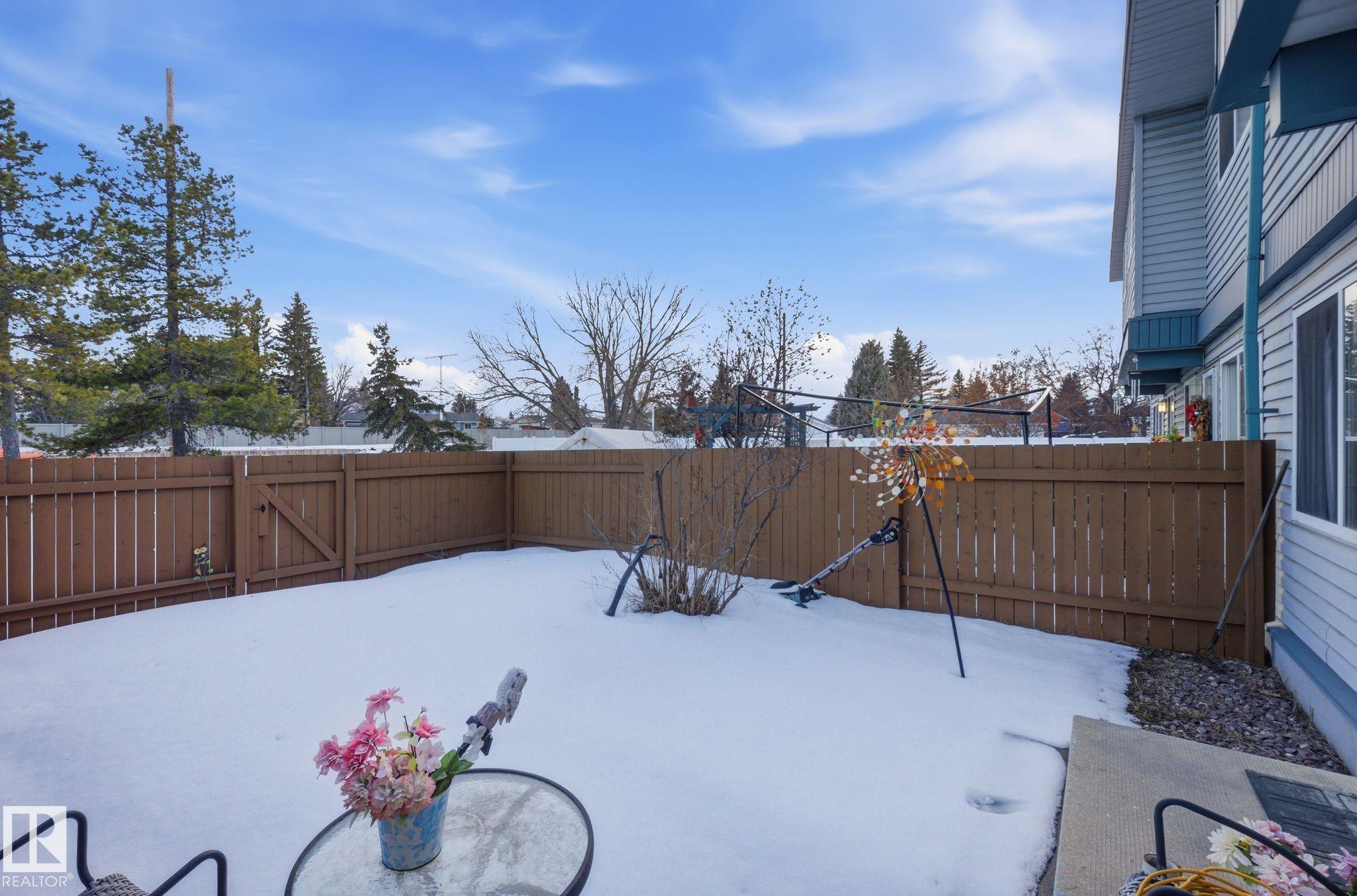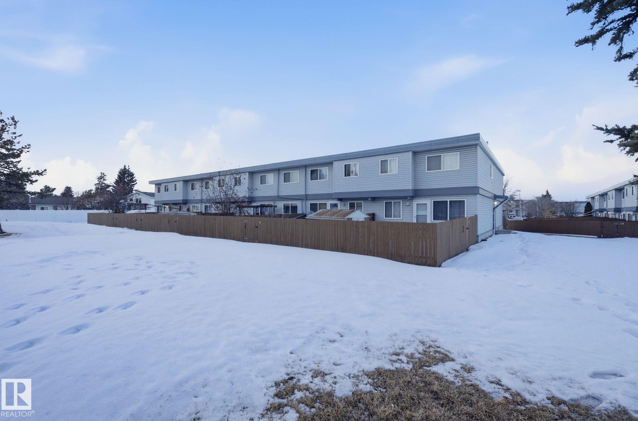 Welcome to Summerlea Court, located just minutes from West Edmonton Mall, schools, amenities, and with quick access to Anthony Henday Drive. This 3-bedroom townhouse offers over 1,060 sq ft of living space plus an unfinished basement ready for future development. The main floor features a bright living room, functional kitchen, and a convenient 2-piece bathroom. Patio doors lead to the fenced backyard facing 87 Avenue. Upstairs you?ll find three good-sized bedrooms and a full bathroom, including one bedroom with a skylight. CONDO FREES INCLUDE HEAT AND WATER/SEWER. Property is being sold as-is and offers a great opportunity for buyers looking to update and build equity in a well-located west Edmonton complex.