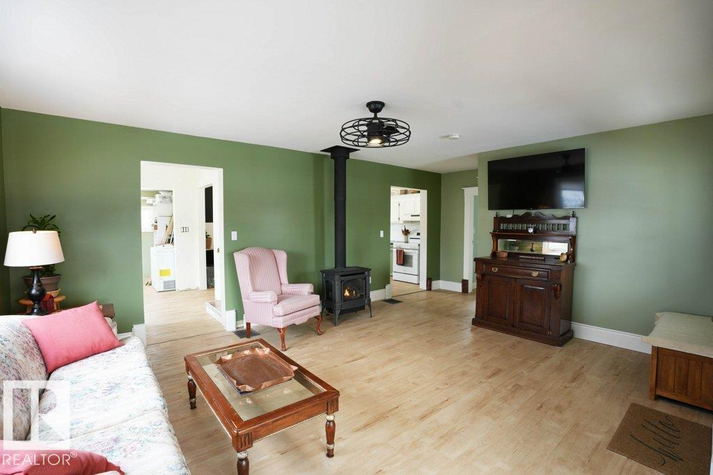 Charming 1˝ storey character home located in the welcoming community of Warburg, directly across from Central Park. This inviting home offers 3 bedrooms, main floor laundry, and a warm interior filled with charm and personality. The yard is surrounded by mature lilac bushes, caragana hedges, cedar and blue spruce, creating a peaceful setting with privacy. The property features a welcoming front porch and a comfortable layout perfect for small-town living. A great opportunity for buyers looking for a unique home with character in a quiet community.