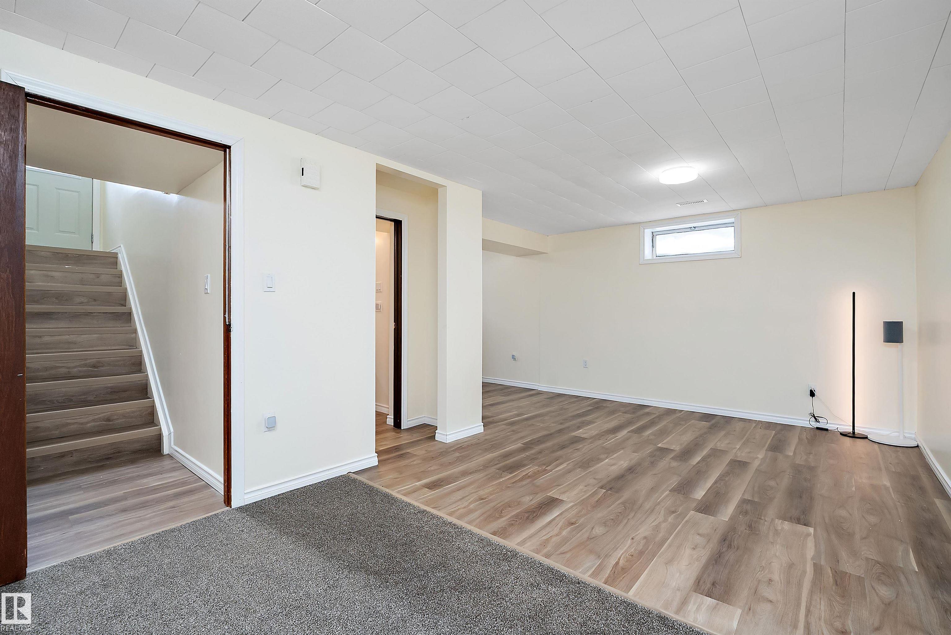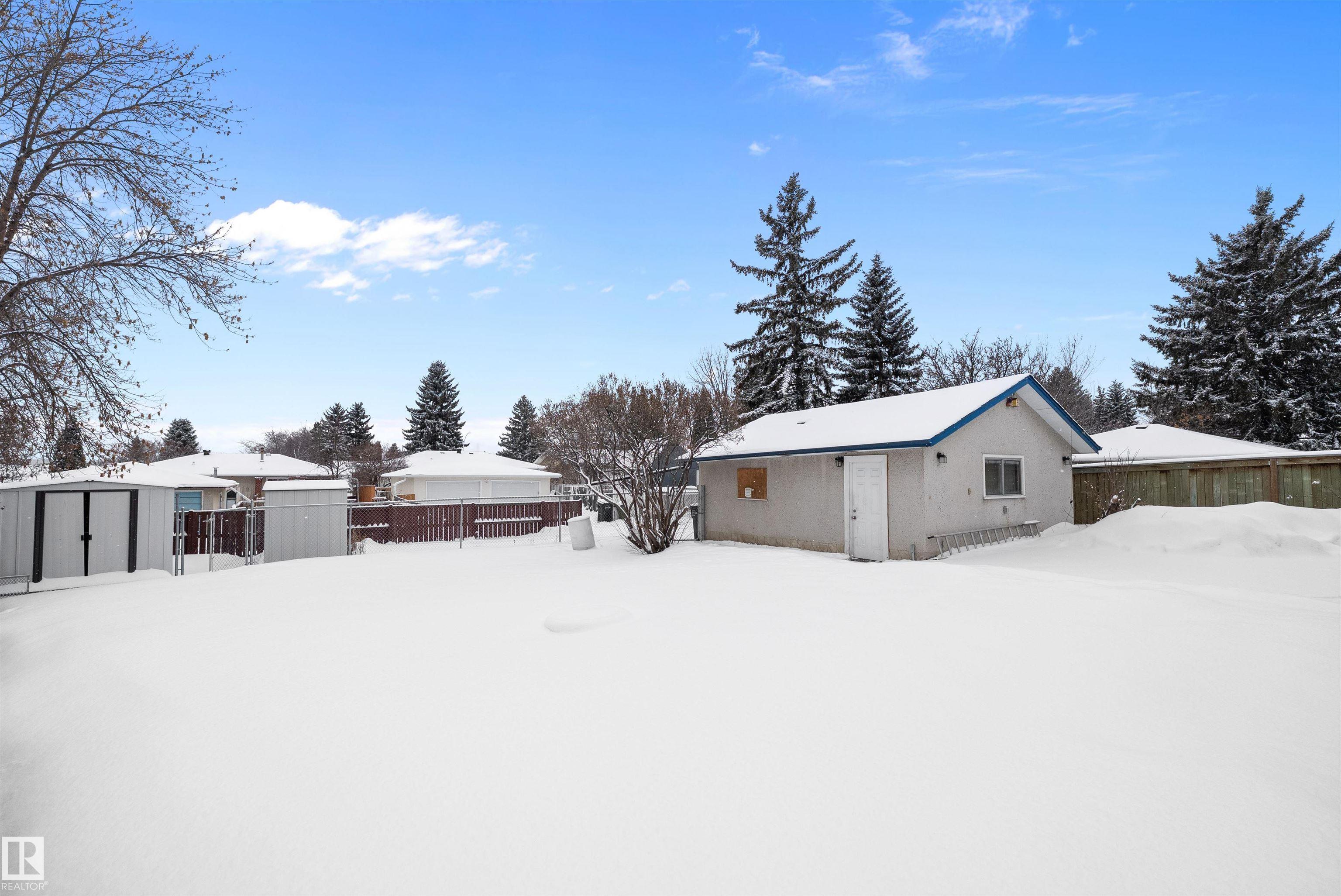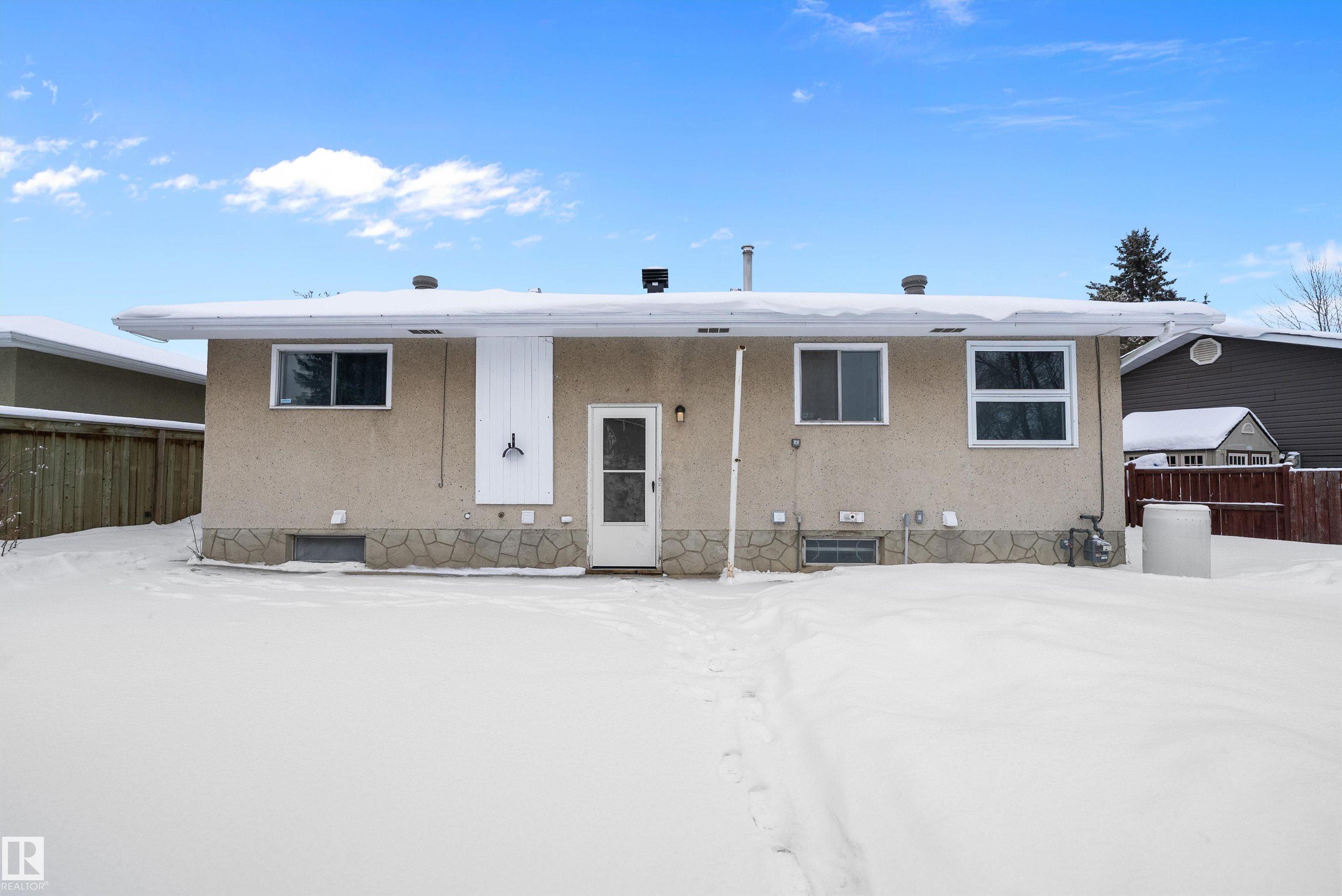 Welcome to this clean, move-in ready 4-bedroom bungalow in established Rundle Heights ? steps from the North Saskatchewan River Valley and the vibrant Rundle Park area. The main floor offers 3 bedrooms, 2 full baths and a bright open living/dining layout anchored by a functional kitchen designed for everyday comfort and connection. The finished basement adds exceptional flexibility with a spacious rec room, 4th bedroom, full bath, second kitchen and separate entrance ? ideal for extended family, shared living or future income potential. Outside, enjoy a double detached garage and a fenced yard with space to relax, garden or host gatherings. PEACE OF MIND: NEW ROOF (2025)! Located directly across from St. Jerome Catholic School and close to additional schools, greenspace, trails, recreation and key commuter routes, this home delivers practical layout, lifestyle access and long-term value in one of northeast Edmonton?s most established neighbourhood settings.