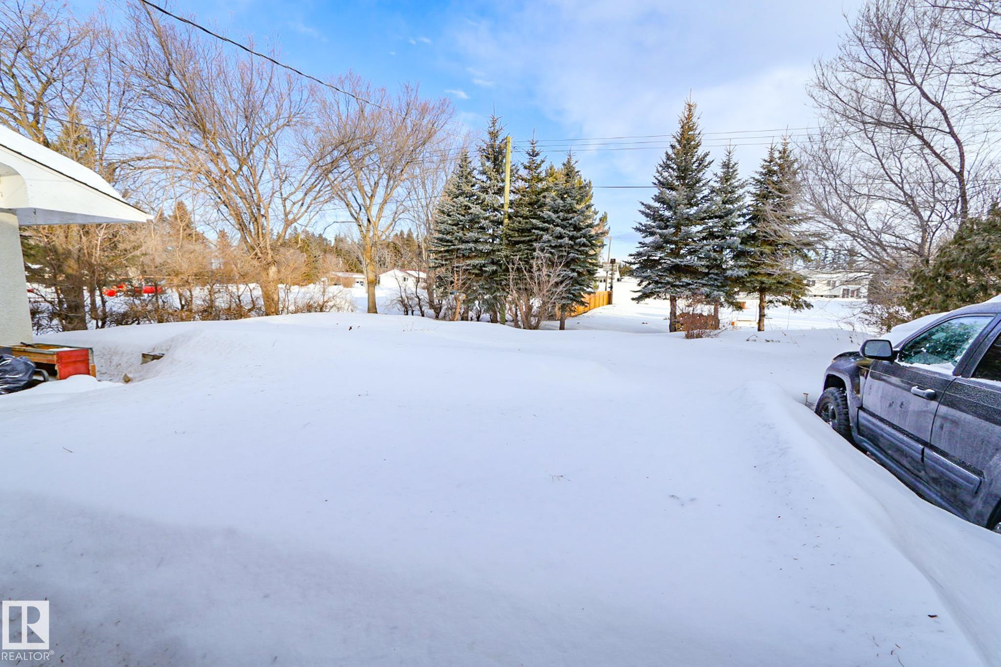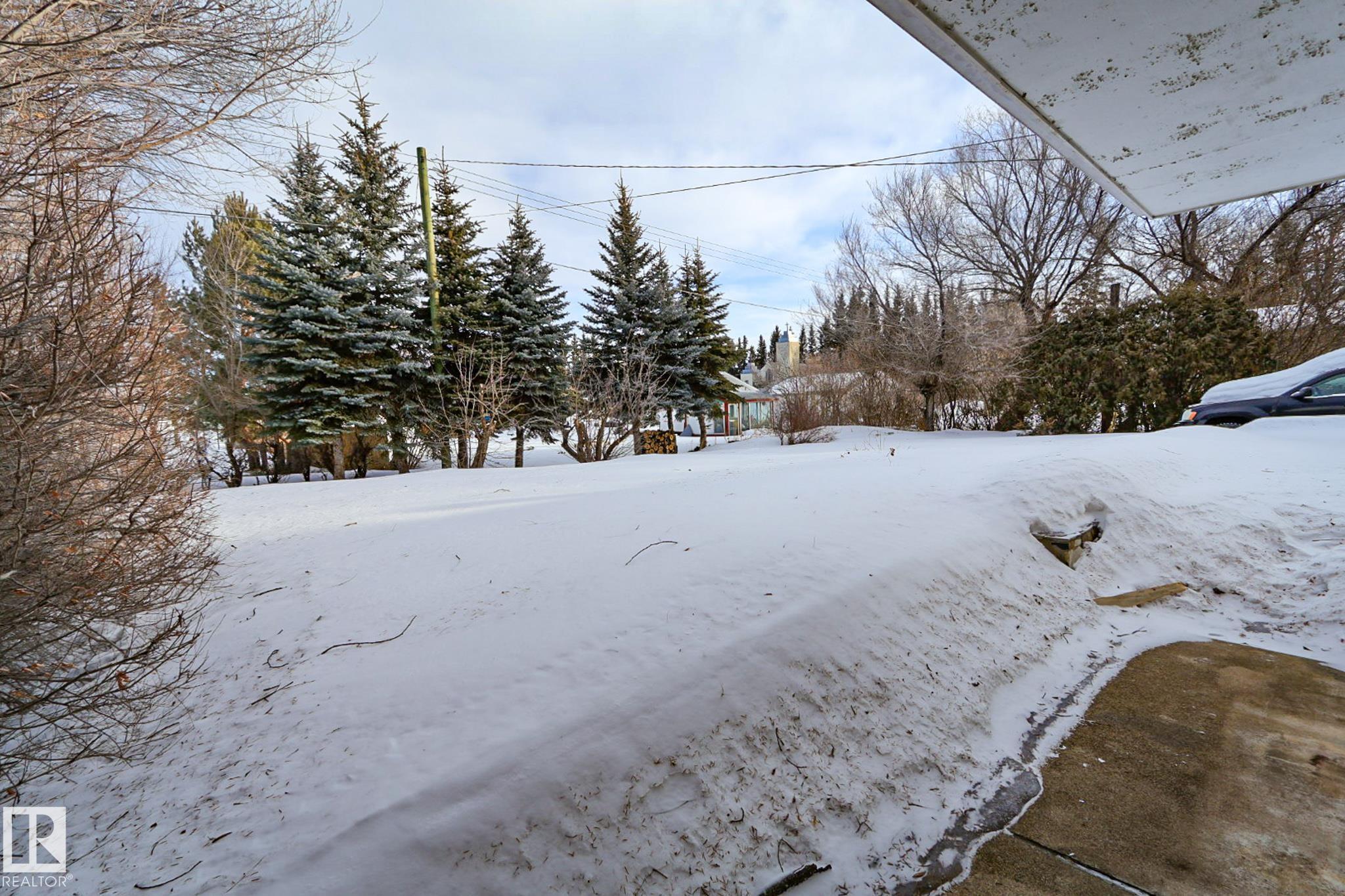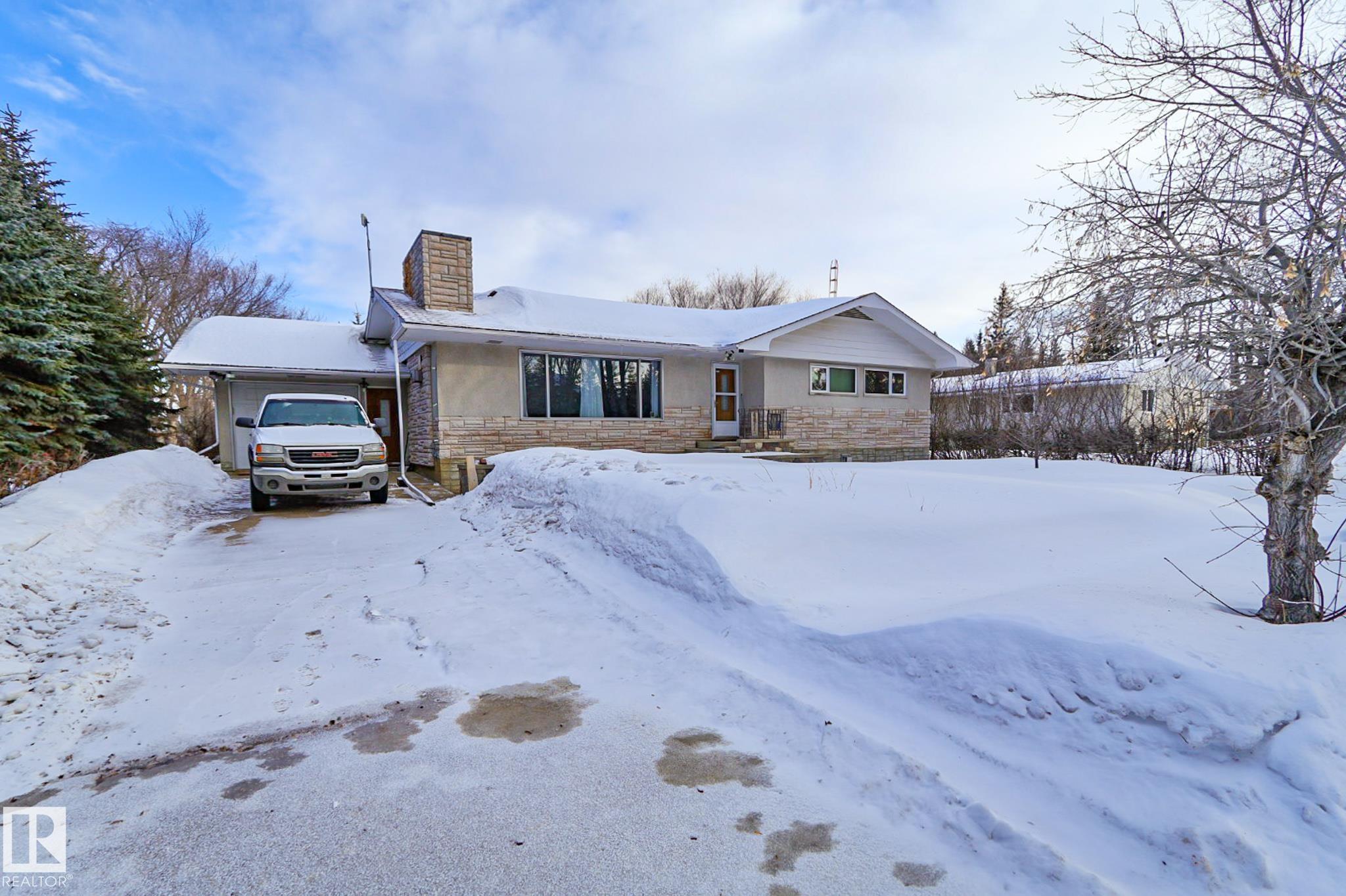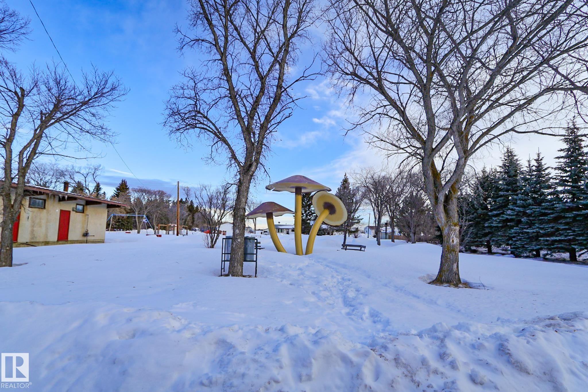 Welcome to this charming 4 bedroom, 2 bathroom bungalow located in the Village of Vilna. This well maintained home offers a great mix of original character and thoughtful updates, making it ideal for families or those looking to enjoy small town living. The bright kitchen features ample cabinetry, generous counter space, a large island, and dining space with built in storage. Large windows throughout the home bring in plenty of natural light while updated flooring adds a modern touch. The fully developed lower level features a spacious family room with a custom bar, built ins, and a cozy gas fireplace. Several upgrades over the years include a newer furnace, shingles, windows, flooring, and sump pump. The large backyard offers space for gardening, entertaining, or relaxing and is located next to a park featuring Vilna?s well known World's Largest Mushrooms. Vilna offers a charming main street, school, quaint grocery store. A short drive to several lakes and the Iron Horse Trail. 150 km from Edmonton.