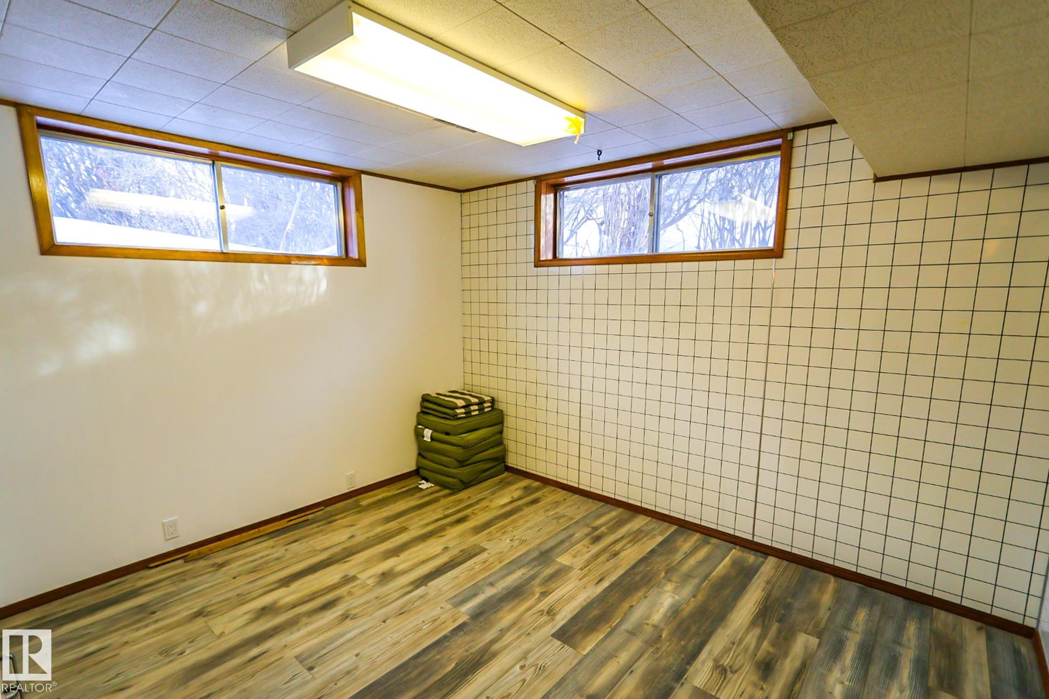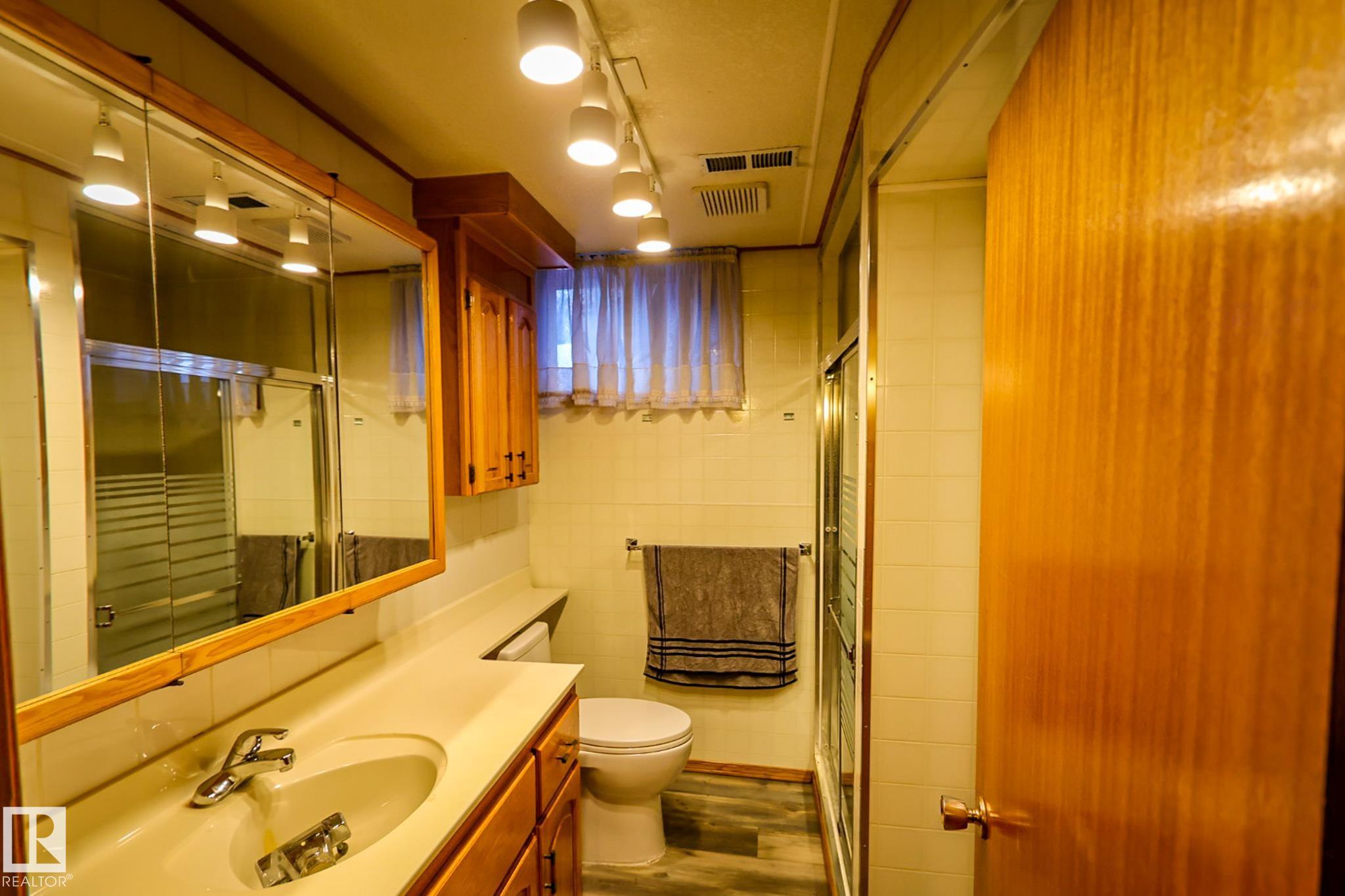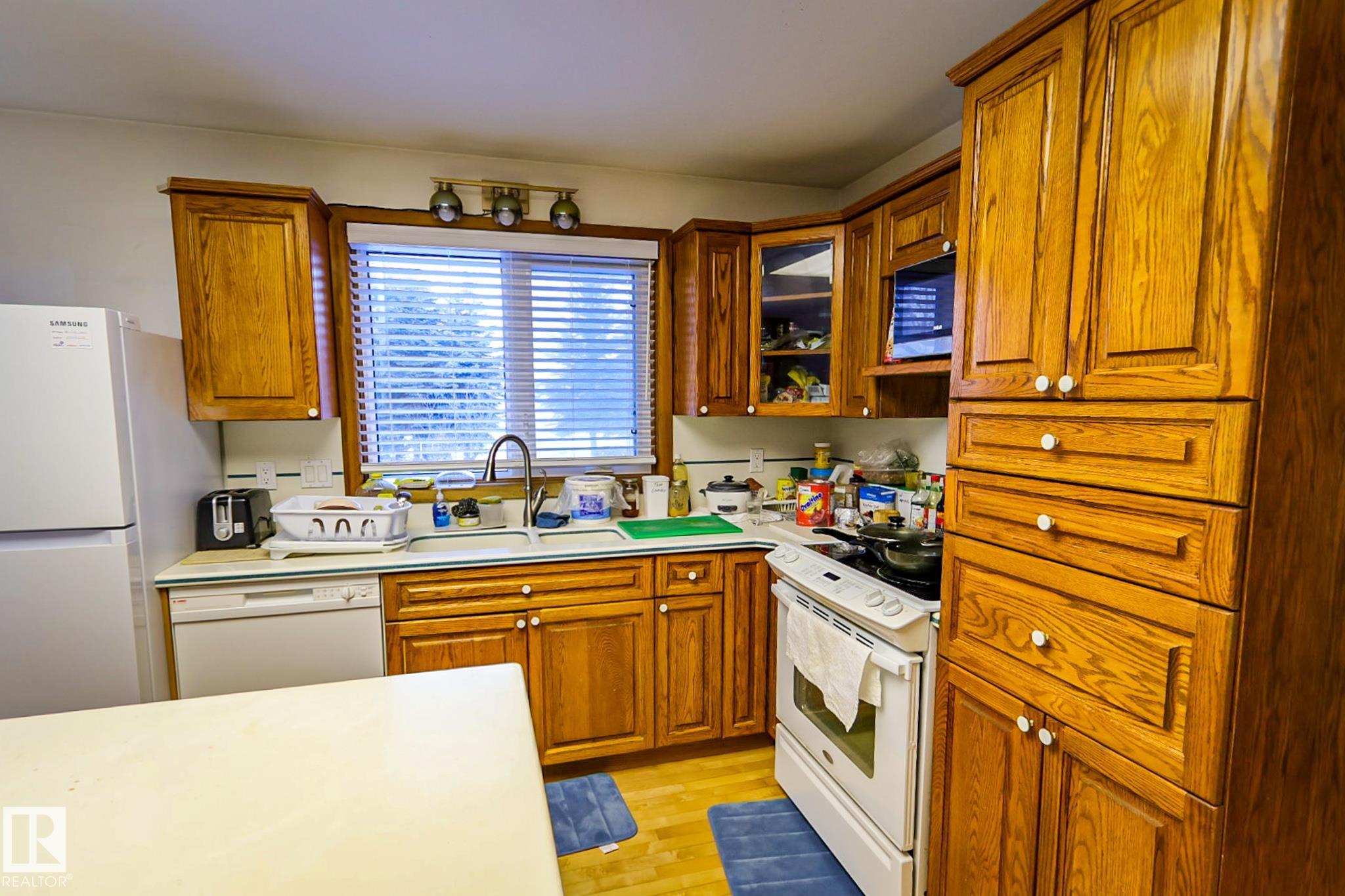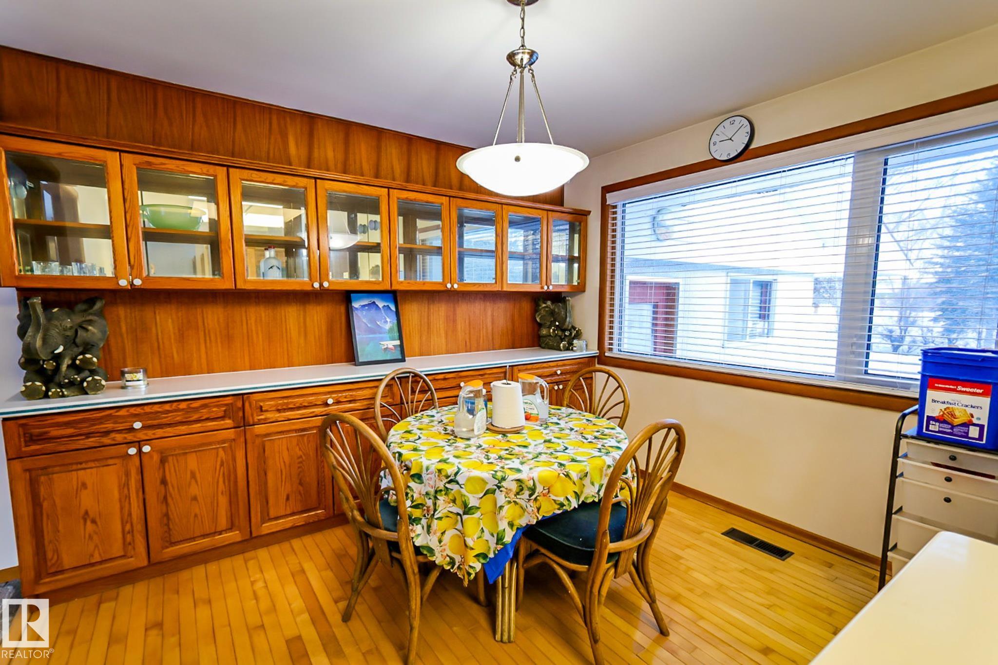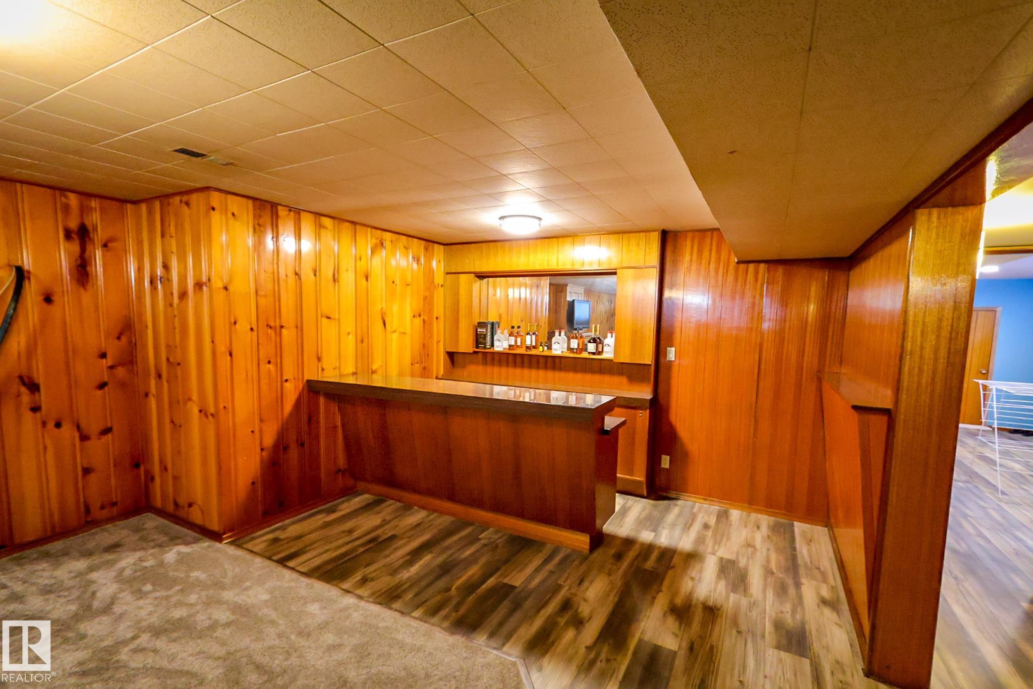 Welcome to this charming 4 bedroom, 2 bathroom bungalow located in the Village of Vilna. This well maintained home offers a great mix of original character and thoughtful updates, making it ideal for families or those looking to enjoy small town living. The bright kitchen features ample cabinetry, generous counter space, a large island, and dining space with built in storage. Large windows throughout the home bring in plenty of natural light while updated flooring adds a modern touch. The fully developed lower level features a spacious family room with a custom bar, built ins, and a cozy gas fireplace. Several upgrades over the years include a newer furnace, shingles, windows, flooring, and sump pump. The large backyard offers space for gardening, entertaining, or relaxing and is located next to a park featuring Vilna?s well known World's Largest Mushrooms. Vilna offers a charming main street, school, quaint grocery store. A short drive to several lakes and the Iron Horse Trail. 150 km from Edmonton.