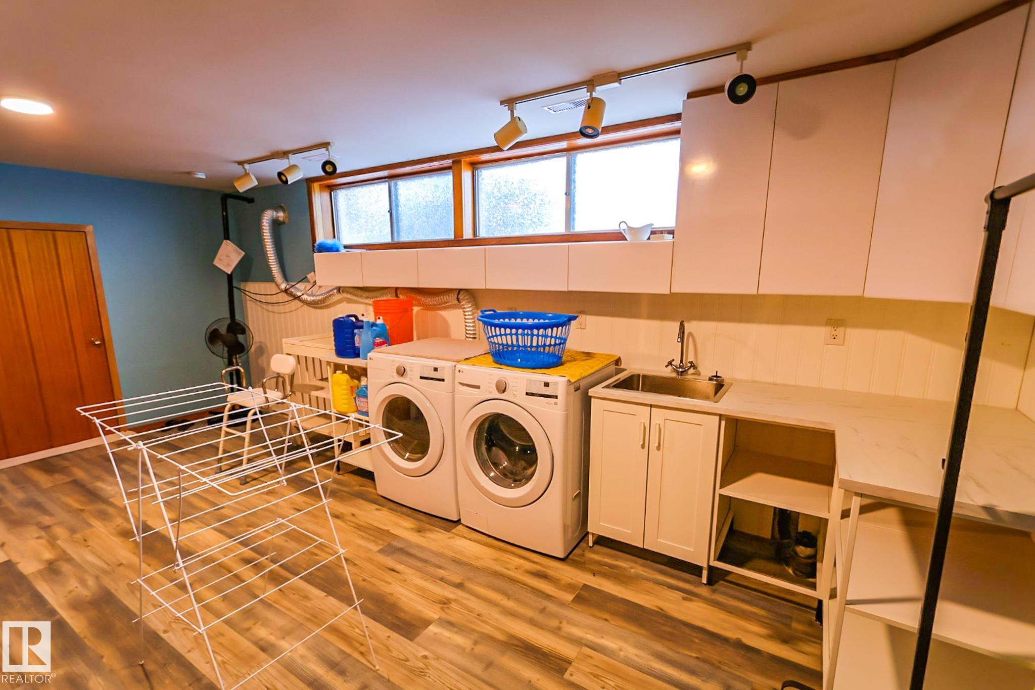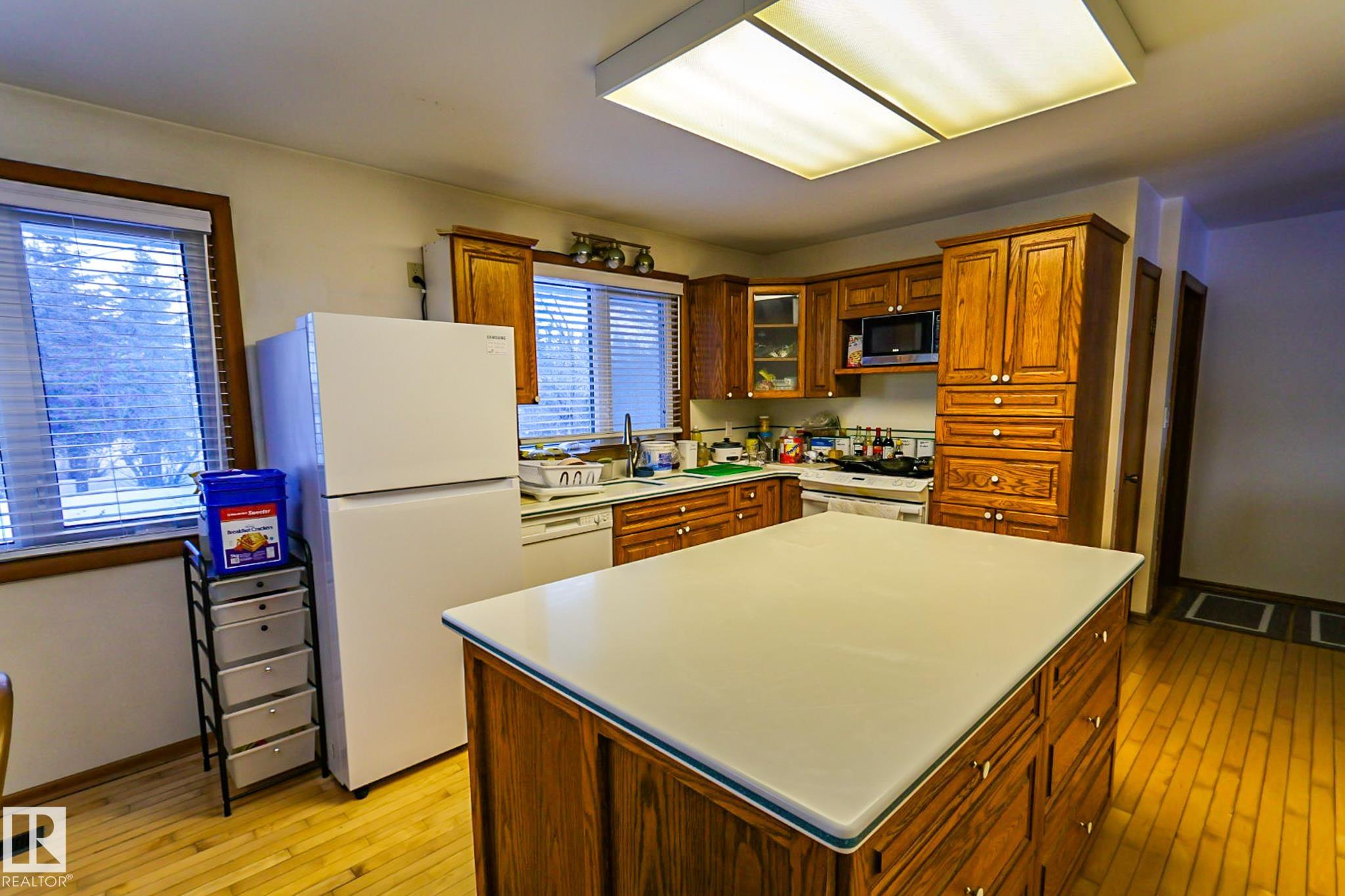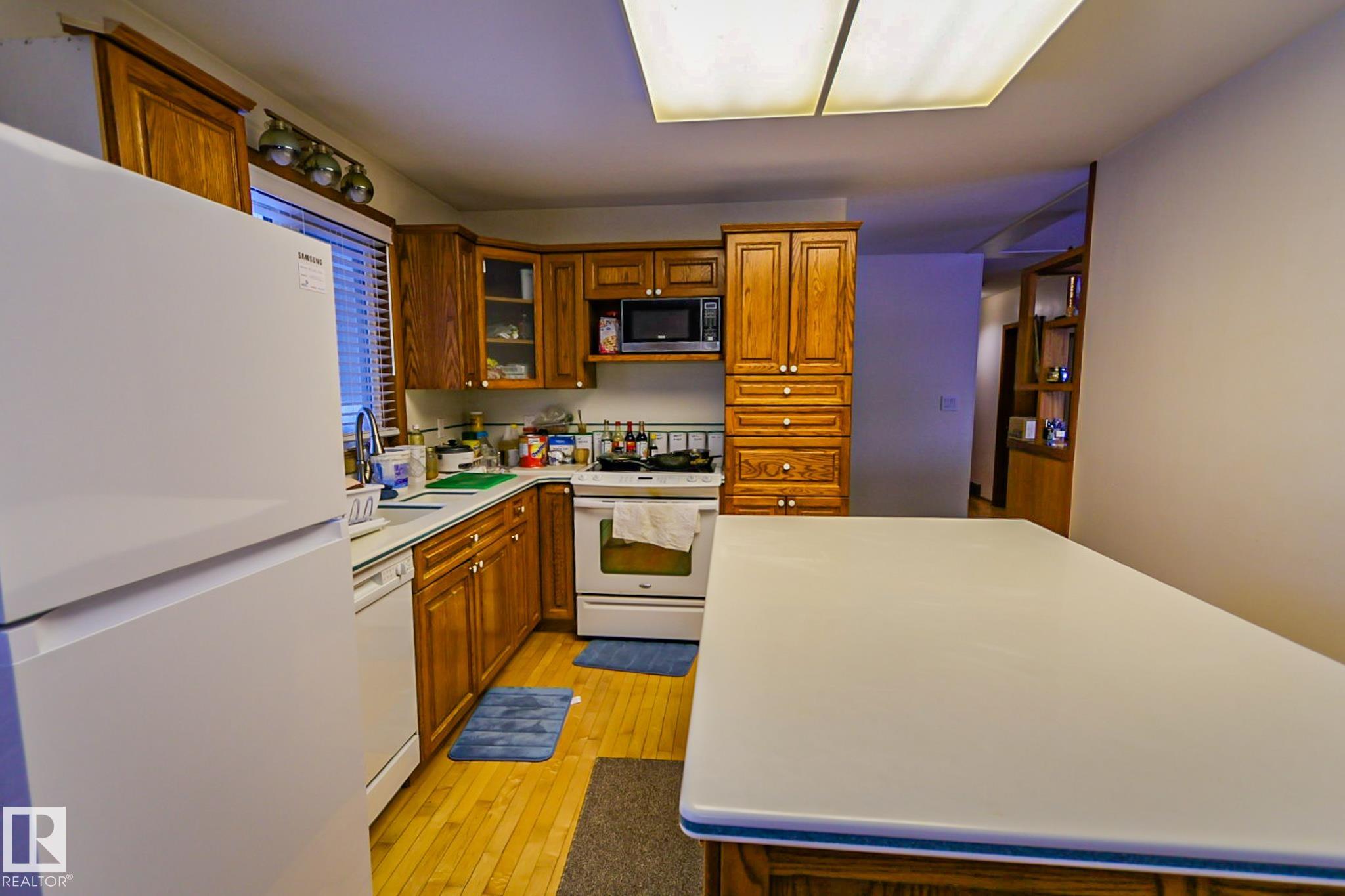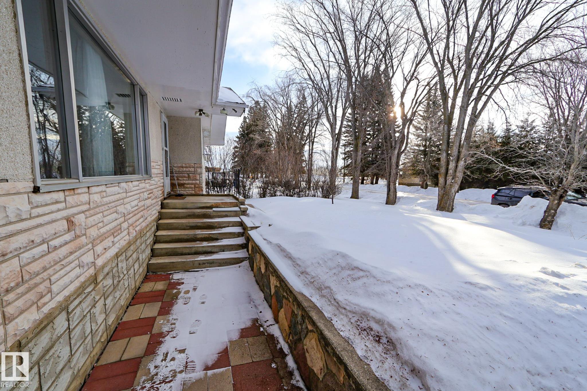 Welcome to this charming 4 bedroom, 2 bathroom bungalow located in the Village of Vilna. This well maintained home offers a great mix of original character and thoughtful updates, making it ideal for families or those looking to enjoy small town living. The bright kitchen features ample cabinetry, generous counter space, a large island, and dining space with built in storage. Large windows throughout the home bring in plenty of natural light while updated flooring adds a modern touch. The fully developed lower level features a spacious family room with a custom bar, built ins, and a cozy gas fireplace. Several upgrades over the years include a newer furnace, shingles, windows, flooring, and sump pump. The large backyard offers space for gardening, entertaining, or relaxing and is located next to a park featuring Vilna?s well known World's Largest Mushrooms. Vilna offers a charming main street, school, quaint grocery store. A short drive to several lakes and the Iron Horse Trail. 150 km from Edmonton.