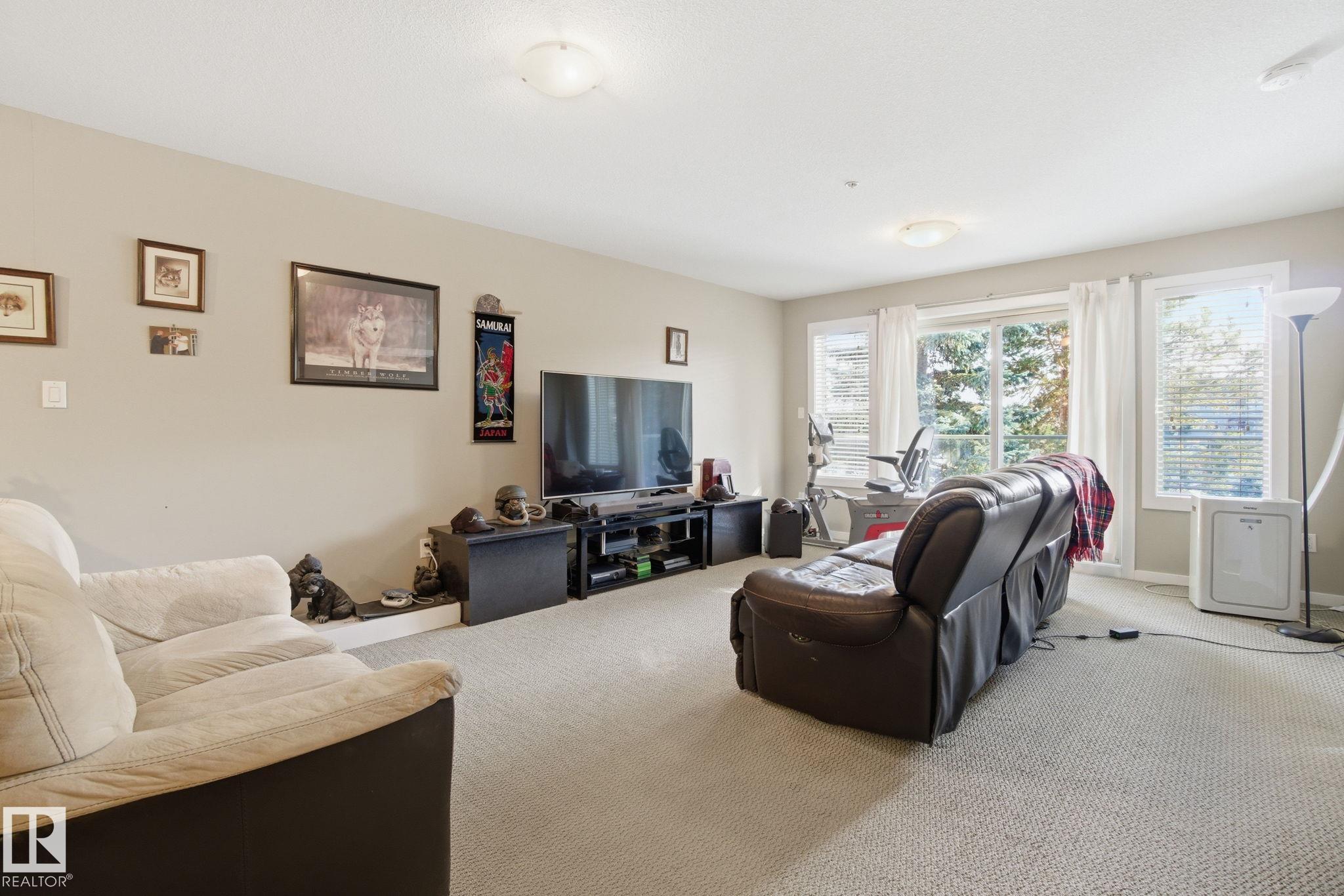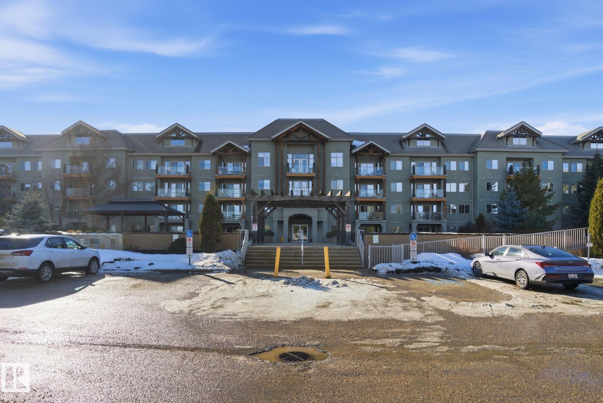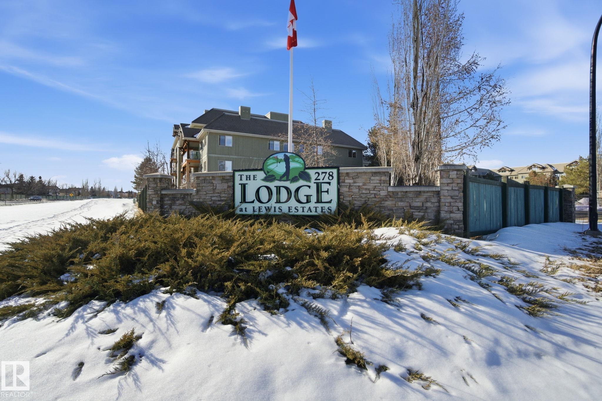 WELCOME TO THE LODGE AT LEWIS ESTATES where you will find this beautifully well kept 1 bedroom plus den and 1 bathroom 2nd floor condo. This open concept condo features caramel cabinets, breakfast bar, gleaming black appliances and more. The spacious bedroom features a large walk-in closet and a passthrough to the spacious 4 piece bath and in-suite laundry room. Other features include a TITLED UNDERGROUND PARKING spot with a storage locker and another large titled storage room on the 2nd floor. If you love to golf, walk on over and tee off at the Lewis Estates Golf Course. The Lodge at Lewis Estates is a 30+ Adult living building with many amenities including a SOCIAL ROOM with pool table/shuffle board, HOT TUB/ SAUNA ROOM, THEATRE ROOM, FITNESS ROOM and 2 underground CAR WASHES as well as a private ROOFTOP PATIO. If you are looking for affordable condo living that is close to many amenities including parks, trails, shopping and more then this place is for you! Don't miss out on this AMAZING opportunity!