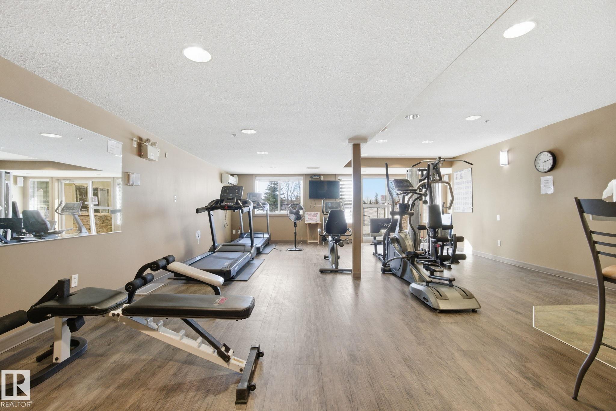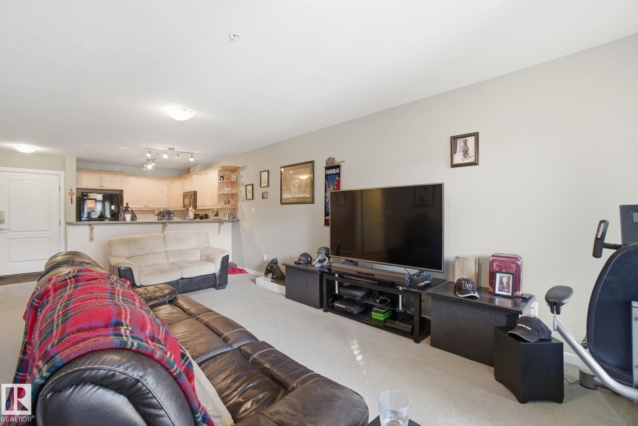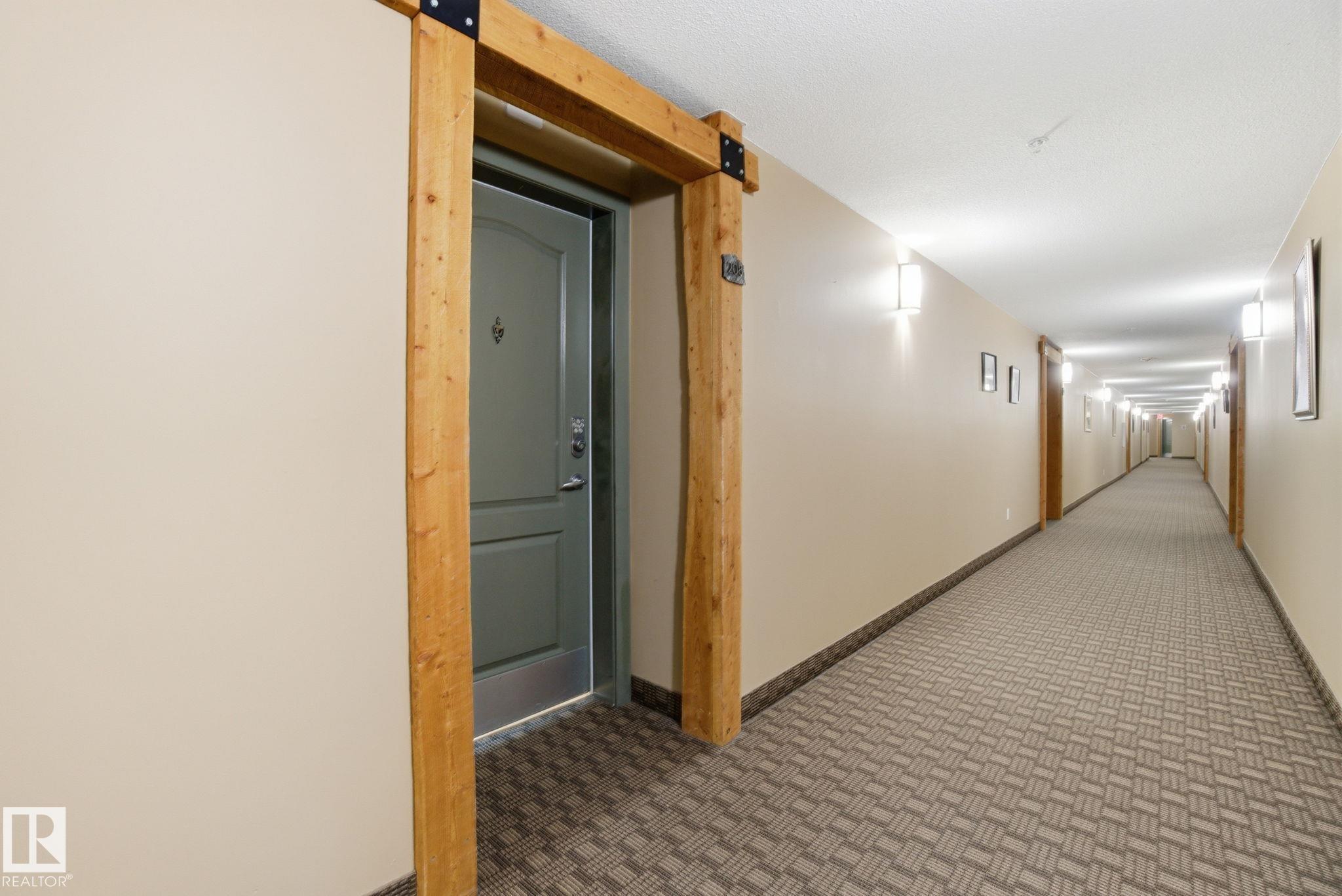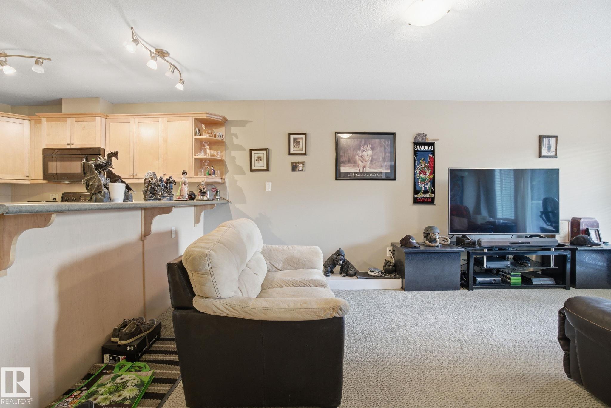 WELCOME TO THE LODGE AT LEWIS ESTATES where you will find this beautifully well kept 1 bedroom plus den and 1 bathroom 2nd floor condo. This open concept condo features caramel cabinets, breakfast bar, gleaming black appliances and more. The spacious bedroom features a large walk-in closet and a passthrough to the spacious 4 piece bath and in-suite laundry room. Other features include a TITLED UNDERGROUND PARKING spot with a storage locker and another large titled storage room on the 2nd floor. If you love to golf, walk on over and tee off at the Lewis Estates Golf Course. The Lodge at Lewis Estates is a 30+ Adult living building with many amenities including a SOCIAL ROOM with pool table/shuffle board, HOT TUB/ SAUNA ROOM, THEATRE ROOM, FITNESS ROOM and 2 underground CAR WASHES as well as a private ROOFTOP PATIO. If you are looking for affordable condo living that is close to many amenities including parks, trails, shopping and more then this place is for you! Don't miss out on this AMAZING opportunity!