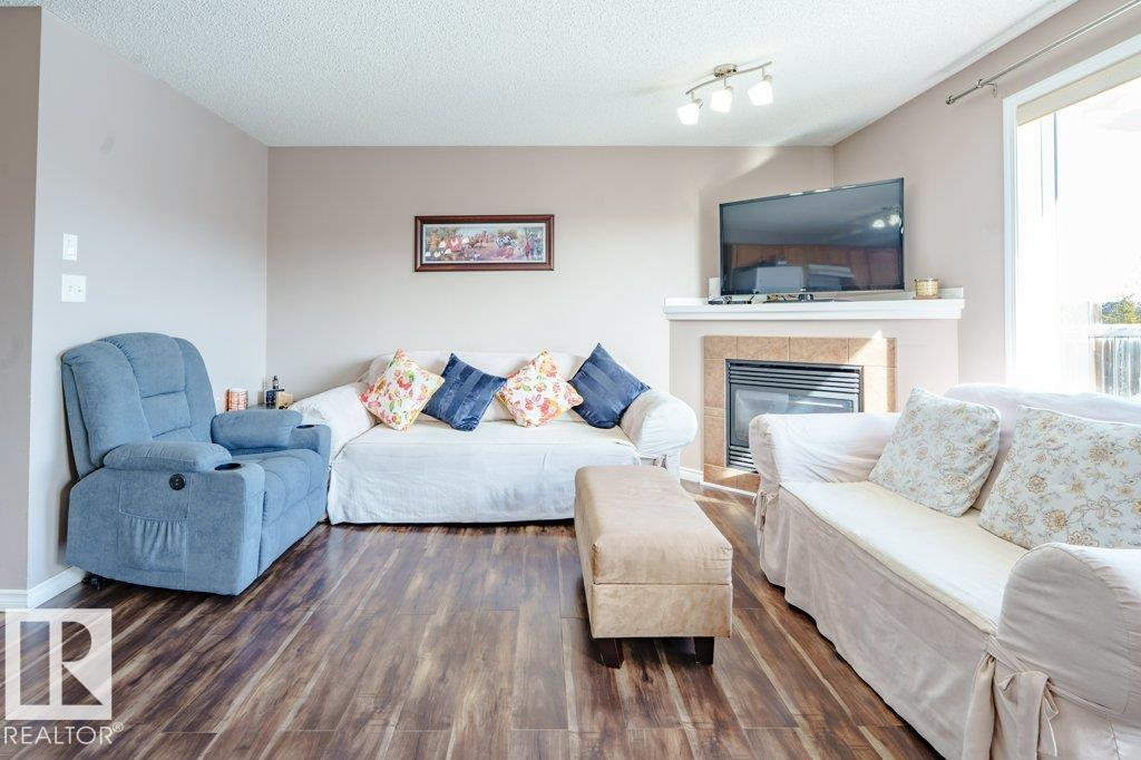 Welcome to Silver Berry! This stunning half-duplex offers over 1,675 sq. ft. of fully finished living space w/ 3 spacious bedrooms & 3 bathrooms! Step inside to a spacious foyer that leads into a bright open-concept main floor featuring a stylish living room w/ contemporary fireplace & picture windows overlooking the oversized backyard and deck accessible through the dining area! The chef-inspired kitchen features an island/breakfast nook & sleek modern cabinetry for tons of storage space! A 2 pc-bath completes the main floor! Upstairs offers 3 spacious bedrooms. A common 4 pc bath completes this functional upper floor! The FULLY FINISHED BASEMENT features a spacious REC ROOM or convert into a family room or personalized gym! A 2pc bathroom offers convenience! BRAND NEW DISHWASHER (2025), Newer Washer/Dryer (2020). Newer Laminate Flooring throughout. Located close to schools, shopping, public transportation, parks & playgrounds, this home truly offers comfort, convenience & long-term value!