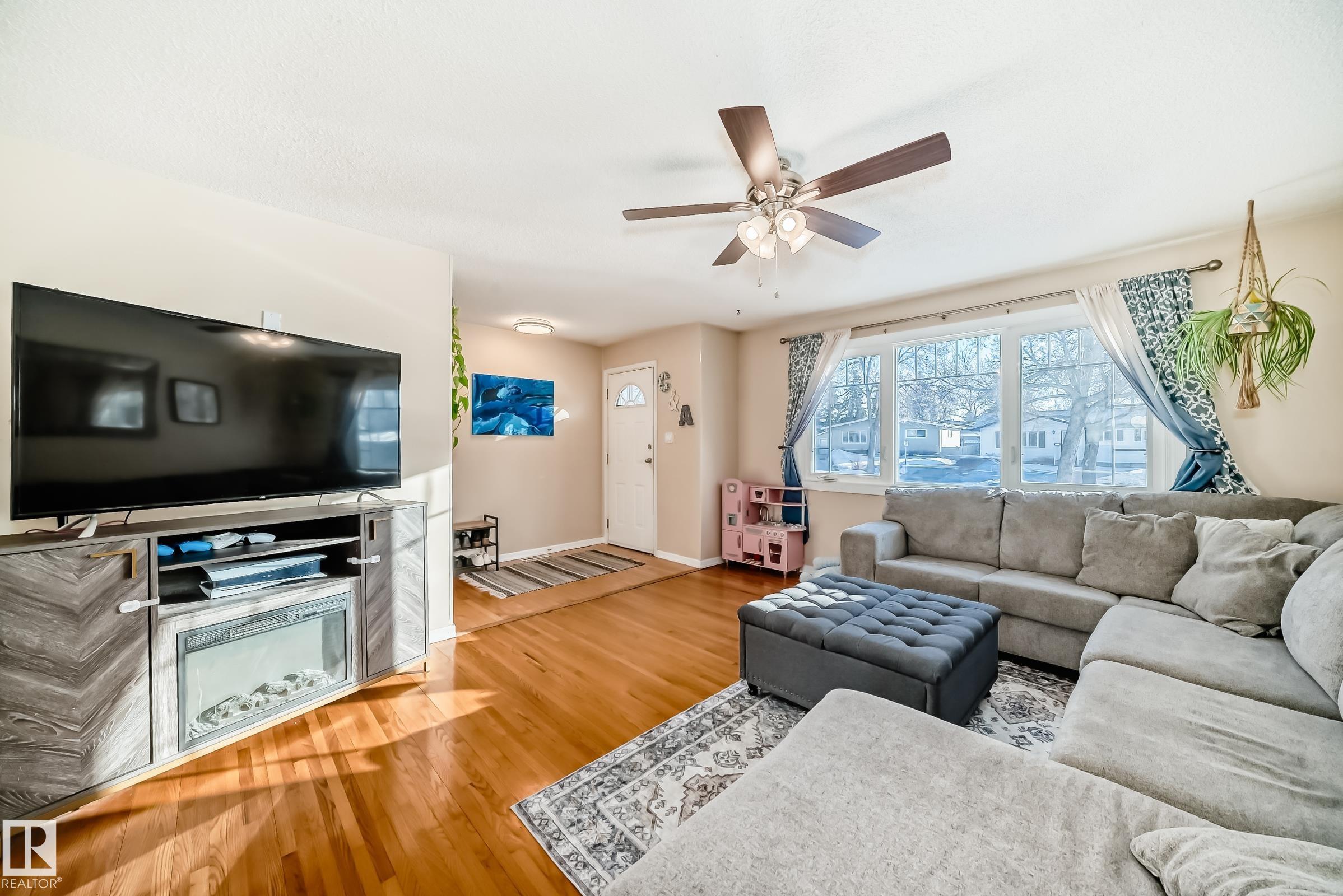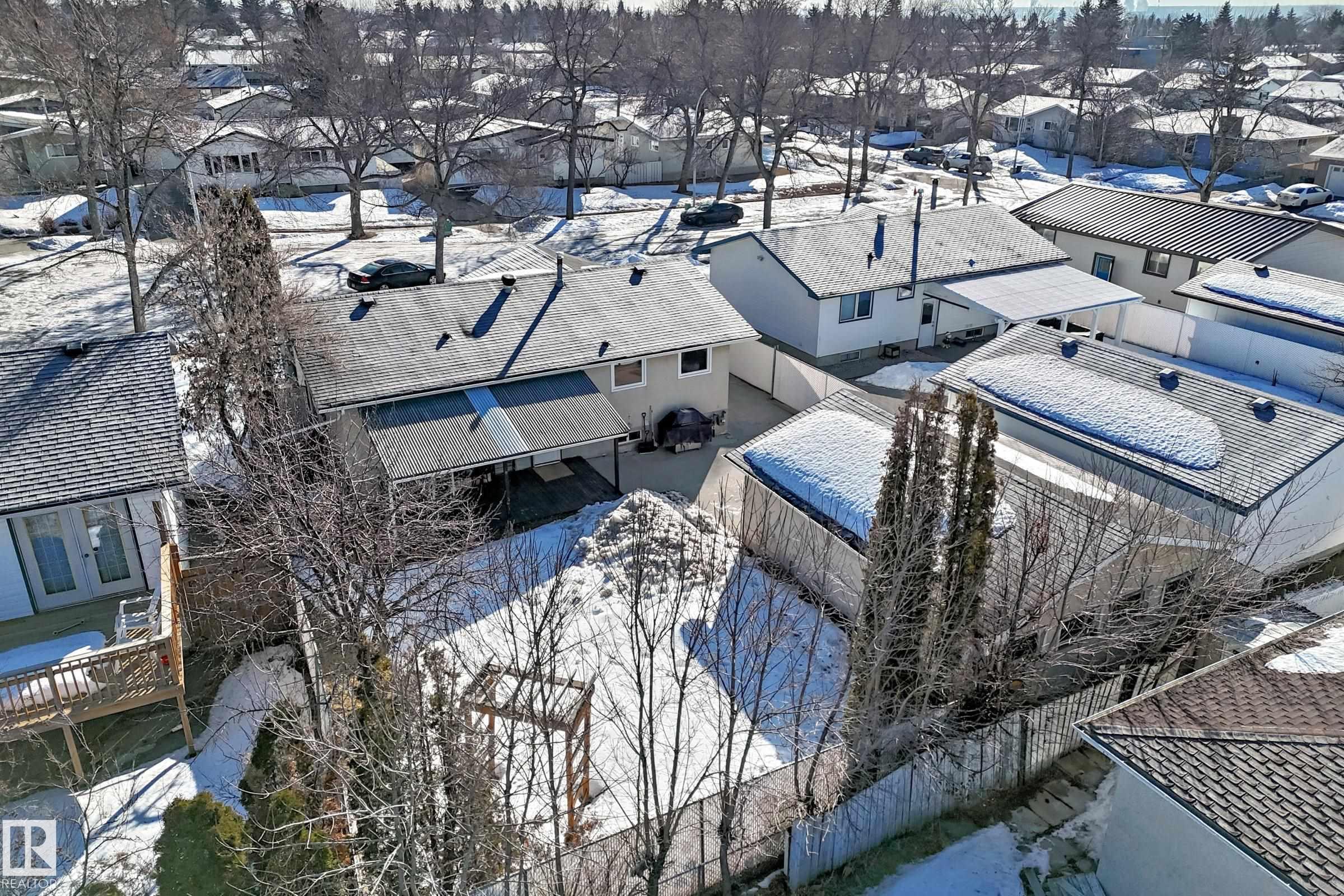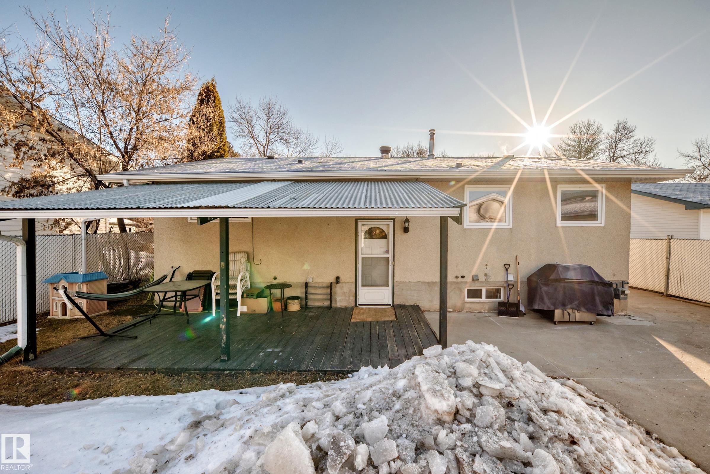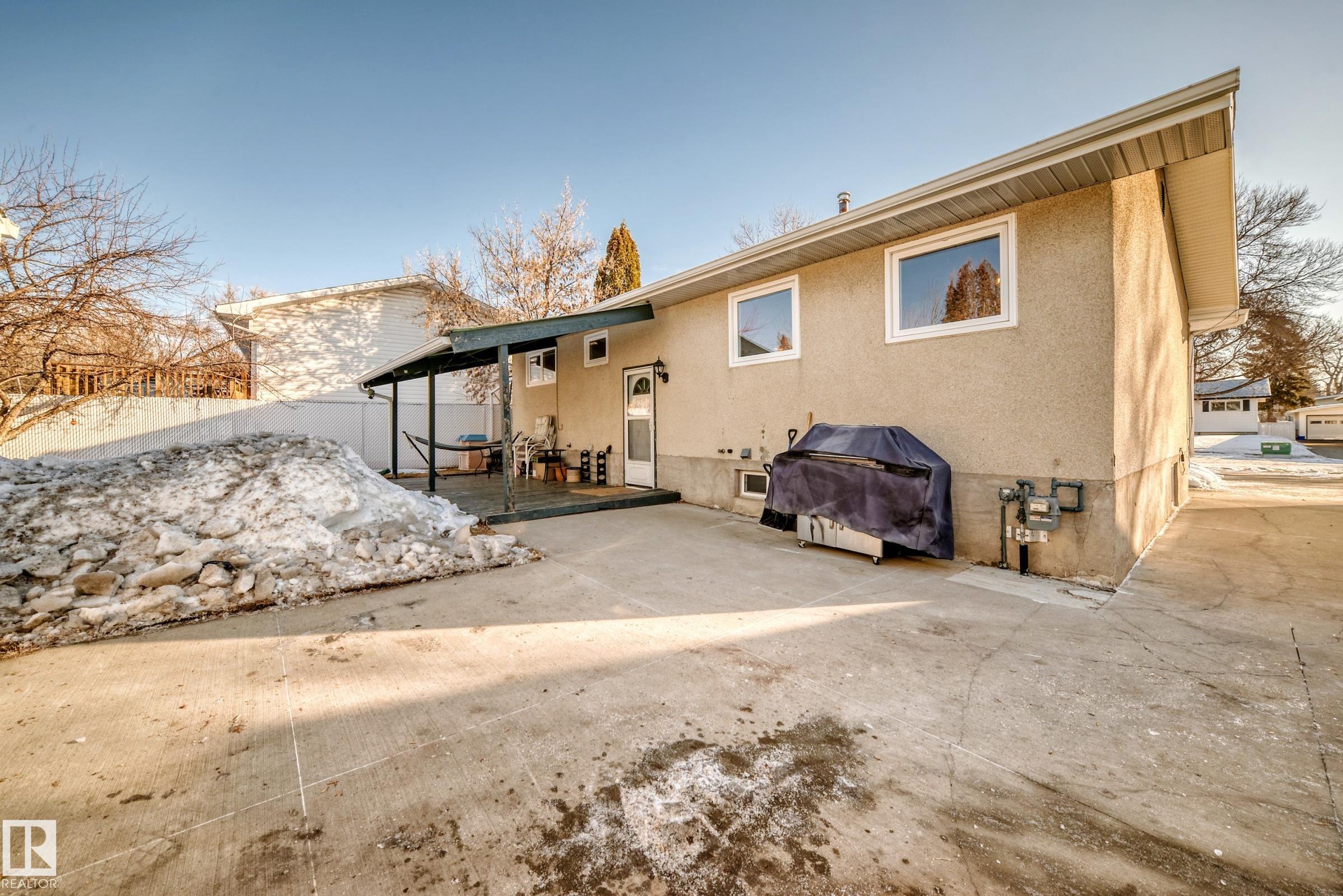 UPDATED BUNGALOW IN A QUIET CUL-DE-SAC! This 1,029 sqft bungalow offers 3 bedrooms, 2 baths, and a fully finished basement in a great quiet location close to schools, parks, shopping, and transit. The bright main floor features hardwood flooring, and a spacious living and dining area. Two comfortable bedrooms (used to be 3 and could be changed back) and a full bath complete the main level. The finished basement offers large windows, a spacious family room with fireplace and wet bar, third bedroom, den or office, and another full bath ideal for guests or extra living space. Kitchen, bathroom, doors and more updated approx. 2004. Outside, enjoy the covered deck, large fenced yard, and double garage with 220 power. Major mechanical updates include a new furnace and hot water tank (2024). A move-in ready home in a peaceful neighbourhood. Welcome home!