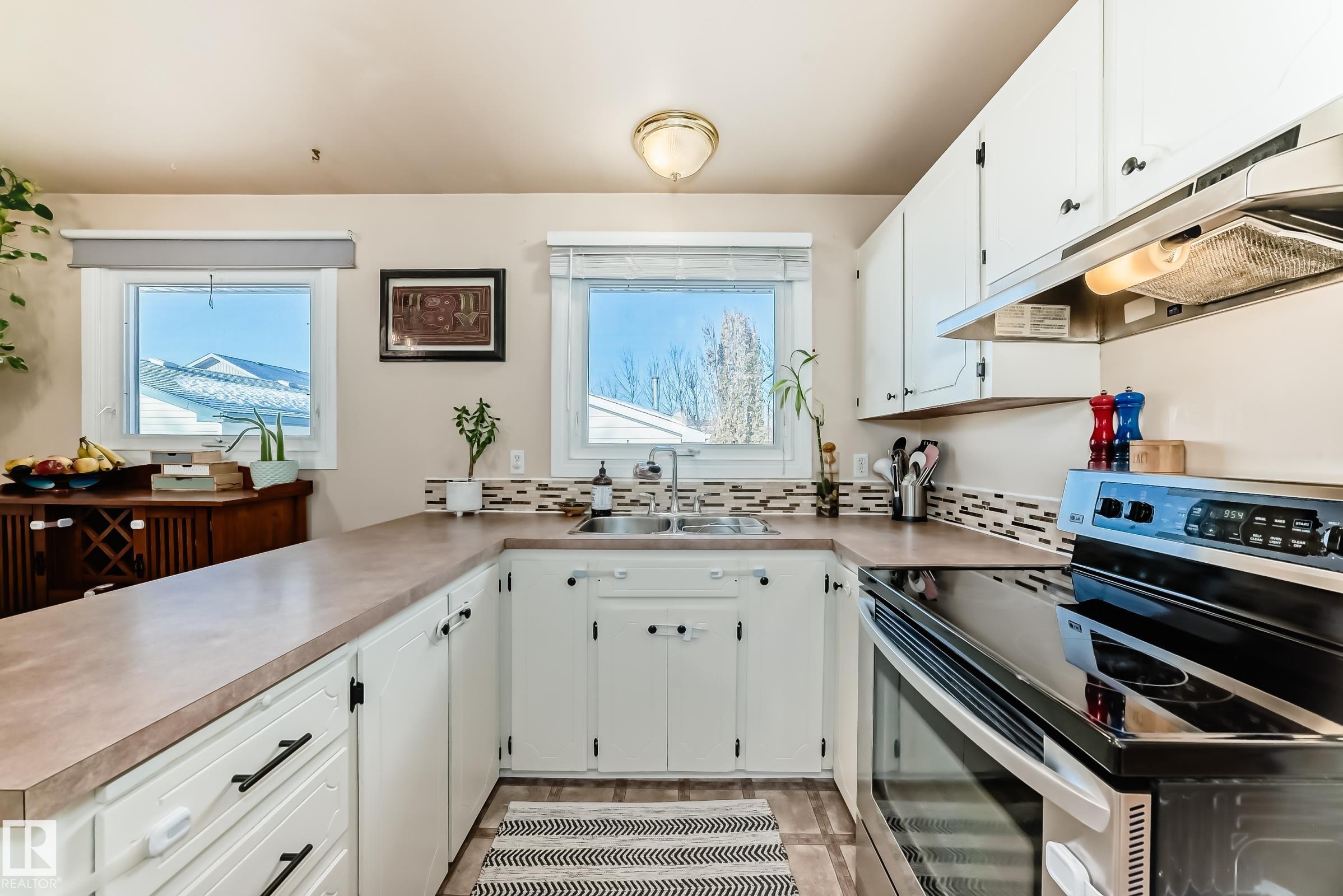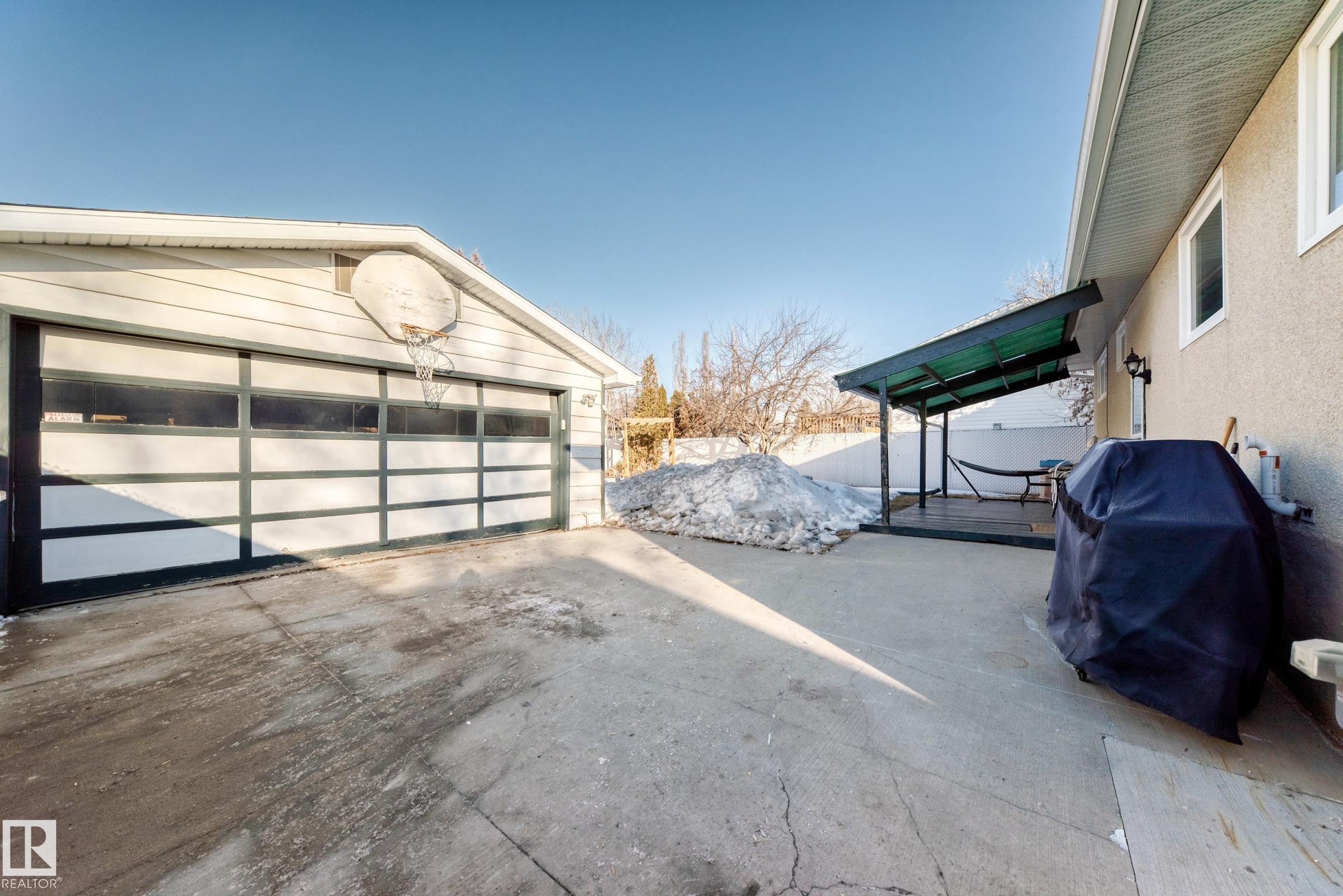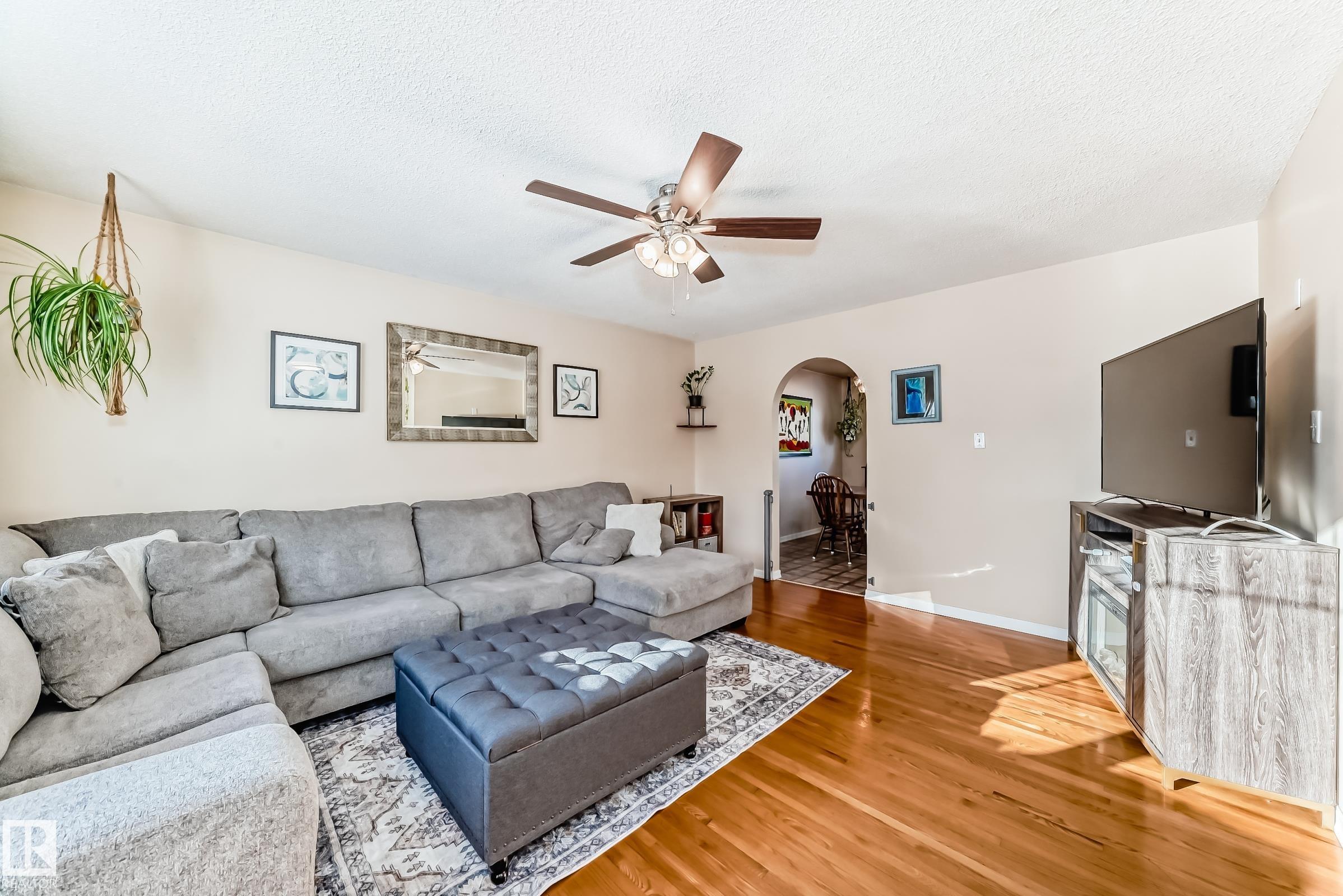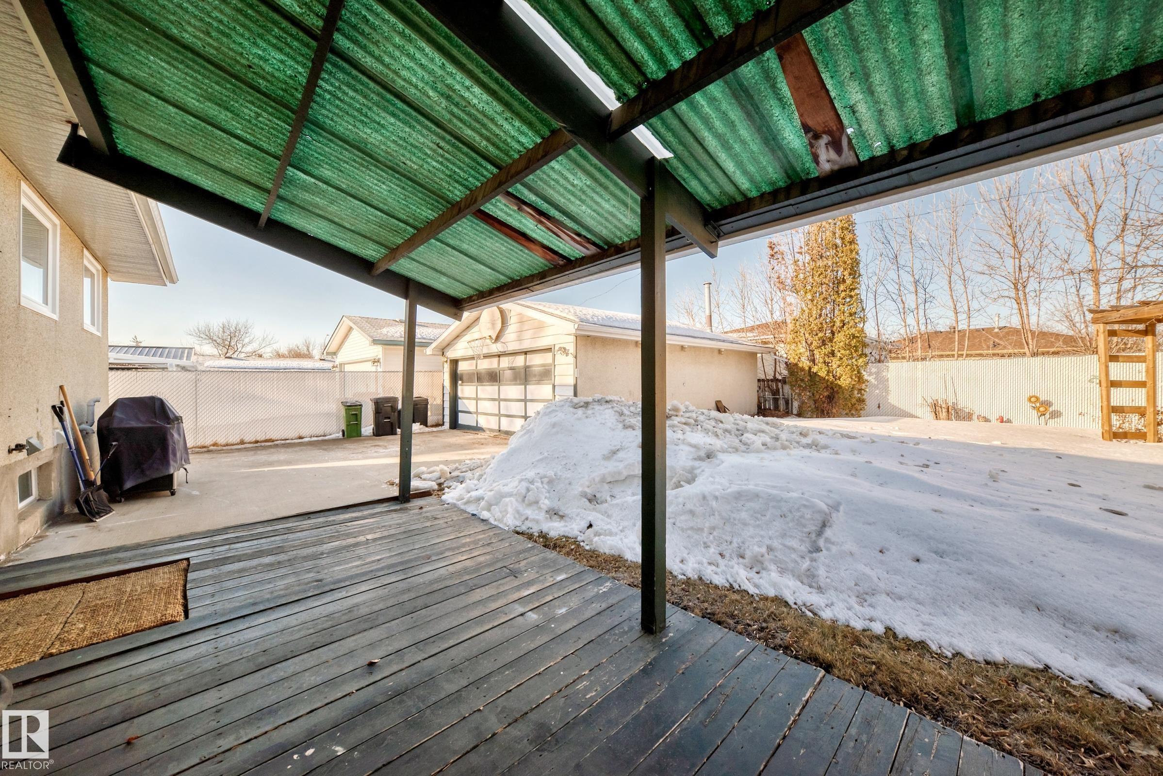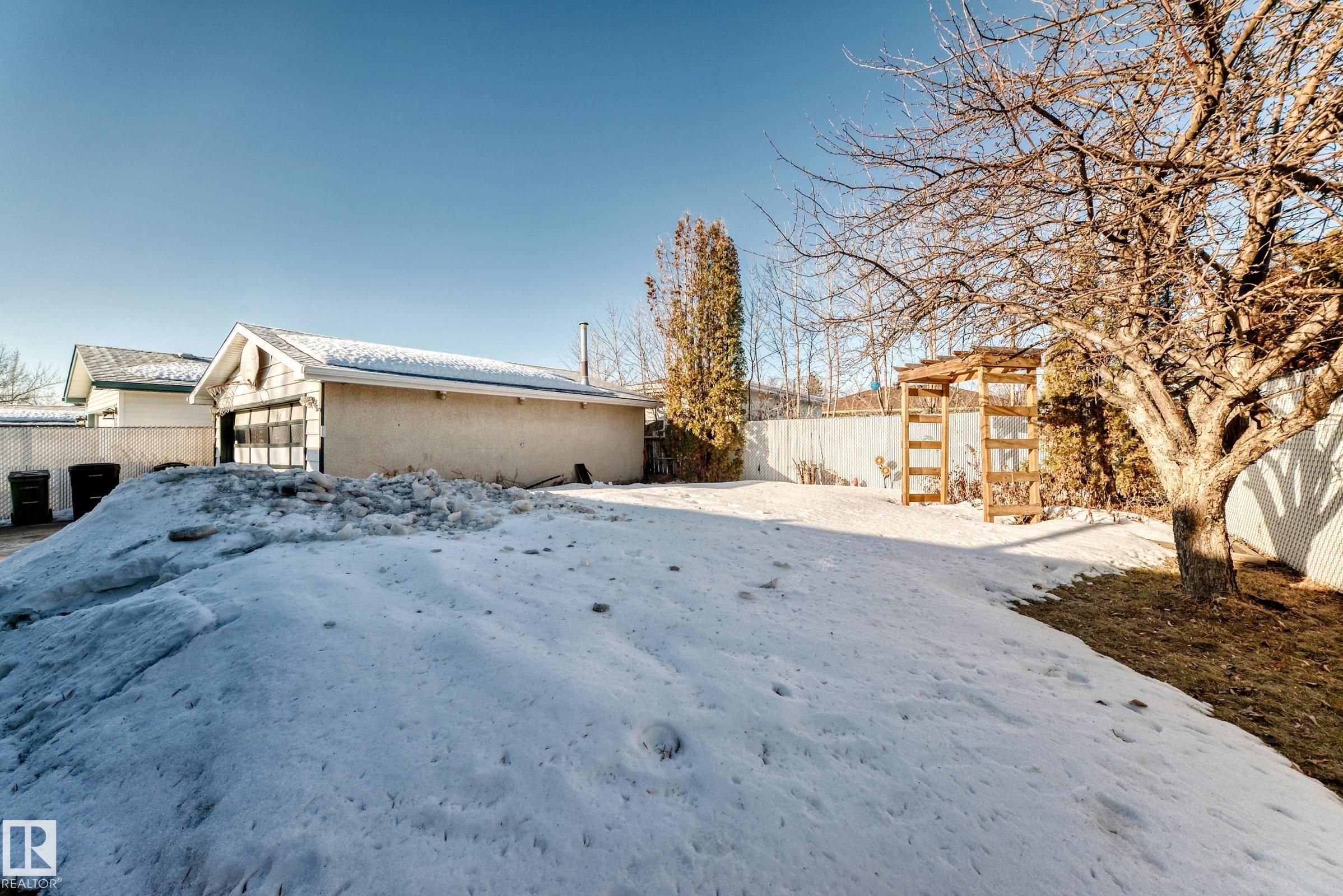 UPDATED BUNGALOW IN A QUIET CUL-DE-SAC! This 1,029 sqft bungalow offers 3 bedrooms, 2 baths, and a fully finished basement in a great quiet location close to schools, parks, shopping, and transit. The bright main floor features hardwood flooring, and a spacious living and dining area. Two comfortable bedrooms (used to be 3 and could be changed back) and a full bath complete the main level. The finished basement offers large windows, a spacious family room with fireplace and wet bar, third bedroom, den or office, and another full bath ideal for guests or extra living space. Kitchen, bathroom, doors and more updated approx. 2004. Outside, enjoy the covered deck, large fenced yard, and double garage with 220 power. Major mechanical updates include a new furnace and hot water tank (2024). A move-in ready home in a peaceful neighbourhood. Welcome home!