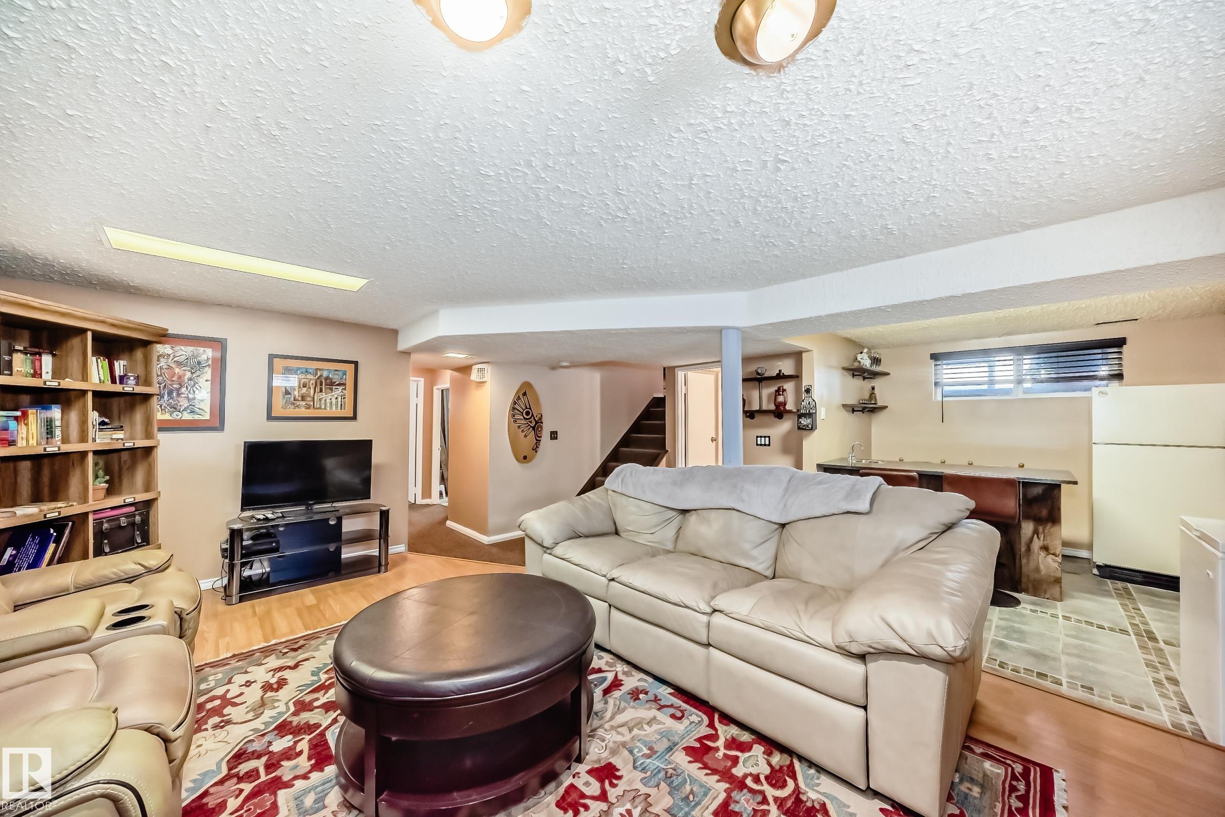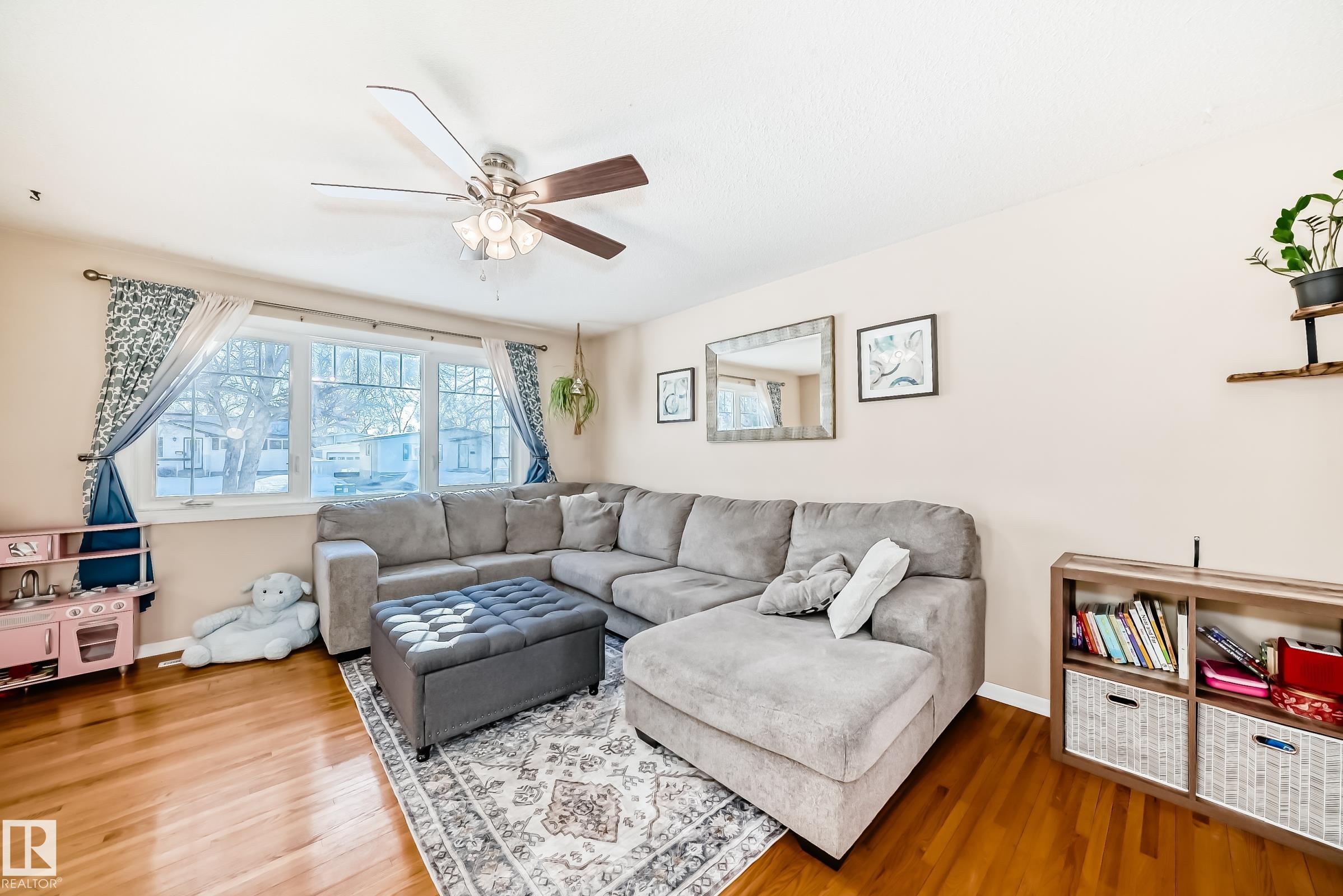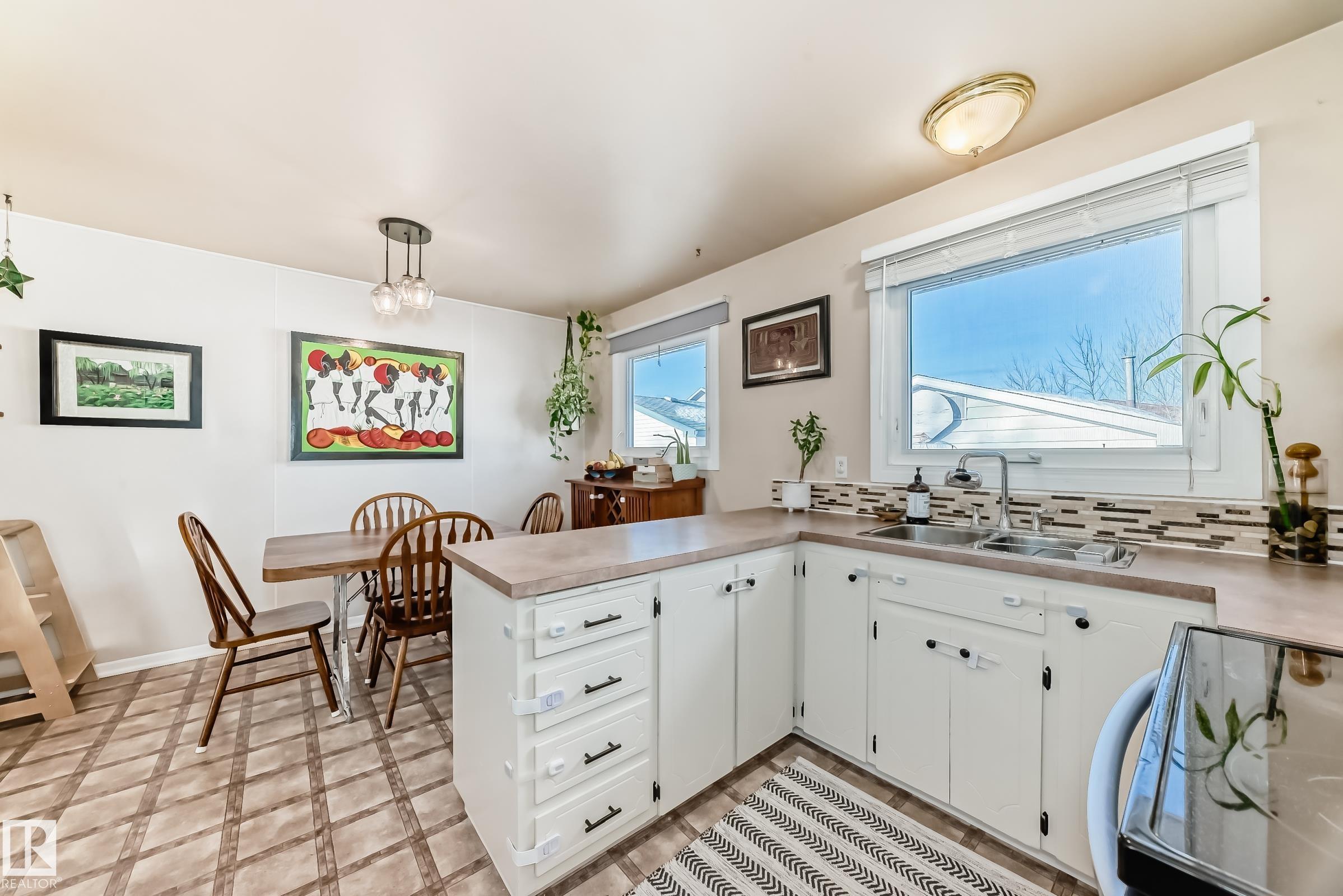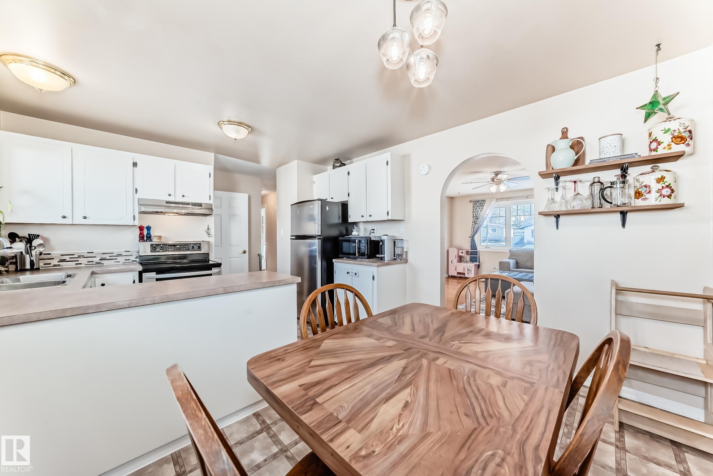UPDATED BUNGALOW IN A QUIET CUL-DE-SAC! This 1,029 sqft bungalow offers 3 bedrooms, 2 baths, and a fully finished basement in a great quiet location close to schools, parks, shopping, and transit. The bright main floor features hardwood flooring, and a spacious living and dining area. Two comfortable bedrooms (used to be 3 and could be changed back) and a full bath complete the main level. The finished basement offers large windows, a spacious family room with fireplace and wet bar, third bedroom, den or office, and another full bath ideal for guests or extra living space. Kitchen, bathroom, doors and more updated approx. 2004. Outside, enjoy the covered deck, large fenced yard, and double garage with 220 power. Major mechanical updates include a new furnace and hot water tank (2024). A move-in ready home in a peaceful neighbourhood. Welcome home!