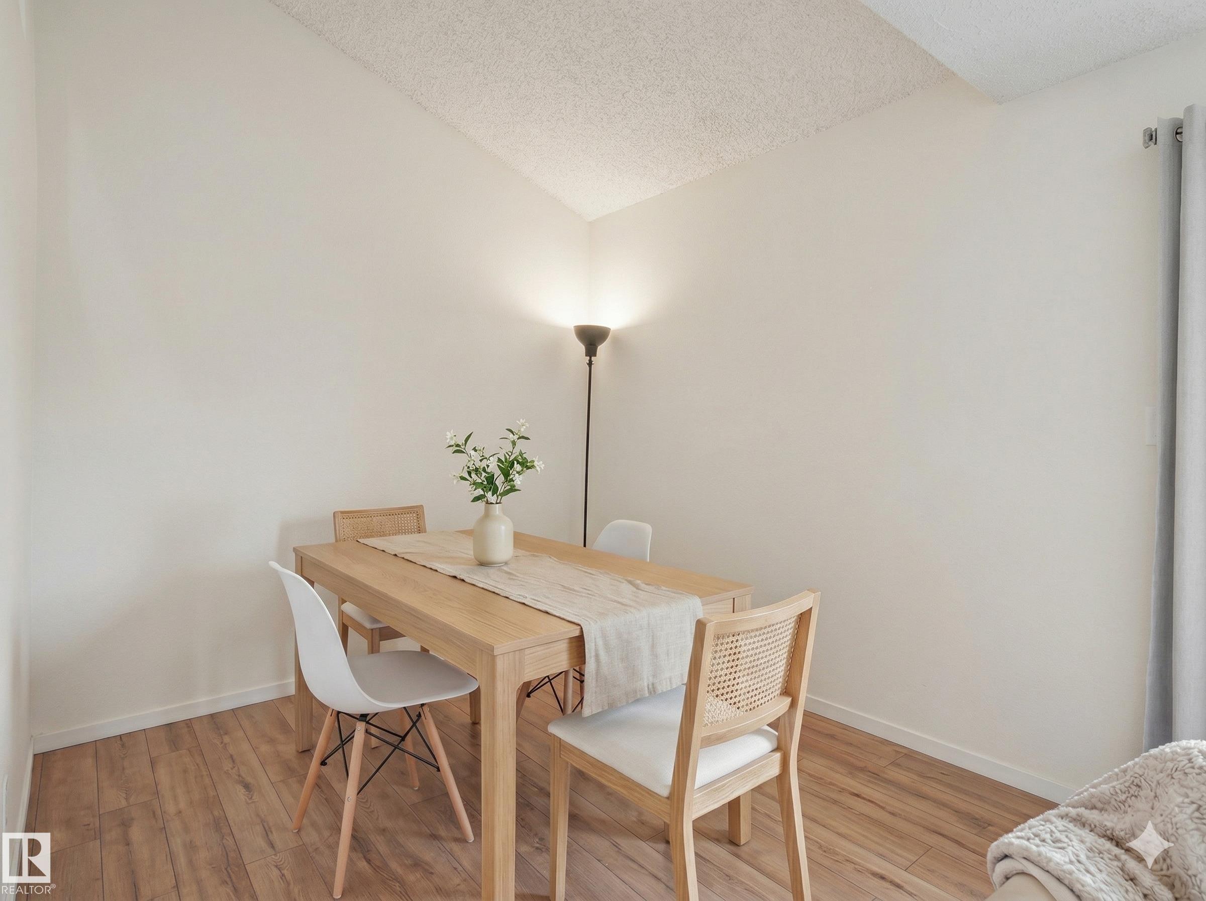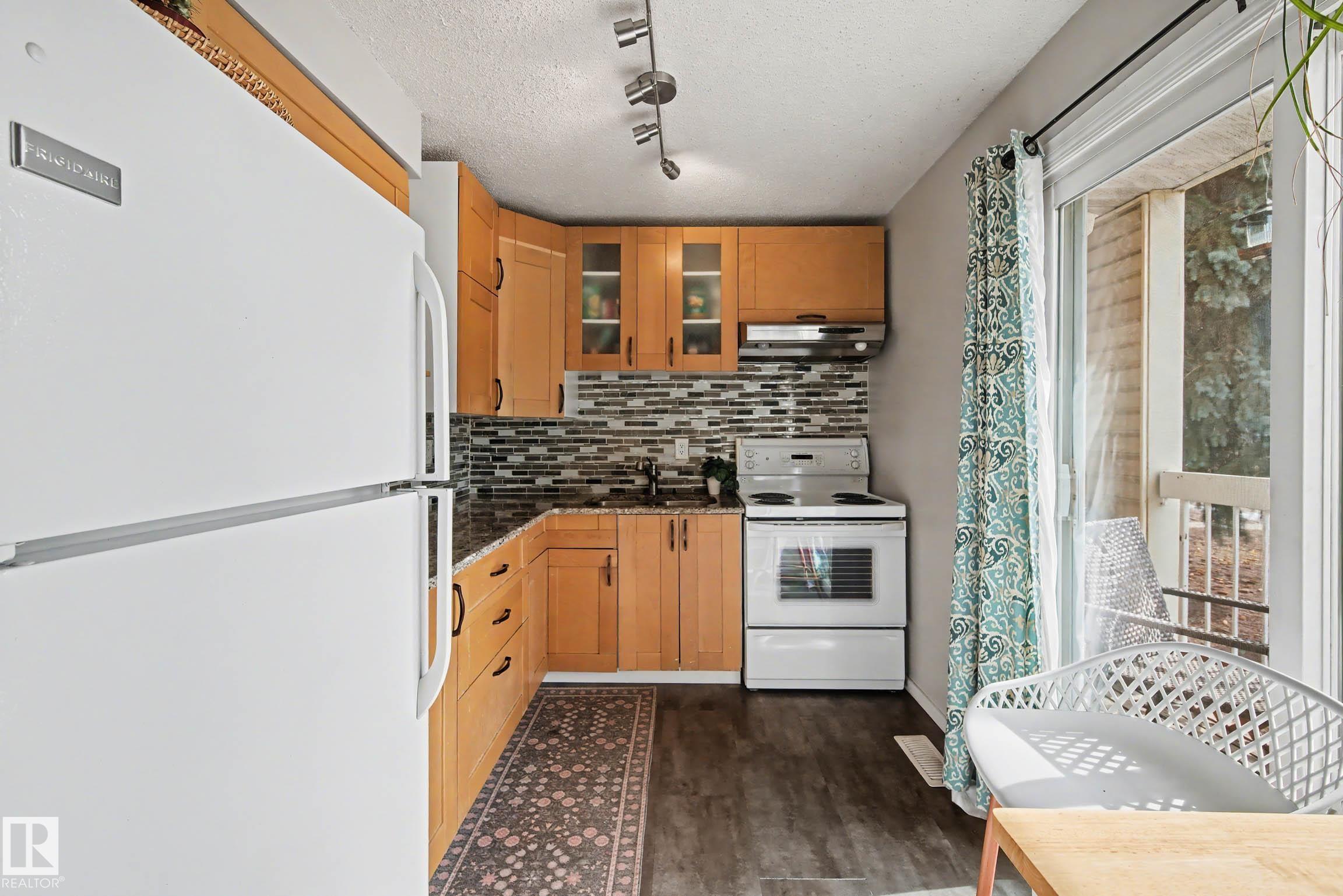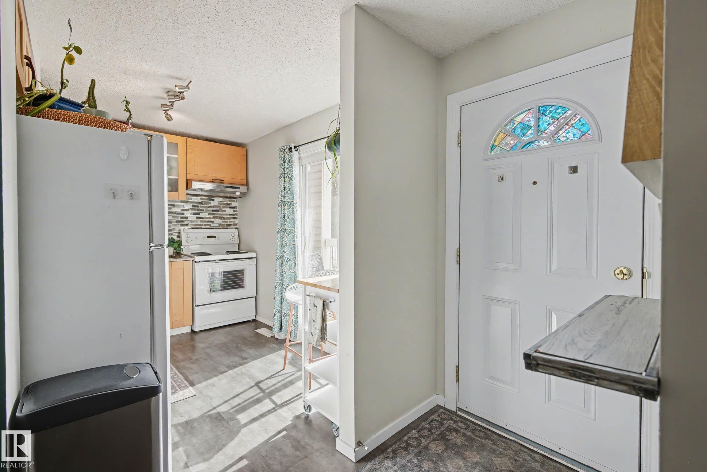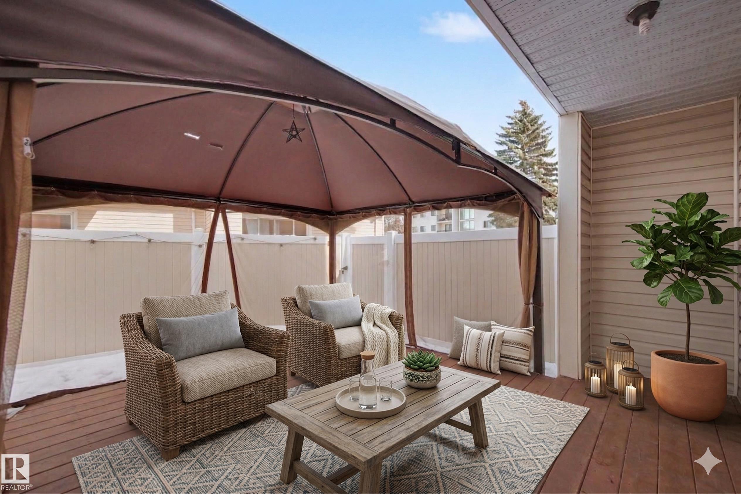 Pet Friendly!! Beautifully maintained 2 bedroom, 2 bathroom end unit offering comfort, convenience, and thoughtful updates throughout (new paint and some new light fixtures)! This bright corner unit features an updated kitchen with modern backsplash, opening to a functional living space perfect for everyday living. Enjoy outdoor living with a new deck, new fence, and a convenient side gate?ideal for easy access on garbage day. The welcoming front porch adds charm, while the energized parking stall is located right out front?no more long winter walks to start your car! Additional storage is found in the basement and under the stairs, providing plenty of space to stay organized. Located in a fantastic area with easy access to Clareview Transit Centre, LRT, schools, shopping, restaurants, and all amenities. A perfect opportunity for first-time buyers, investors, or anyone looking for low-maintenance living in a great location! - some photos are virtually staged