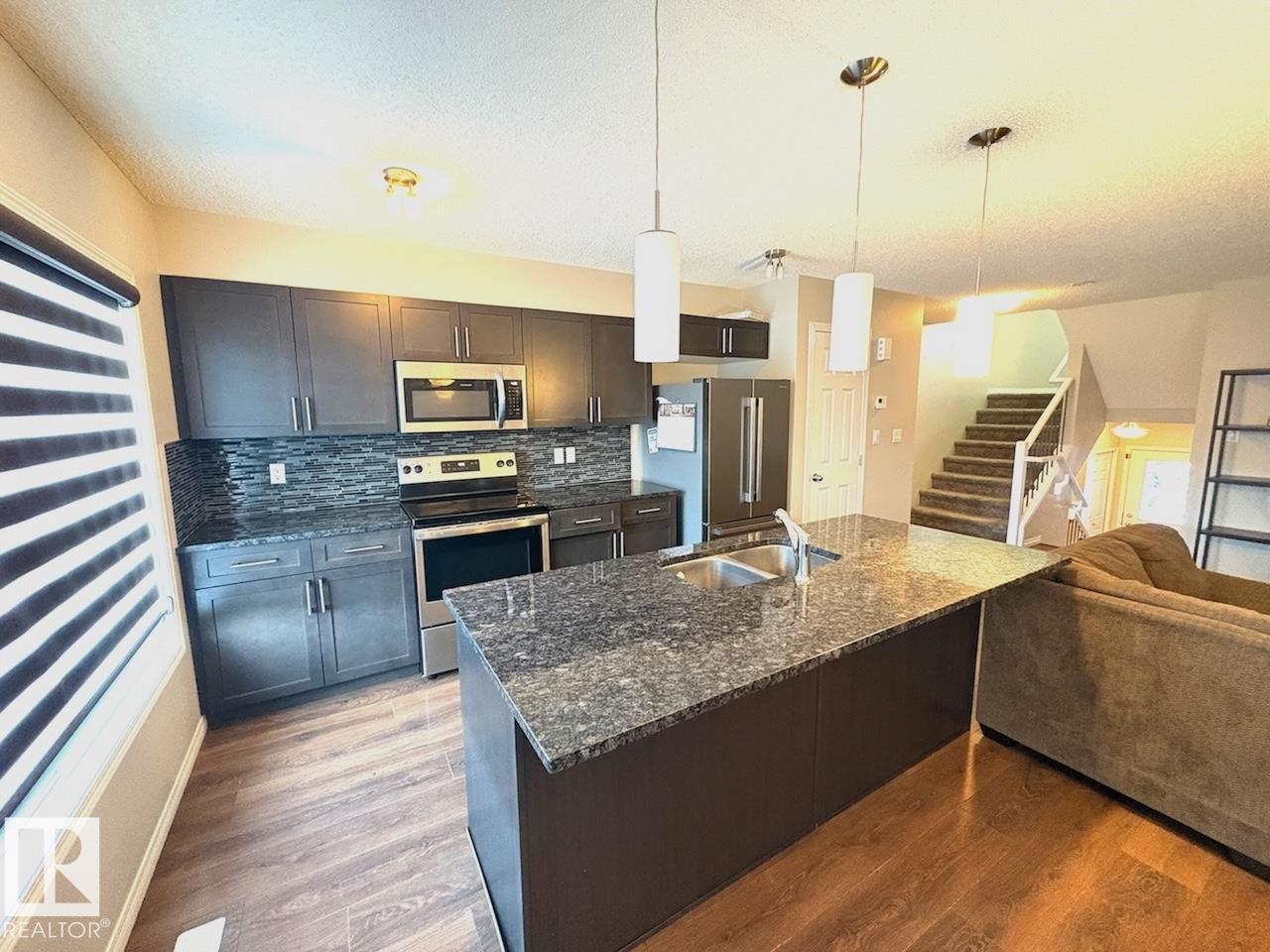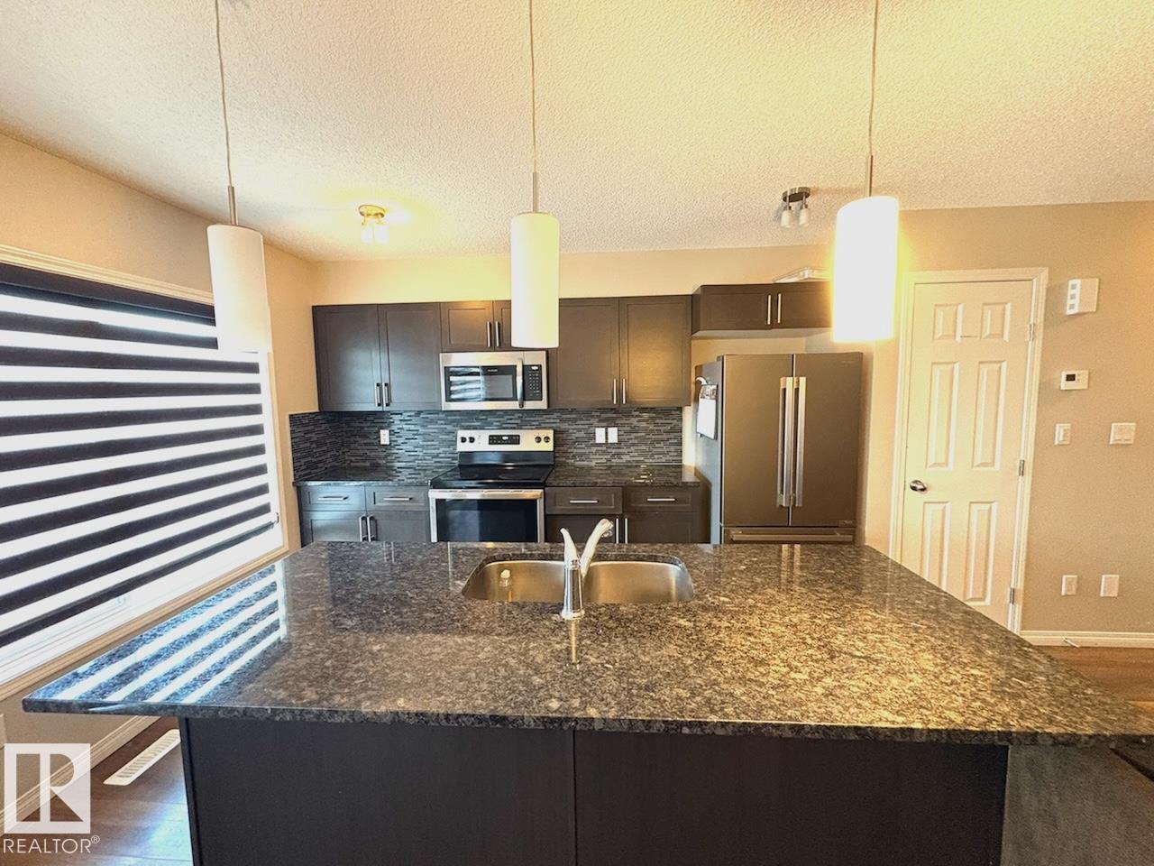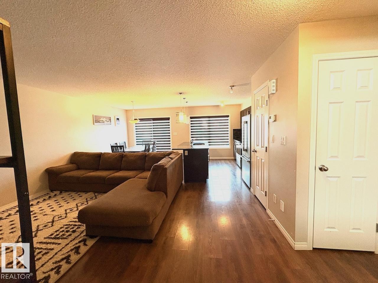 Welcome to this modern, well kept 4 bed, 3.5 bath half duplex in desirable Paisley, SW Edmonton. Featuring a single attached garage and fully finished basement, this home offers space, comfort, and convenience. The main floor boasts a spacious open concept layout with a bright living area, laminate flooring, and a stylish kitchen with upgraded cabinetry, granite countertops, tile backsplash, pantry, island with breakfast bar, and stainless steel appliances. The dining area overlooks a low maintenance deck and fully fenced yard. Perfect for everyday living and entertaining! Upstairs includes a primary bedroom with walk-in closet and 4 piece ensuite, plus two additional bedrooms, a full bath, and convenient upstairs laundry. The finished basement adds a 4th bedroom, full bath, and flex/recreation space. Extras include triple pane windows, central vac rough-in, and great access to transit, parks, schools, and shopping. Tenants pay all utilities. No pets.