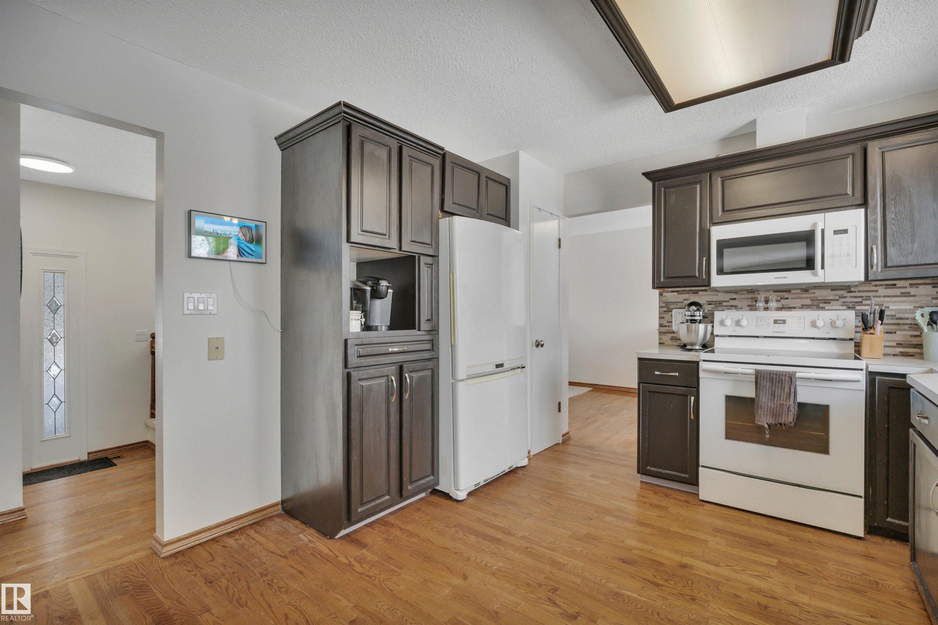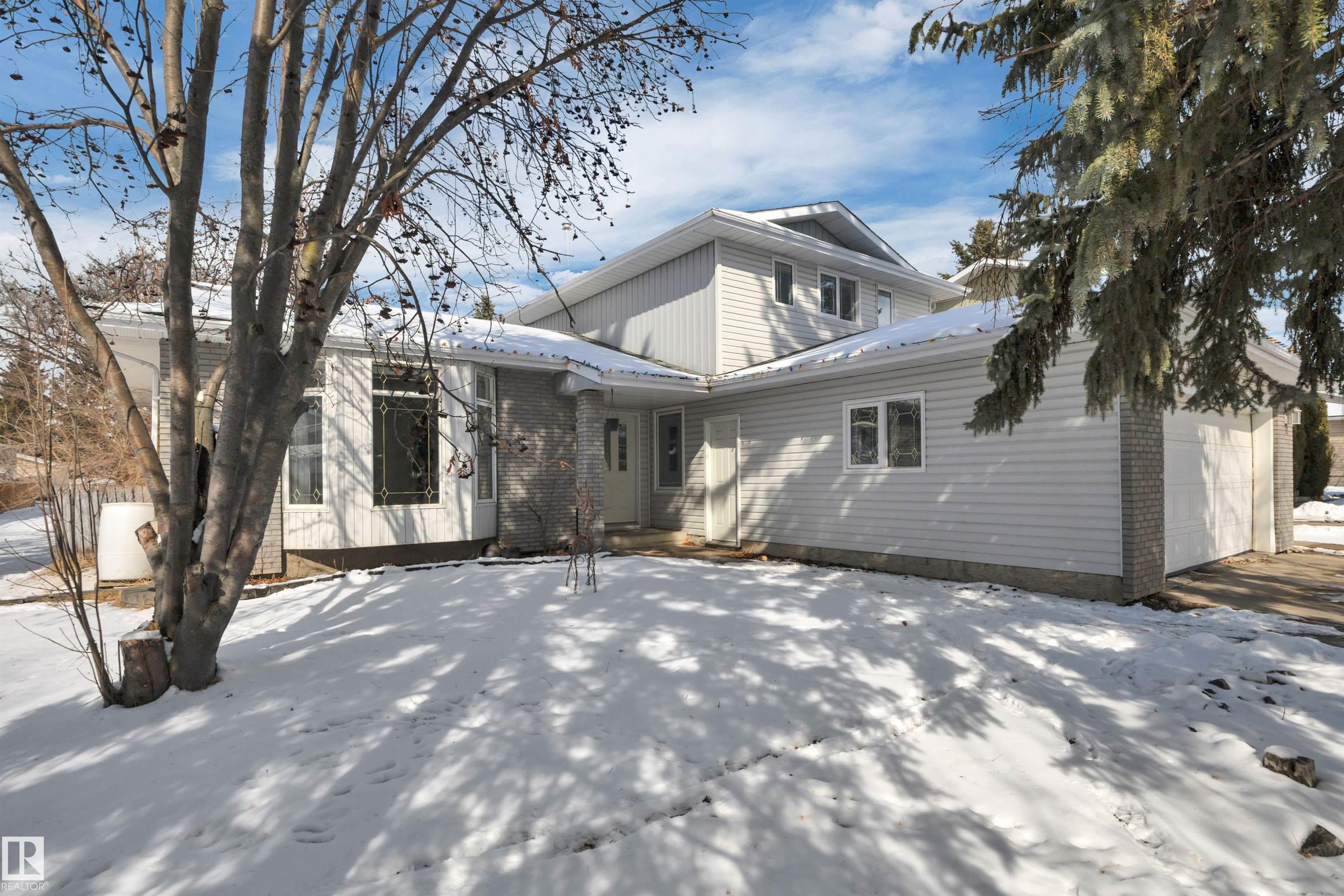 This bright and modern 1 and a Half Storey home in South Park is perfectly situated on a large, landscaped lot backing onto a park. The functional layout is highlighted by a spacious living room with a large bow window and oak kitchen. The main floor offers a sunken family room with a brick fireplace and double garden doors, alongside a versatile den or bedroom and convenient laundry. Three bedrooms up and two down. Two high-efficiency furnaces, a newer hot water tank, roughed in central vacuum system. Outside, enjoy a private backyard with side alley RV parking and an attached double garage. Welcome Home!