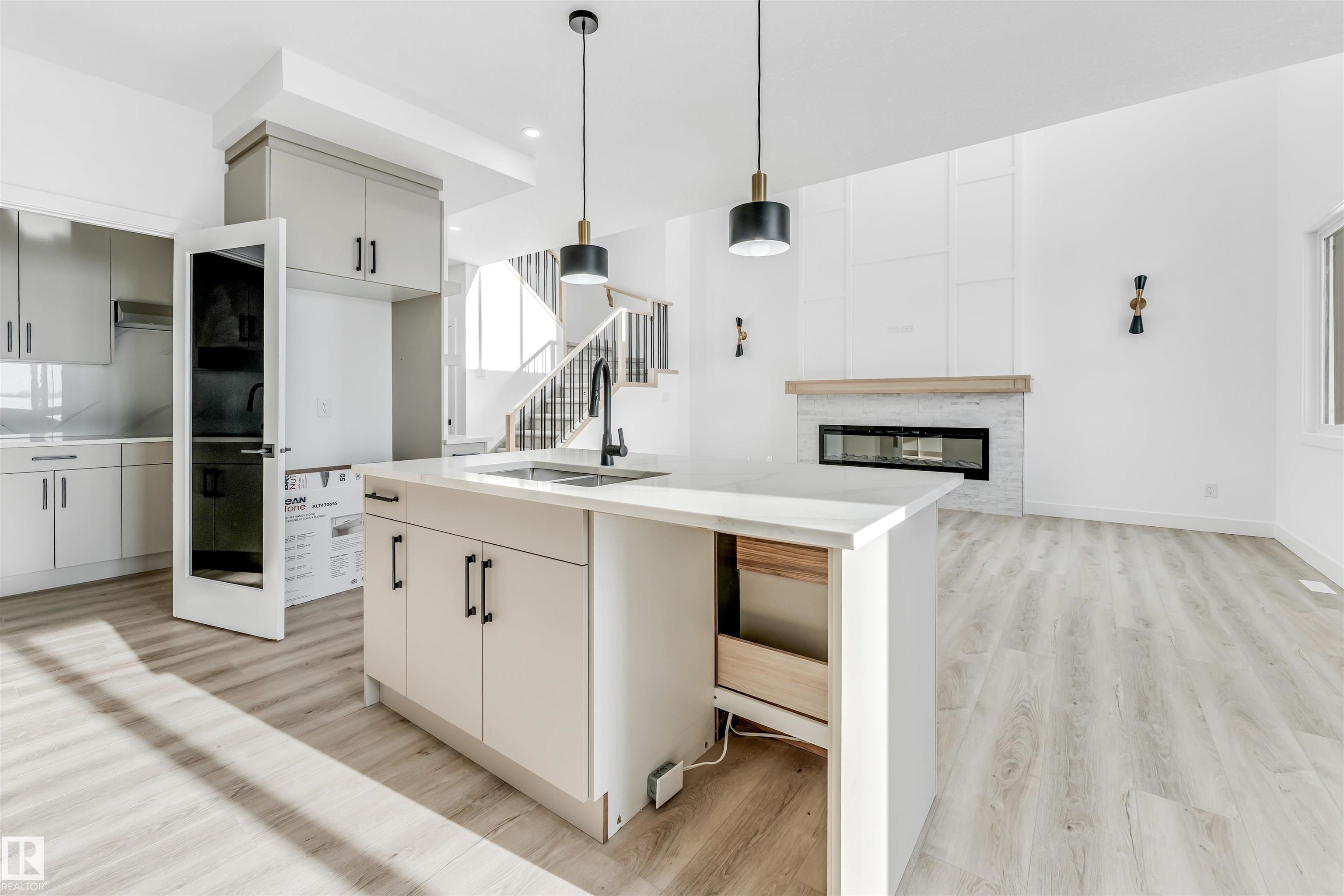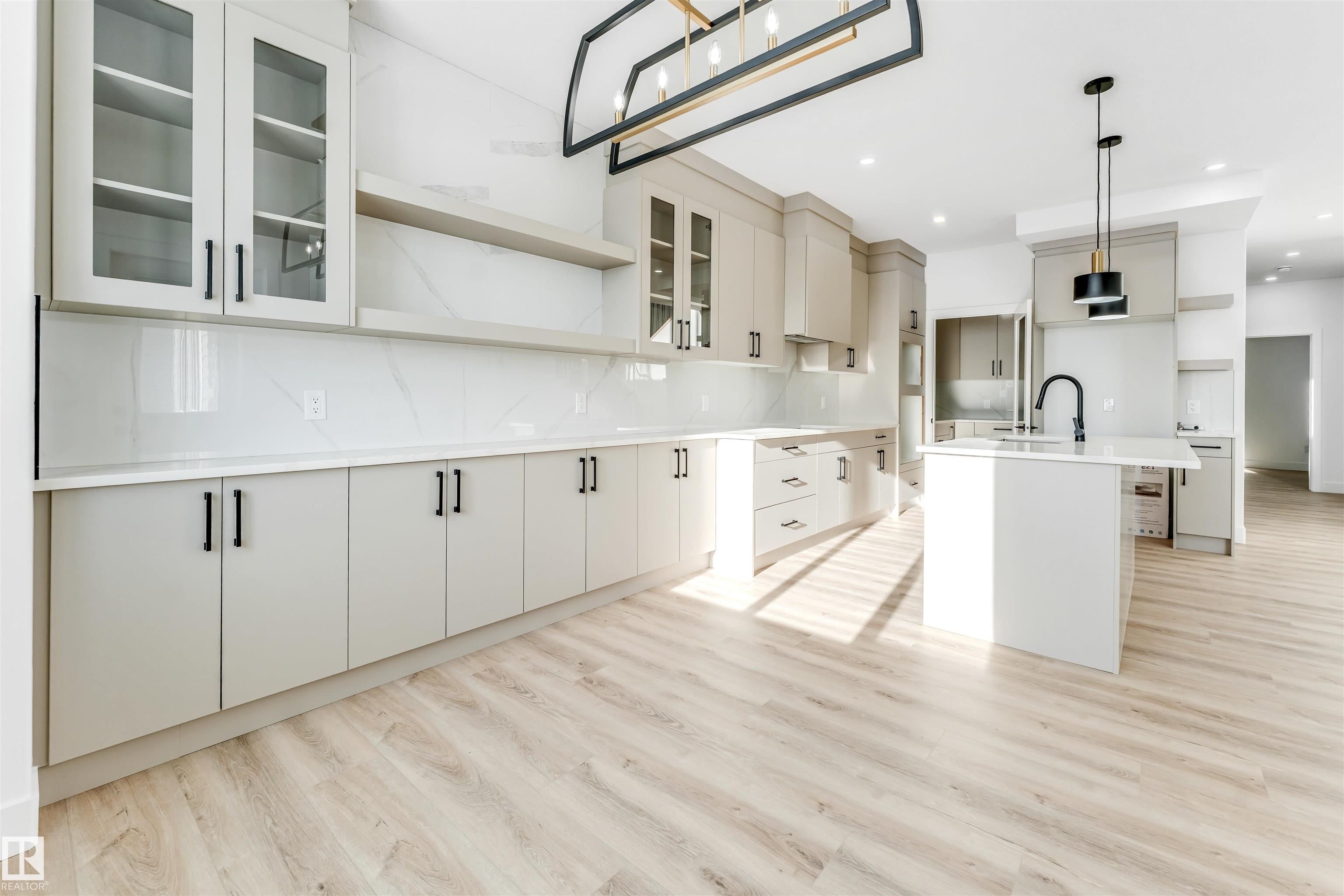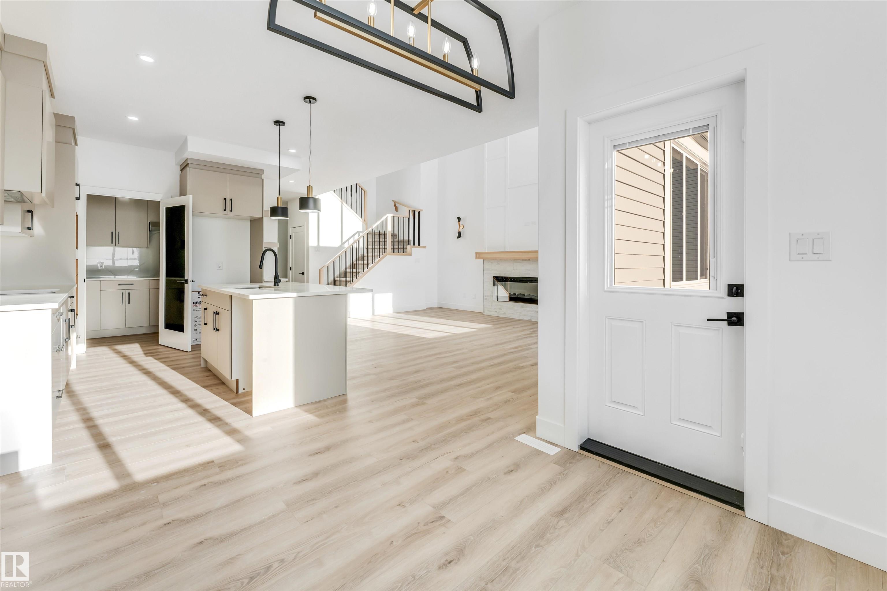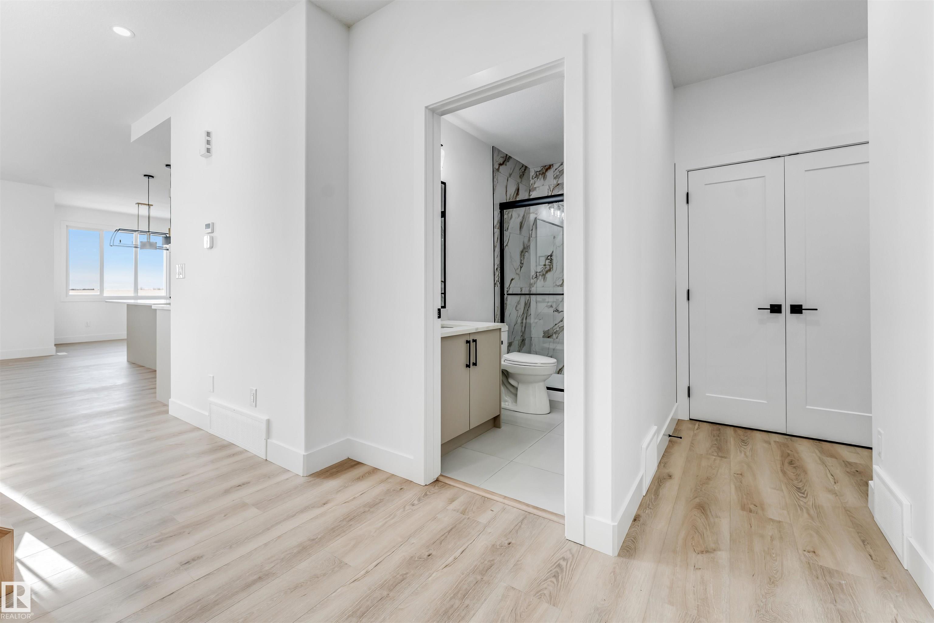 Welcome to this stunning 2,380 sq ft brand-new home situated on a pie-shaped 5,700+ sq ft lot, offering a spacious backyard perfect for outdoor enjoyment. Conveniently located just a short 2-minute walk to the school, this home combines comfort and practicality in an ideal setting. Thoughtfully designed, the main floor features a bedroom and full bathroom, perfect for guests or extended family. The fully extended kitchen is complemented by a dedicated spice kitchen, providing both functionality and style. The impressive open-to-above living area allows an abundance of natural light to fill the space throughout the day. Upstairs, you?ll find four additional bedrooms, including a luxurious primary suite with double-door entry leading into the ensuite and seamlessly connected walk-in closet. Premium finishes are showcased throughout the home, including quartz countertops, luxury vinyl plank flooring, elegant spindle railings, and feature walls, delivering a refined and modern living experience.