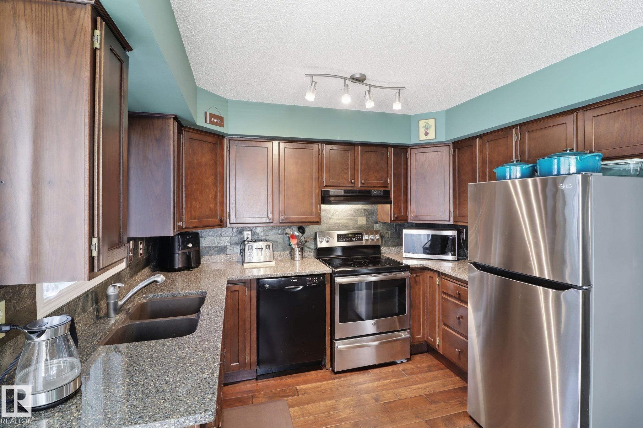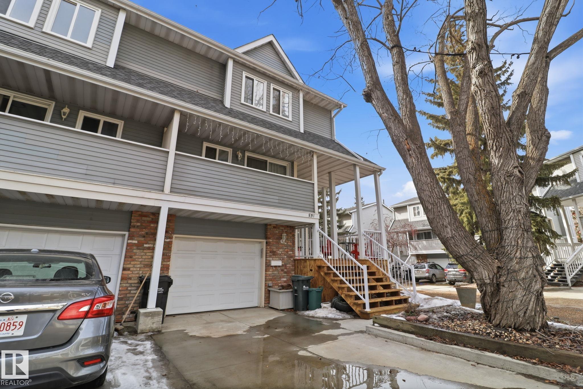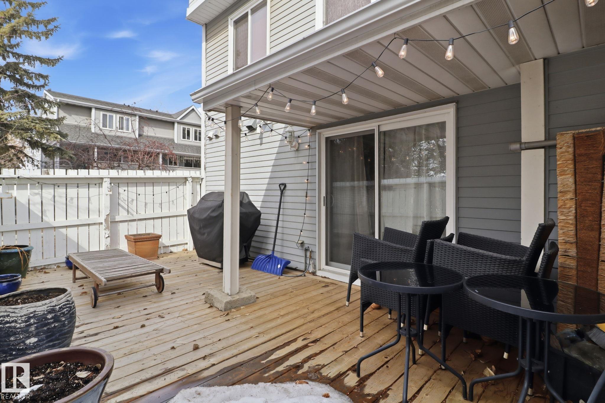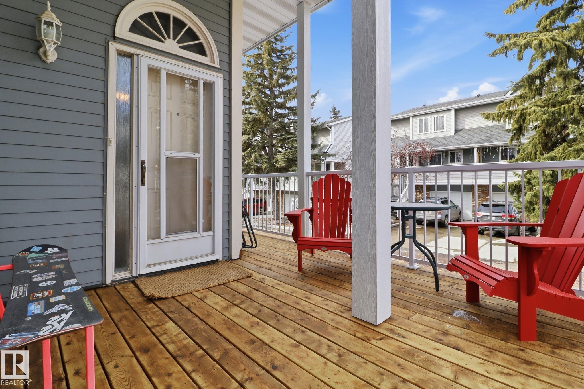 Welcome to this exquisite and well-kept townhome steps from everything Woodbridge Farms Community offers. This unique multi-level layout features an inviting main floor with an open dining area at the centre of the home. The kitchen includes ample cabinetry, GRANITE COUNTERTOPS, SS APPLIANCES and a bright breakfast nook, while the sunken living room adds charm with its wood-burning FIREPLACE. Upstairs are three comfortable bedrooms, including a spacious primary with an ensuite. The lower level offers a VERSATILE REC ROOM, 2-piece bath, laundry and WALKOUT access to a sunny, PRIVATE FENCED PATIO. Enjoy multiple outdoor spaces; a BALCONY off the kitchen, a partially covered WRAP-AROUND FRONT DECK and the SECLUDED PATIO off the rec room. Keep your car warm in your very own SINGLE ATTACHED GARAGE with lots of shelving. Ideally located across from the Woodbridge Farms walking trails and within walking distance to the golf course, parks, schools and amenities. A must-see home in a highly walkable community!