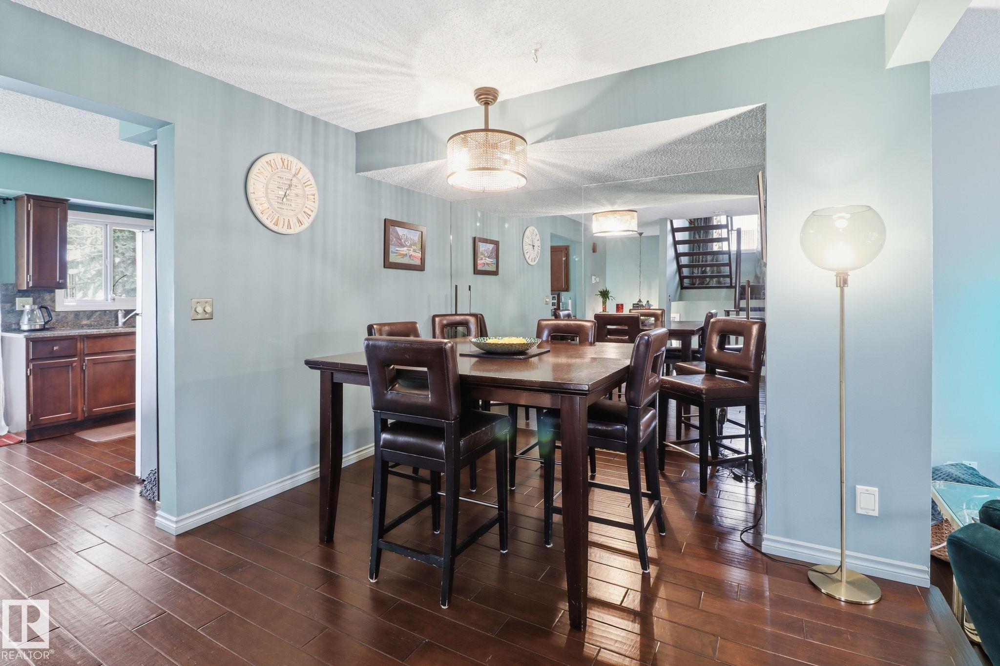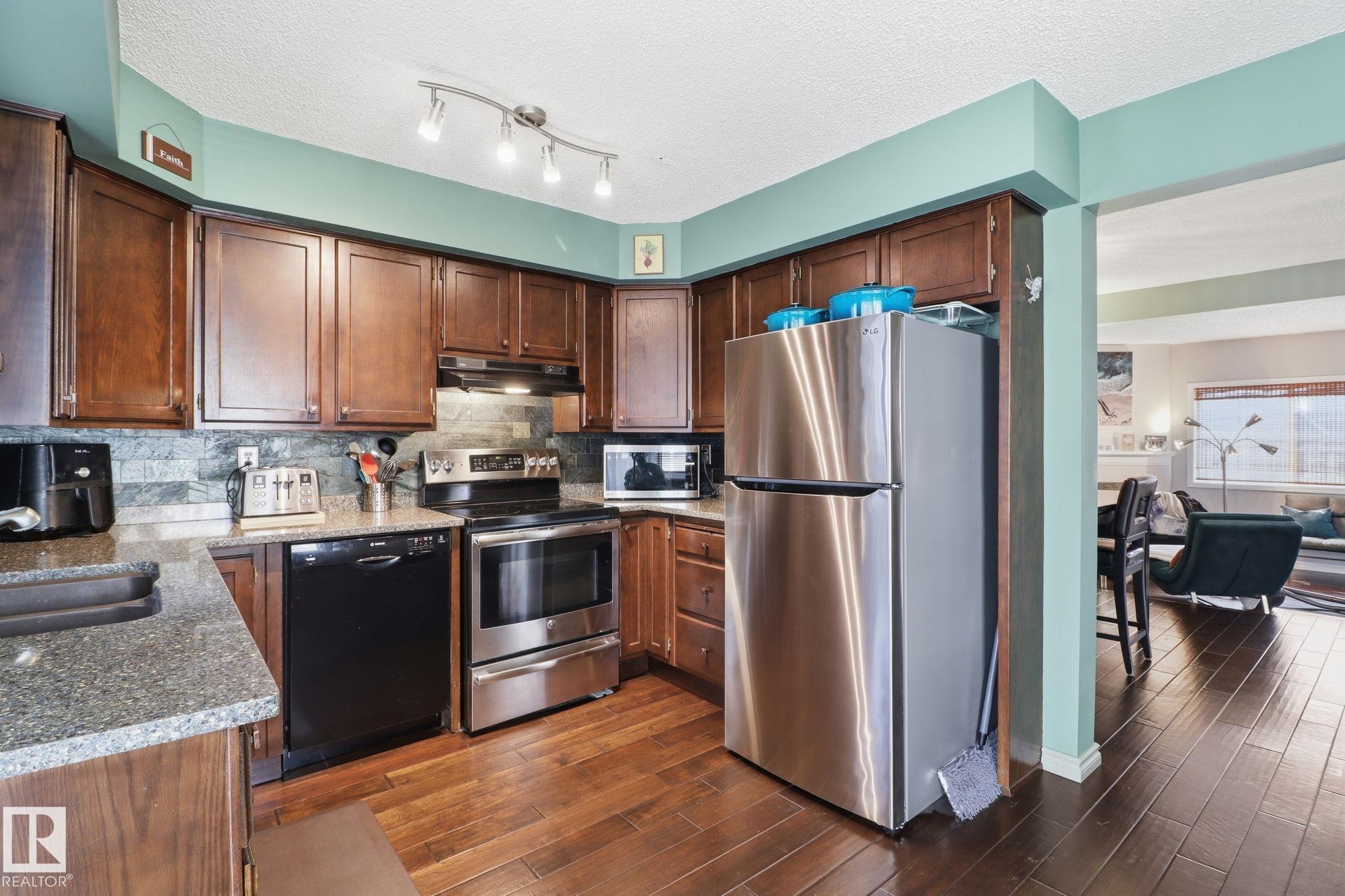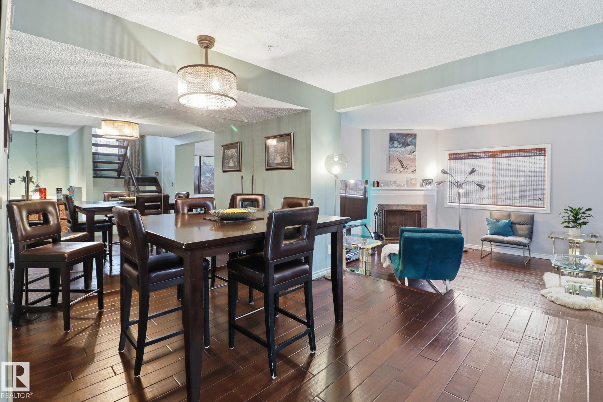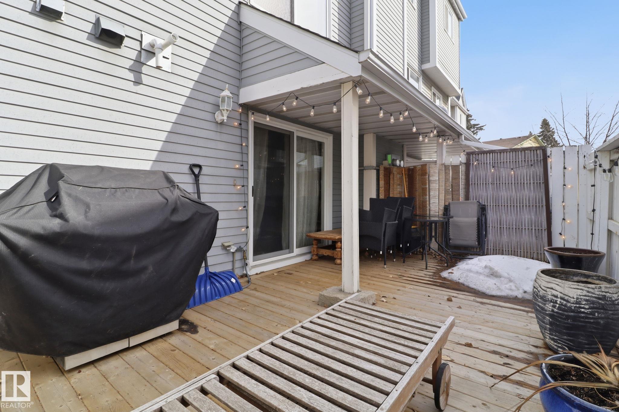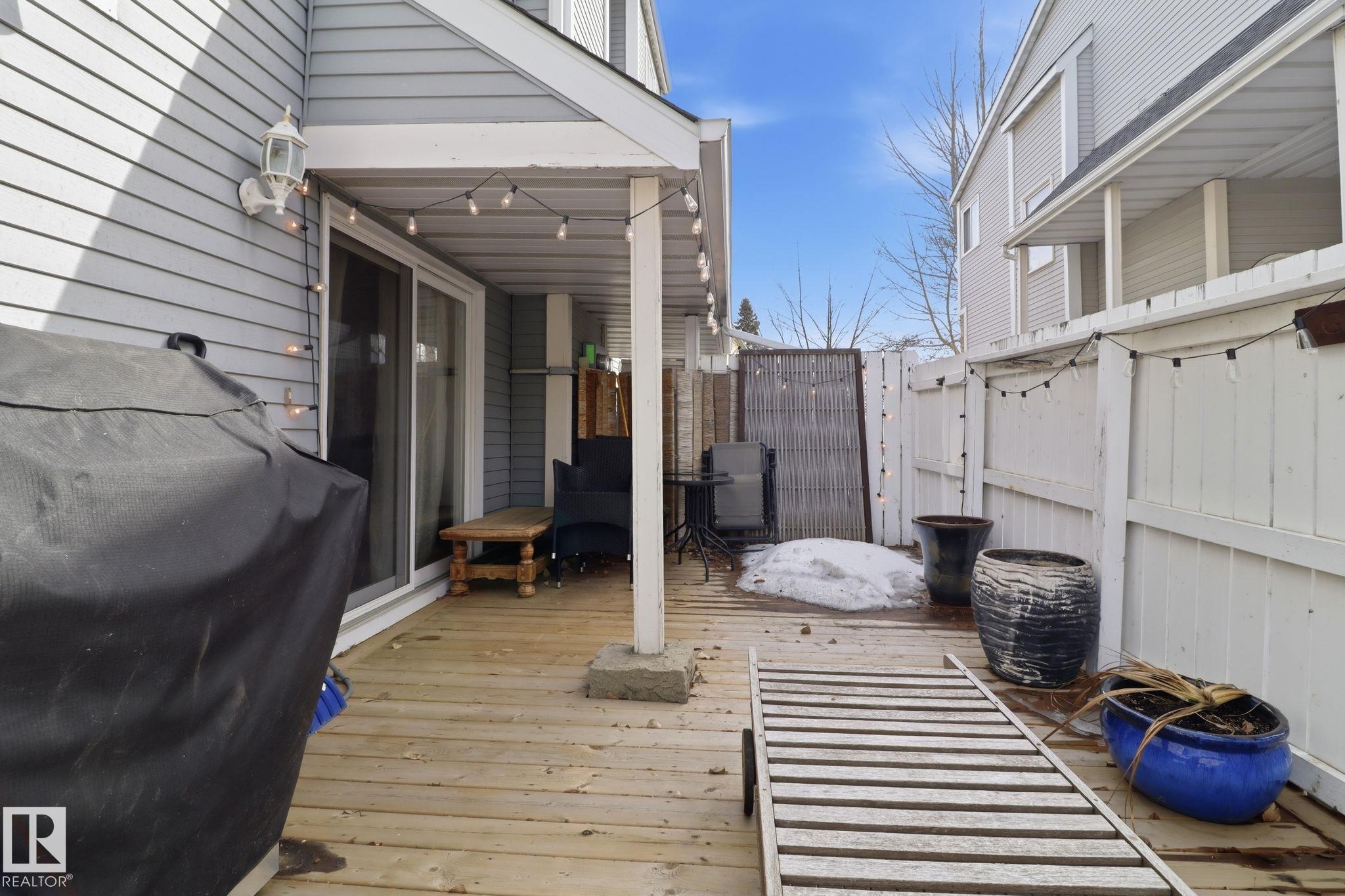 Welcome to this exquisite and well-kept townhome steps from everything Woodbridge Farms Community offers. This unique multi-level layout features an inviting main floor with an open dining area at the centre of the home. The kitchen includes ample cabinetry, GRANITE COUNTERTOPS, SS APPLIANCES and a bright breakfast nook, while the sunken living room adds charm with its wood-burning FIREPLACE. Upstairs are three comfortable bedrooms, including a spacious primary with an ensuite. The lower level offers a VERSATILE REC ROOM, 2-piece bath, laundry and WALKOUT access to a sunny, PRIVATE FENCED PATIO. Enjoy multiple outdoor spaces; a BALCONY off the kitchen, a partially covered WRAP-AROUND FRONT DECK and the SECLUDED PATIO off the rec room. Keep your car warm in your very own SINGLE ATTACHED GARAGE with lots of shelving. Ideally located across from the Woodbridge Farms walking trails and within walking distance to the golf course, parks, schools and amenities. A must-see home in a highly walkable community!
