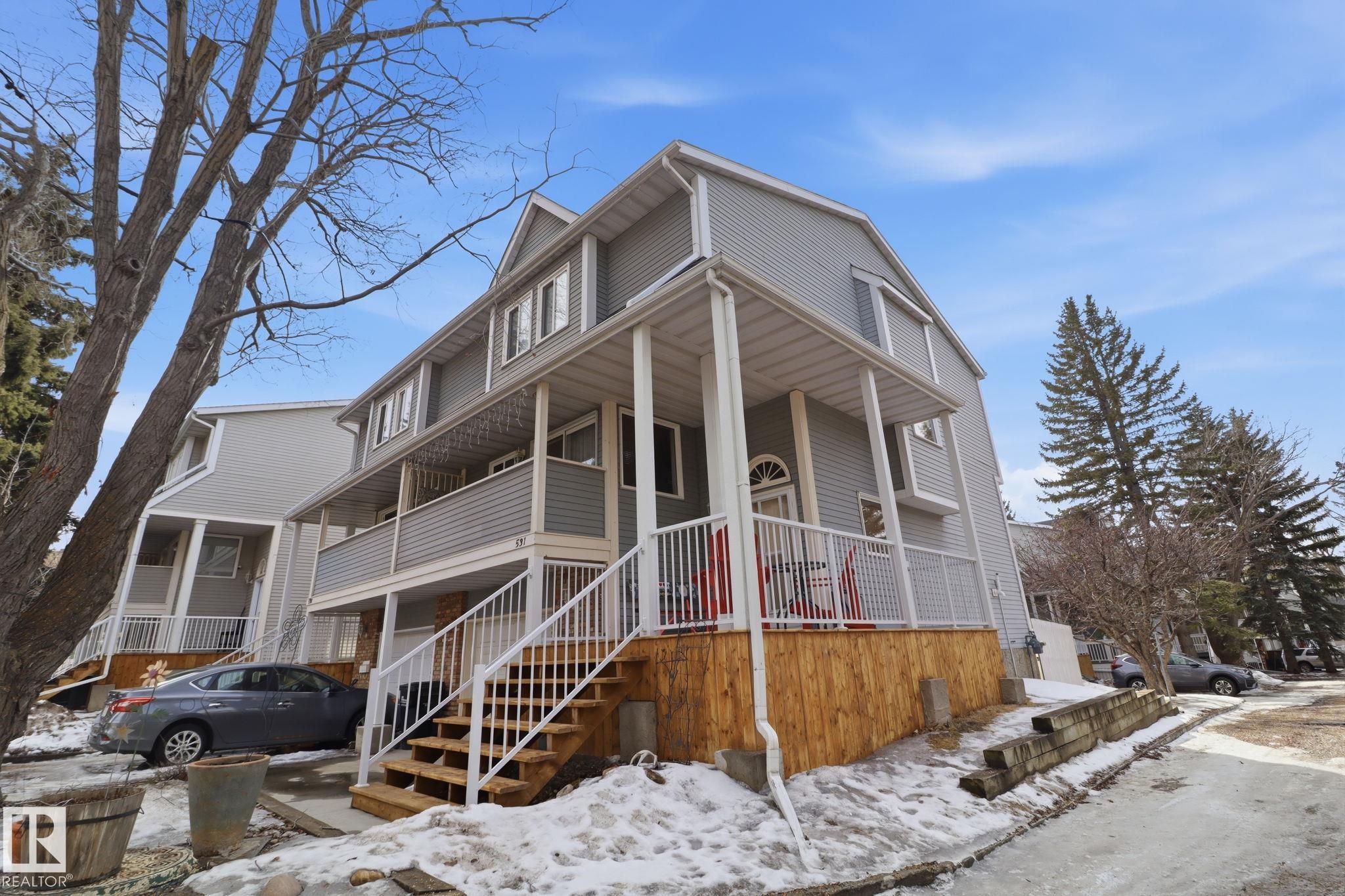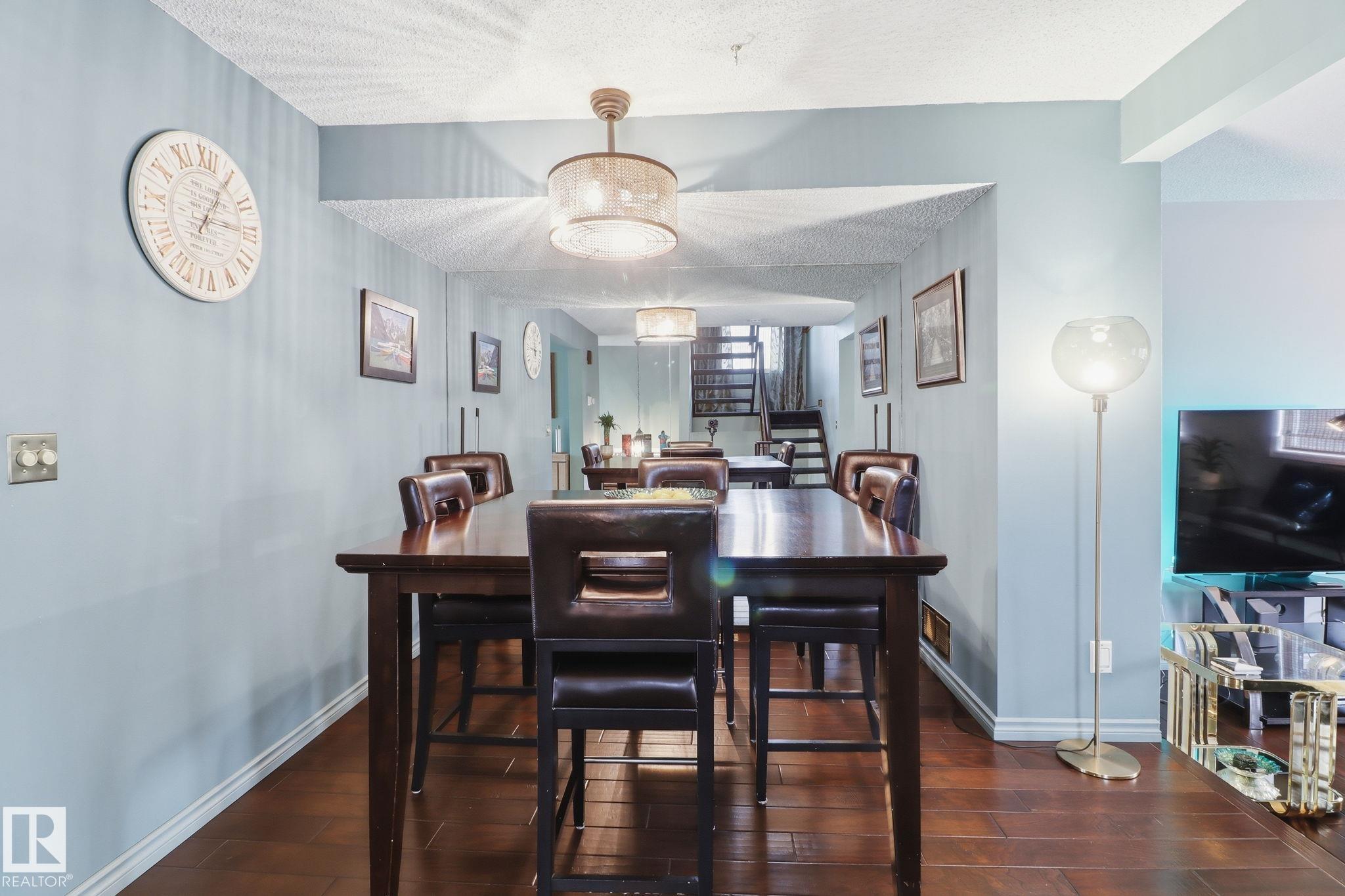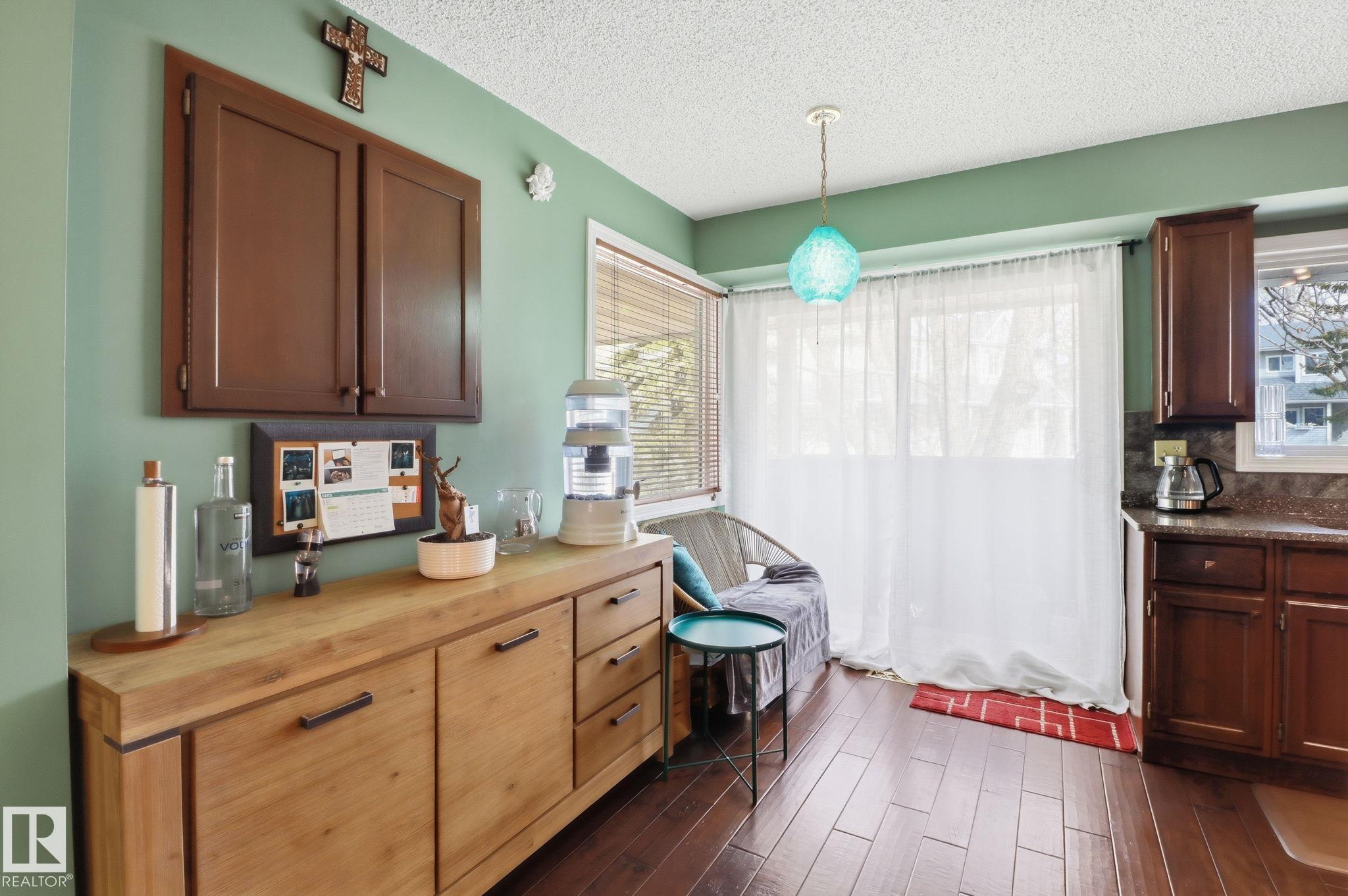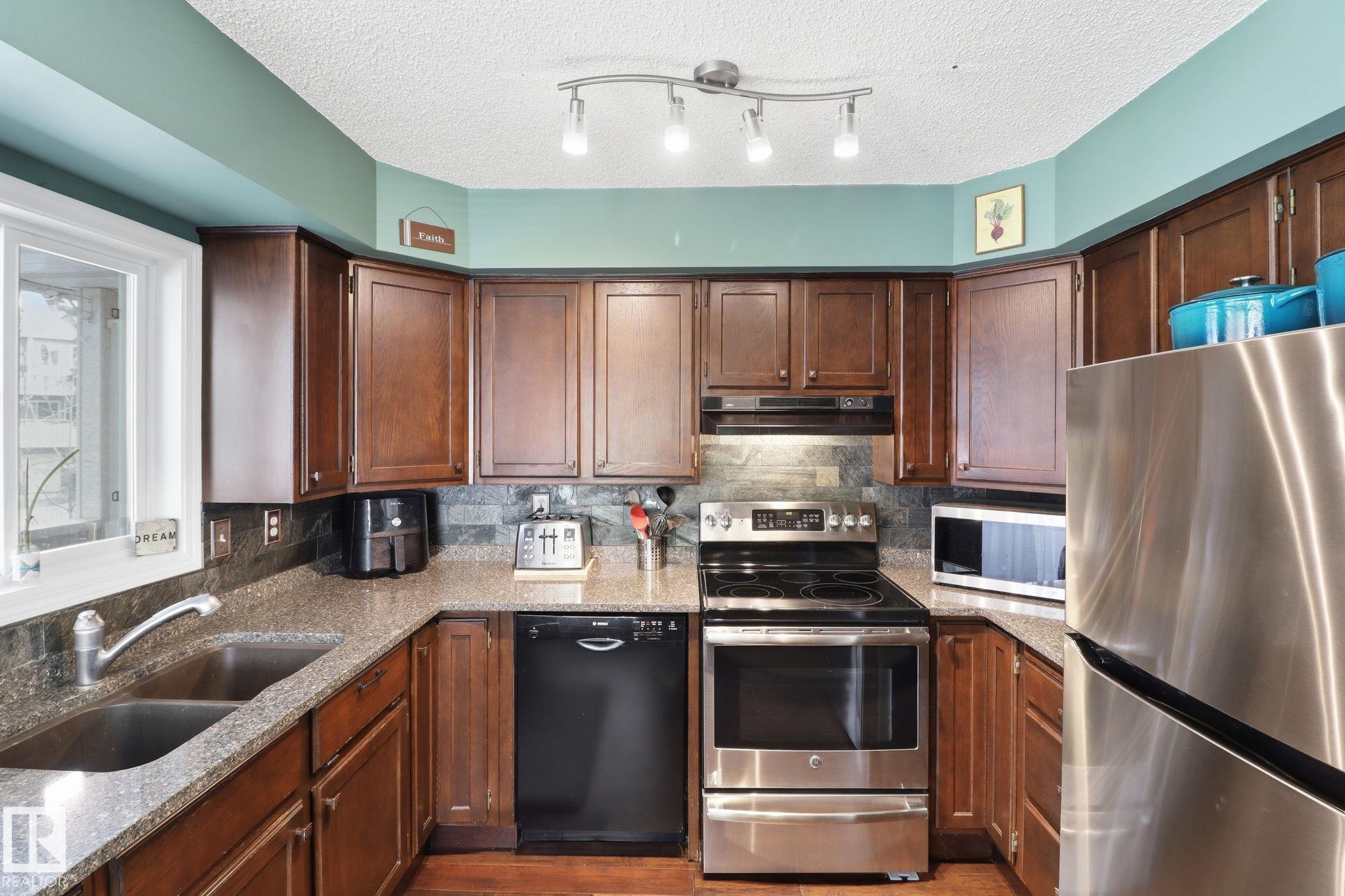 Welcome to this exquisite and well-kept townhome steps from everything Woodbridge Farms Community offers. This unique multi-level layout features an inviting main floor with an open dining area at the centre of the home. The kitchen includes ample cabinetry, GRANITE COUNTERTOPS, SS APPLIANCES and a bright breakfast nook, while the sunken living room adds charm with its wood-burning FIREPLACE. Upstairs are three comfortable bedrooms, including a spacious primary with an ensuite. The lower level offers a VERSATILE REC ROOM, 2-piece bath, laundry and WALKOUT access to a sunny, PRIVATE FENCED PATIO. Enjoy multiple outdoor spaces; a BALCONY off the kitchen, a partially covered WRAP-AROUND FRONT DECK and the SECLUDED PATIO off the rec room. Keep your car warm in your very own SINGLE ATTACHED GARAGE with lots of shelving. Ideally located across from the Woodbridge Farms walking trails and within walking distance to the golf course, parks, schools and amenities. A must-see home in a highly walkable community!