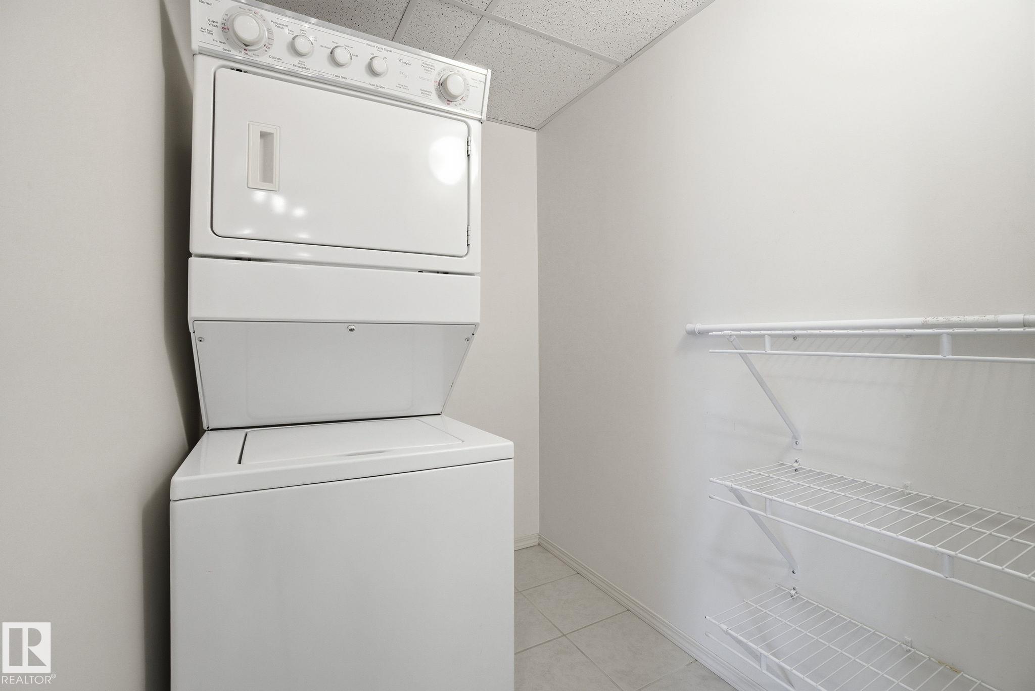 RARE FIND: TWO heated, underground titled parking stalls included! Top-floor 2 bedroom, 2 bathroom condo in the desirable quite and family-friendly Callingwood community. Open-concept layout with tiled entry, breakfast bar, and a spacious living area featuring an electric fireplace. Primary bedroom includes a 4-piece ensuite, with a second bedroom and 3-piece bathroom on the opposite side for added privacy. Large laundry room with extra storage. Enjoy a quiet west-facing balcony overlooking the back of the complex, not a parking lot. Walking distance to shopping, library, schools and recreation facilities.