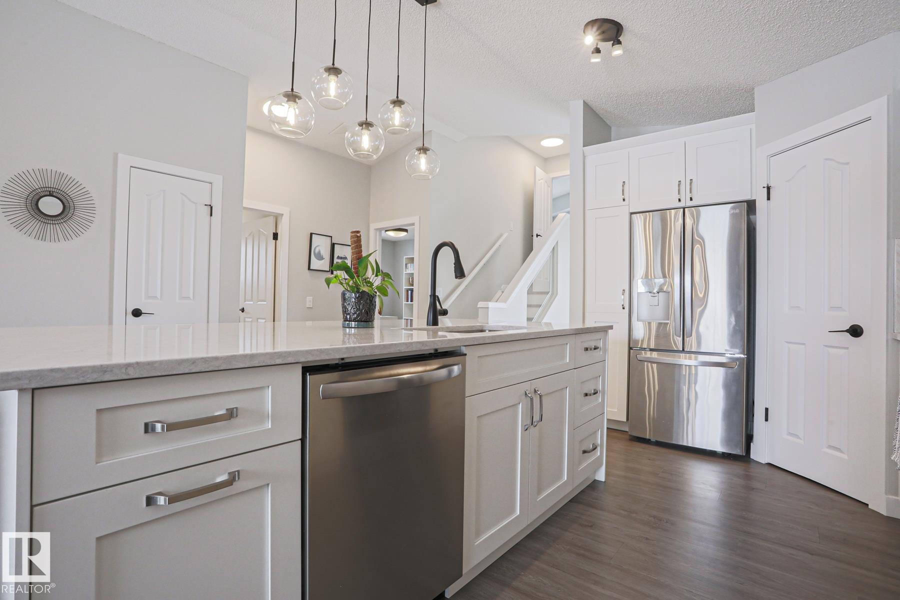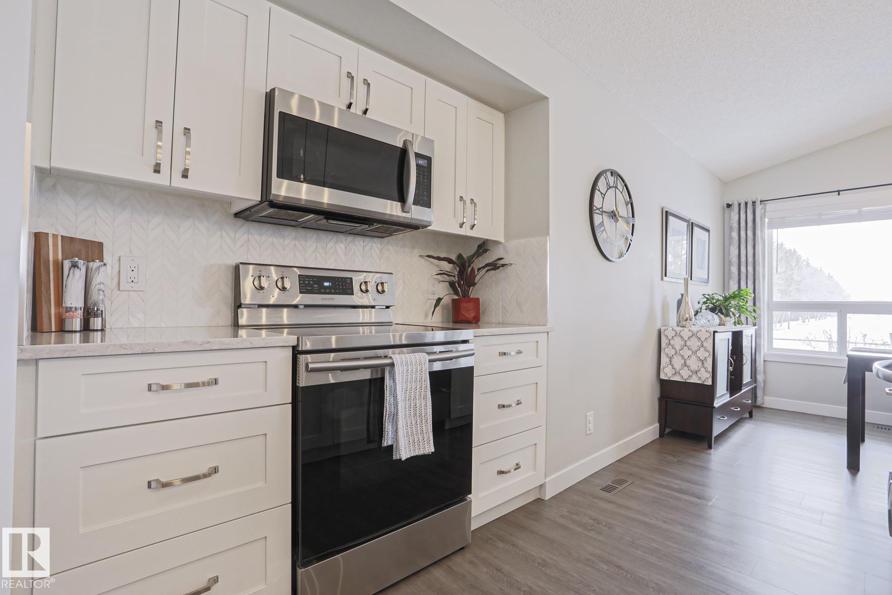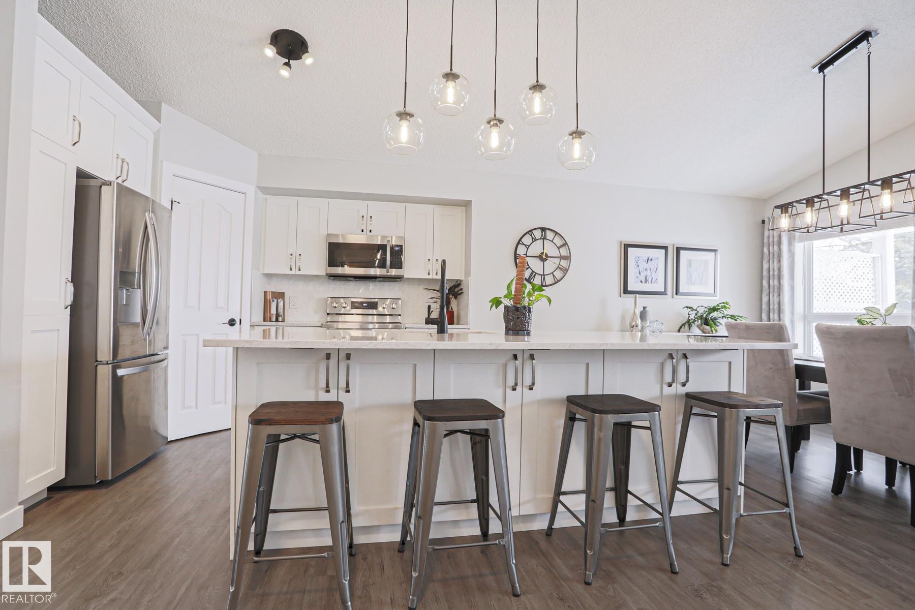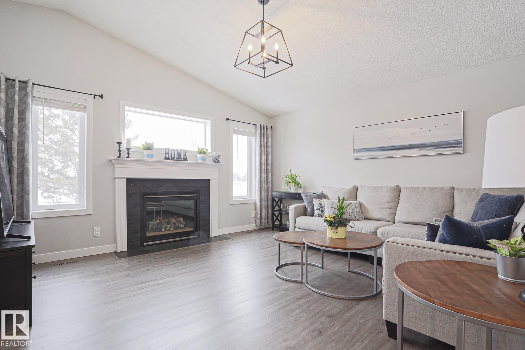 Welcome to this truly TURN KEY home. This OPEN CONCEPT, VAULTED CEILING, FULLY RENOVATED home boasts a SPACIOUS KITCHEN, with LARGE ISLAND, CORNER PANTRY and stainless steel appliances. The DINING AREA allows for an EXPANSIVE table for ENTERTAINING and FAMILY HOLIDAYS. The ENORMOUS living room features a GAS FIREPLACE with a VIEW of the PARK. On the main floor find ONE BEDROOM and the stairs leading to the SPACIOUS PRIMARY SUITE! The suite has a WALK-IN-CLOSET with ORGANIZER, SEPARATE SOAKER TUB and SHOWER. The LOWER LEVEL has that sought after REC ROOM, FULL BATHROOM and TWO additional BEDROOOMS. Major UPGRADES include : 2025 FURNACE, 2022 up grades include; KITCHEN, BATHROOMS, VINYL PLANK THROUGHOUT, BLINDS, CLOSET ORGANIZER in PRIMARY and NEW LANDSCAPING FRONT & BACK yard, 2021 HWT. This home is located MINUTES from SCHOOLS, SHOPPING, TRAILS and is a quick commute to RAY GIBBON DRIVE.
