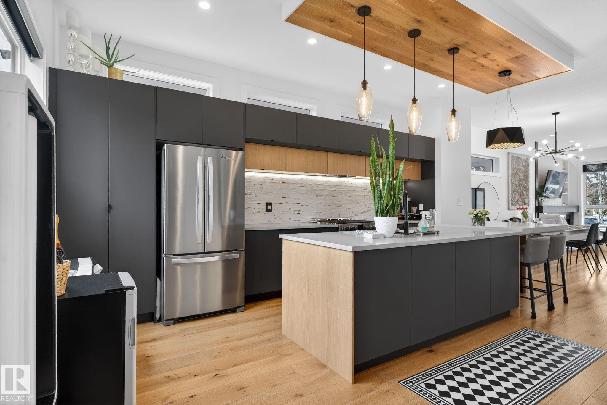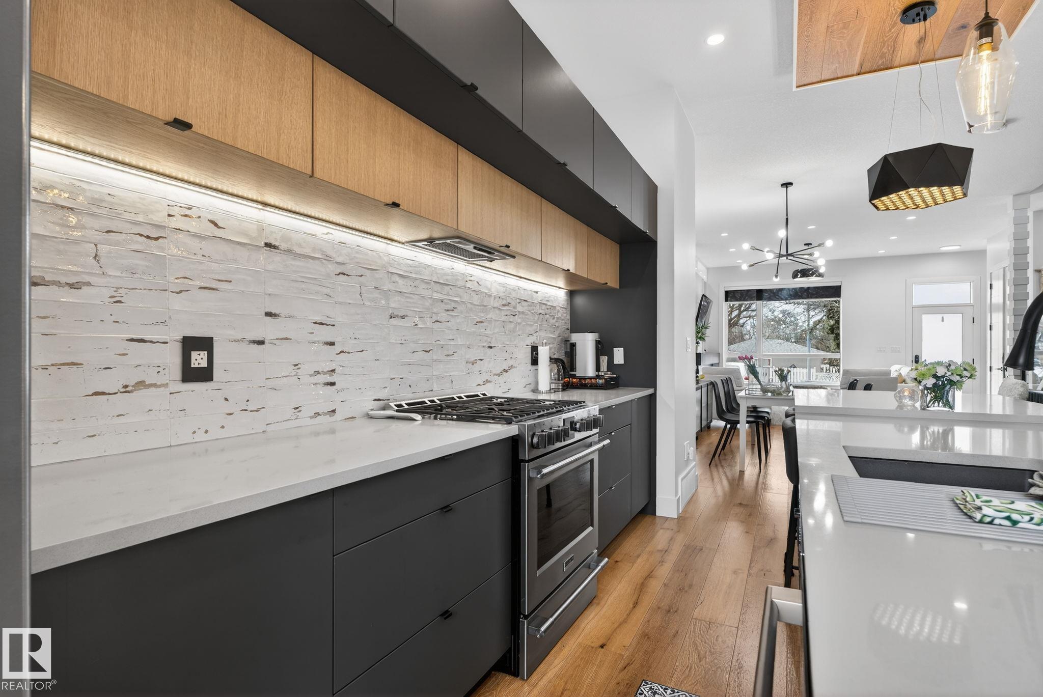 This centrally located, modern infill in the heart of Idylwylde sits along a beautiful, canopy tree-lined streets. Designed with meticulous attention to detail, the home offers timeless finishes and a functional floor plan packed with luxury upgrades, making it perfect for a growing family or a professional couple. The interior showcases engineered hardwood floors, a custom lighting package, upgraded fixtures, and custom-designed cabinetry. At the heart of the home is an oversized chef's kitchen featuring high-end appliances, a gas stove, a large island with seating for four, and a spacious area for dining and entertaining. Offering over 2700 square feet of fully developed living space, the layout includes three upstairs bedrooms, 3.5 baths, and a fully finished basement (with a separate entrance) complete with a second kitchen. Just a short 10-minute drive to downtown or Whyte Ave, this incredible property is finished with a stunning exterior and a double detached garage.