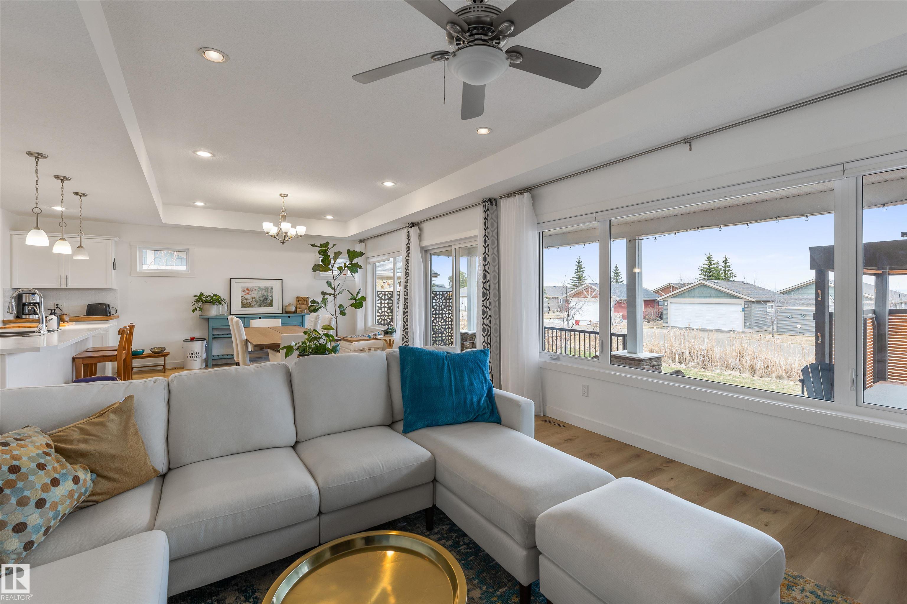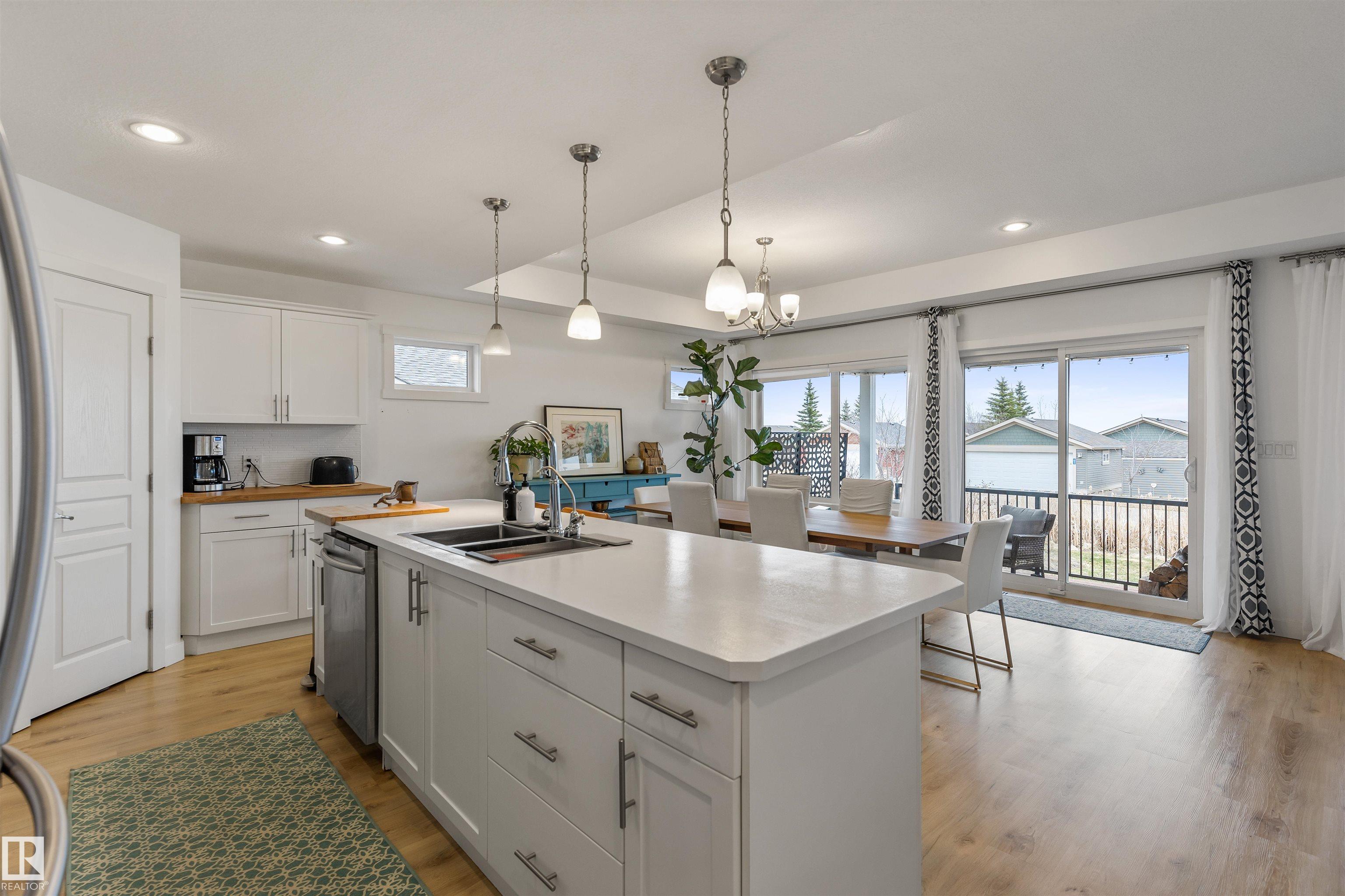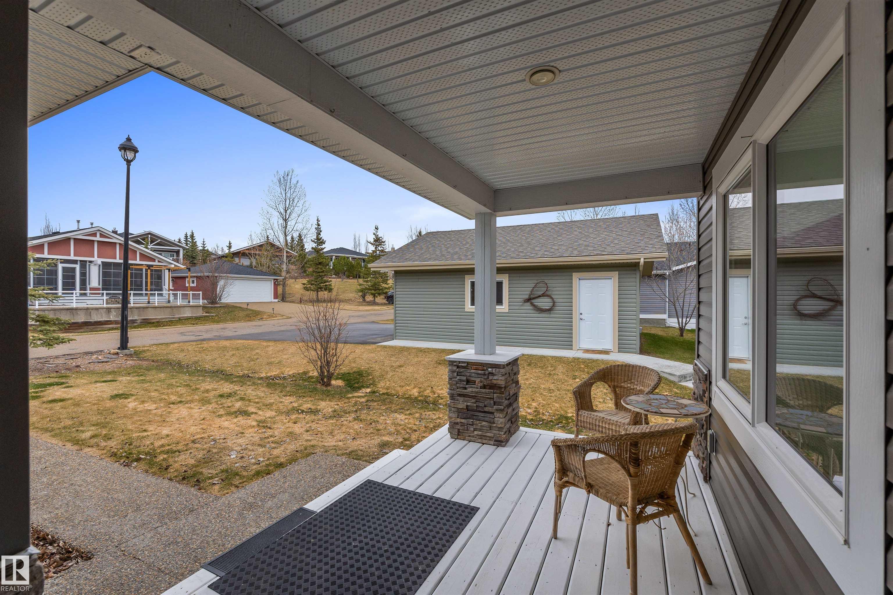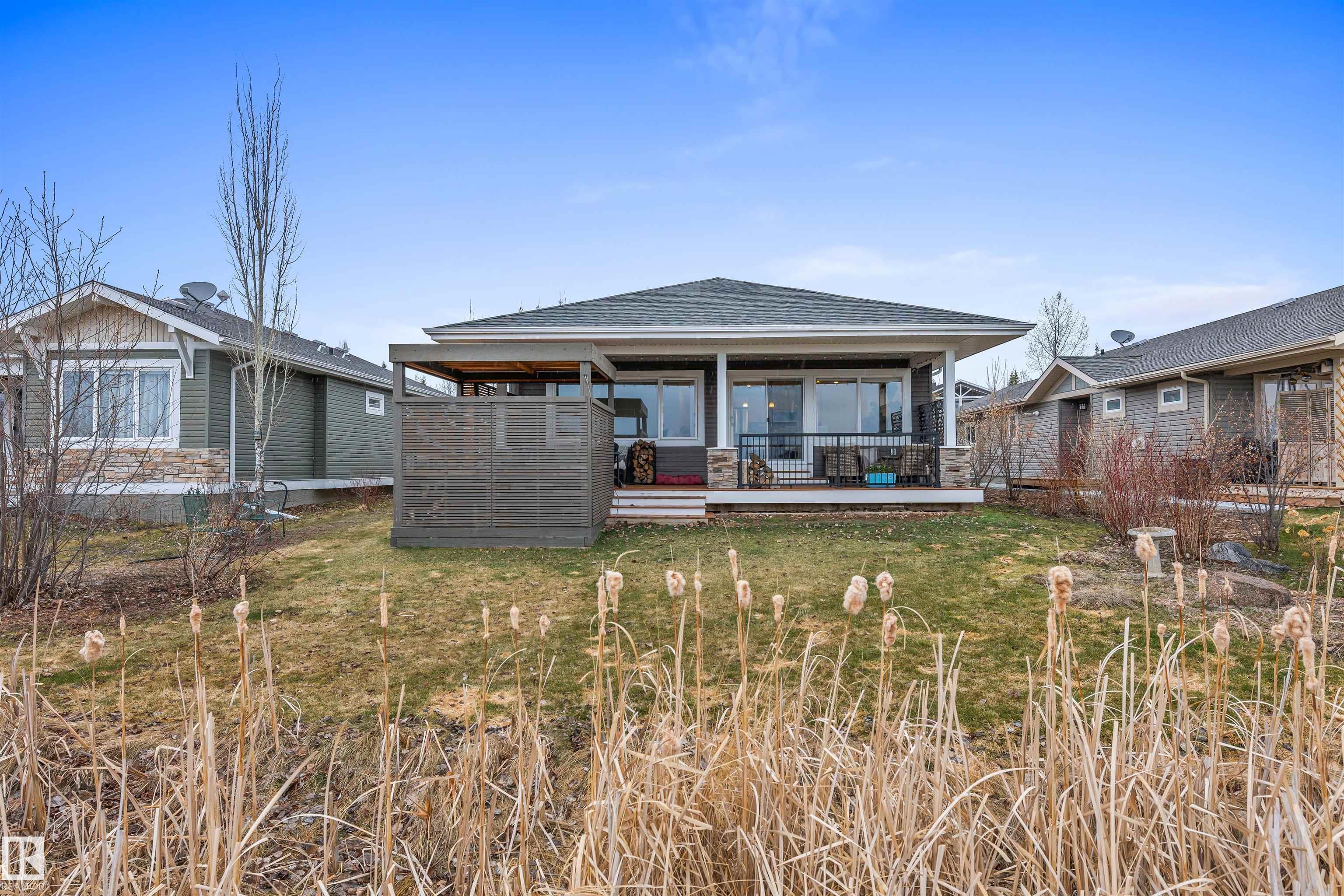 Discover this stunning bungalow in the Estates At Water's Edge. The kitchen is spacious and features white cabinetry, tile backsplash, stainless steel appliances (including a GAS STOVE), a huge eating bar island, corner pantry and an abundance of storage! The living room features a GAS FIREPLACE and has patio doors. The covered deck faces south with partial lake views and a private hot tub! The primary bedroom has a three-piece ensuite and a walk-in closet. Two additional bedrooms, a four piece main bathroom and a laundry room with sink complete the main floor. Crafted directly on the property, this home includes a solid concrete crawlspace, offering generous room for storage. A double attached HEATED OVERSIZED GARAGE completes this home. Additional features include VINYL PLANK flooring throughout the main floor and on demand hot water! A gated community, municipal water/sewer, private marina, outdoor heated pool, beachfront park and clubhouse are all amazing features in Estates at Water's Edge!