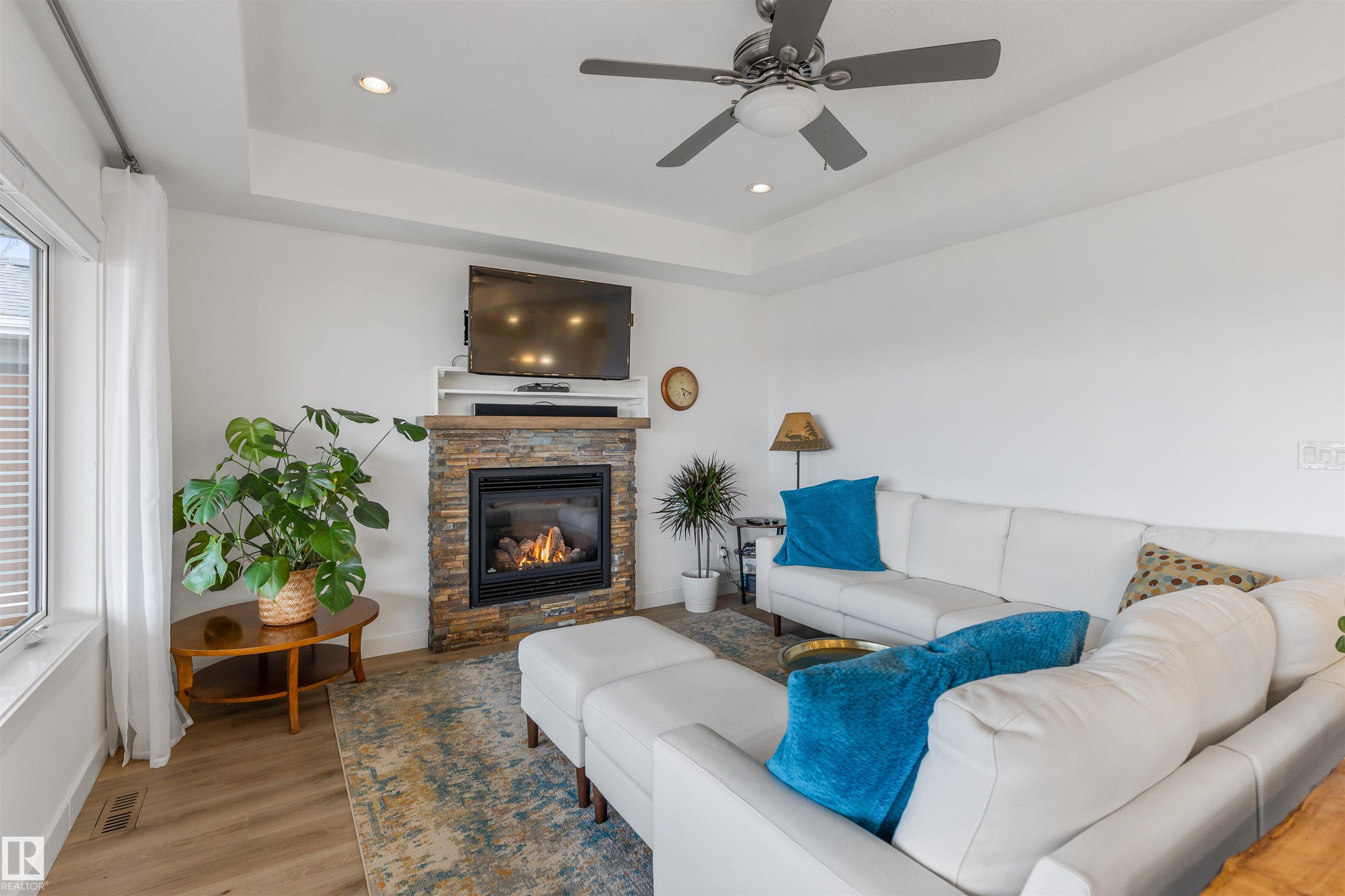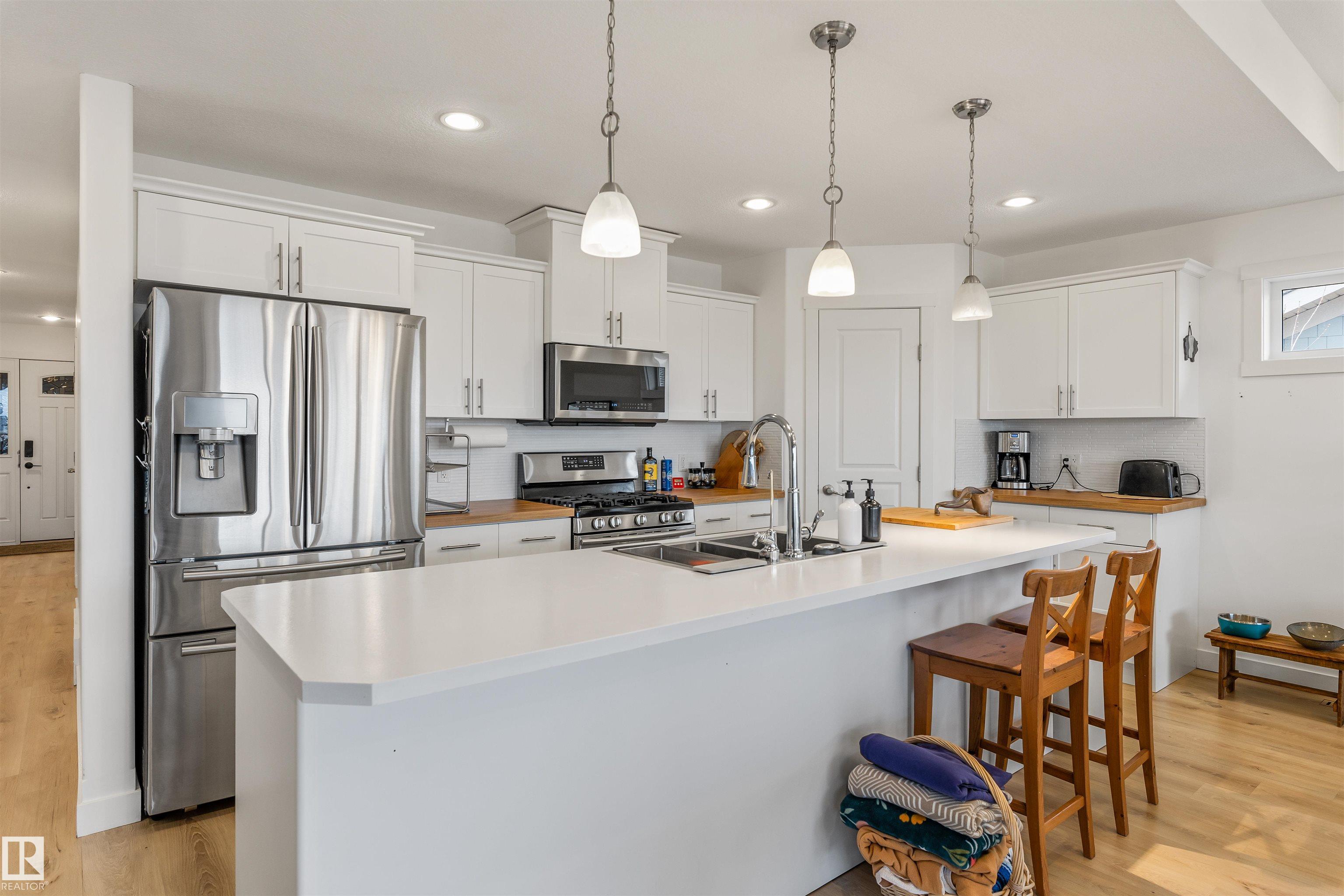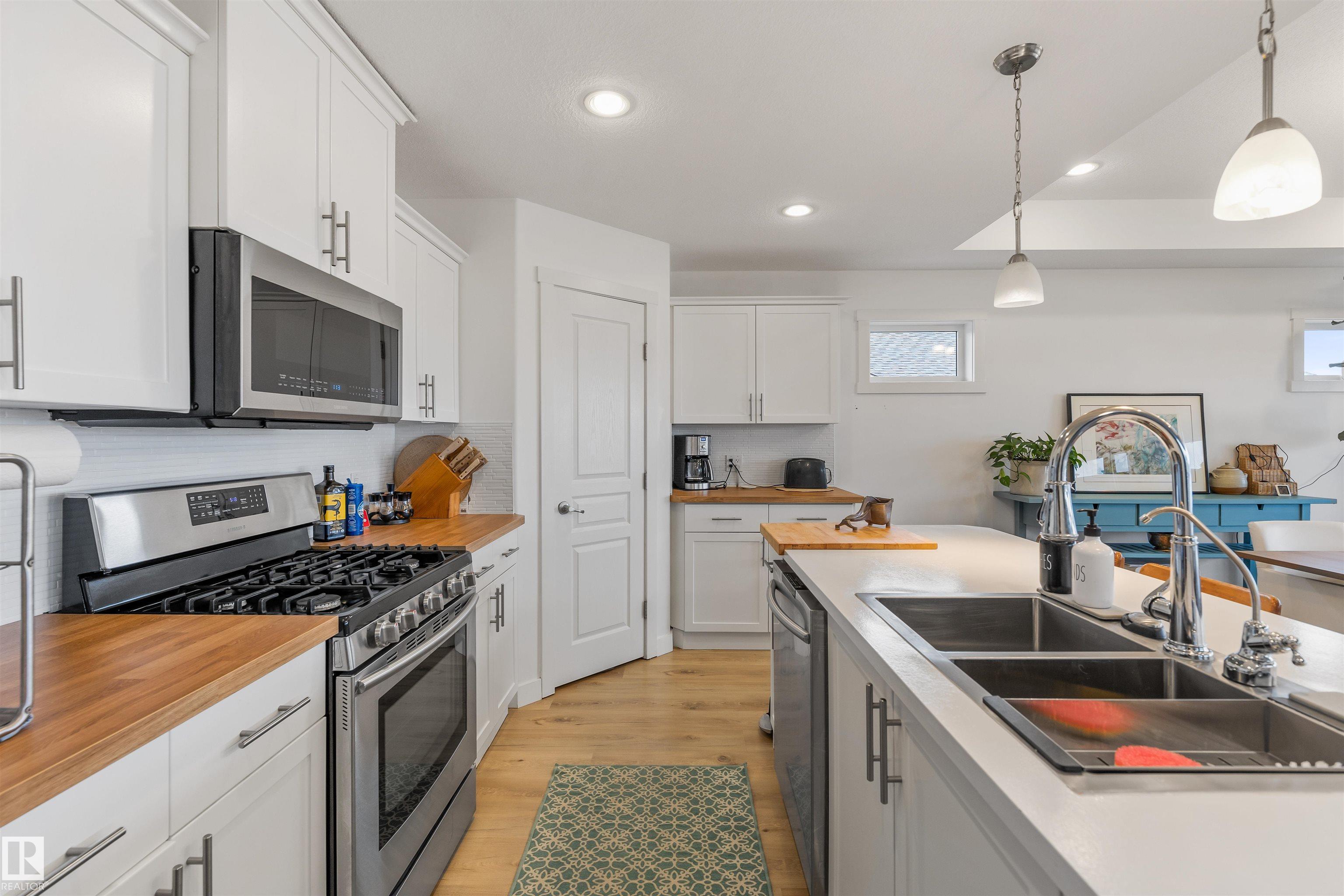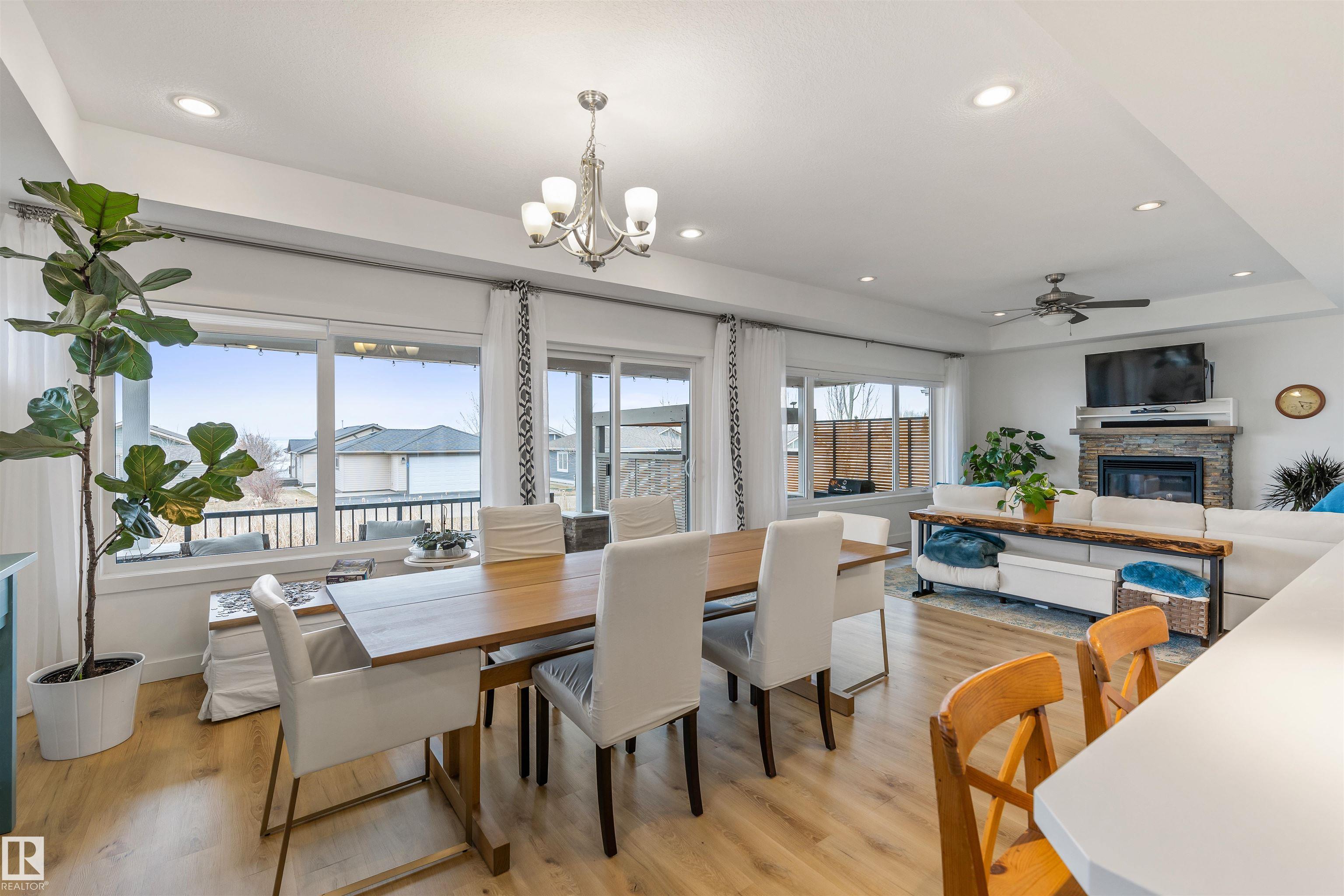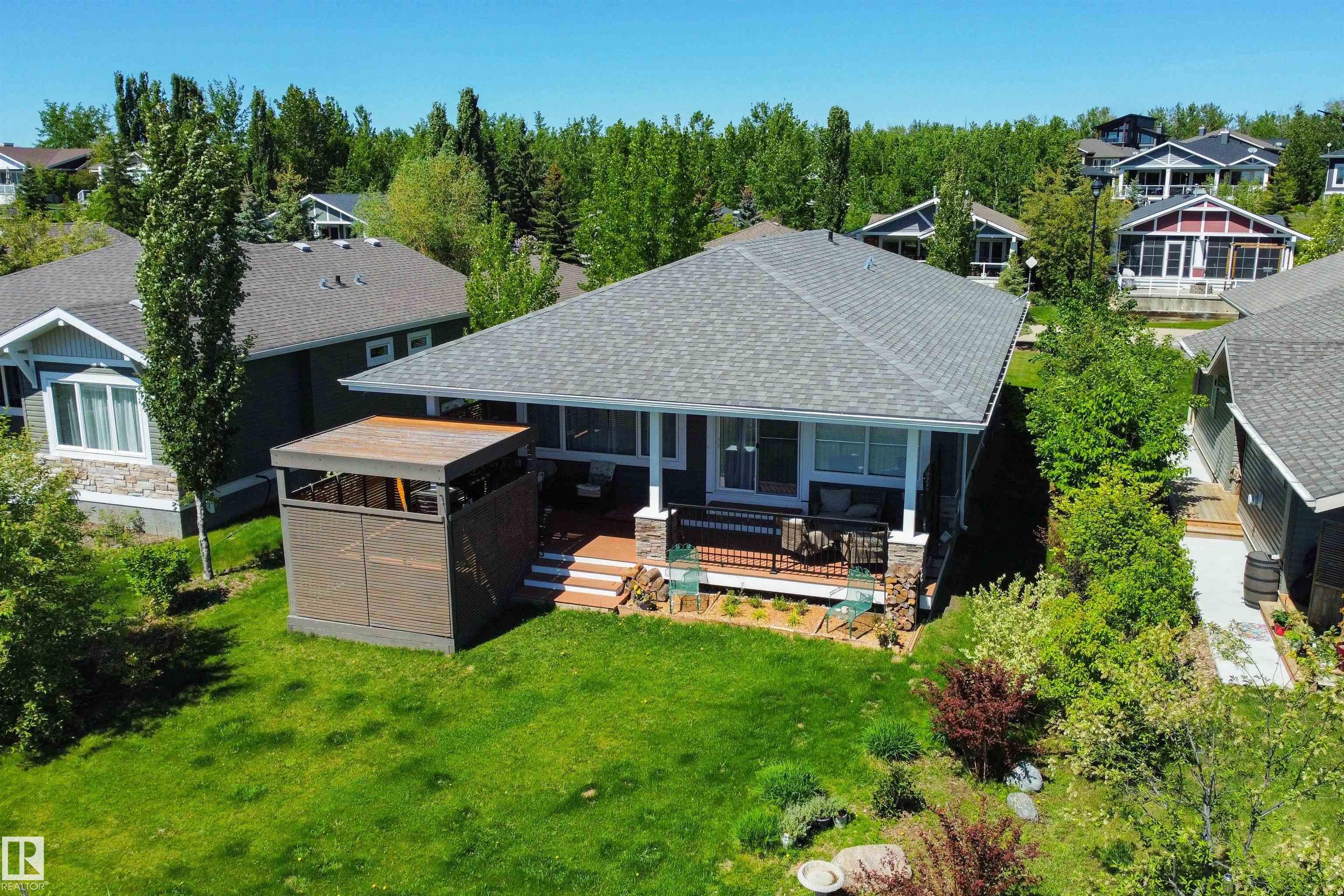 Discover this stunning bungalow in the Estates At Water's Edge. The kitchen is spacious and features white cabinetry, tile backsplash, stainless steel appliances (including a GAS STOVE), a huge eating bar island, corner pantry and an abundance of storage! The living room features a GAS FIREPLACE and has patio doors. The covered deck faces south with partial lake views and a private hot tub! The primary bedroom has a three-piece ensuite and a walk-in closet. Two additional bedrooms, a four piece main bathroom and a laundry room with sink complete the main floor. Crafted directly on the property, this home includes a solid concrete crawlspace, offering generous room for storage. A double attached HEATED OVERSIZED GARAGE completes this home. Additional features include VINYL PLANK flooring throughout the main floor and on demand hot water! A gated community, municipal water/sewer, private marina, outdoor heated pool, beachfront park and clubhouse are all amazing features in Estates at Water's Edge!