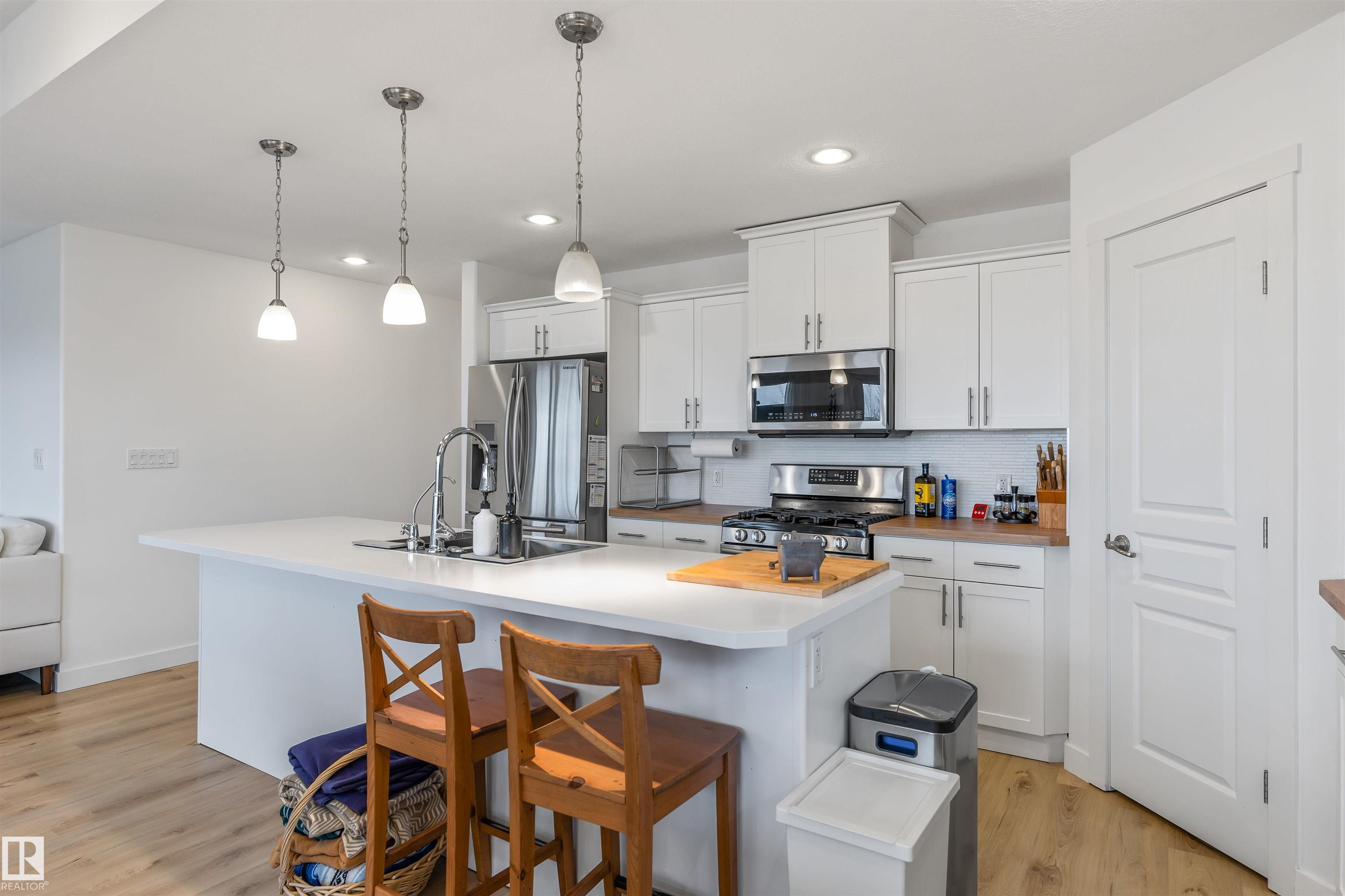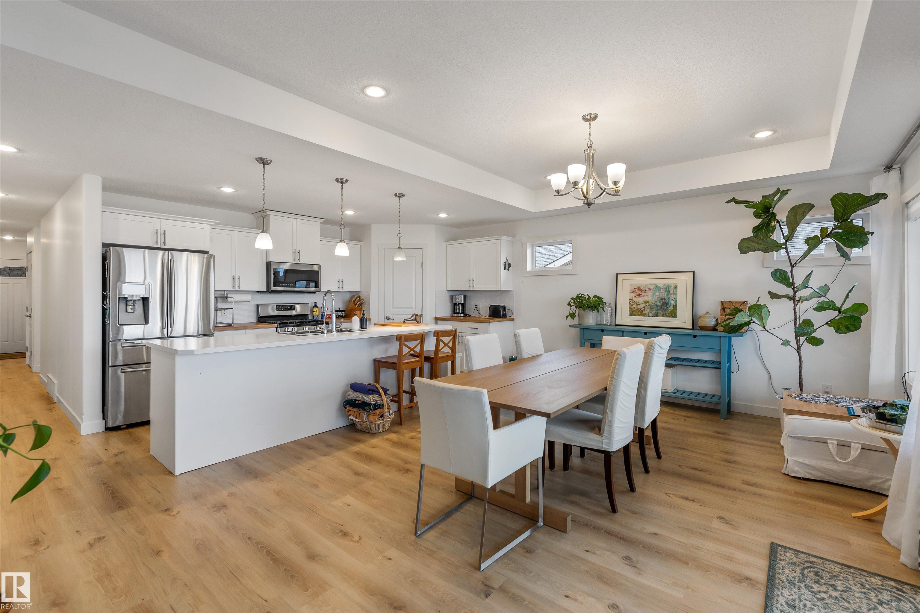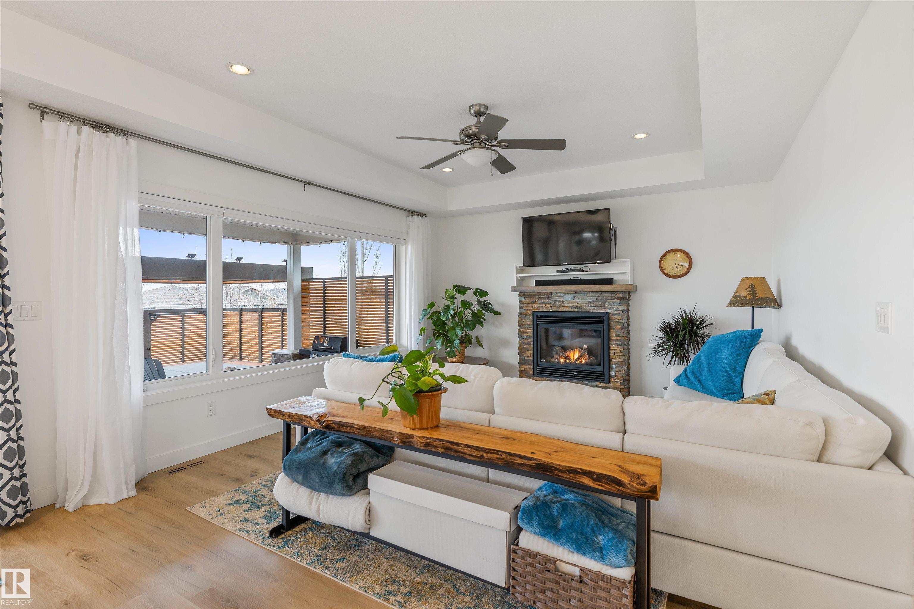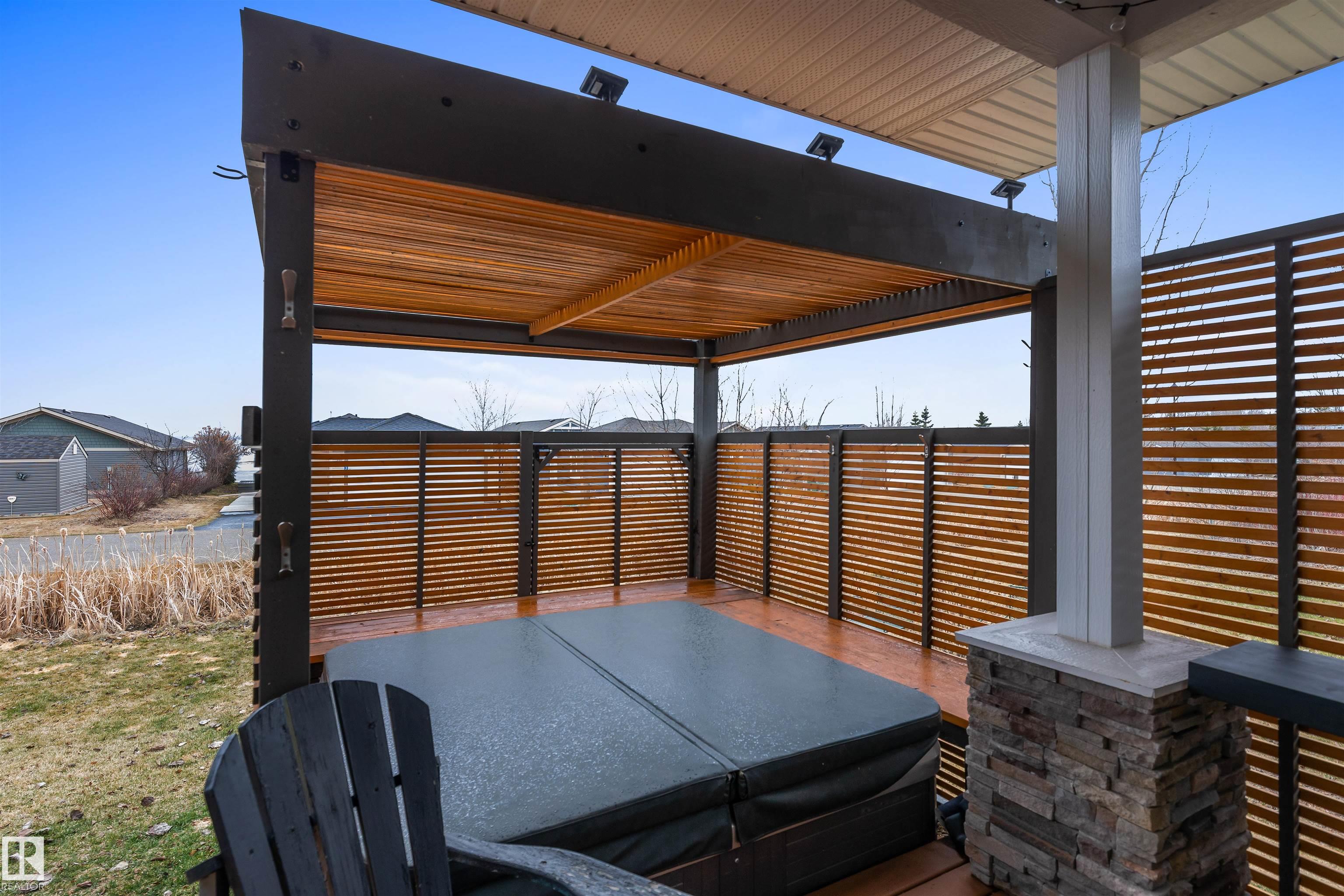 Discover this stunning bungalow in the Estates At Water's Edge. The kitchen is spacious and features white cabinetry, tile backsplash, stainless steel appliances (including a GAS STOVE), a huge eating bar island, corner pantry and an abundance of storage! The living room features a GAS FIREPLACE and has patio doors. The covered deck faces south with partial lake views and a private hot tub! The primary bedroom has a three-piece ensuite and a walk-in closet. Two additional bedrooms, a four piece main bathroom and a laundry room with sink complete the main floor. Crafted directly on the property, this home includes a solid concrete crawlspace, offering generous room for storage. A double attached HEATED OVERSIZED GARAGE completes this home. Additional features include VINYL PLANK flooring throughout the main floor and on demand hot water! A gated community, municipal water/sewer, private marina, outdoor heated pool, beachfront park and clubhouse are all amazing features in Estates at Water's Edge!
