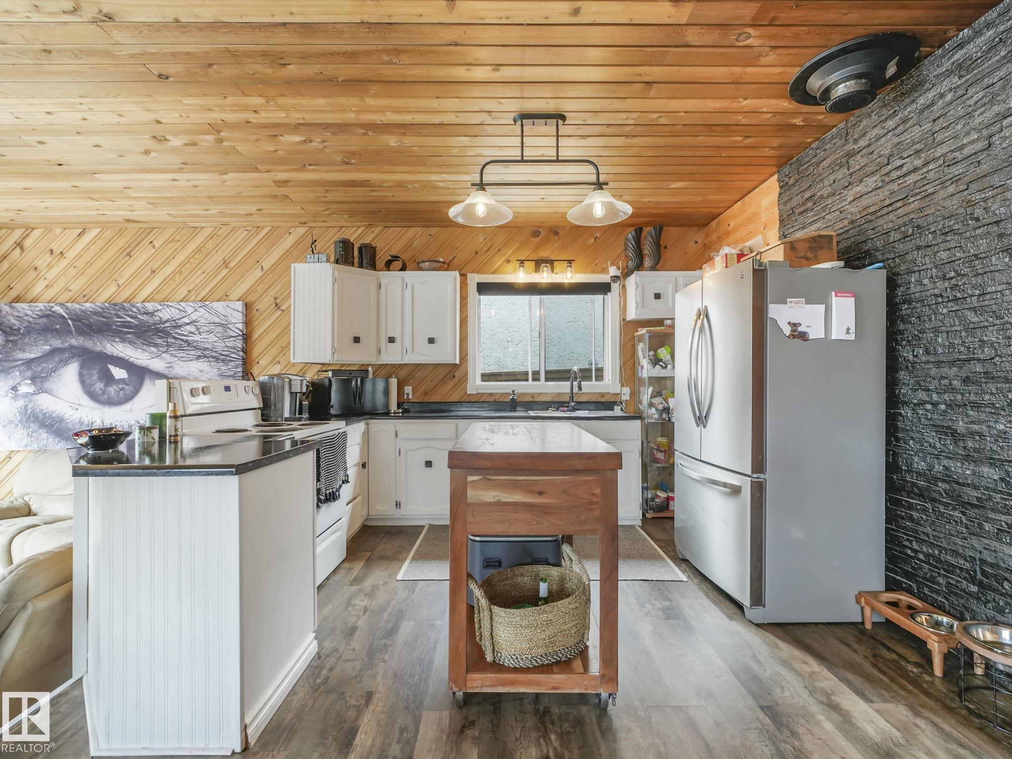 Welcome to this inviting 1,260 sq. ft. bungalow offering year round living in a sought-after location across from the playground, second row lake property, gorgeous lake view and boat access right out front! This 3-bedroom home showcases an updated bathroom and tasteful finishes throughout, including newer flooring, modern lighting, and warm cedar accents. The sunken living room features a cozy fireplace, vaulted ceiling, and large windows that capture beautiful lake views. Outside, enjoy a private, treed backyard complete with a patio, pergola, and firepit, plus direct access to scenic trails leading to Pigeon Lake Village. Recent upgrades include a new roof, municipal sewer, newer siding, updated mechanical systems, and crawl space improvements. Additional highlights include a front deck, storage sheds, and easy access to the lake with a shared dock just a short walk away. A perfect blend of comfort, privacy, and lakeside living. Also minutes to the Village at Pigeon Lake!