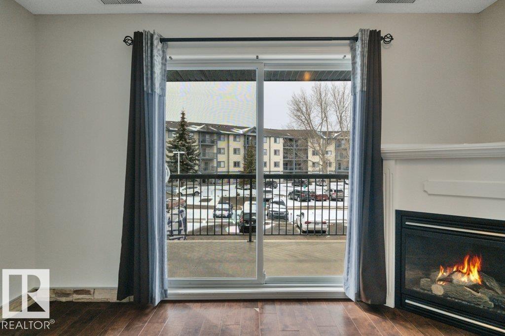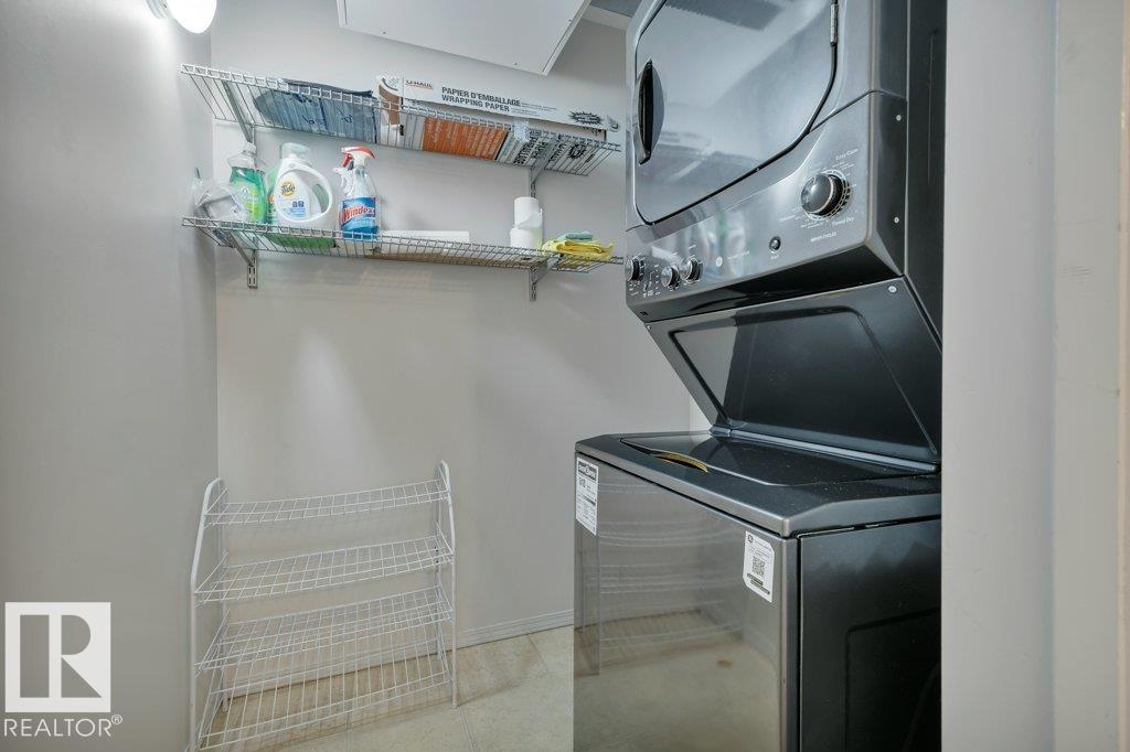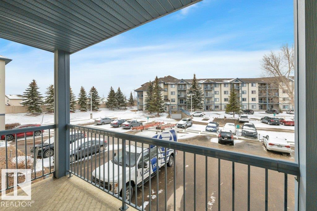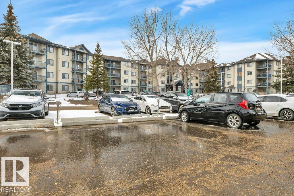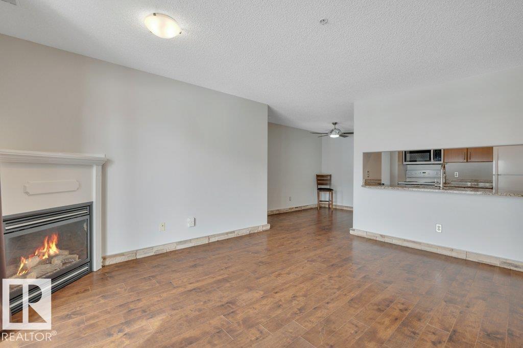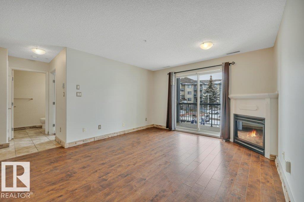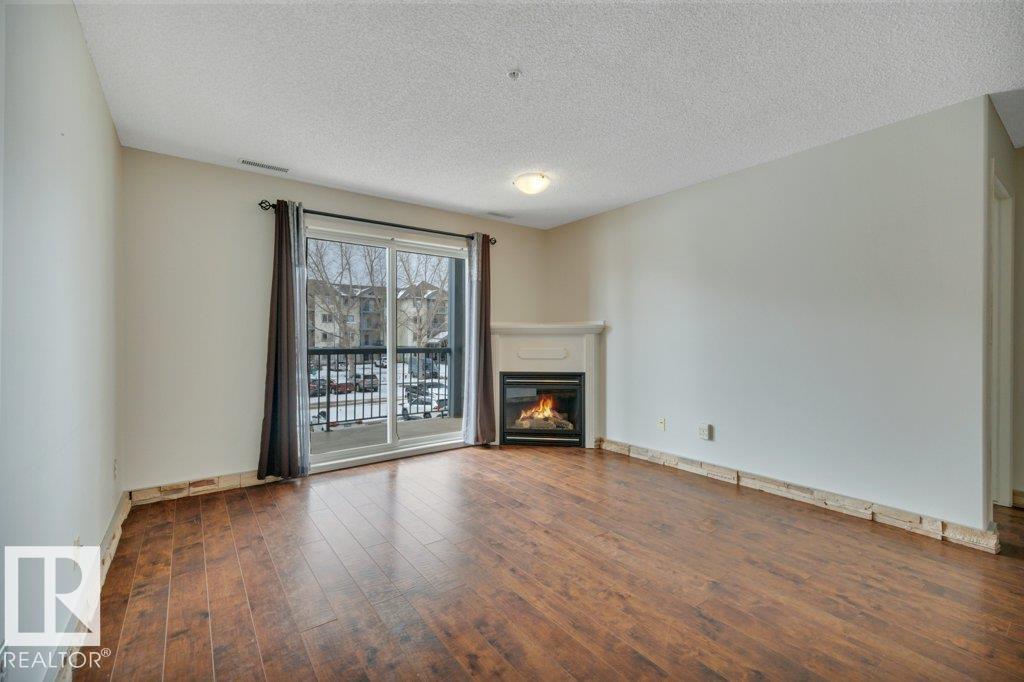Welcome home to your 2 bed 2 bath 2nd floor condo in the Promenade Eaux Claires complex. This 851 sq ft unit has an open concept with a walk through kitchen, dining area, large living room, primary bedroom w/walk through closet and 3 pc ensuite, additional bedroom, 4 pc bath, storage room with new stackable washer & dryer, south facing balcony and corner gas fireplace. Recent upgrades include appliances, carpet and paint. Reasonable condo fees that include heat & water. Expect to be impressed! Very close to shopping, public transportation, schools and quick access to the Anthony Henday. Comes with 2 titled above ground stalls, just outside the front doors. This complex has a gym, games room and a guest suite. Do not let this one pass you by!