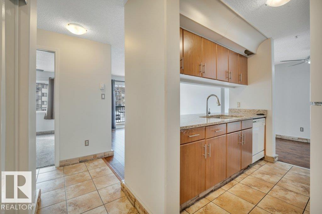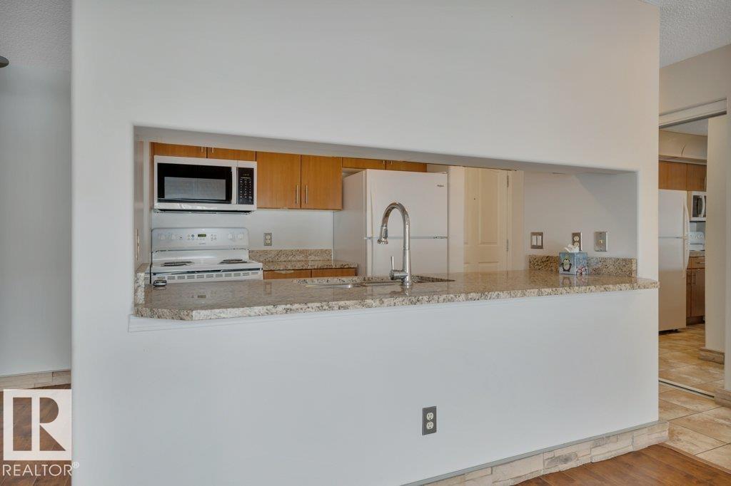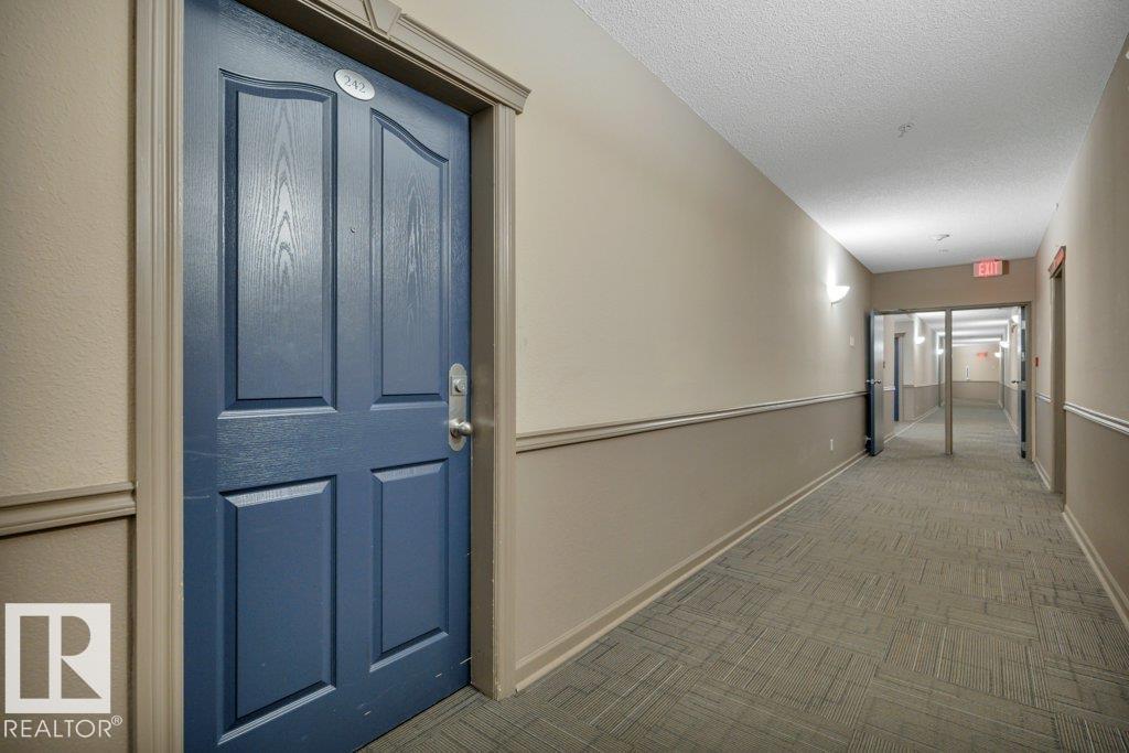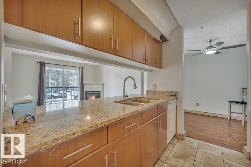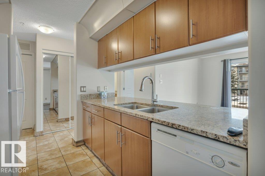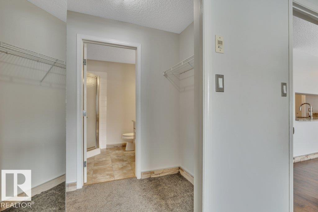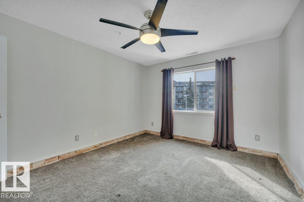 Welcome home to your 2 bed 2 bath 2nd floor condo in the Promenade Eaux Claires complex. This 851 sq ft unit has an open concept with a walk through kitchen, dining area, large living room, primary bedroom w/walk through closet and 3 pc ensuite, additional bedroom, 4 pc bath, storage room with new stackable washer & dryer, south facing balcony and corner gas fireplace. Recent upgrades include appliances, carpet and paint. Reasonable condo fees that include heat & water. Expect to be impressed! Very close to shopping, public transportation, schools and quick access to the Anthony Henday. Comes with 2 titled above ground stalls, just outside the front doors. This complex has a gym, games room and a guest suite. Do not let this one pass you by!