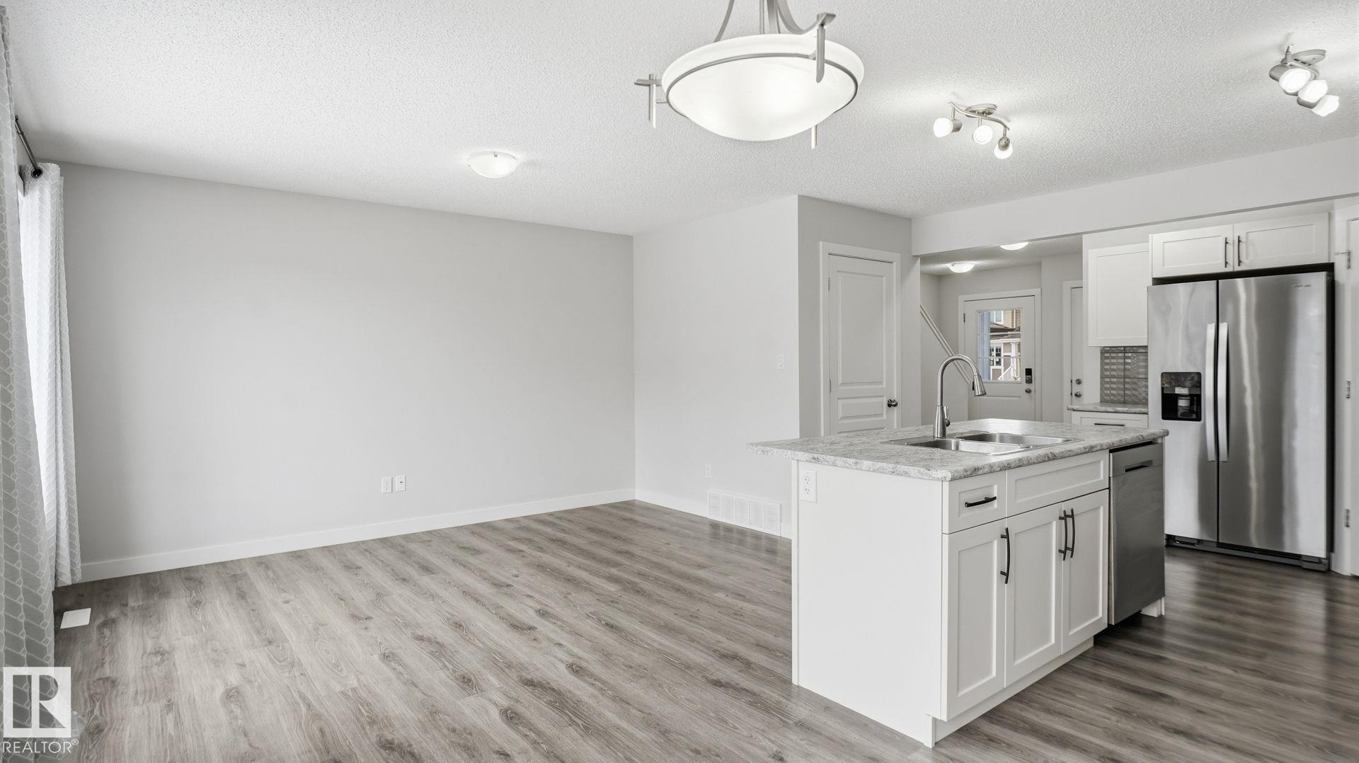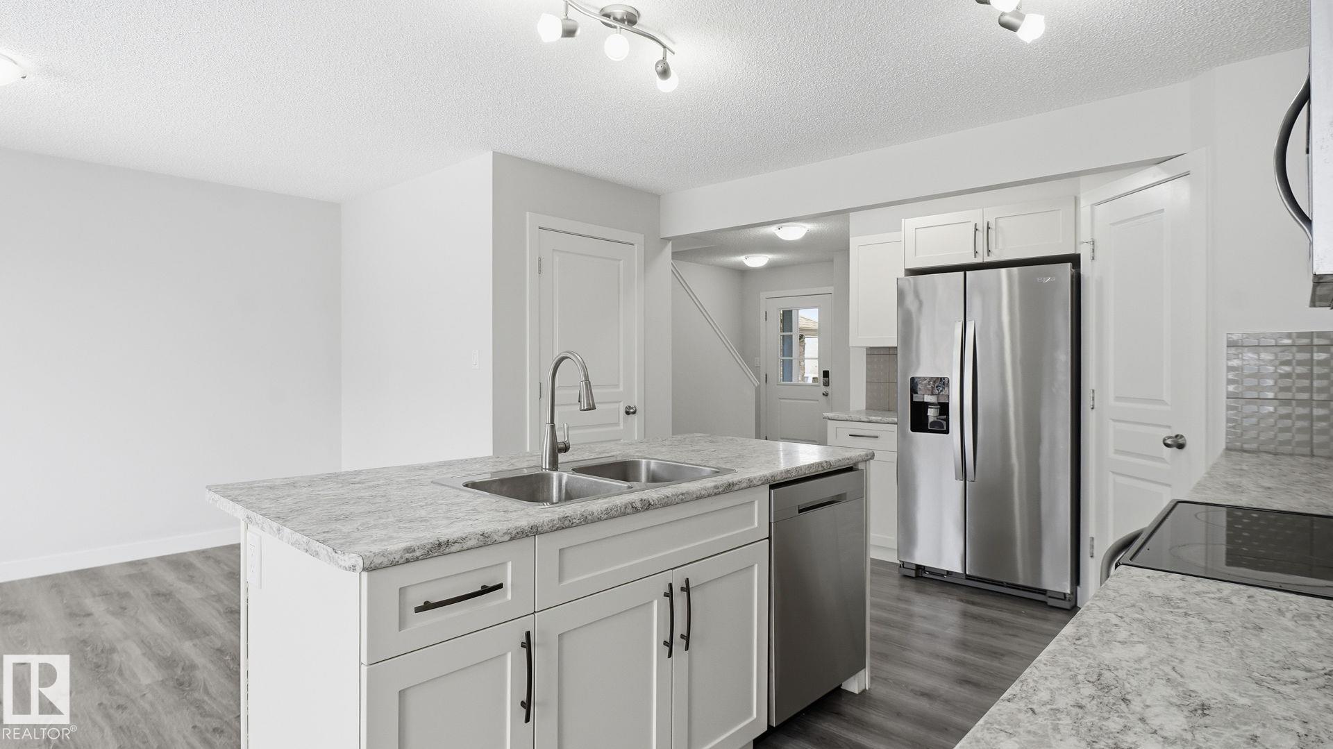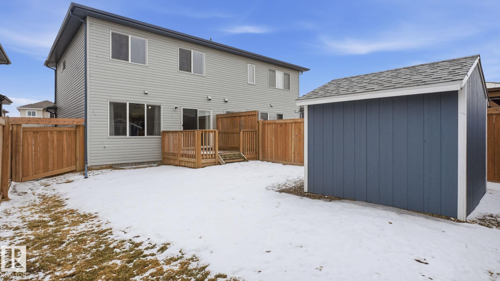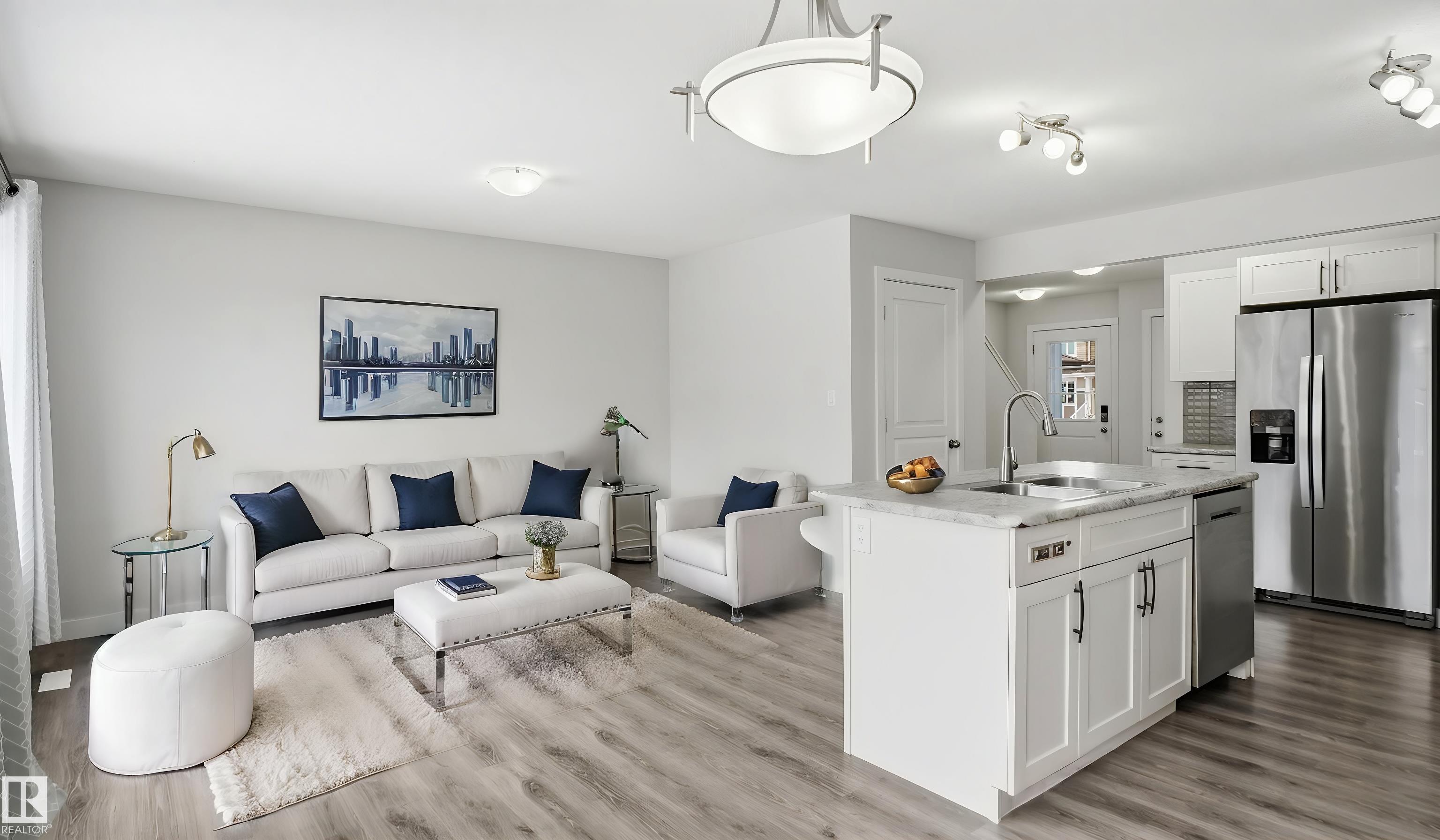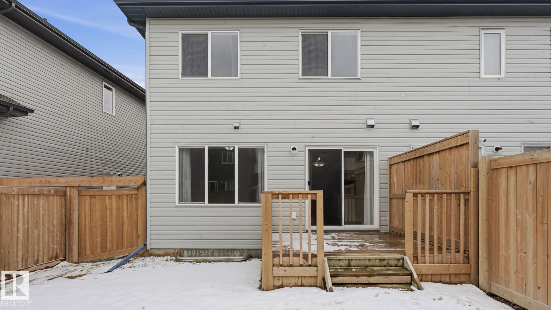 Welcome to this move-in ready half duplex offering 1,862 sq ft of total living space. Featuring 3 bedrooms, 3.5 bathrooms & a single attached garage, this home is perfect for families or first-time buyers. The main floor showcases an open-concept layout with modern white finishes, natural tone laminate flooring & a bright, inviting atmosphere. The kitchen includes a large island with eat-up bar, pantry & seamless flow to the dining and living areas. Patio doors lead to a deck & fully landscaped yard?ideal for relaxing or entertaining. Upstairs you?ll find a spacious primary suite with walk-in closet & private ensuite, along with 2 additional bedrooms & convenient upper-level laundry. The fully finished basement features a great sized rec room, 4-piece bath & storage space. Enjoy the convenience of being within walking distance to schools, parks & scenic pathways.