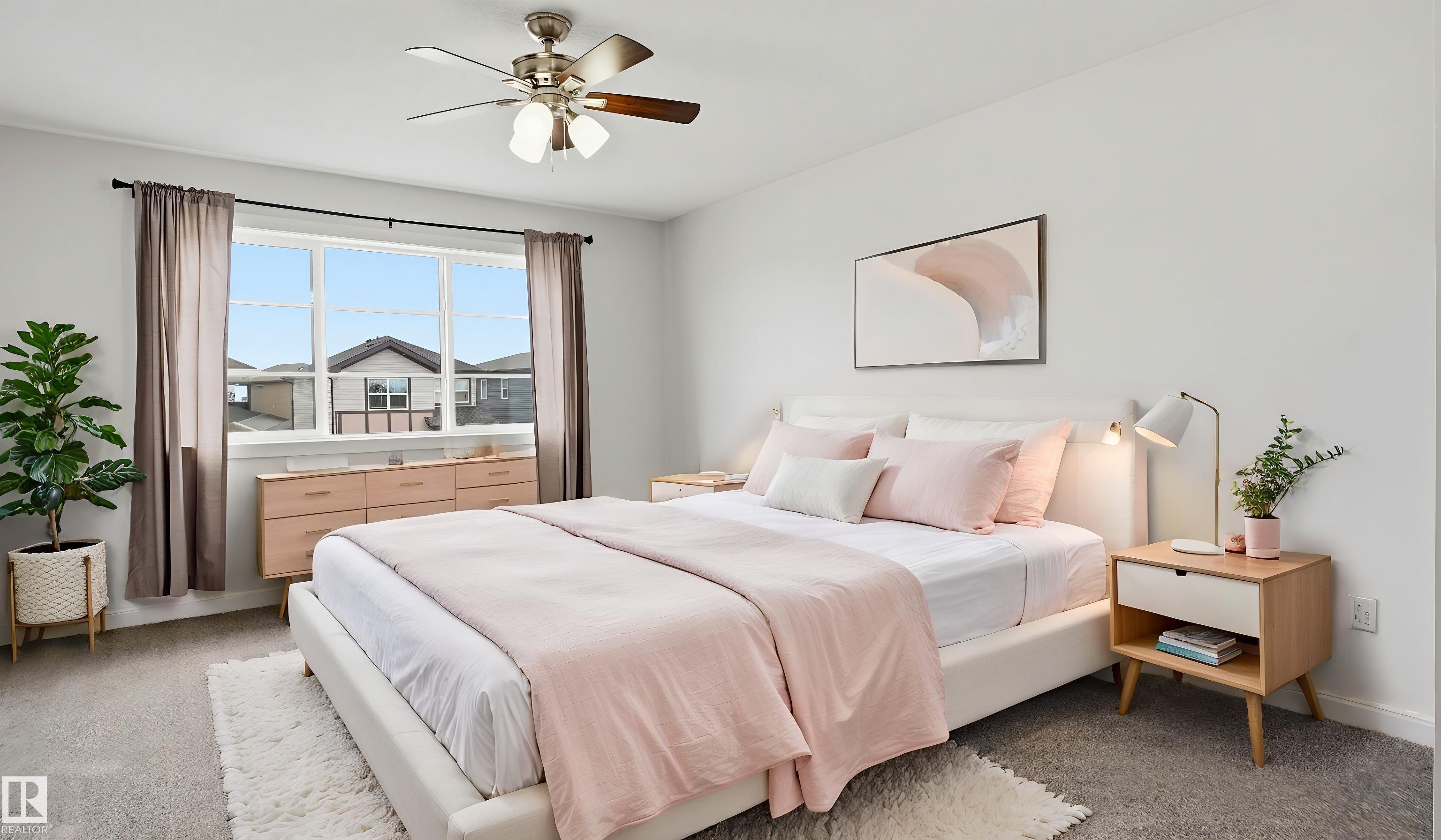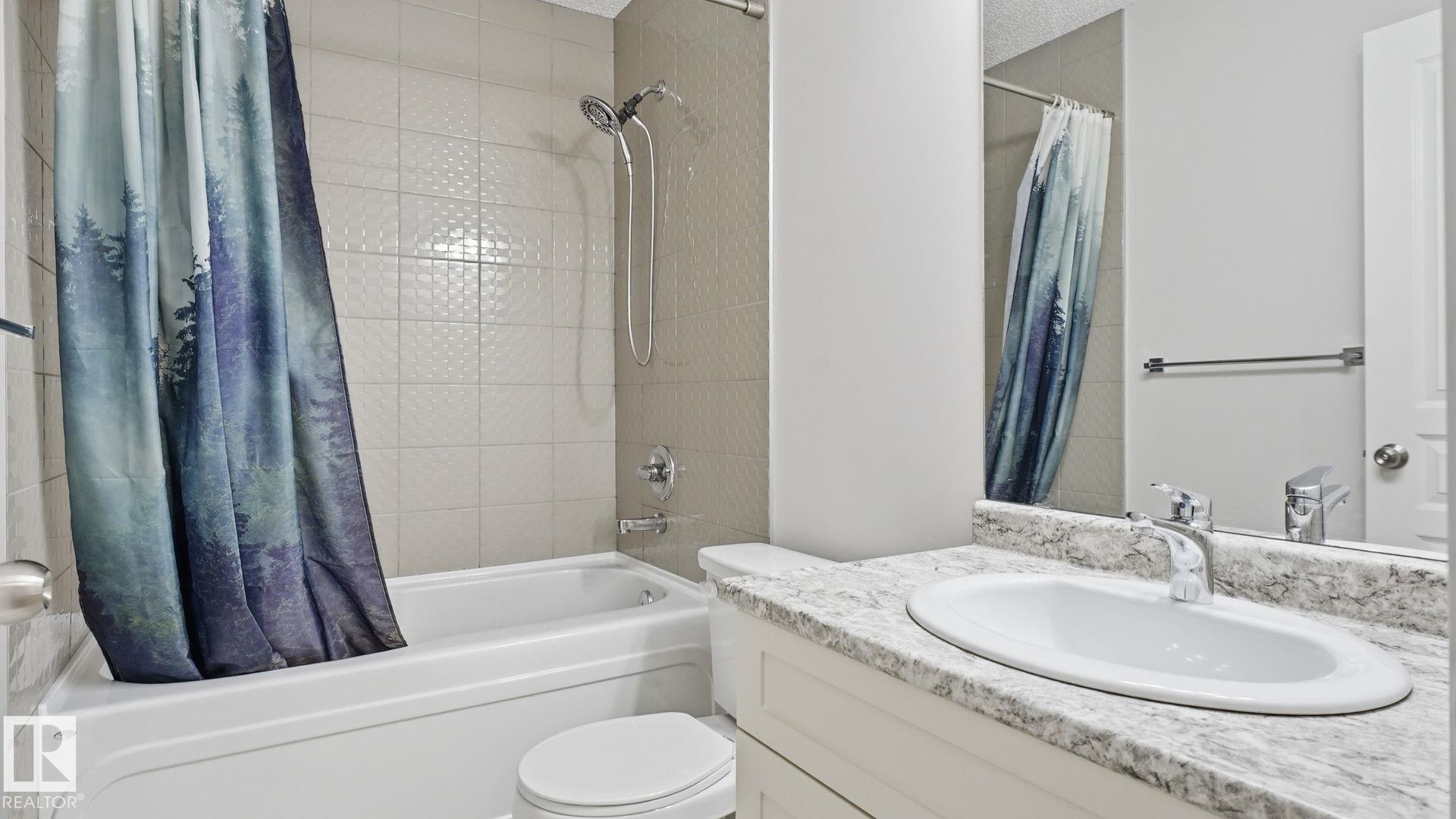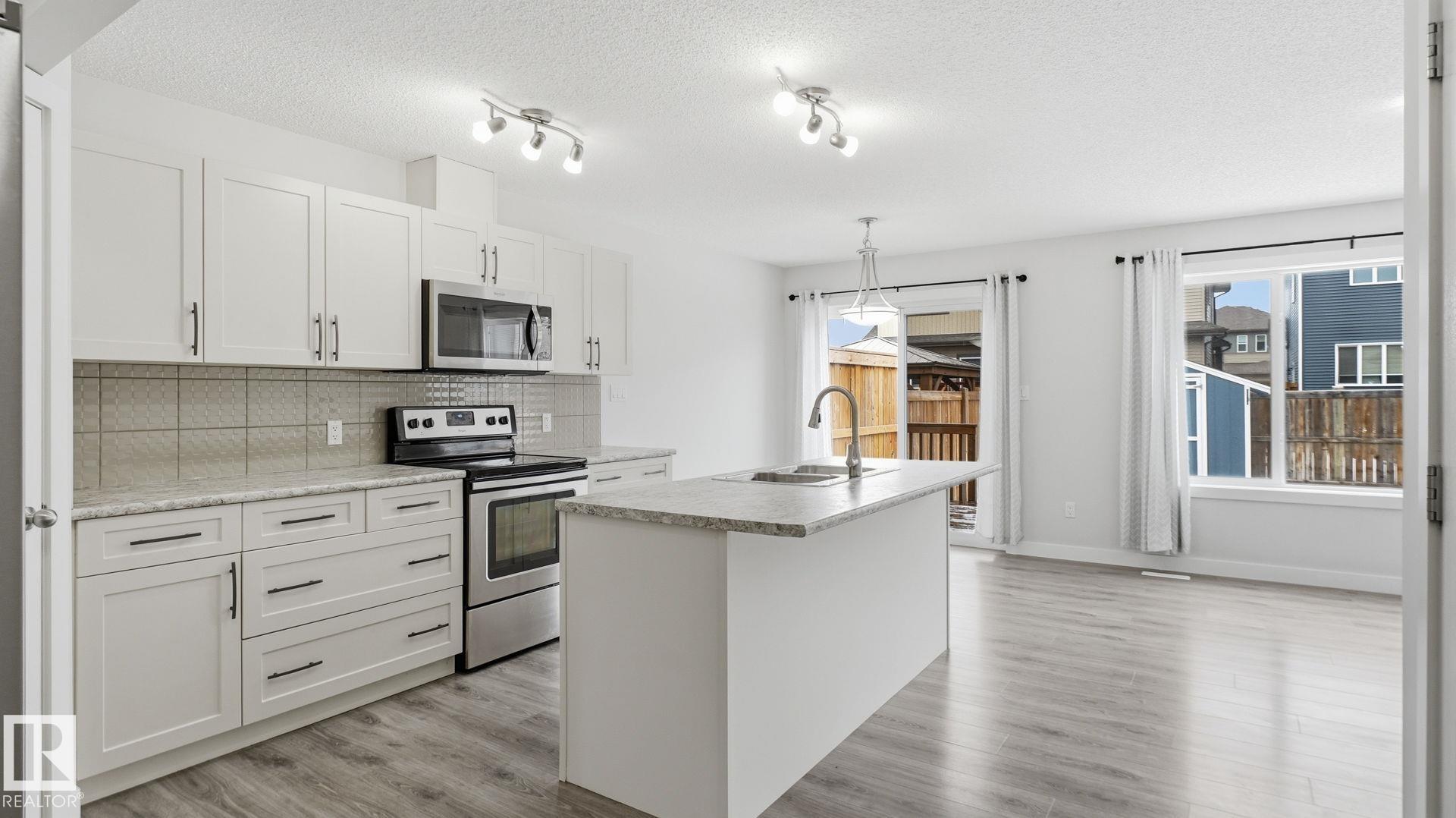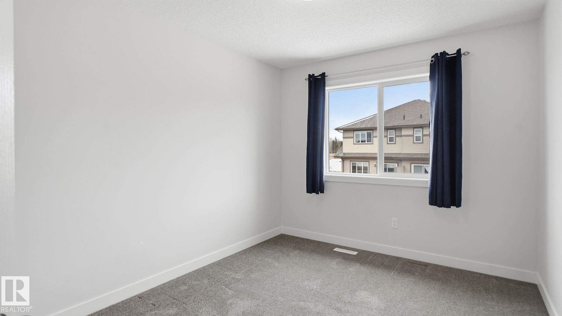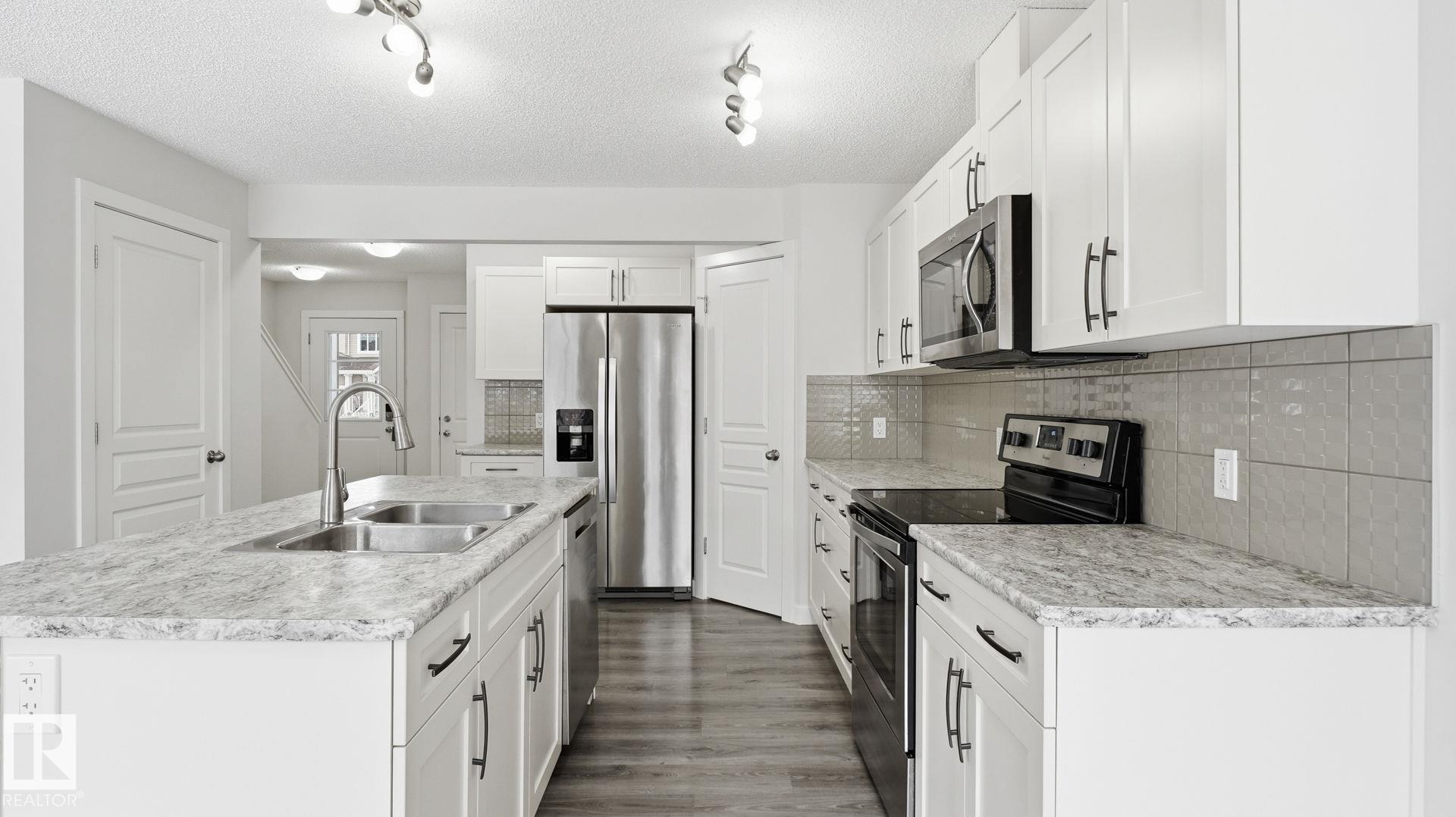 Welcome to this move-in ready half duplex offering 1,862 sq ft of total living space. Featuring 3 bedrooms, 3.5 bathrooms & a single attached garage, this home is perfect for families or first-time buyers. The main floor showcases an open-concept layout with modern white finishes, natural tone laminate flooring & a bright, inviting atmosphere. The kitchen includes a large island with eat-up bar, pantry & seamless flow to the dining and living areas. Patio doors lead to a deck & fully landscaped yard?ideal for relaxing or entertaining. Upstairs you?ll find a spacious primary suite with walk-in closet & private ensuite, along with 2 additional bedrooms & convenient upper-level laundry. The fully finished basement features a great sized rec room, 4-piece bath & storage space. Enjoy the convenience of being within walking distance to schools, parks & scenic pathways.