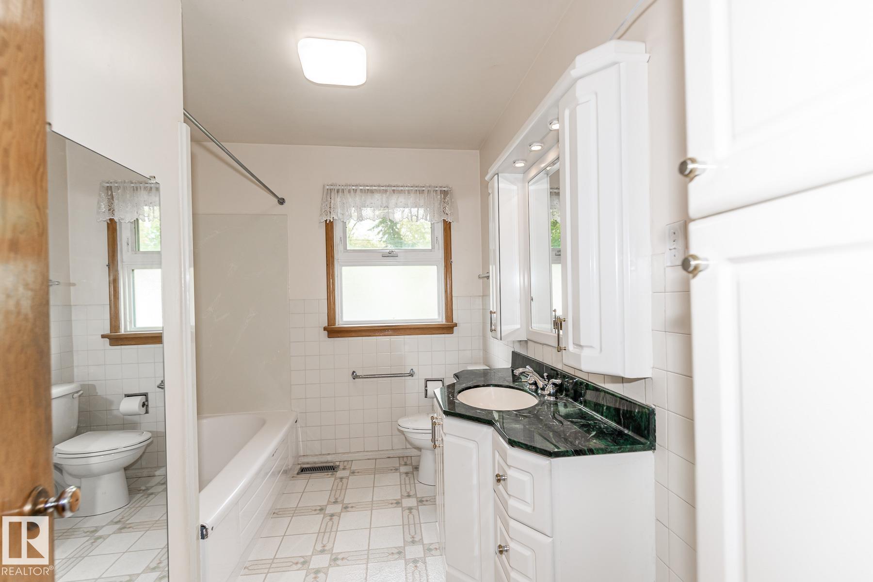 Prime Belgravia Location! Steps to River Valley walking trails and walking distance to UofA campus and LRT station. Sitting on a 50'X129' lot, 3+2 bedrooms, 2 full baths, this well maintained & upgraded bungalow home has so much to offer - be it a primary residence, a holding property or for an infill project. Great curb appeal with stucco exterior and oasis like front backyard. Main floor features a large open living room w/ hardwood floors and a formal dining room. Kitchen was renovated w/ newer cabinets, granite countertops and island. 3 good sized bedrooms and a 4pc full bath. Basement is fully finished with a large family room, 2 more bedrooms and 3 pc full bath. Newer shingles (2017), windows (2003) & furnace (2003). Oversized single detached garage.