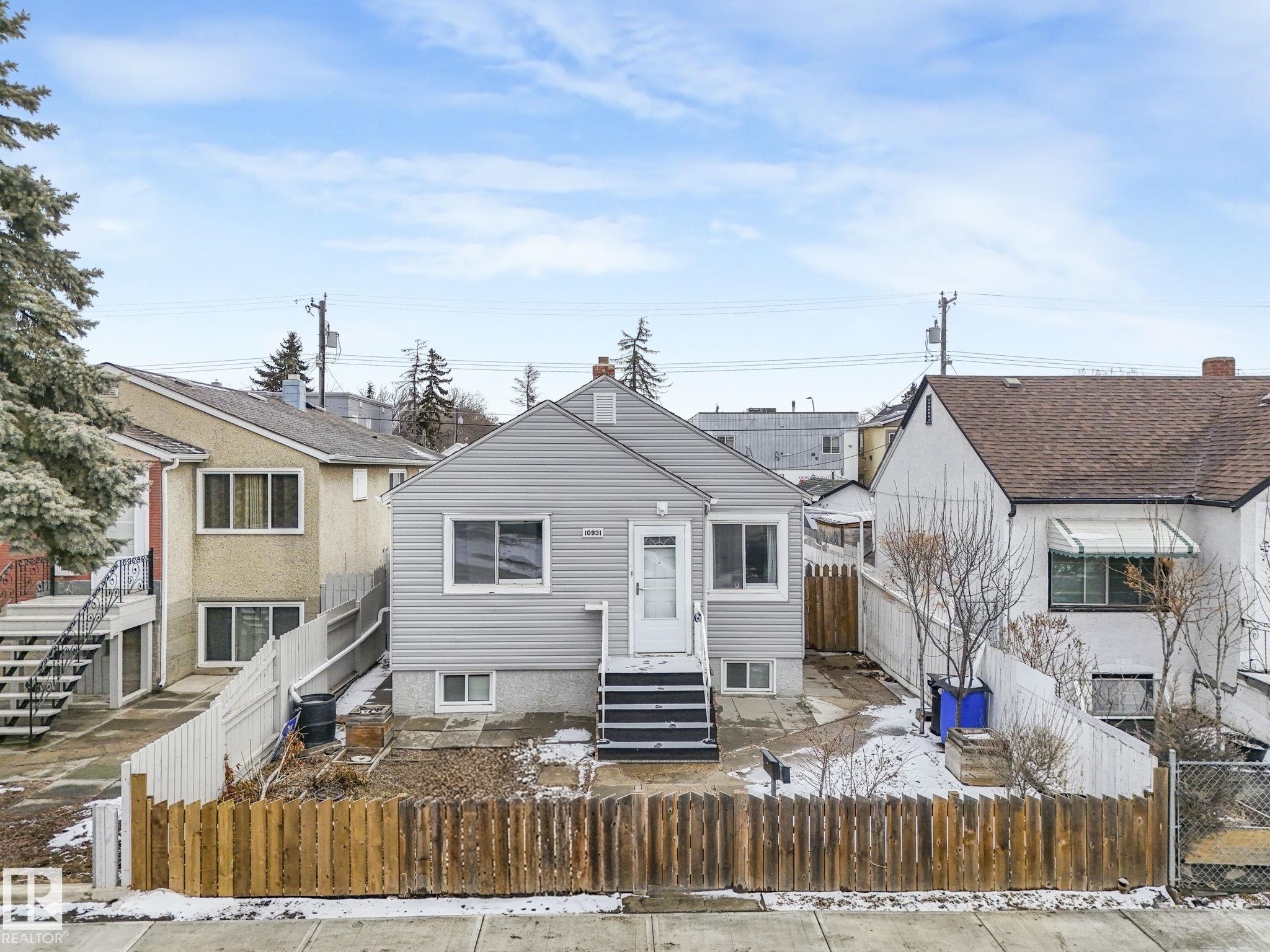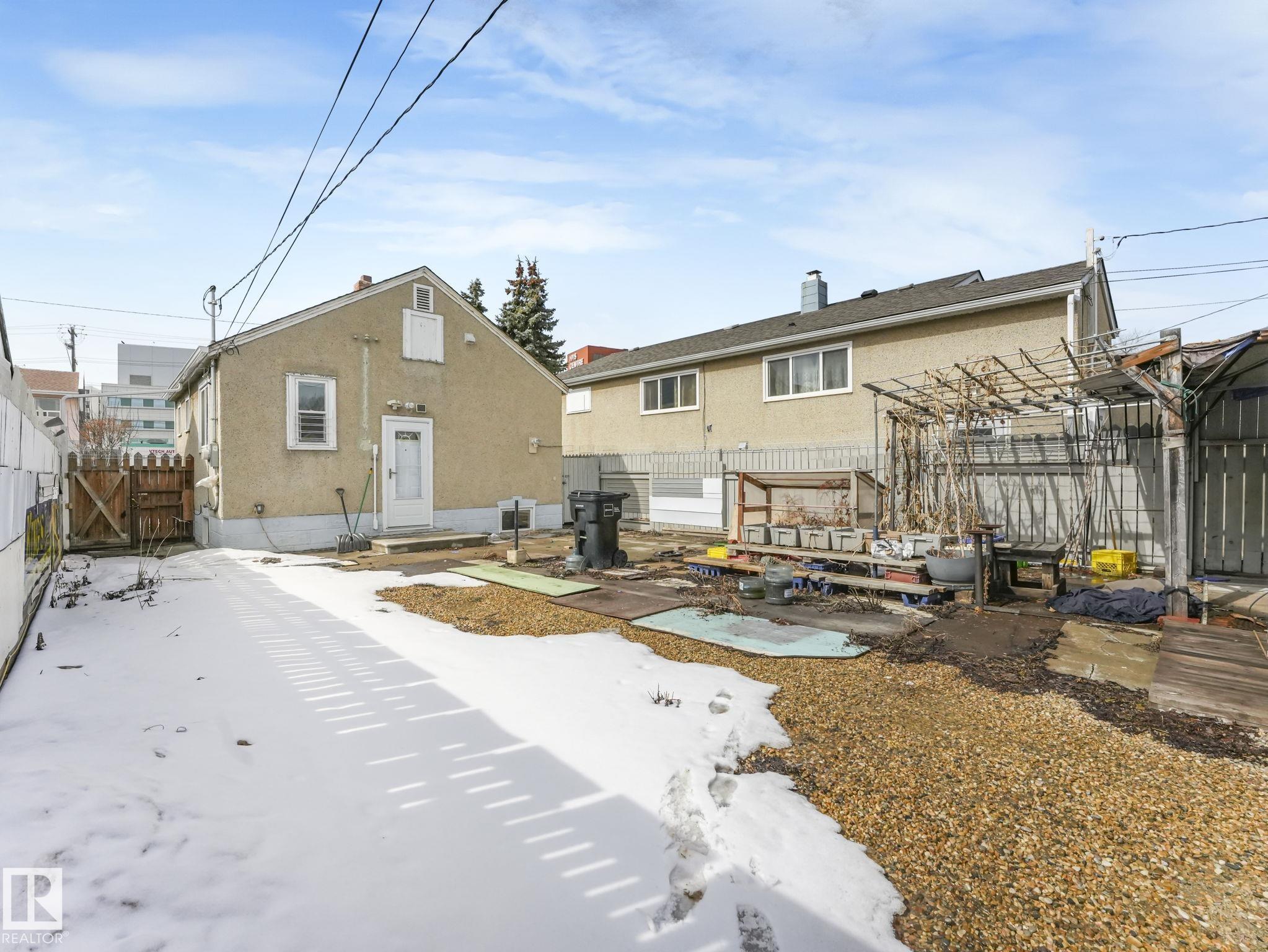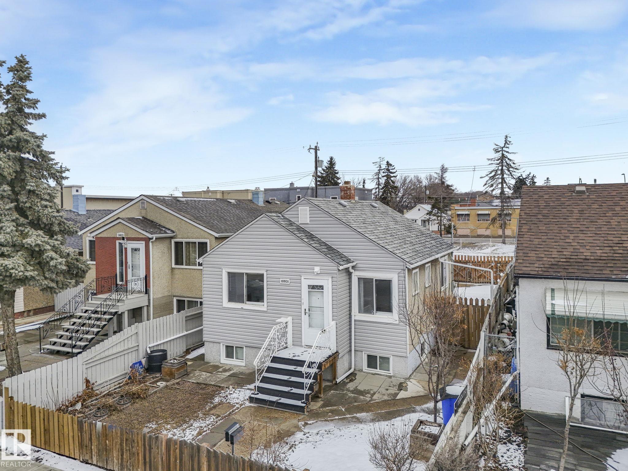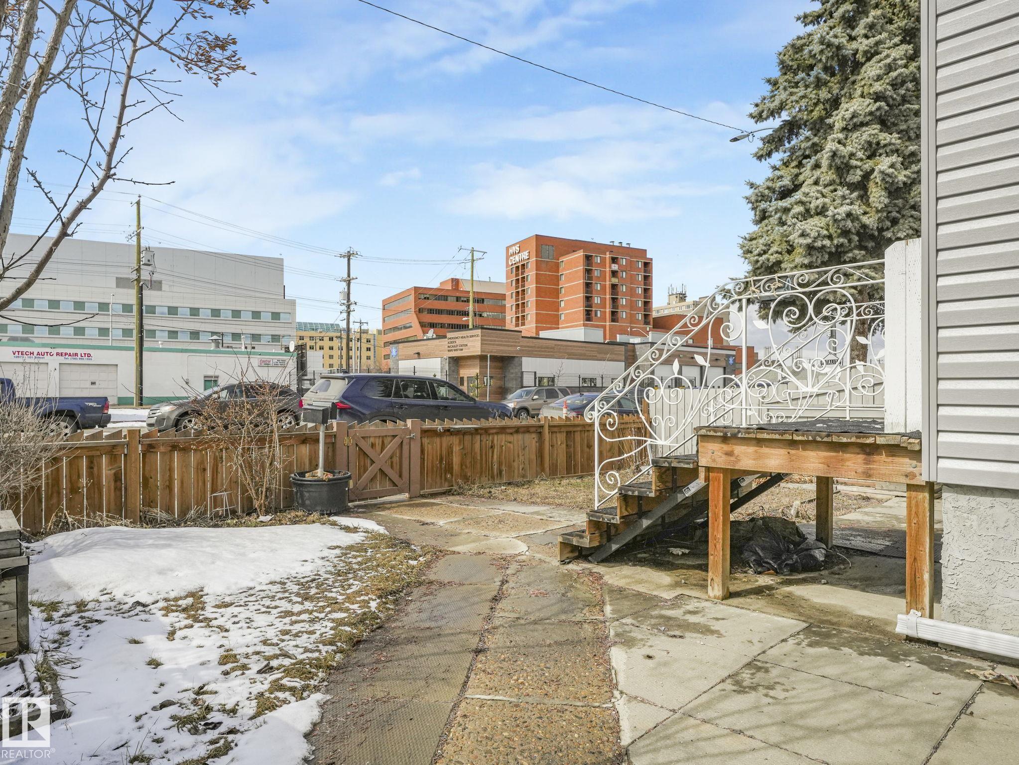 Welcome to this fully furnished property in a prime central location?perfect for investors or first-time home buyers. Situated within walking distance to the Royal Alexandra Hospital, public transit, shopping, dining, schools, and all the conveniences of downtown living.The main floor features two comfortable bedrooms, a cozy kitchen, a bright living area, and a full bathroom. A separate side entrance leads to the basement, offering additional living space with a bedroom or flex area, another full bathroom, and a spacious laundry and storage area.This property presents excellent income potential, whether long-term or short-term.The large lot is a standout feature, complete with a shed, double fence doors for RV parking, and plenty of space to build a large garage. There is also exciting potential for future redevelopment, including the possibility of commercial infill (subject to municipal approval). Reasonably priced and full of opportunity?this property is ready for its next owner!