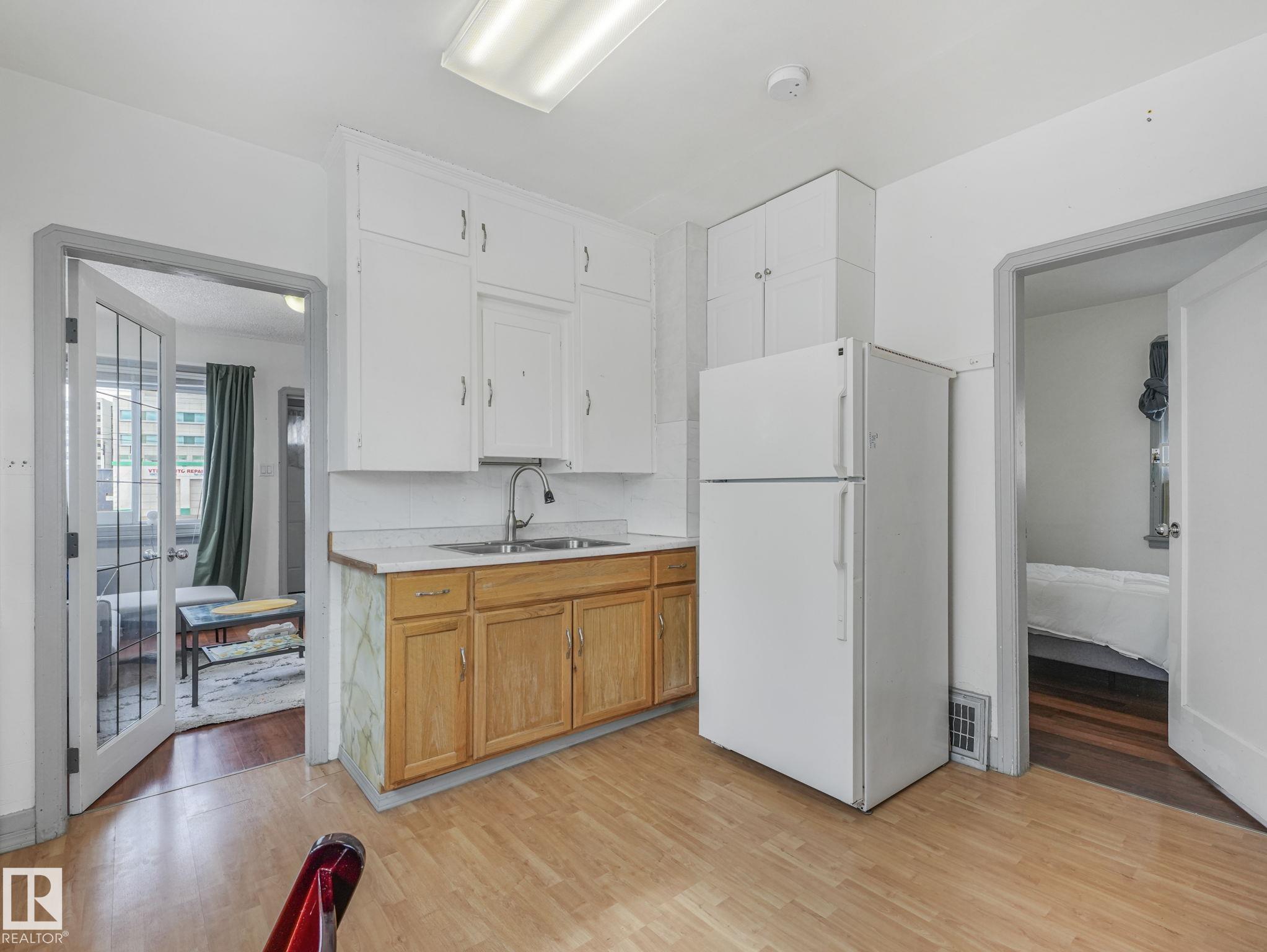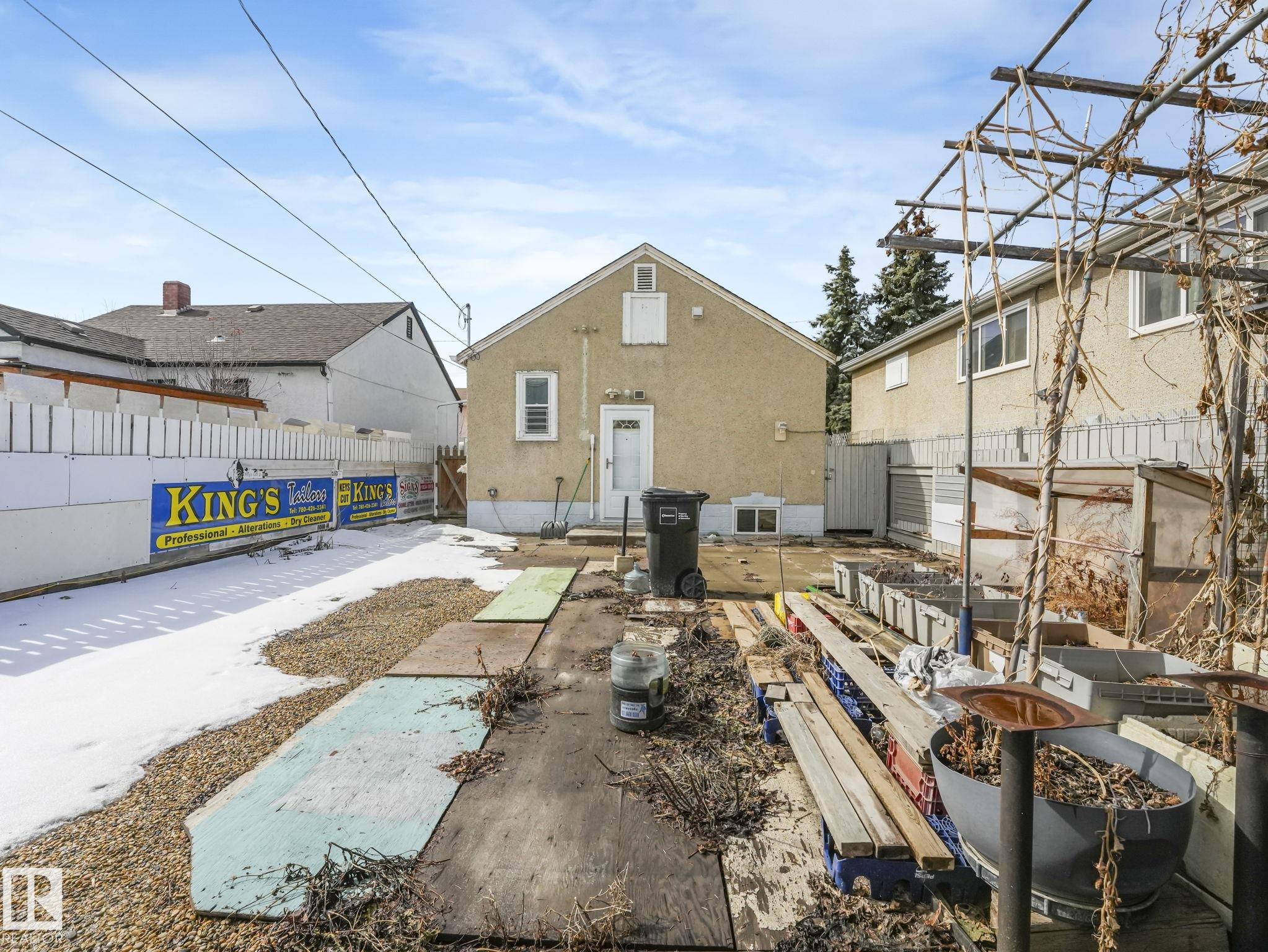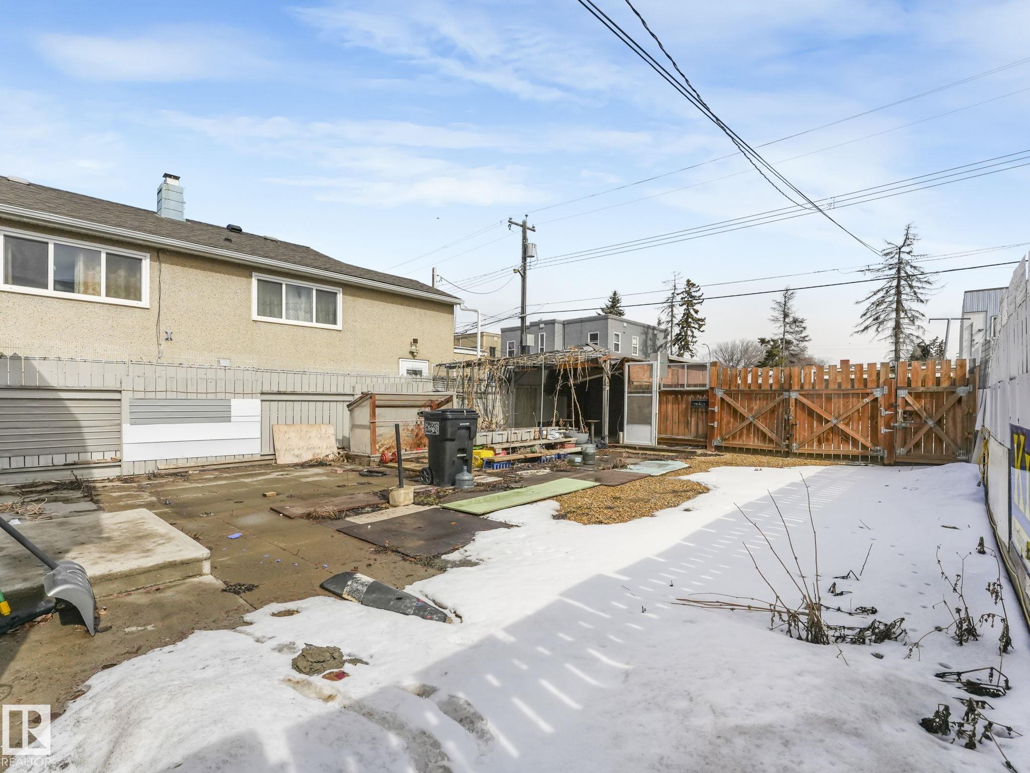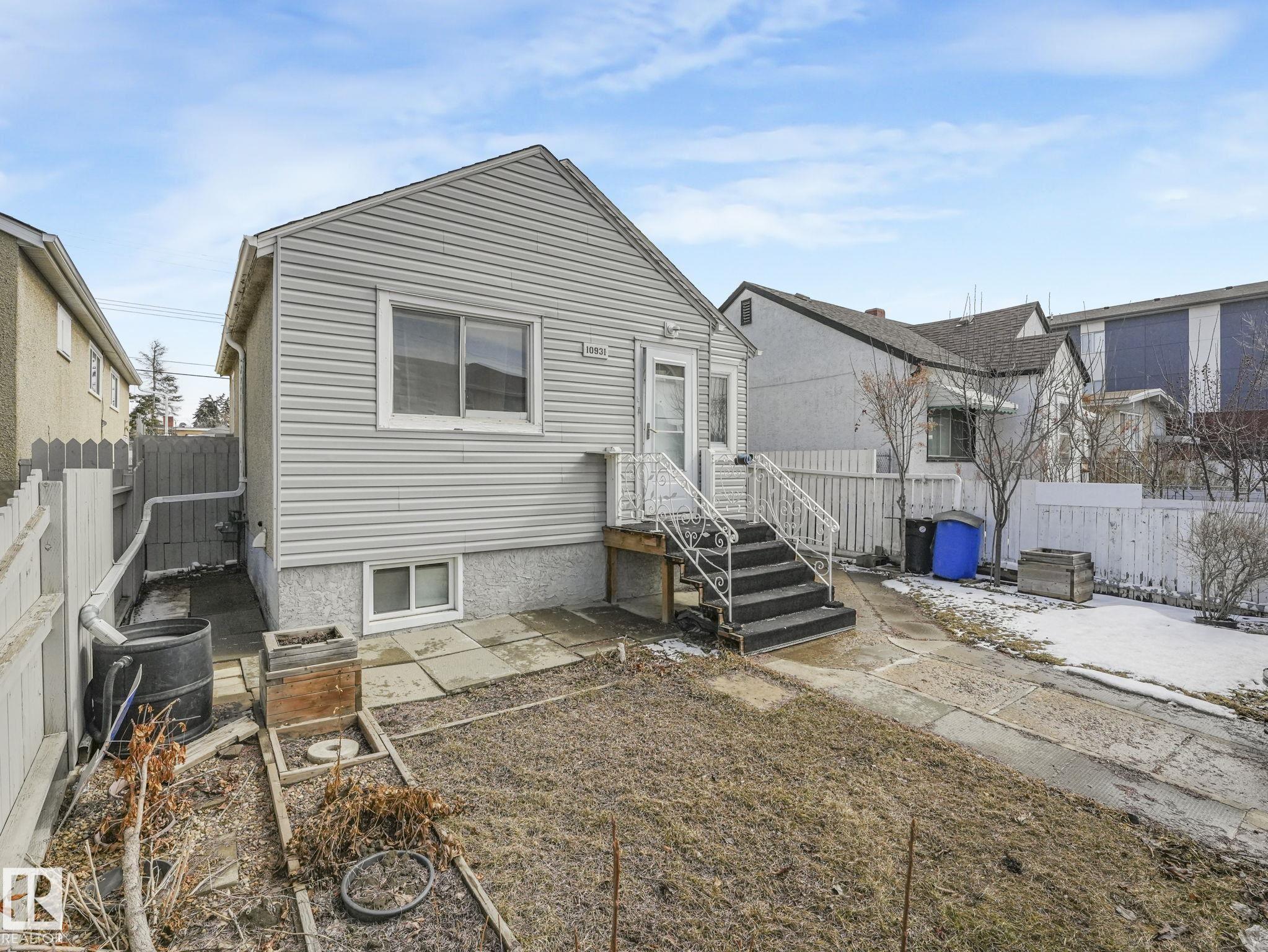 Welcome to this fully furnished property in a prime central location?perfect for investors or first-time home buyers. Situated within walking distance to the Royal Alexandra Hospital, public transit, shopping, dining, schools, and all the conveniences of downtown living.The main floor features two comfortable bedrooms, a cozy kitchen, a bright living area, and a full bathroom. A separate side entrance leads to the basement, offering additional living space with a bedroom or flex area, another full bathroom, and a spacious laundry and storage area.This property presents excellent income potential, whether long-term or short-term.The large lot is a standout feature, complete with a shed, double fence doors for RV parking, and plenty of space to build a large garage. There is also exciting potential for future redevelopment, including the possibility of commercial infill (subject to municipal approval). Reasonably priced and full of opportunity?this property is ready for its next owner!